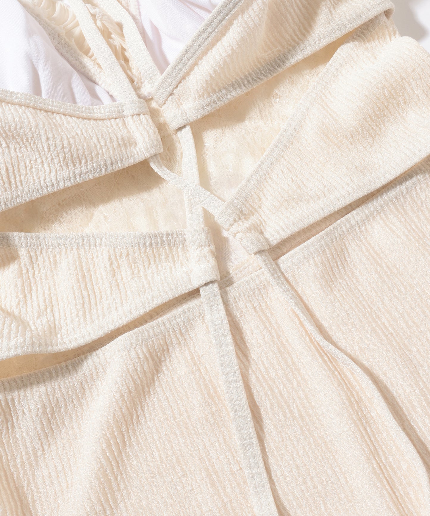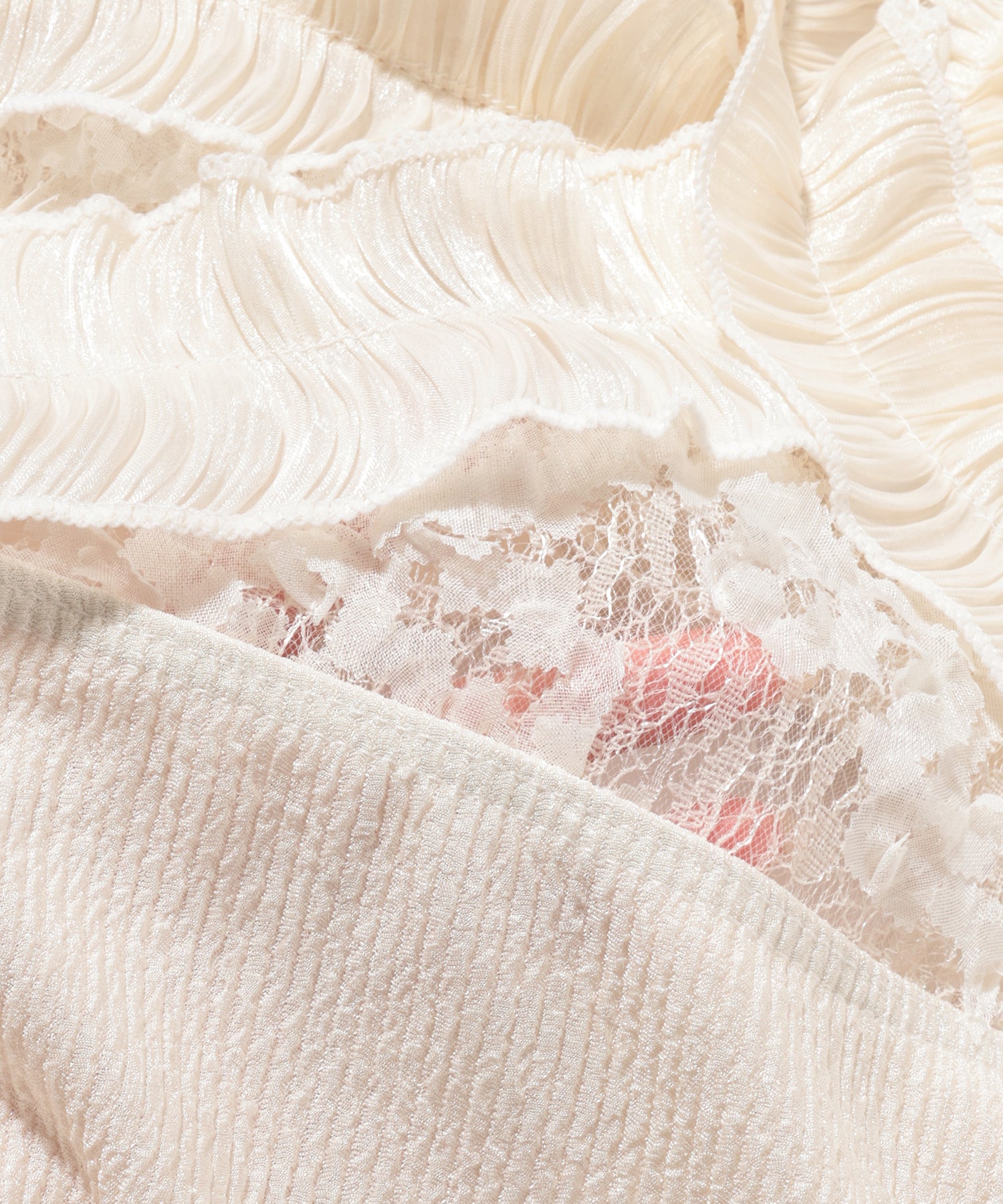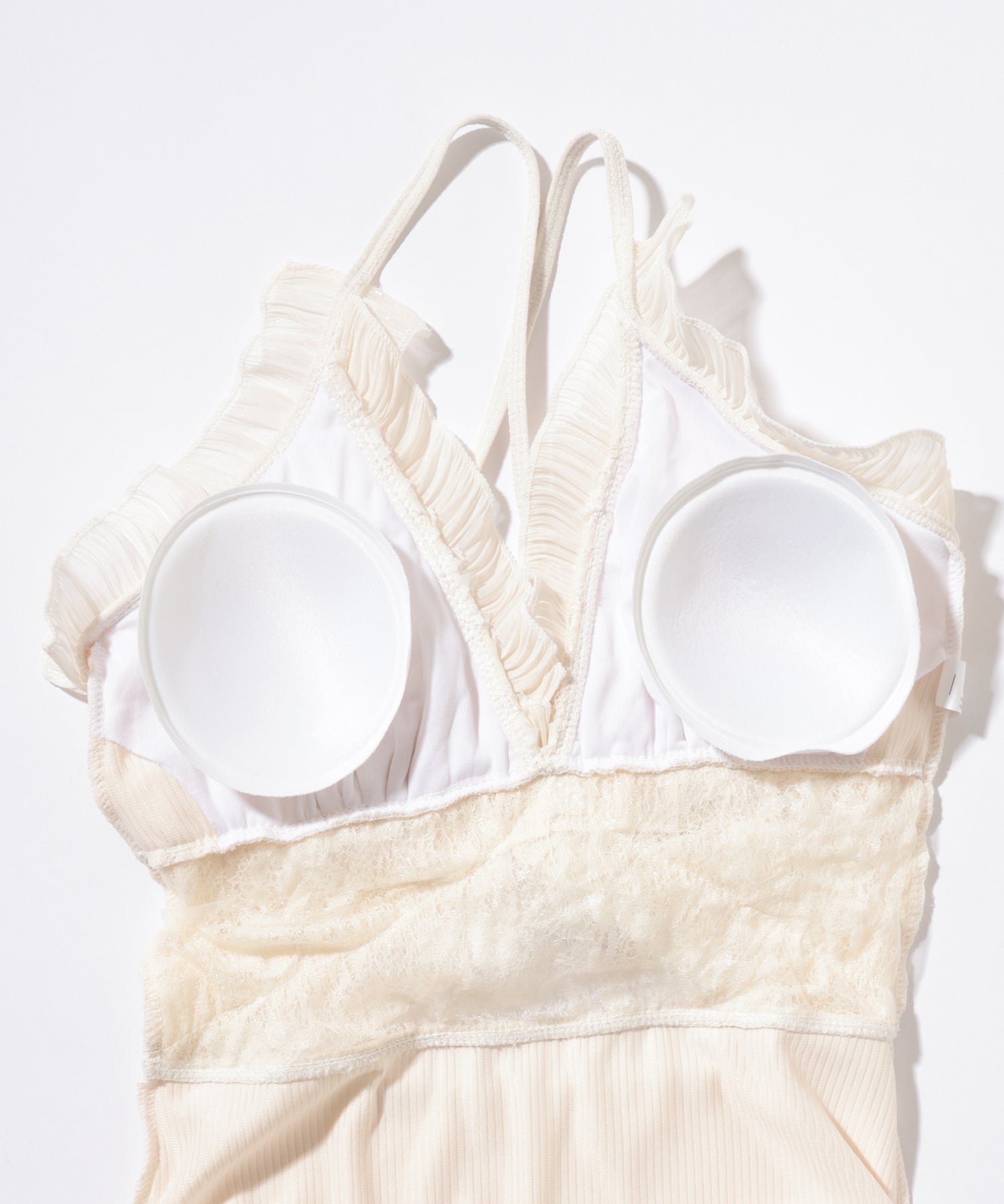 ショーツ部分にはカジュアル感を与えるリブ素材を使用しており、裾にフリルをあしらってスイートに表現しました。