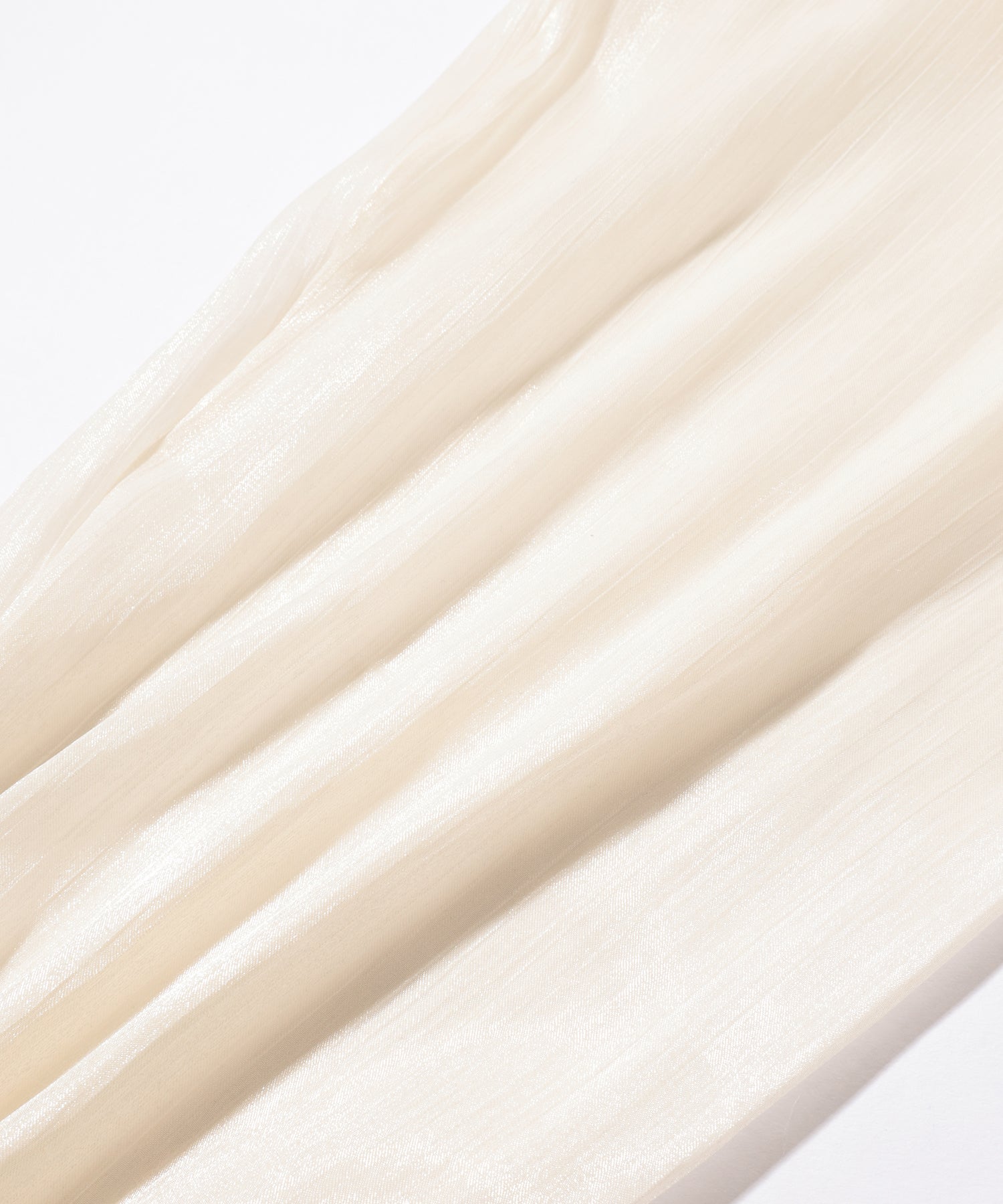 シャープなカッティングは胸元を美しく演出し、ほんのりと透ける肌によって抜け感のあるビーチルックを叶えます。