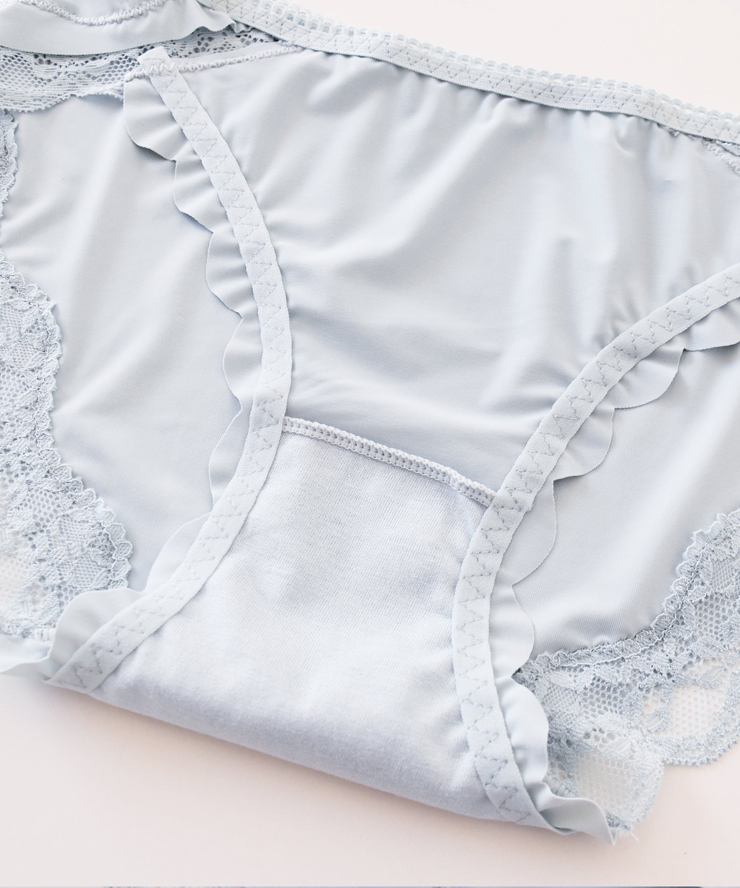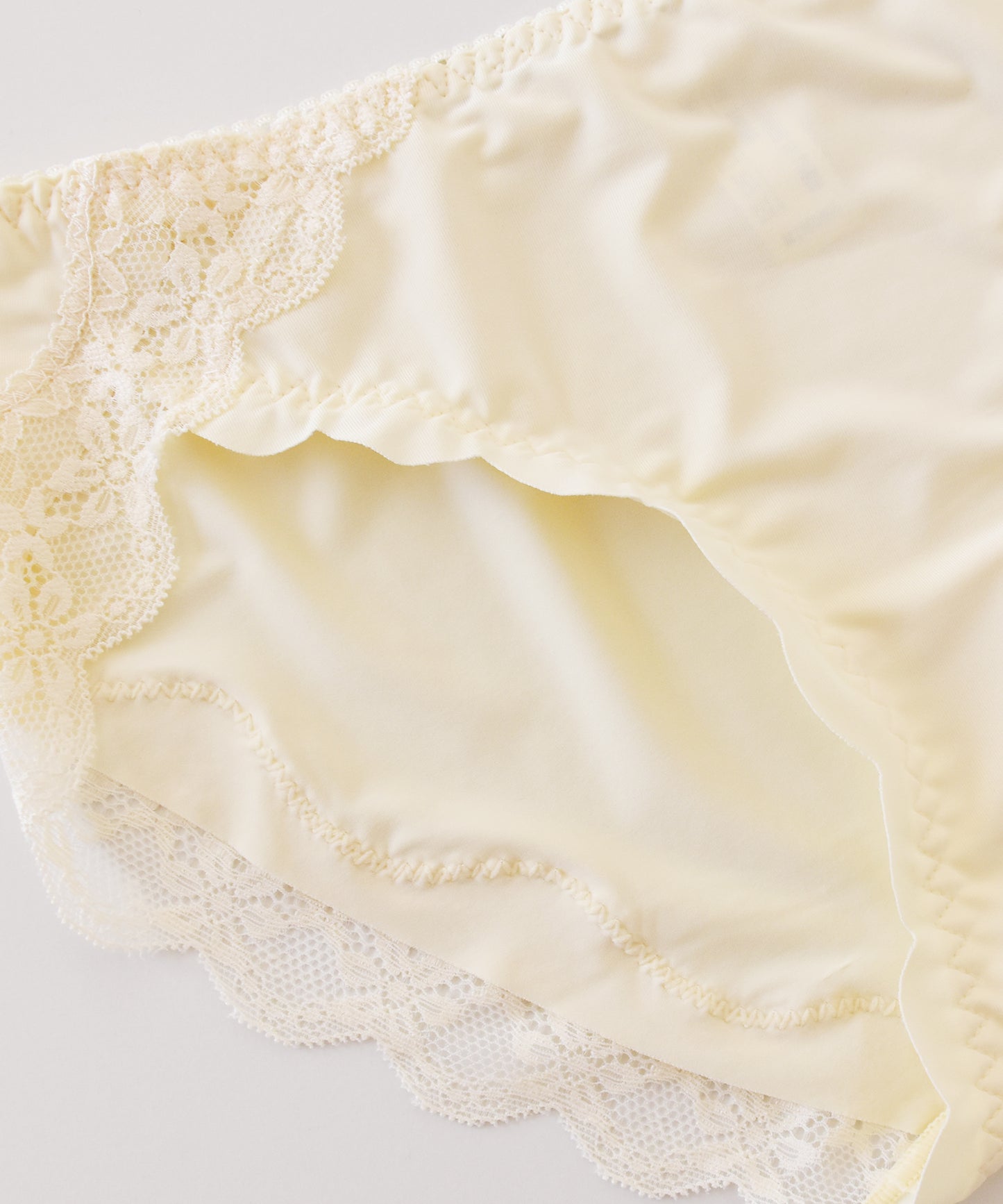 響きにくいスカラップレースとウェーブカット。食い込みや締め付け感が少なく肌に寄り添うフィット感。