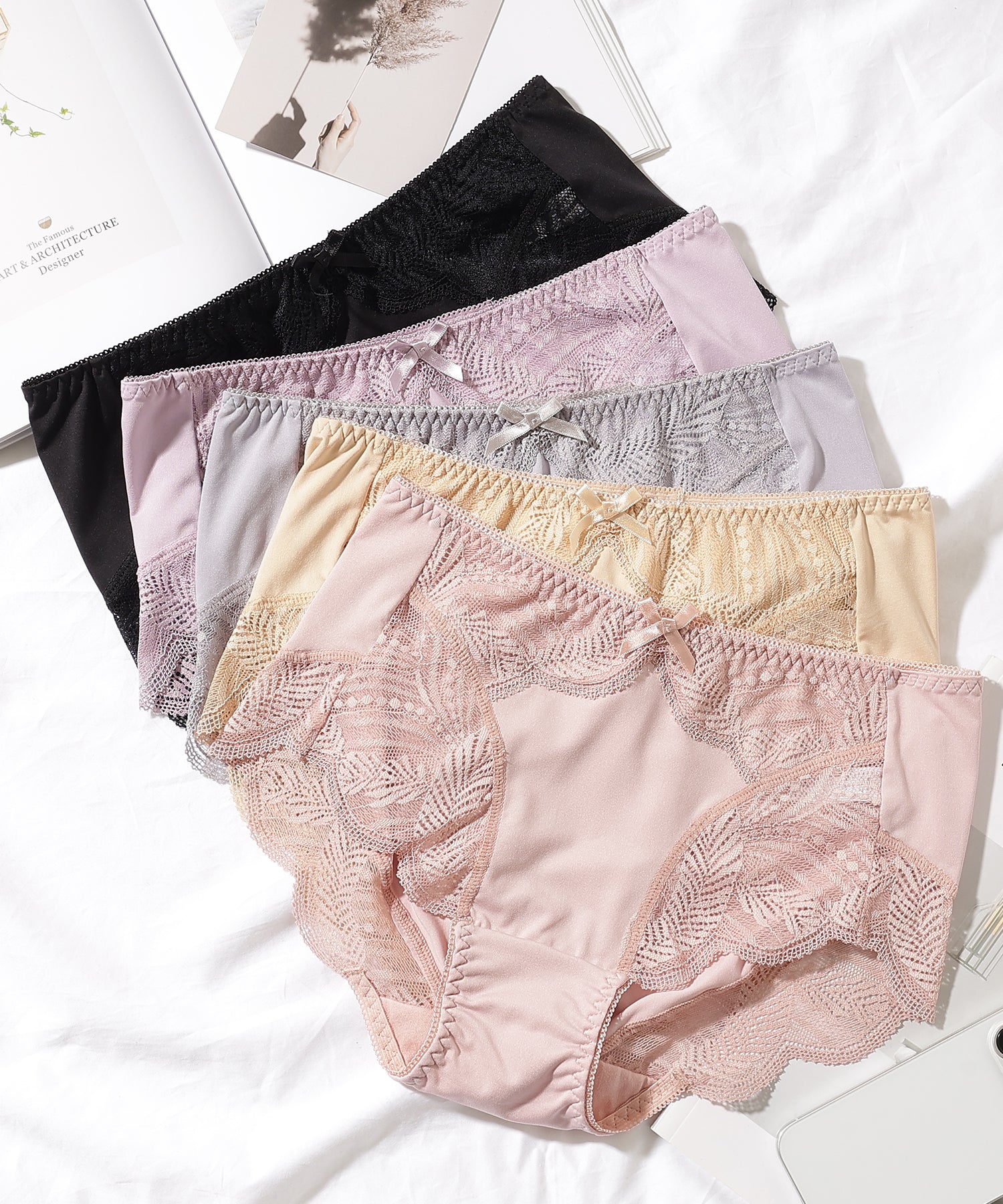 【5枚セット】ボタニカル柄スカラップレースドッキングショーツ