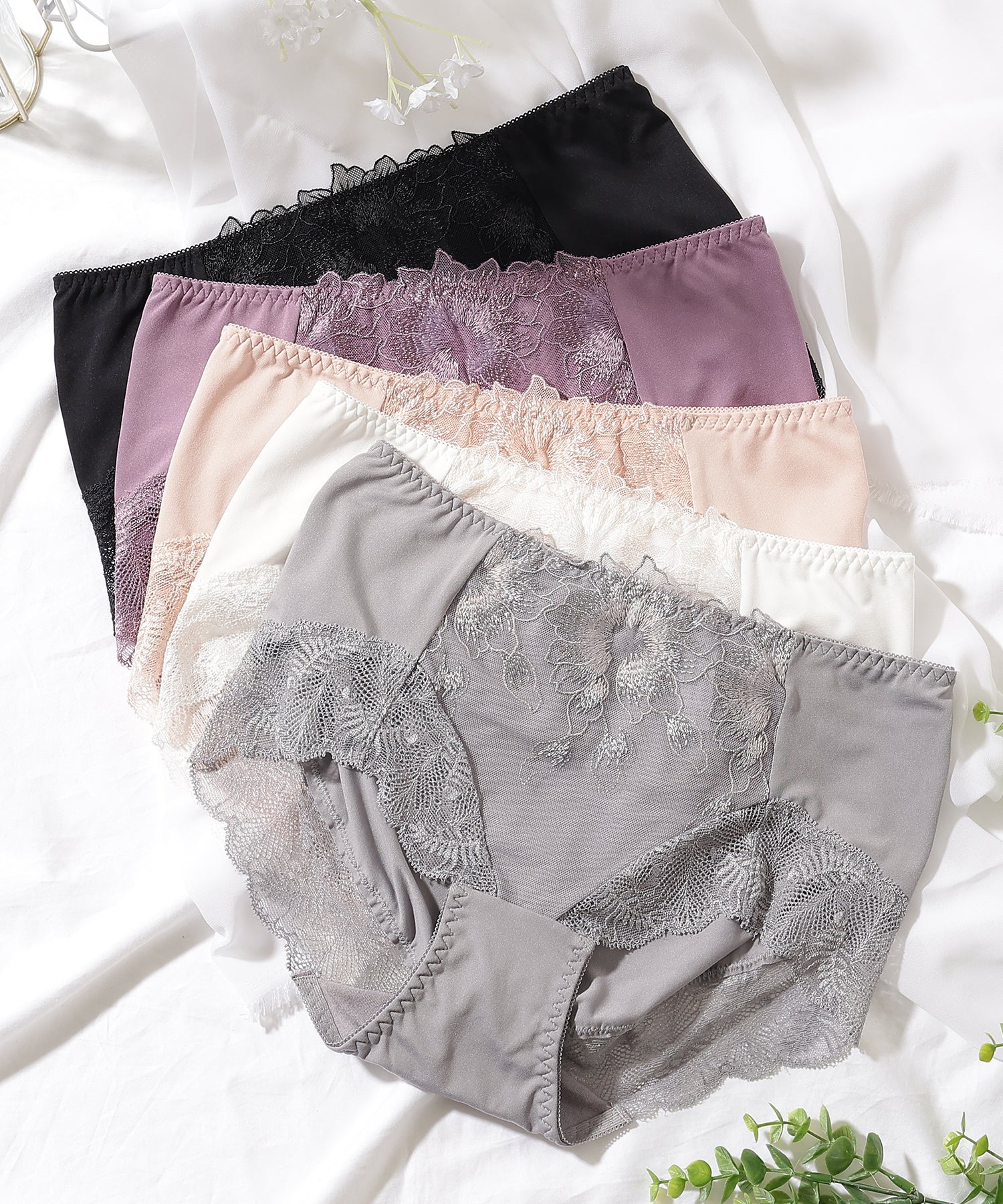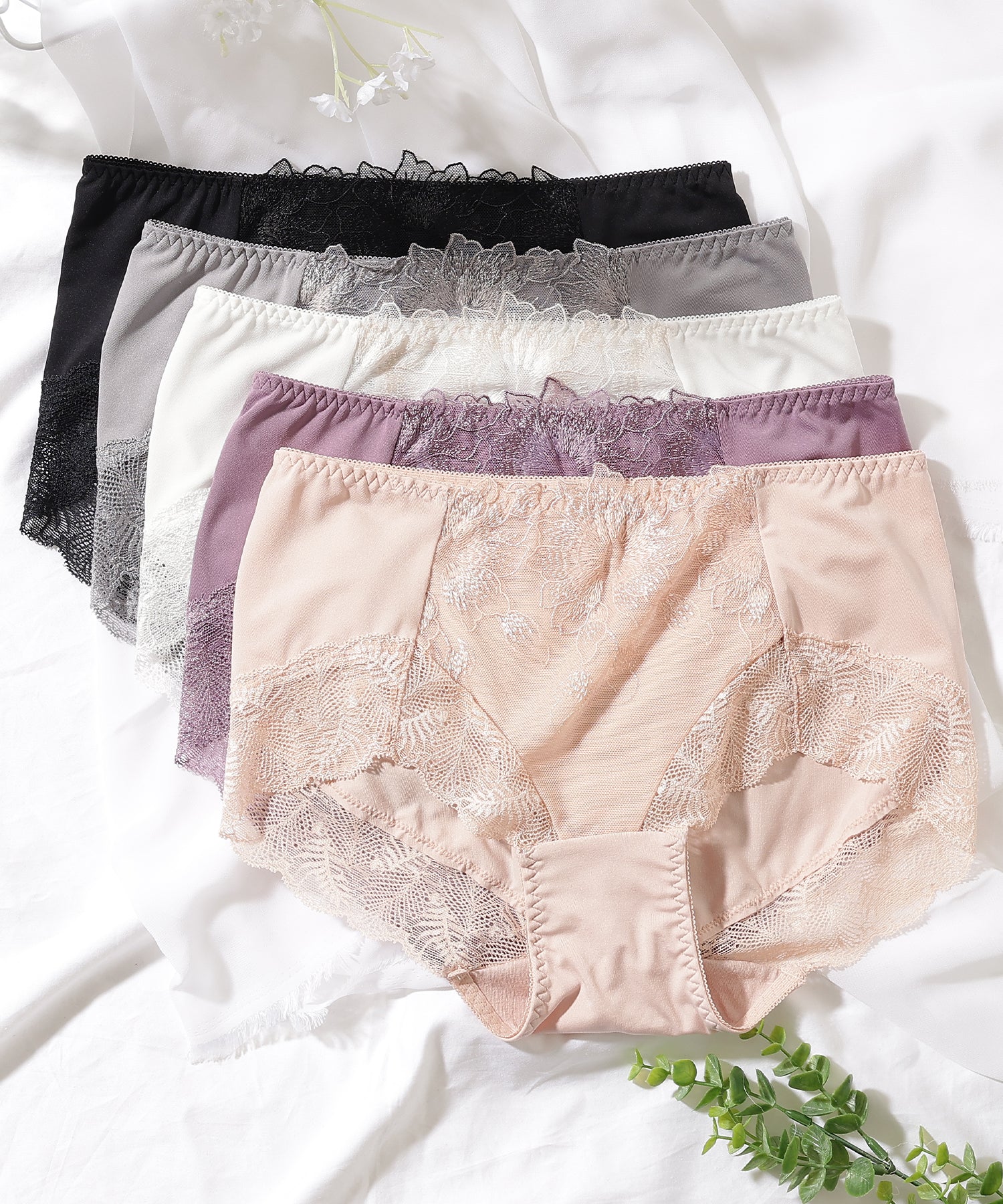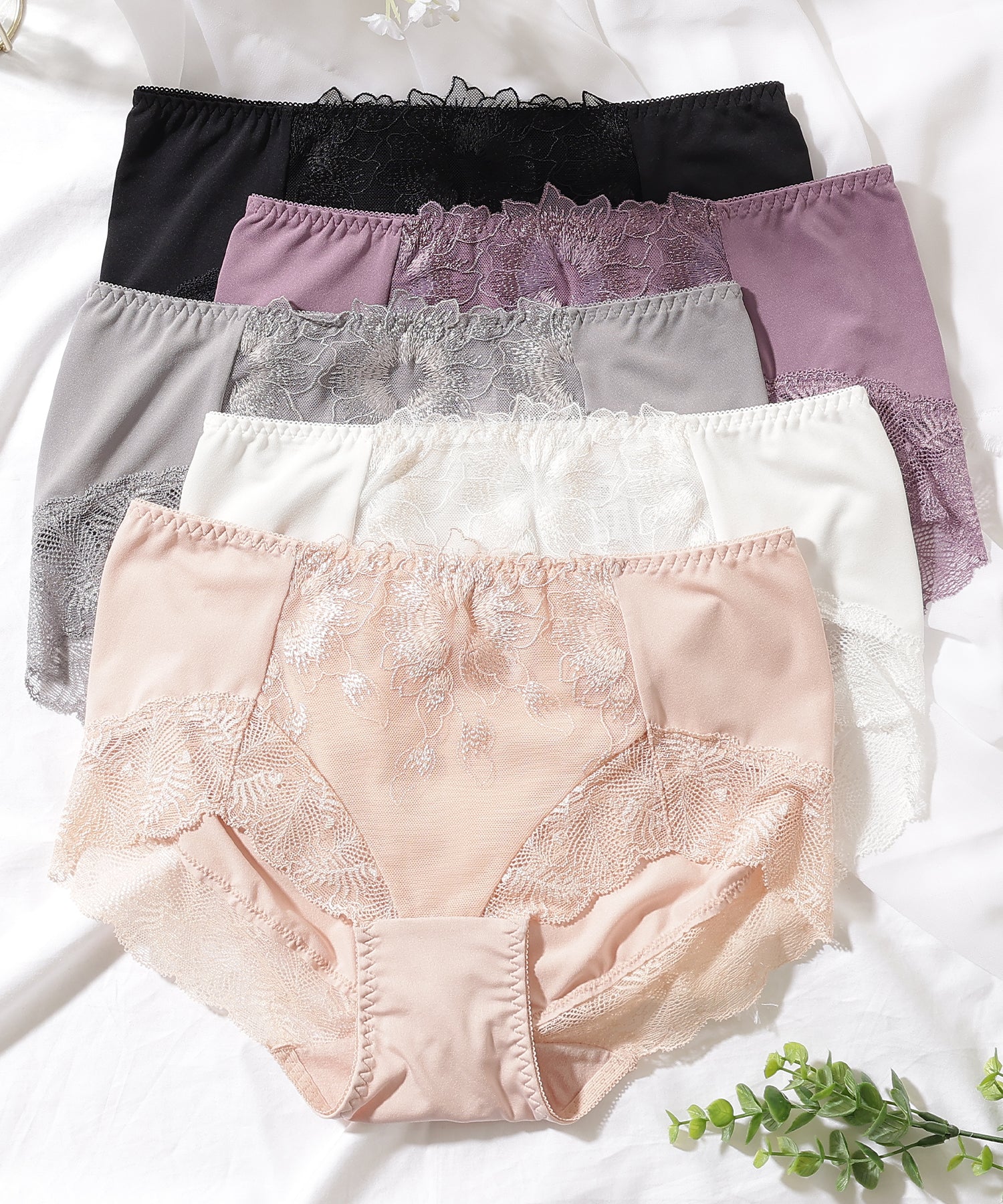 【5枚セット】ボタニカル刺繍レースドッキングショーツ