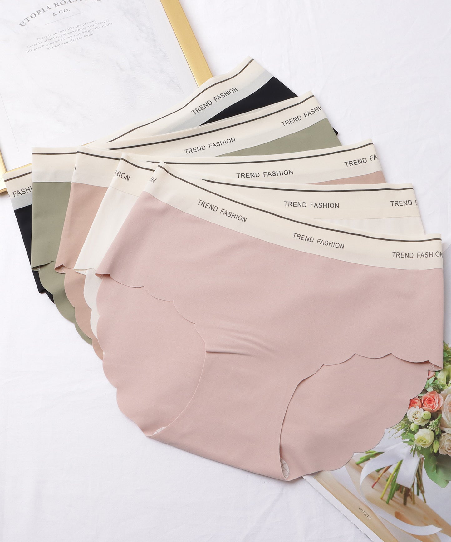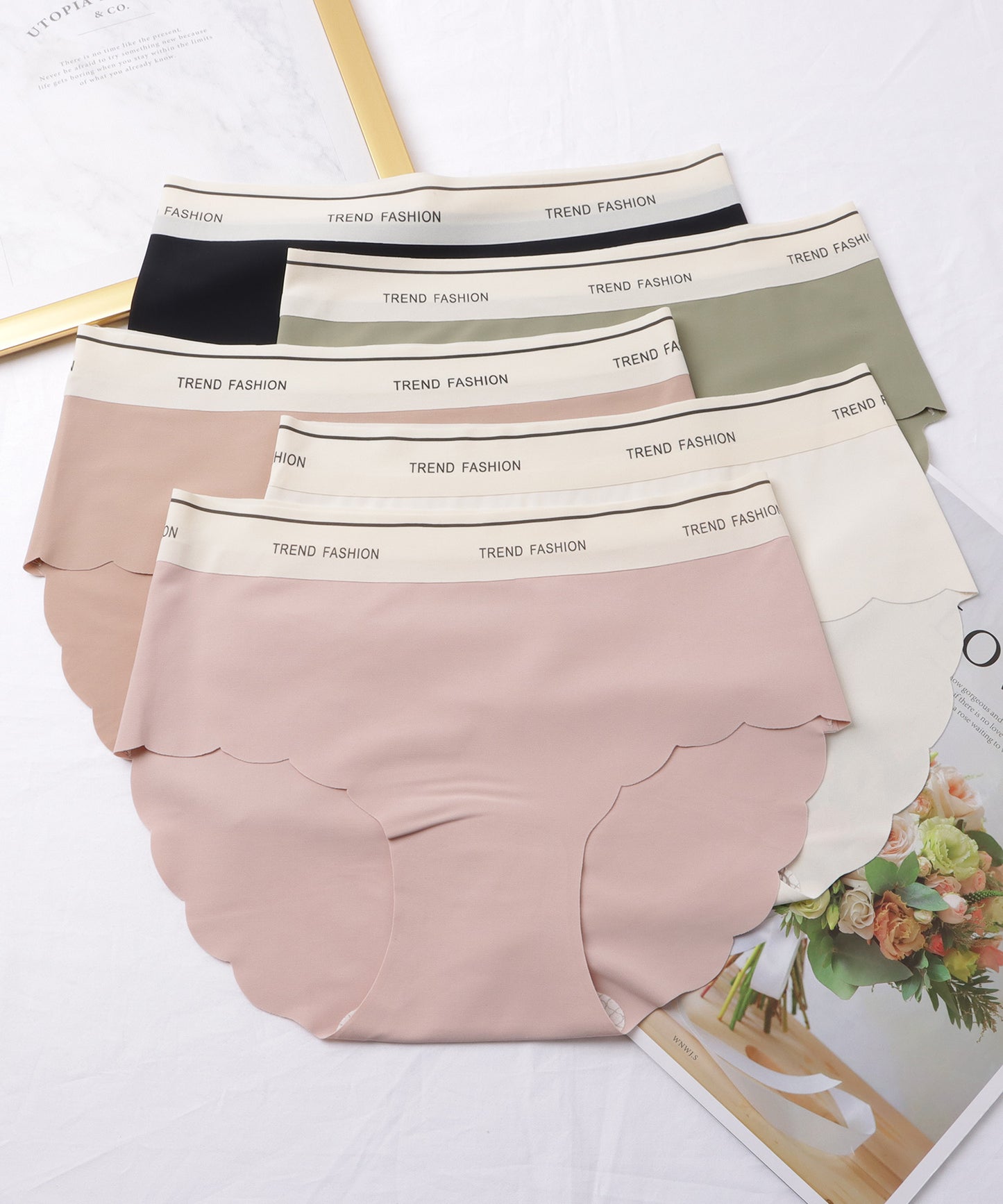 【5枚セット】配色 ライン スカラップ裾 シームレス ショーツ