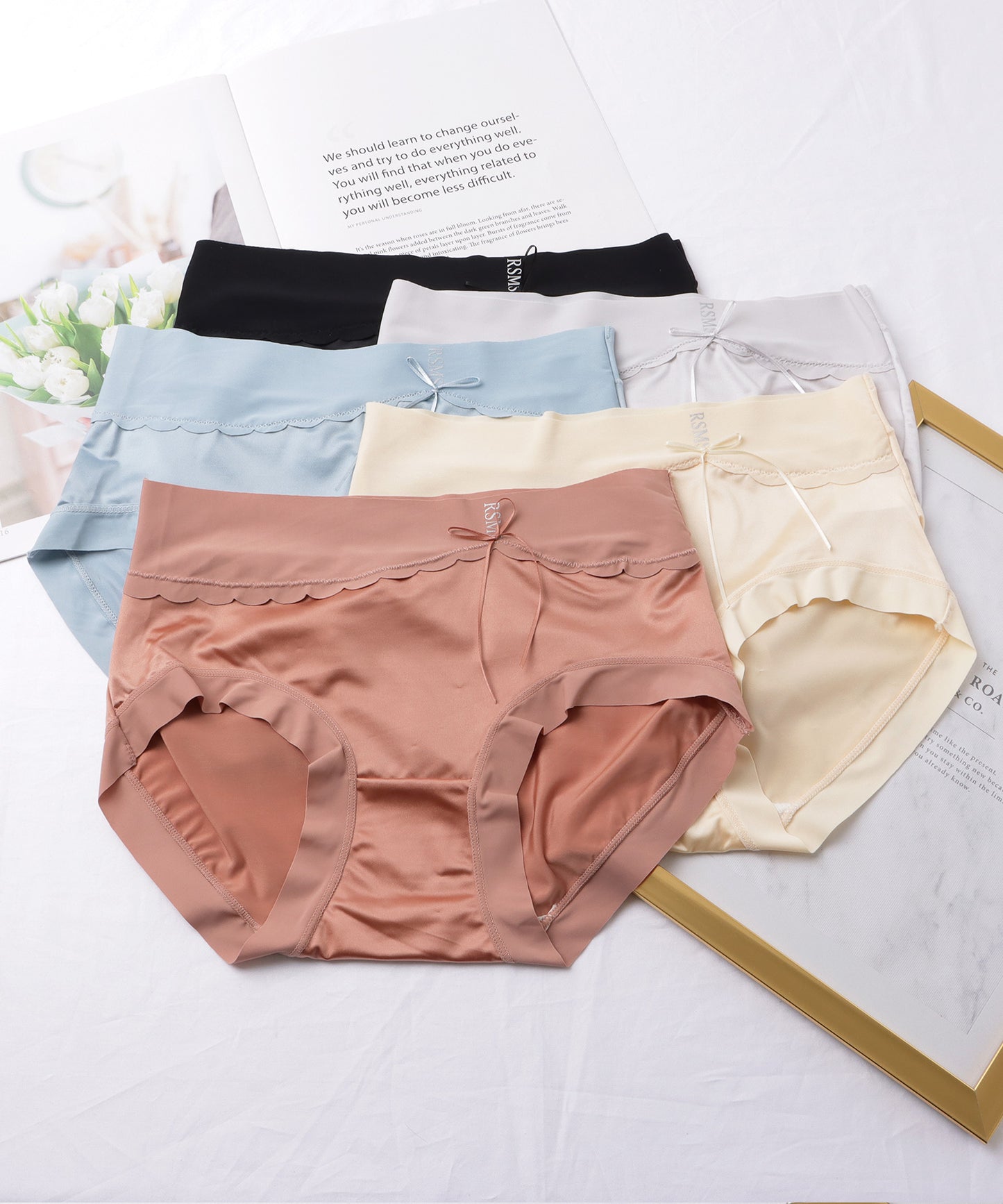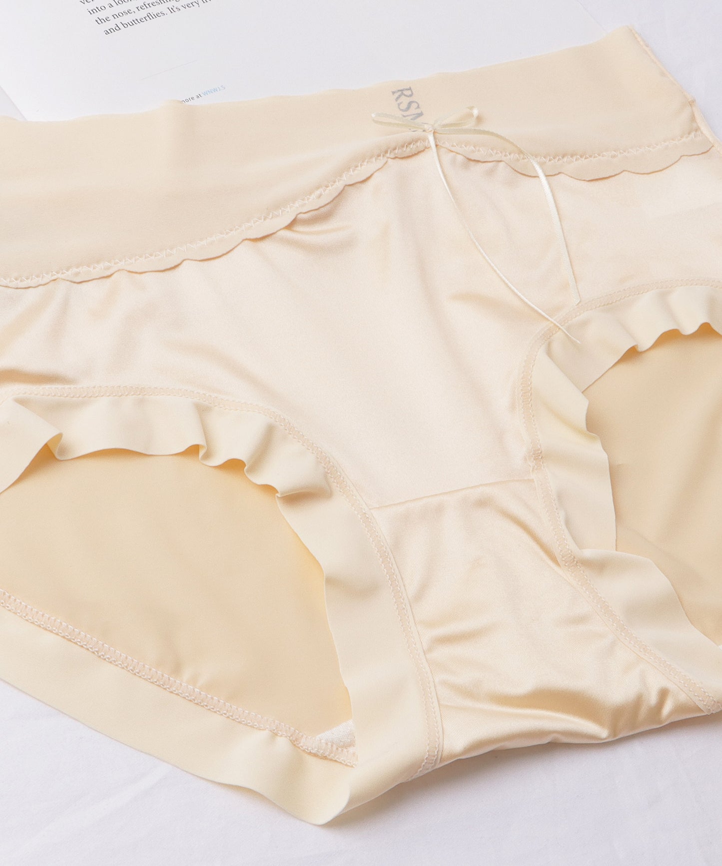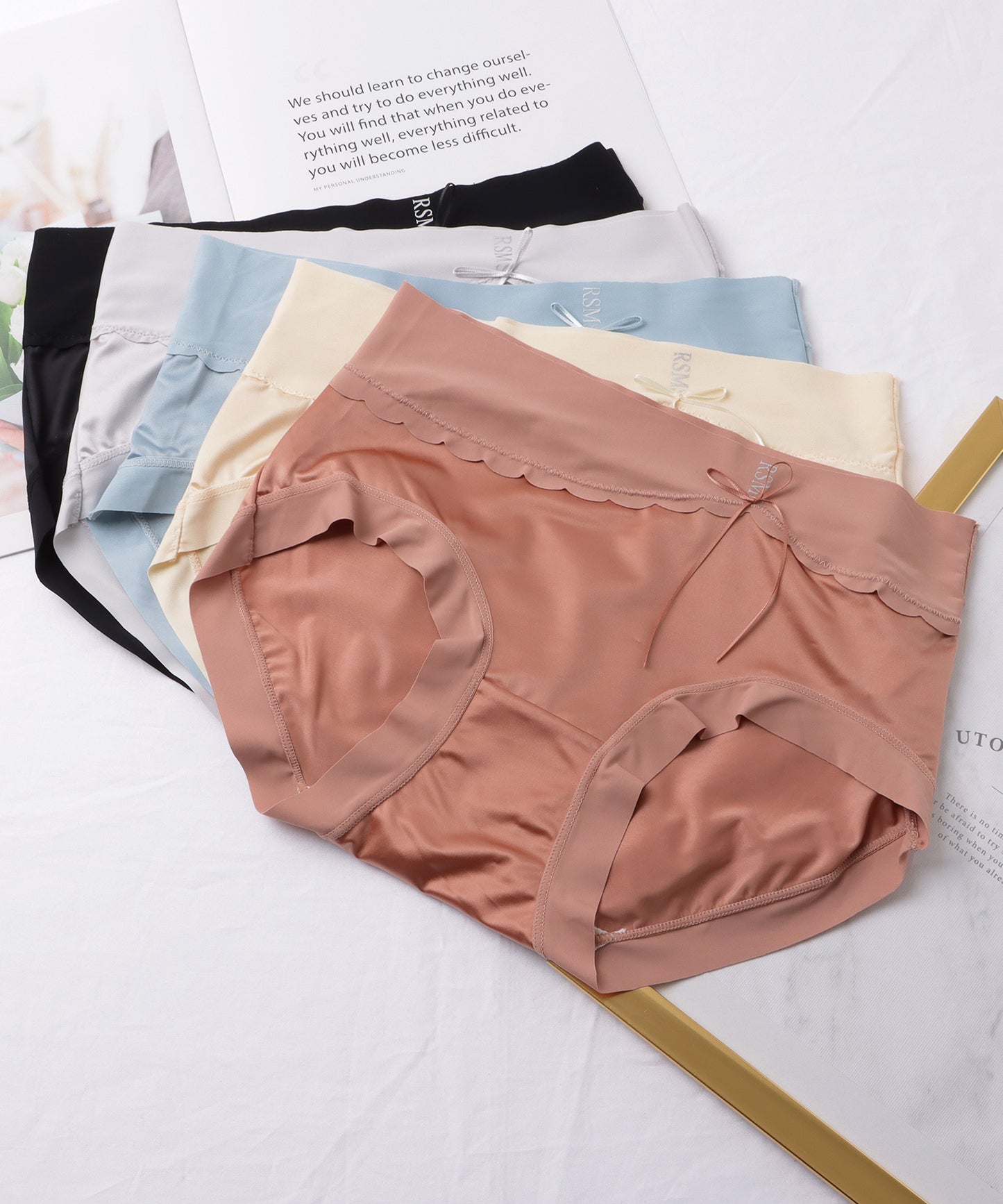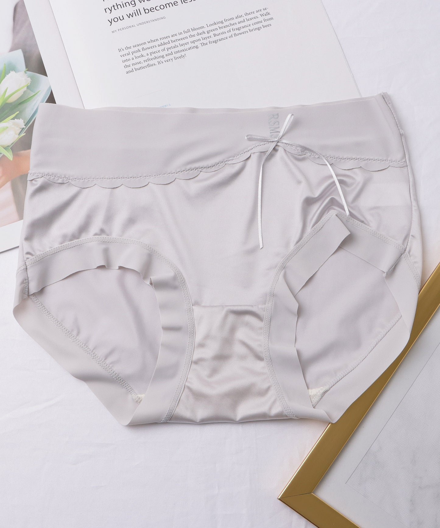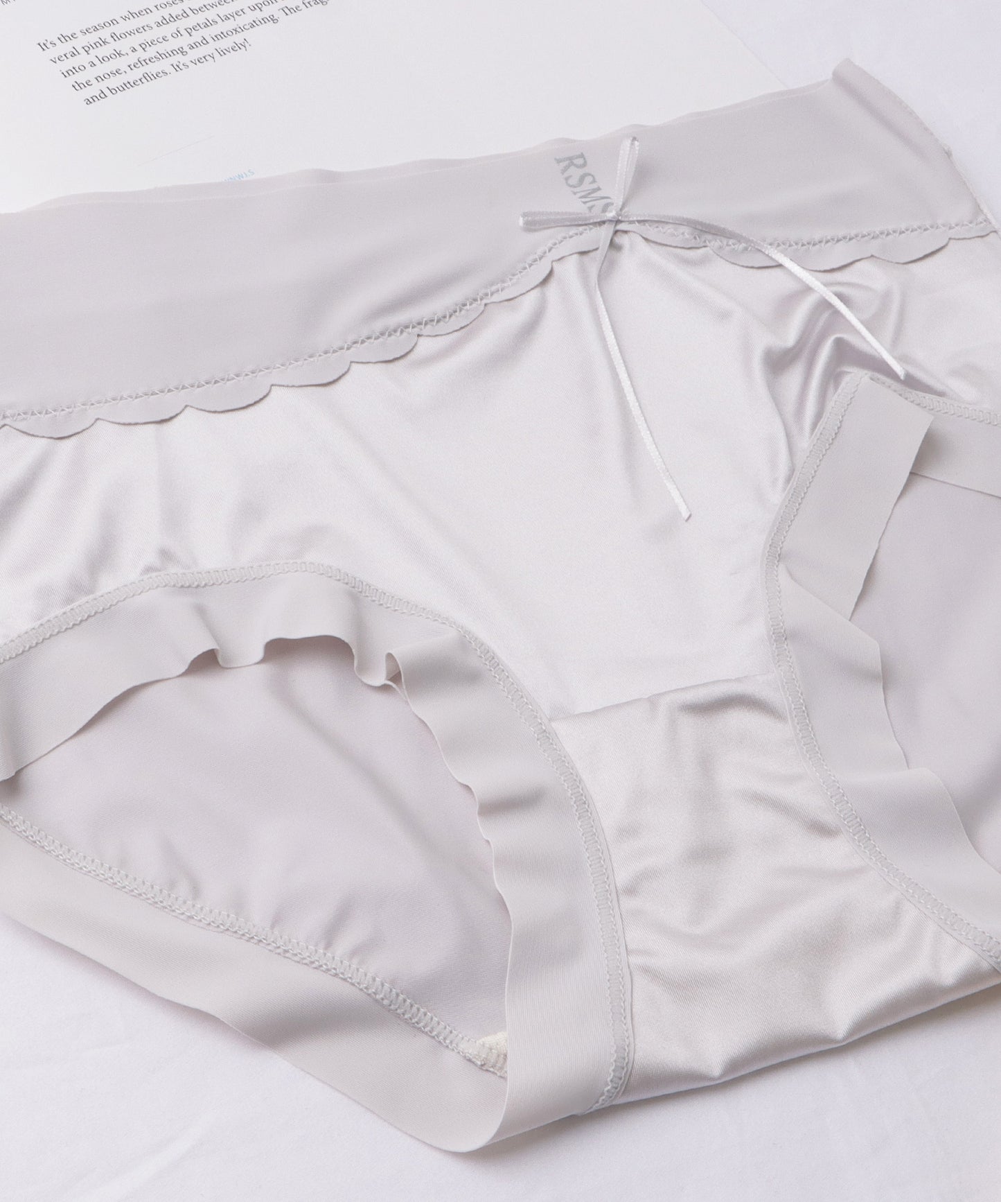 【5枚セット】リボン付き スカラップ サテン レギュラー ショーツ