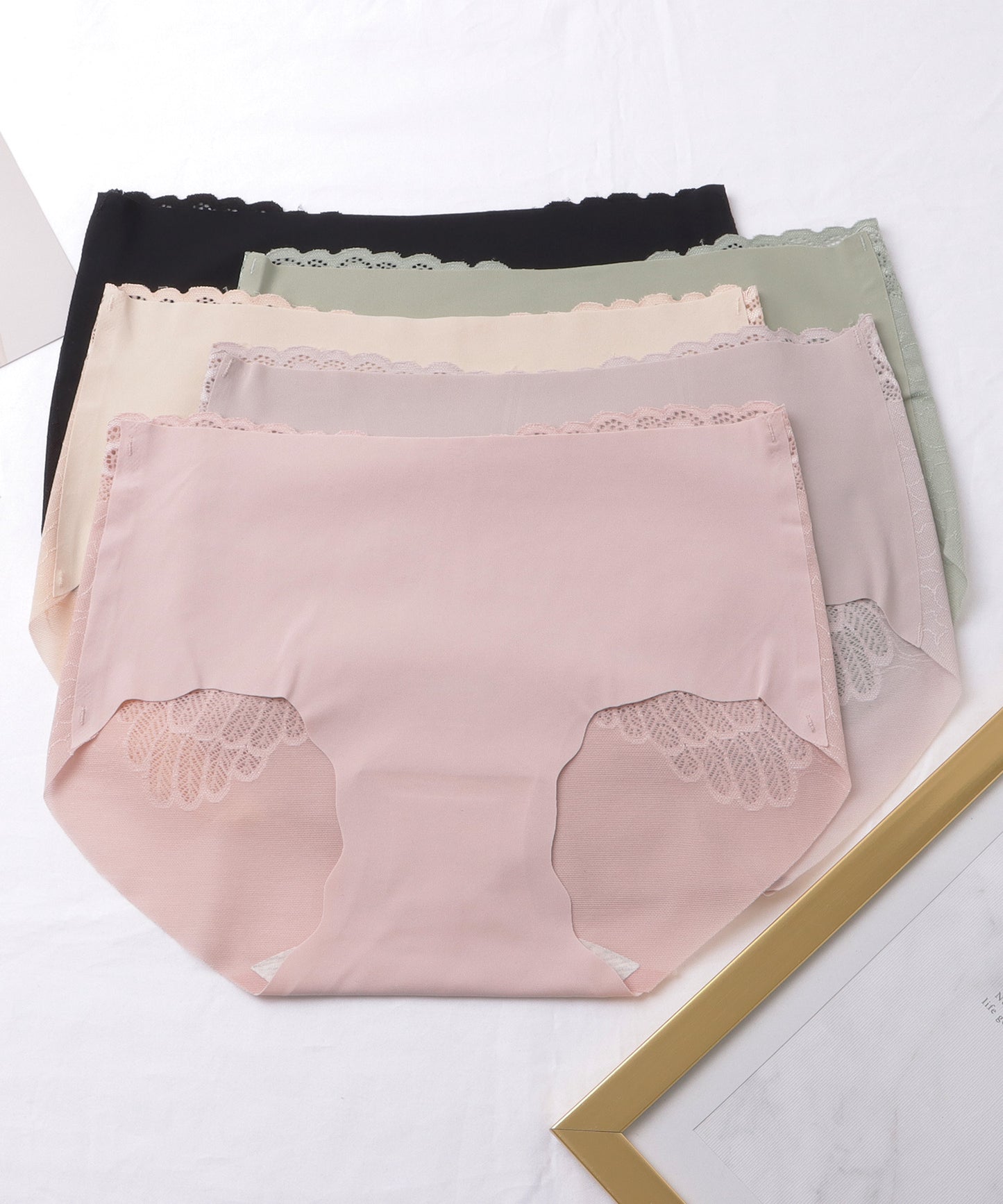 【5枚セット】バックレース ウエーブ裾 シームレス ショーツ