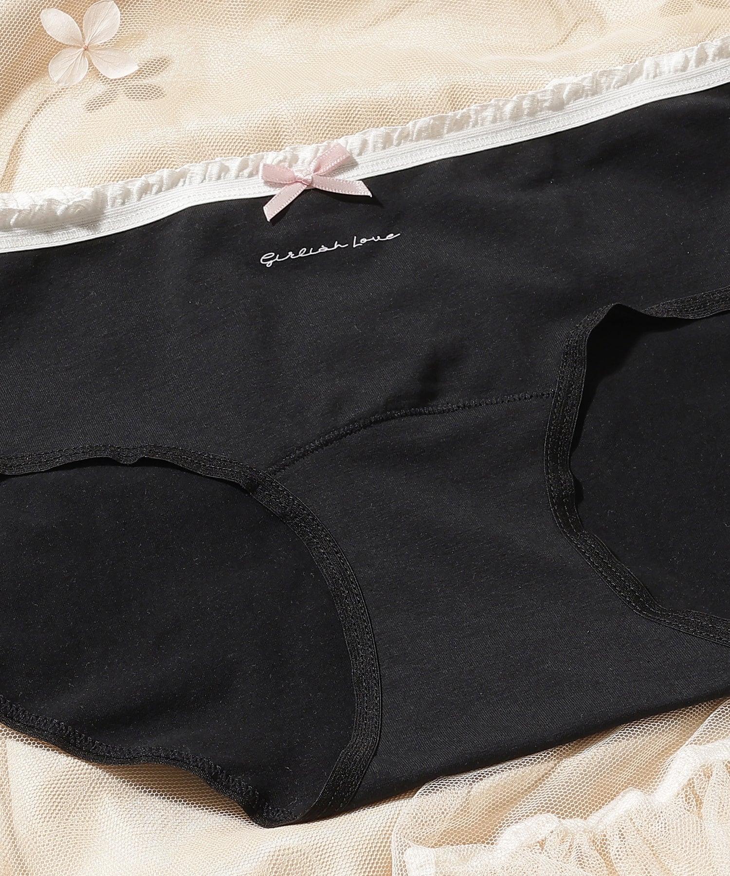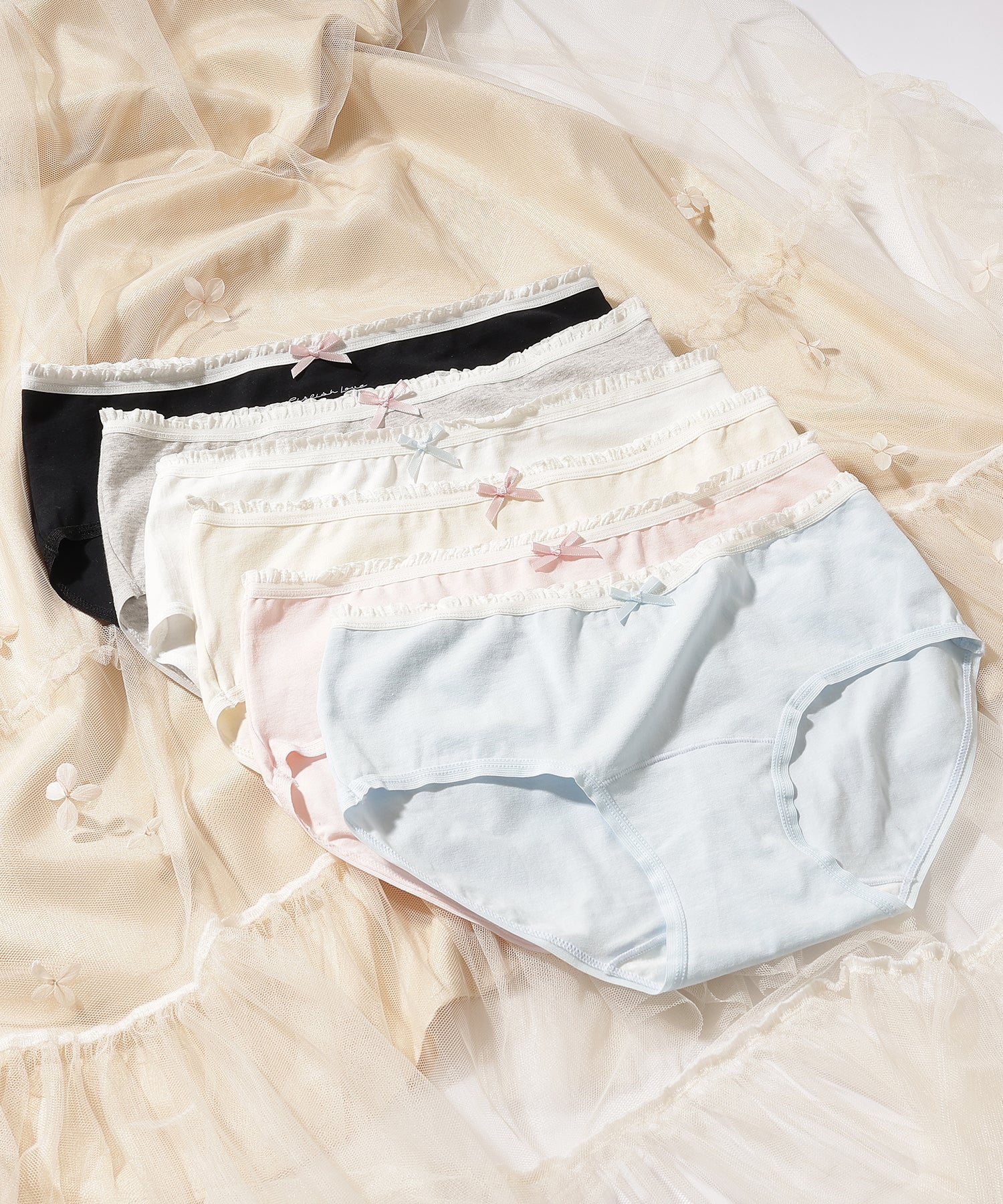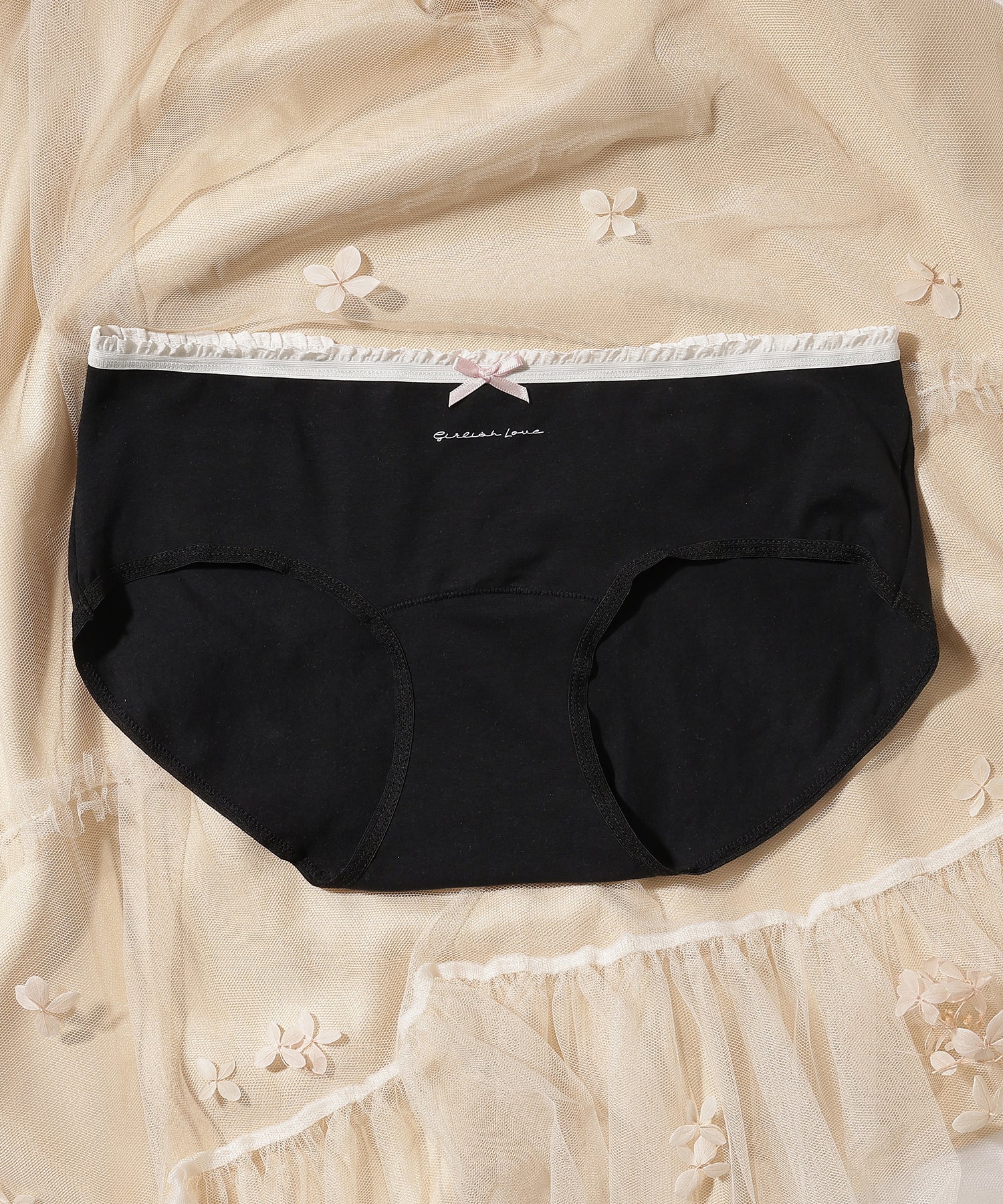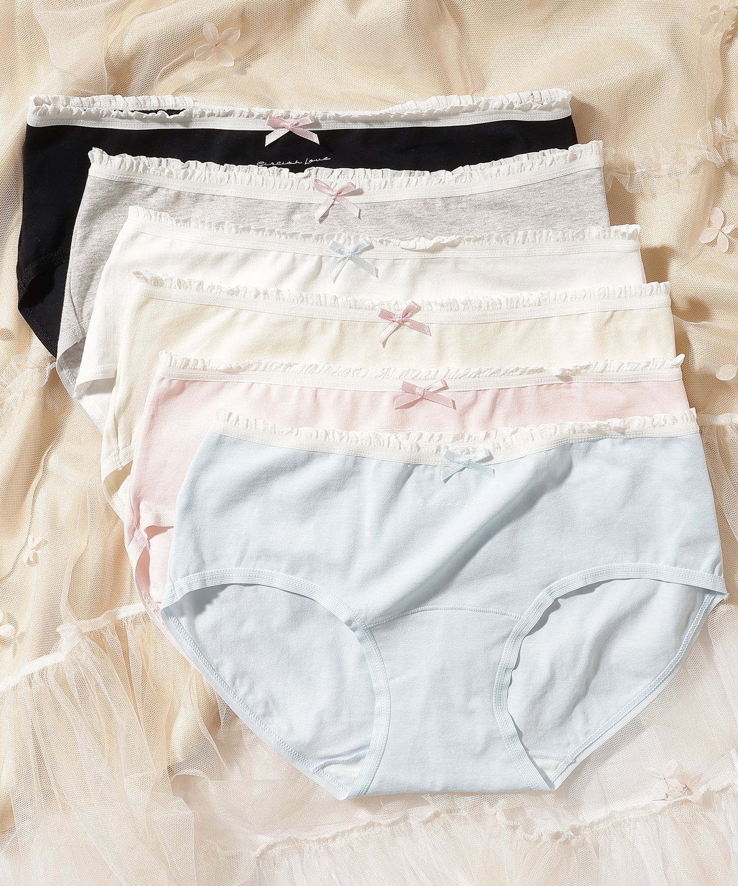 【6枚セット】配色 フリル リボン付き ショーツ
