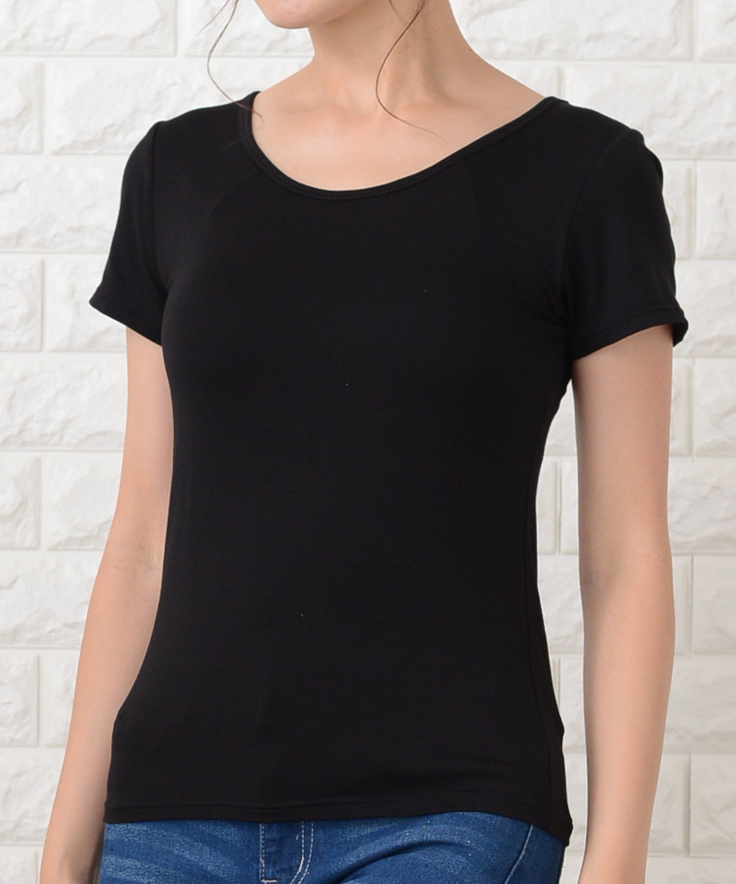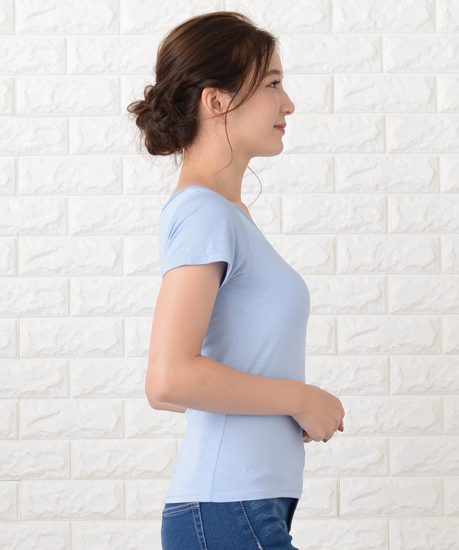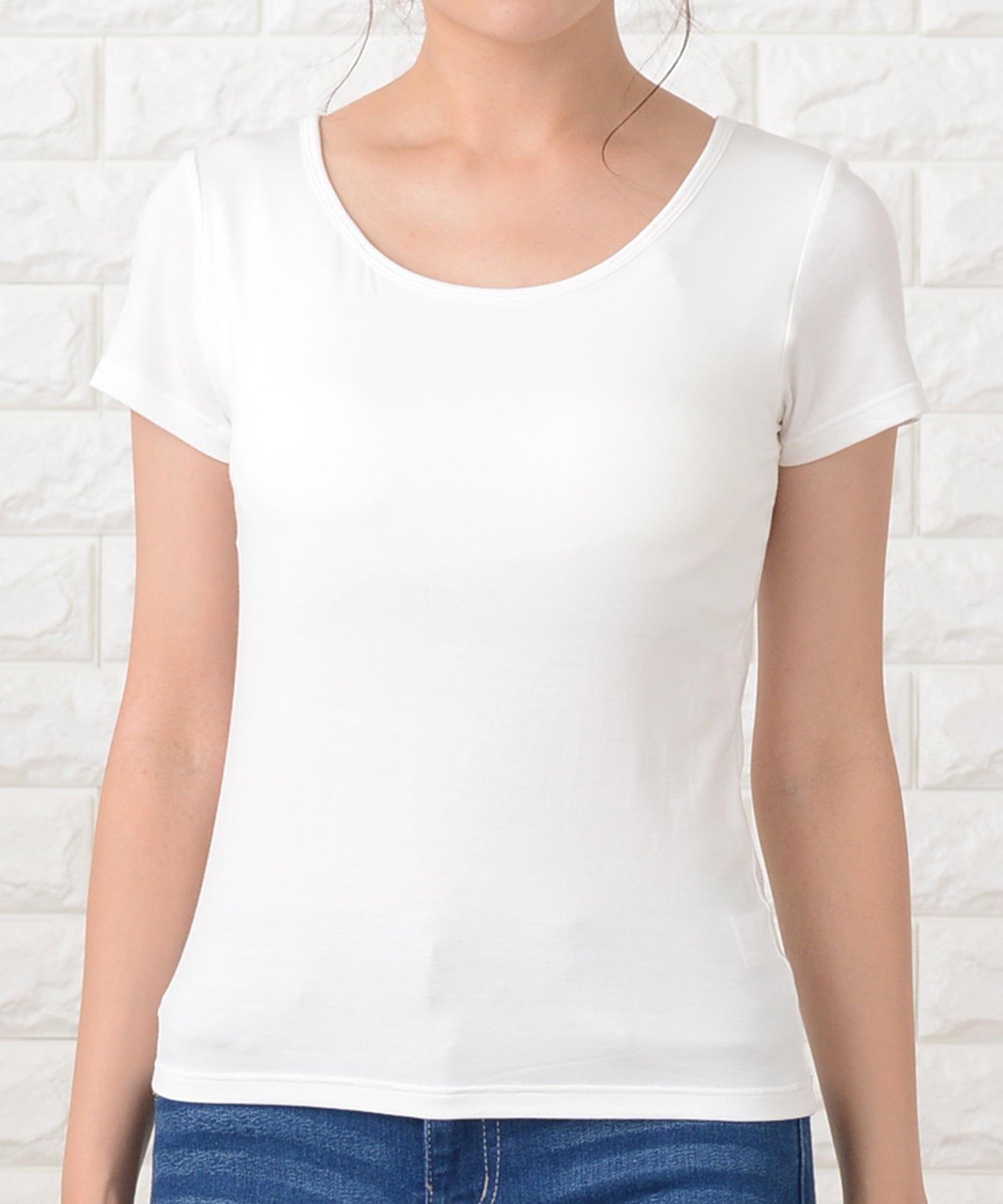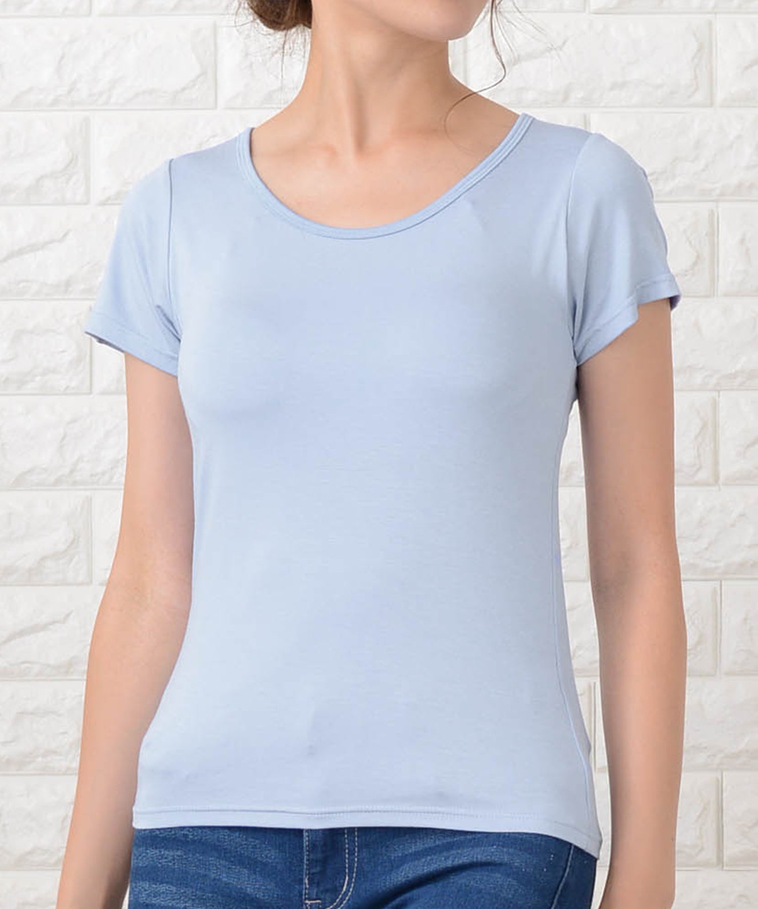 サラサラの肌触りが心地いい!シンプルで使いやすいカップ付半袖Tシャツです。