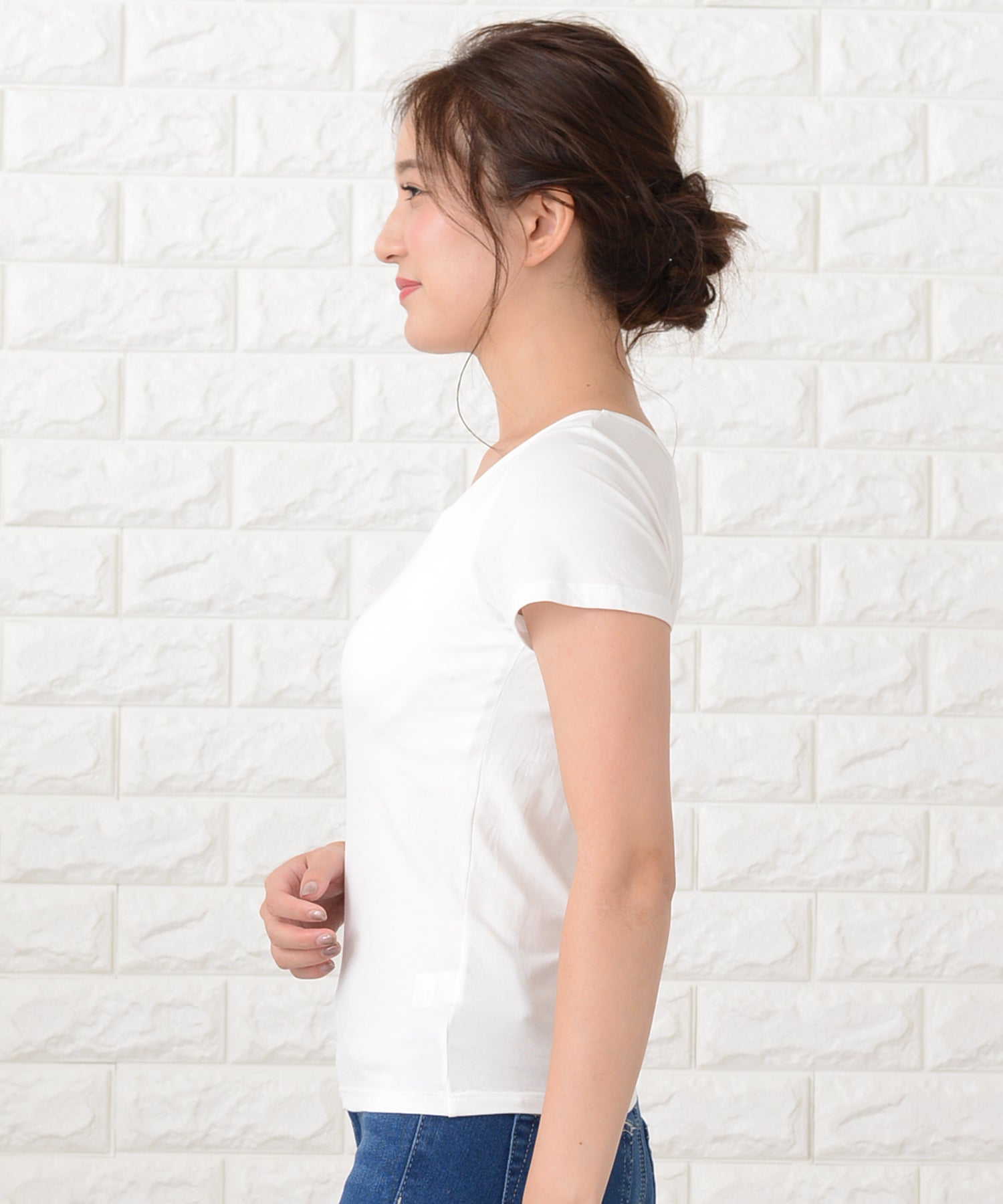 これ一枚で着るのはもちろん、襟ぐりが広めなUネックなので、インナーとして使っても◎