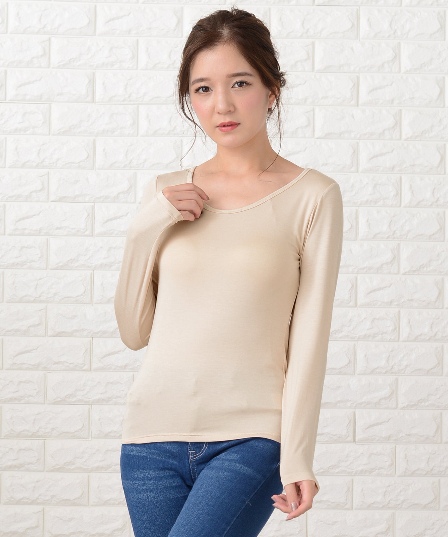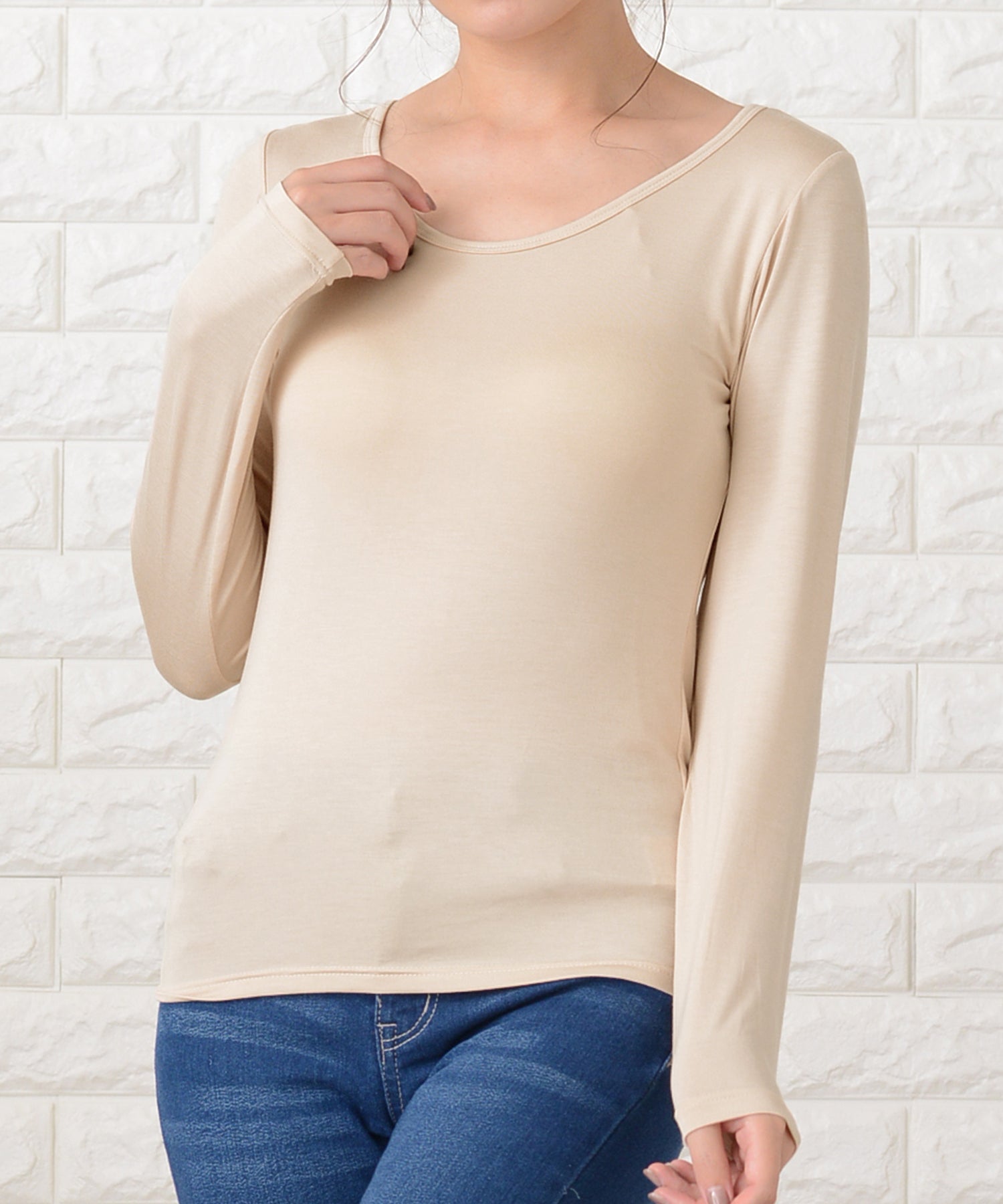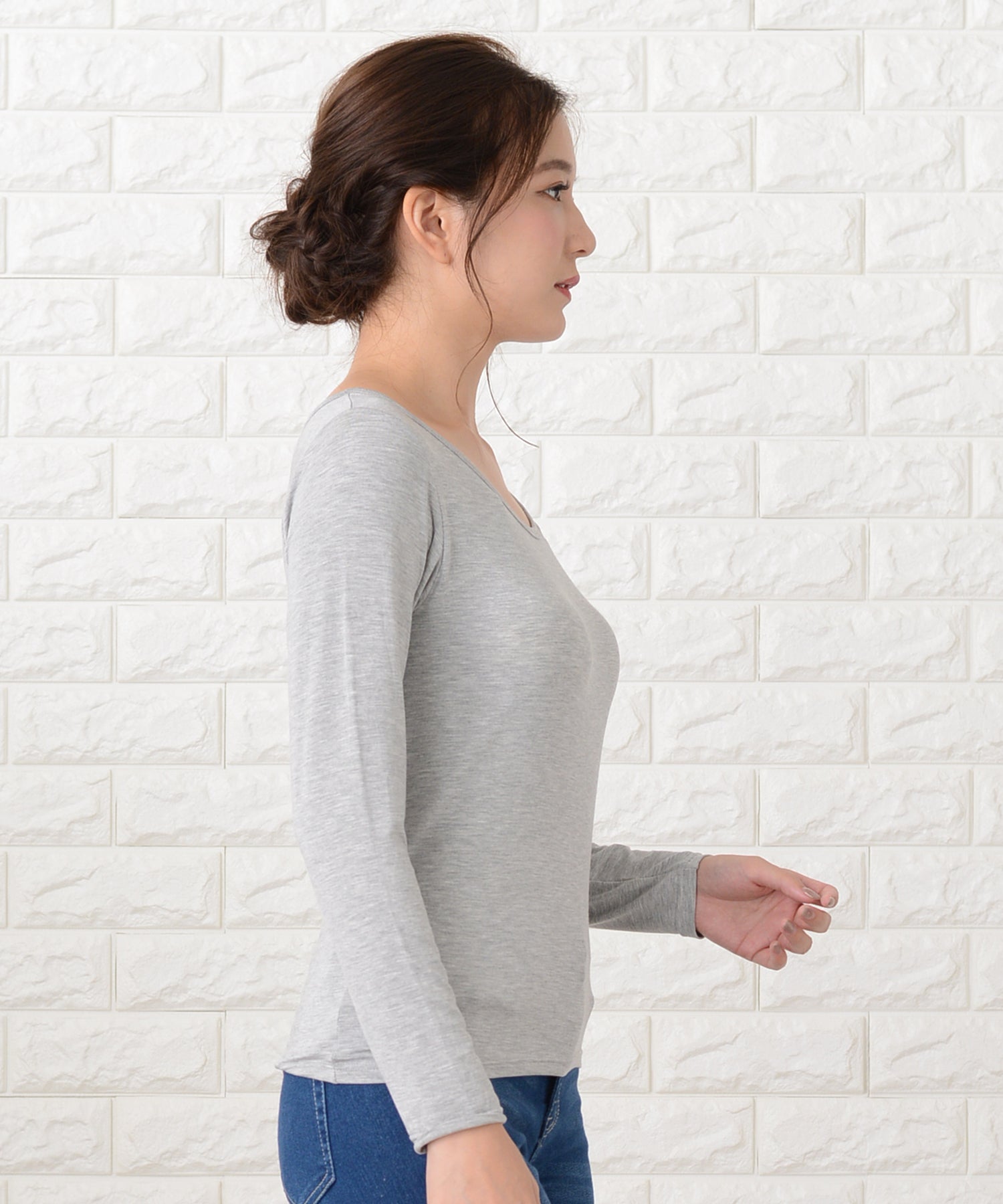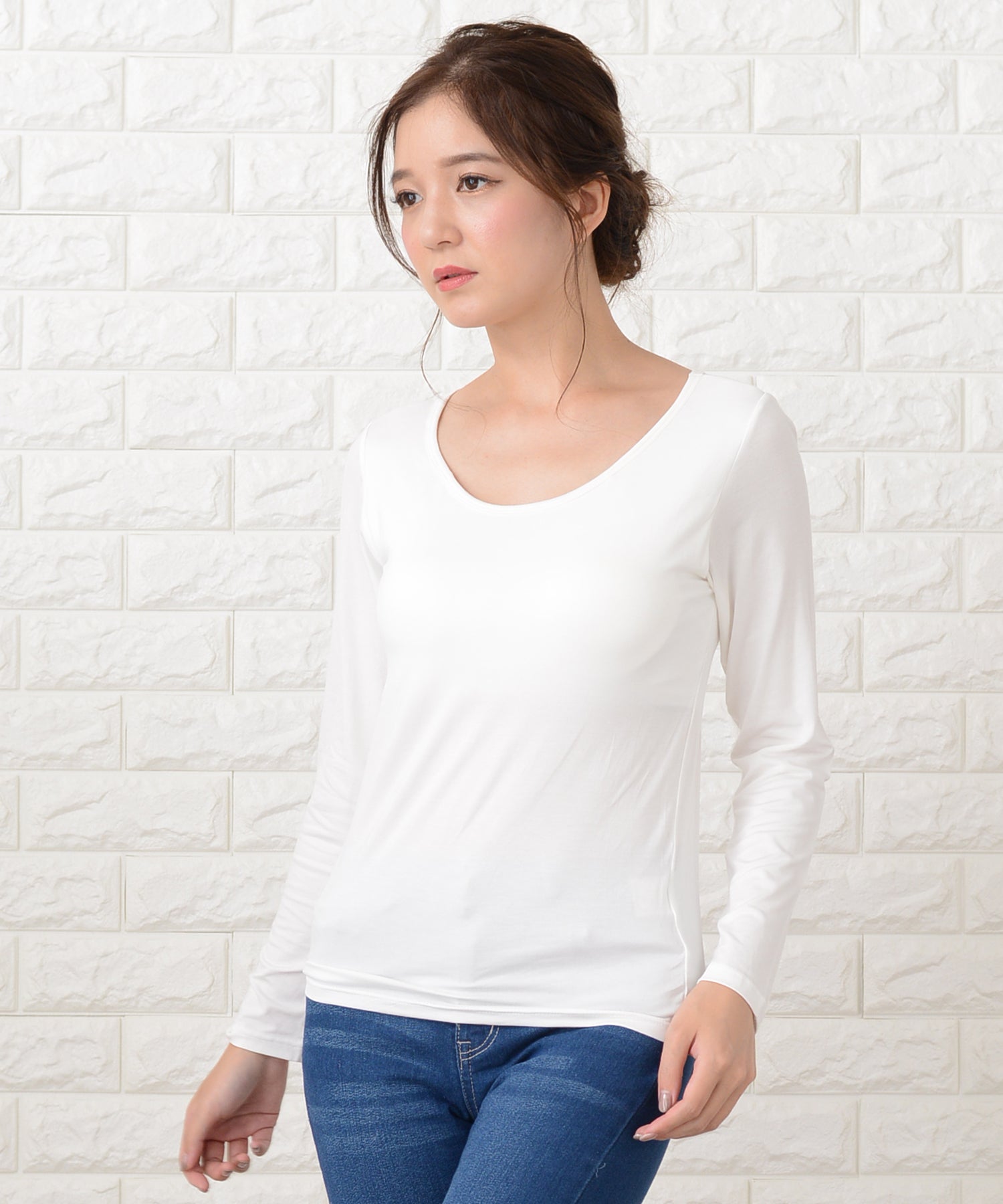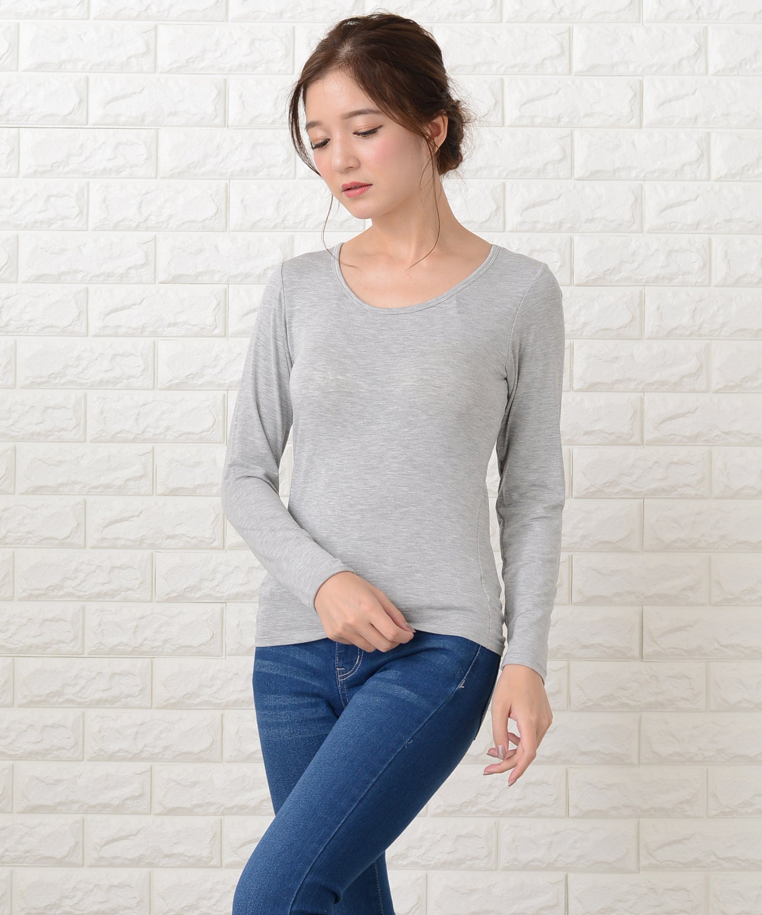 サラサラの肌触りが心地いいカップ付長袖Tシャツです。