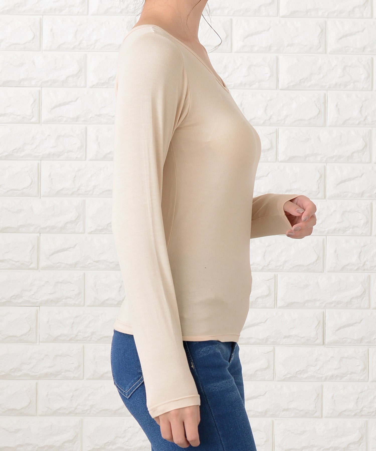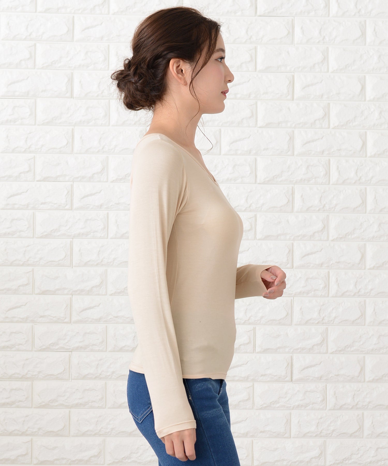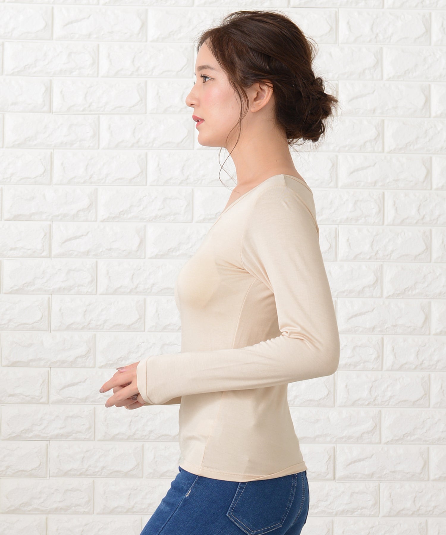 襟ぐりが広めのデザインなのでインナーとして使っても◎