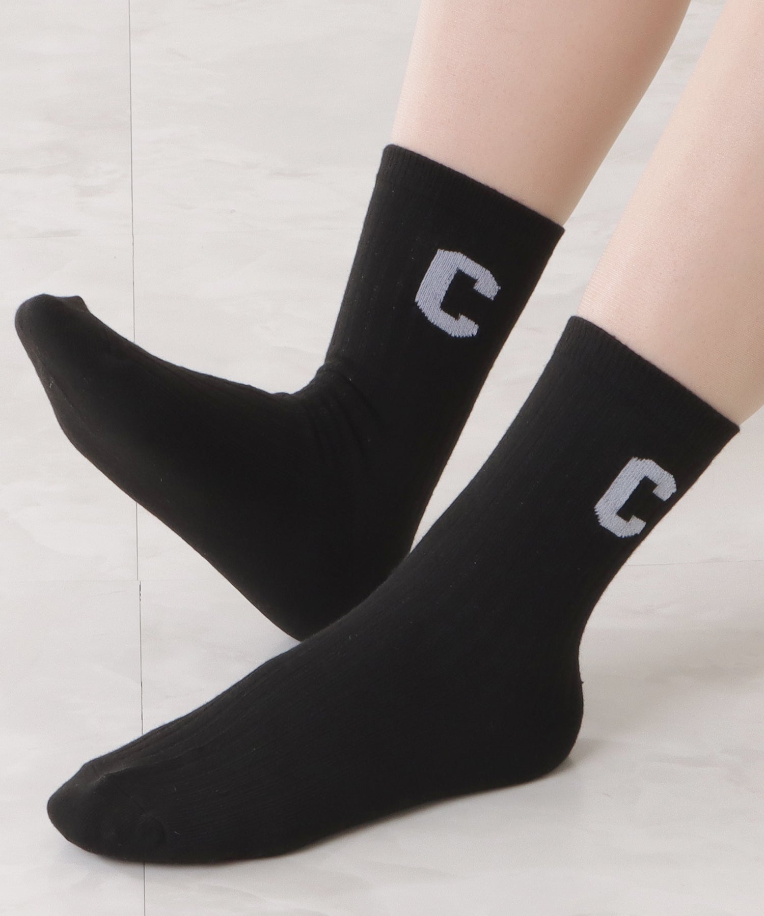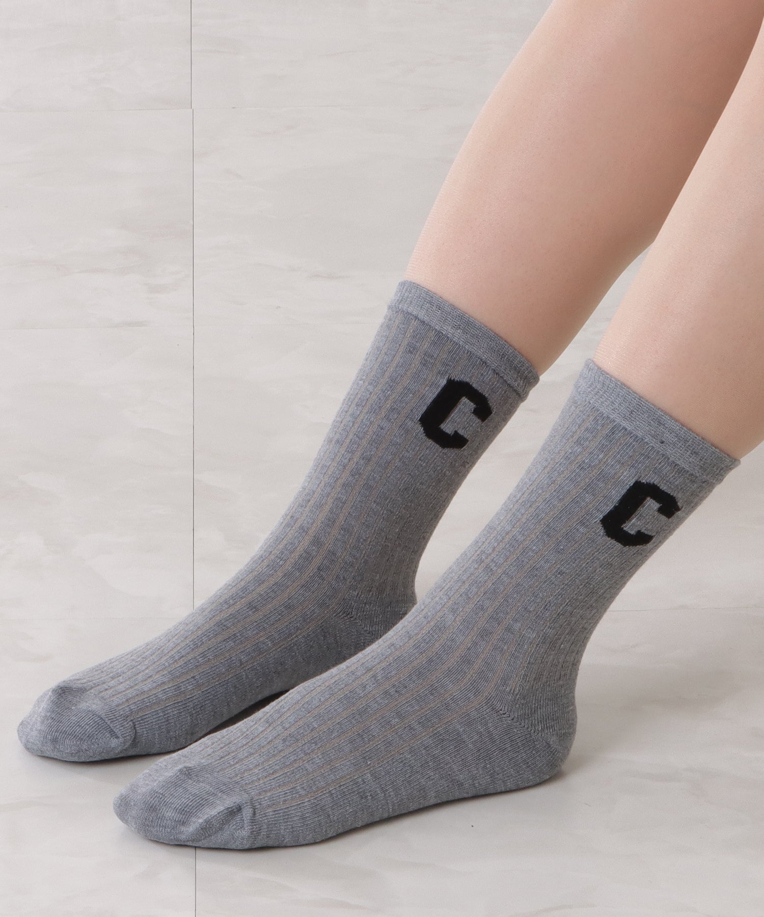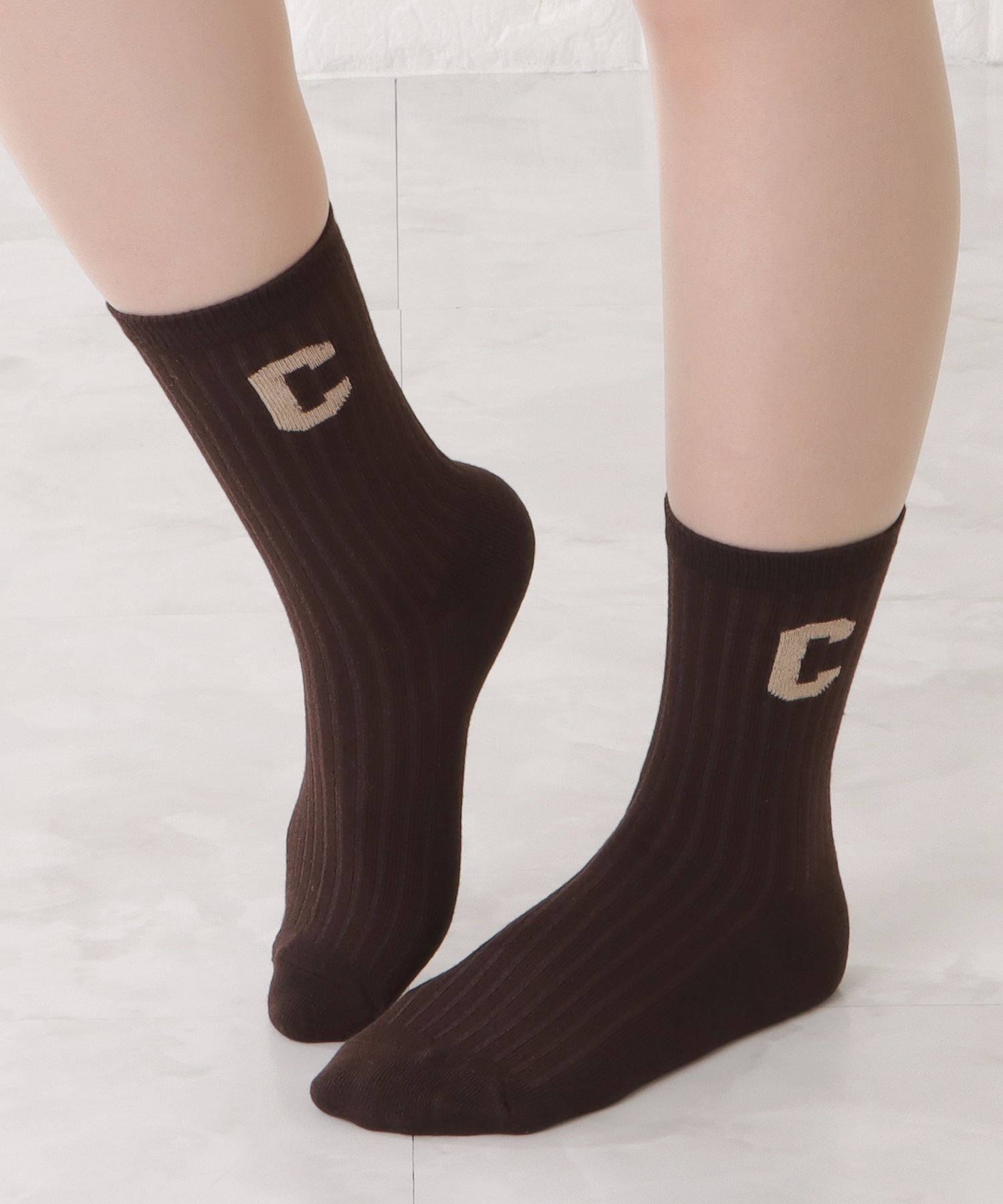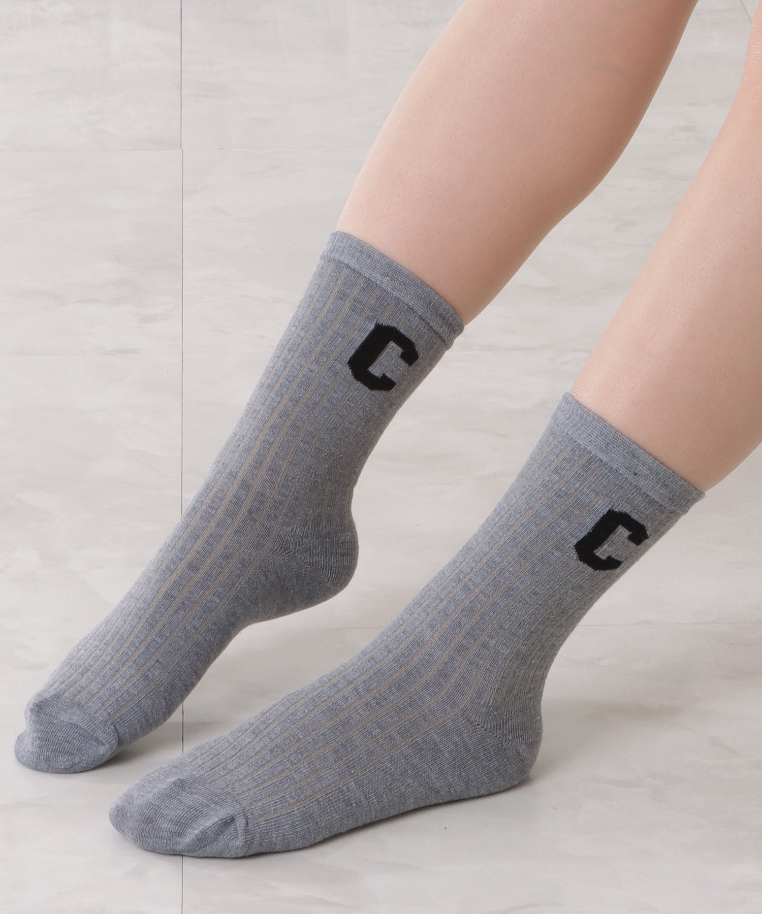 存在感のある「C」のワッペンがアクセントになった靴下
