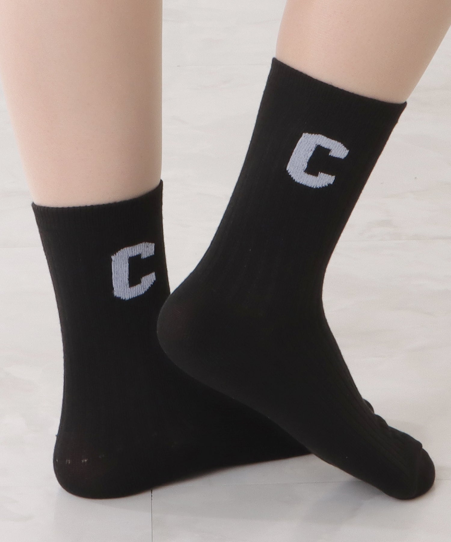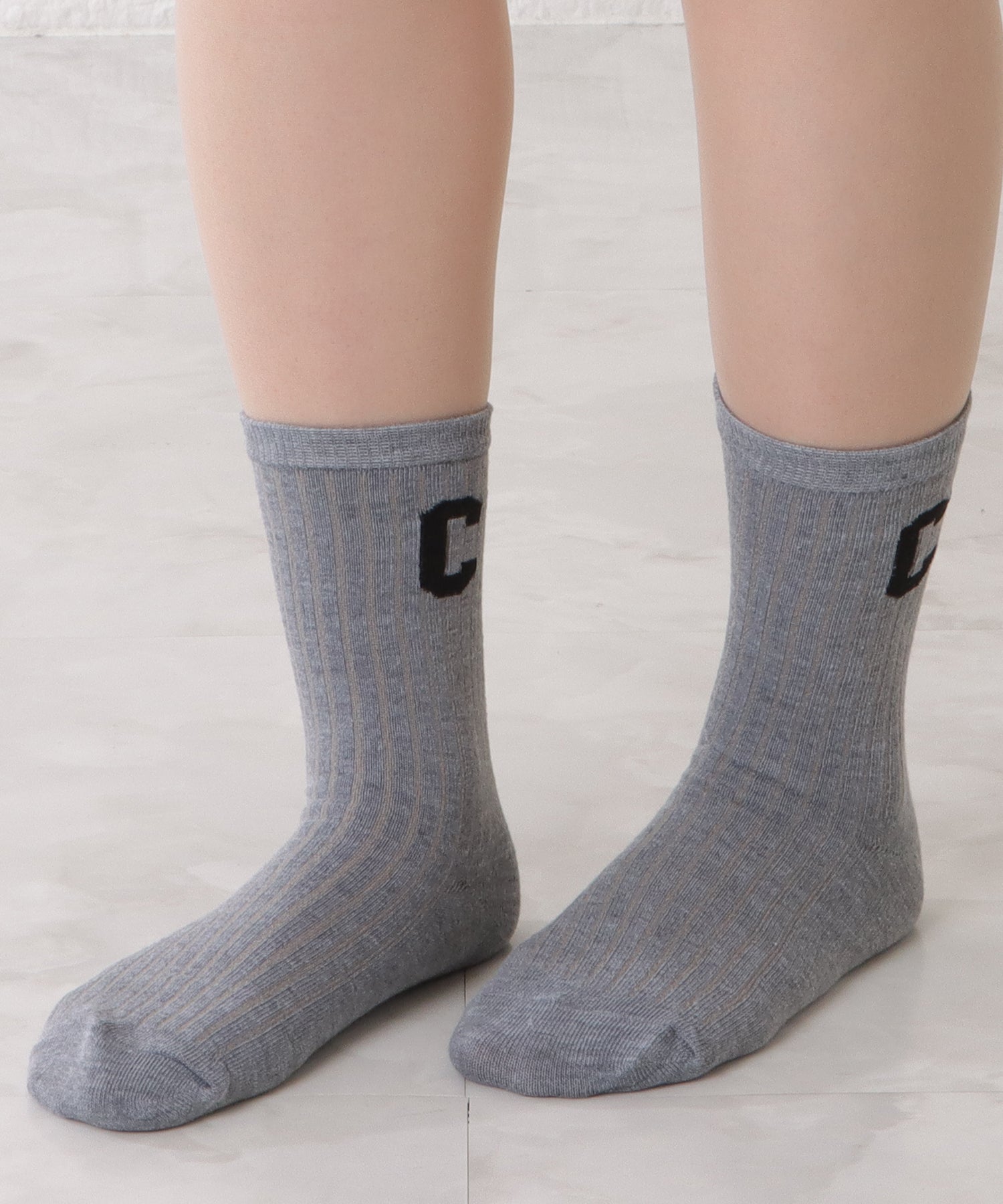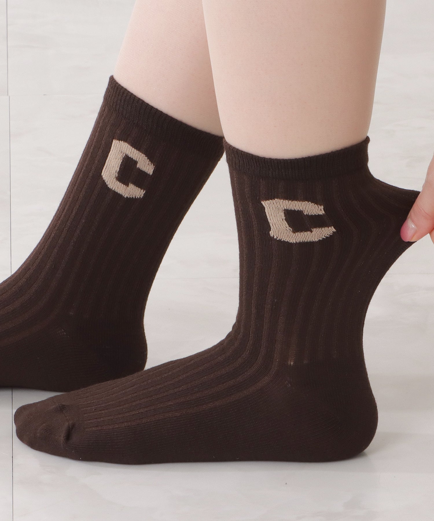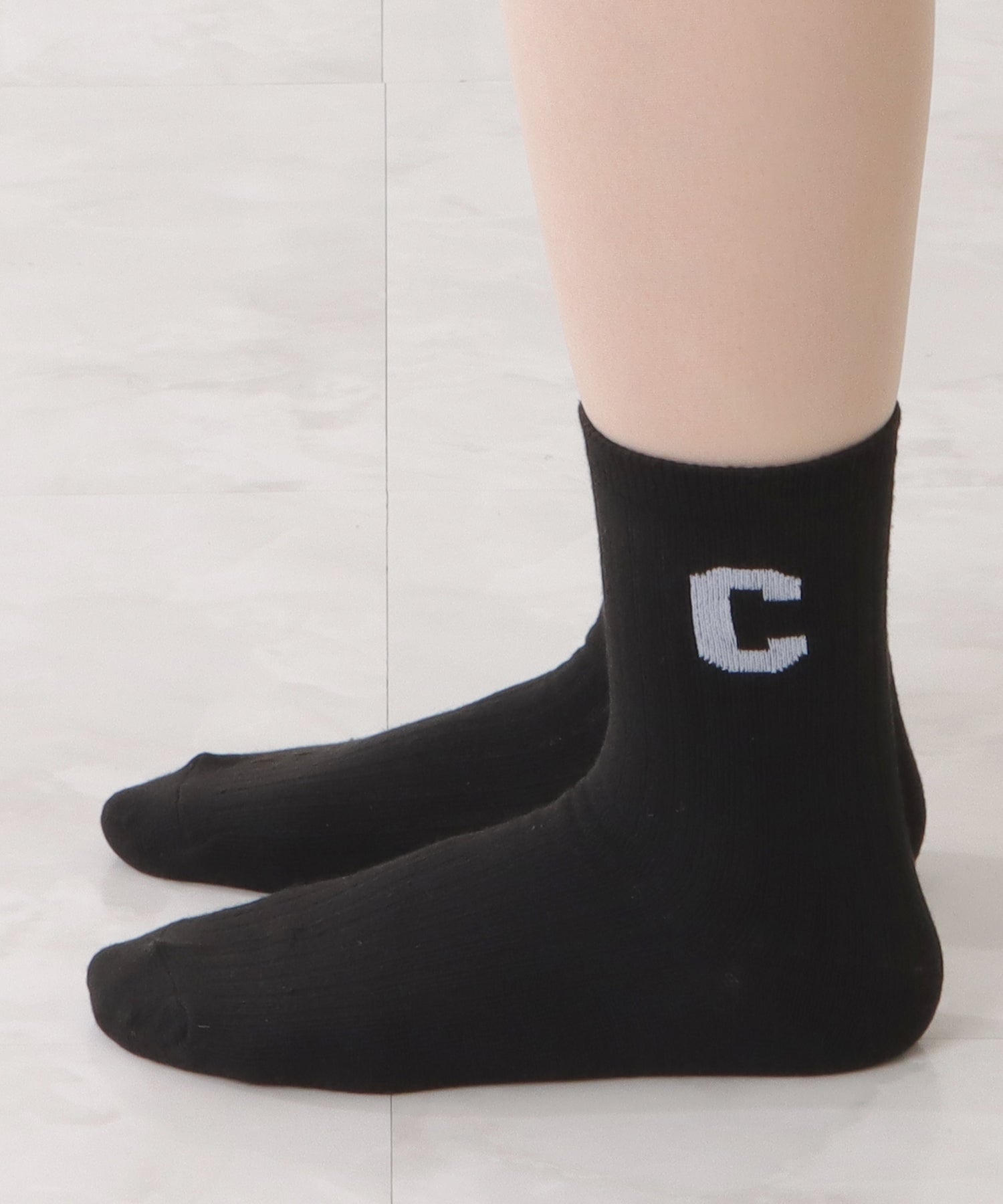存在感のある「C」のワッペンがアクセントになった靴下