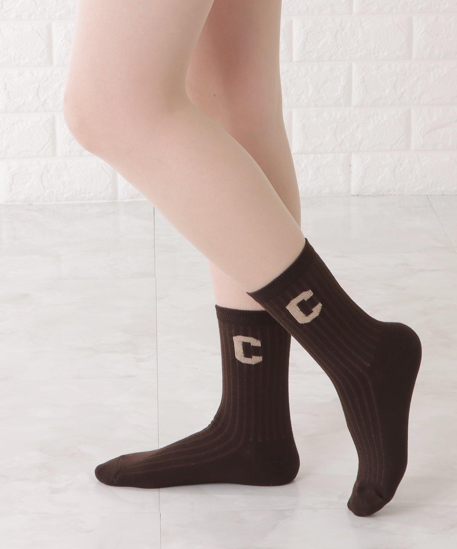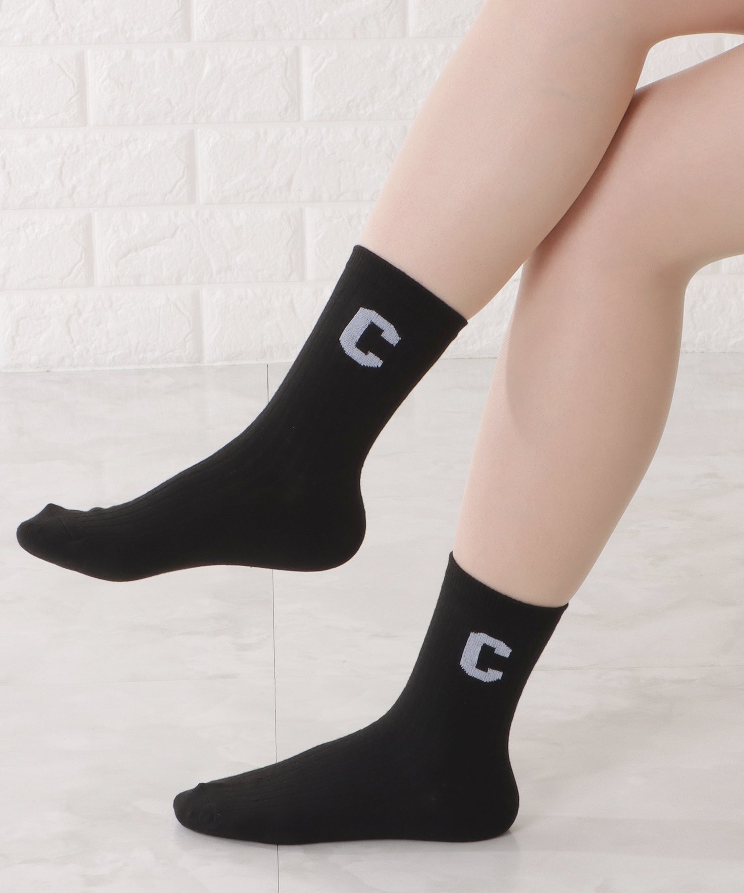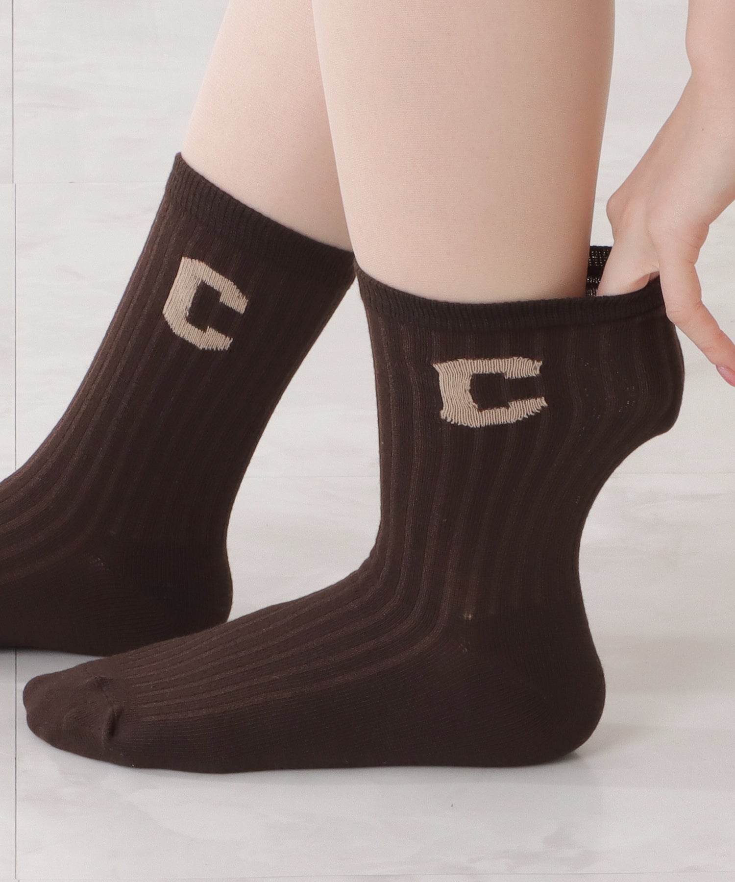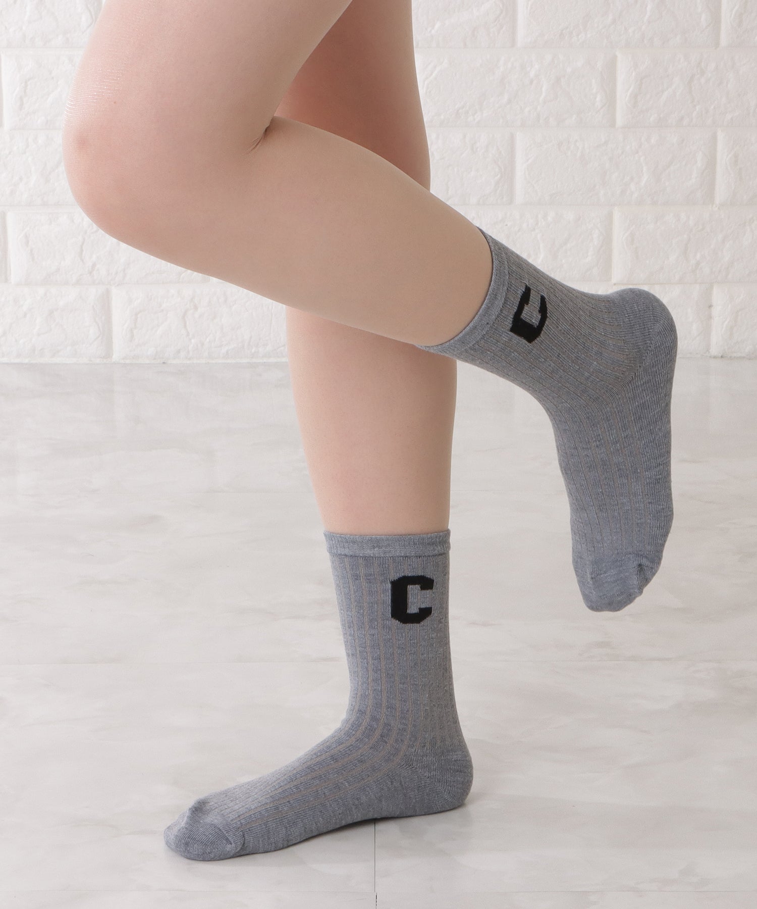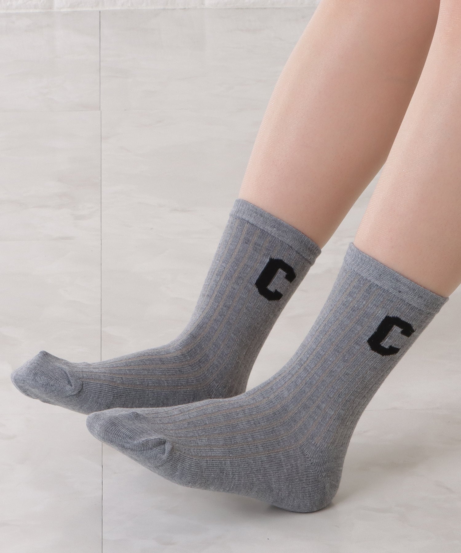 存在感のある「C」のワッペンがアクセントになった靴下