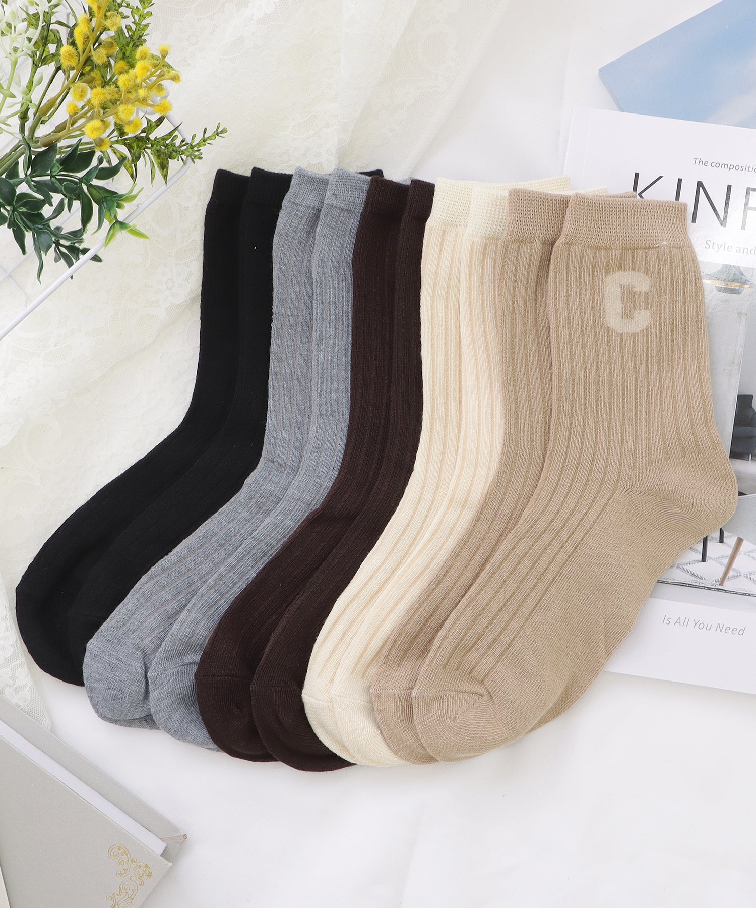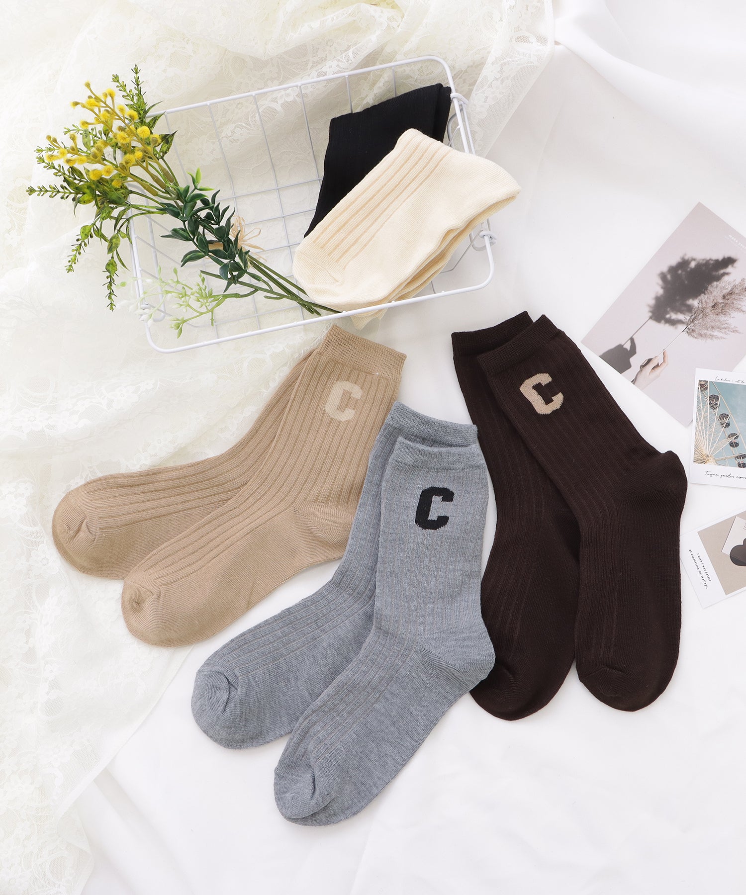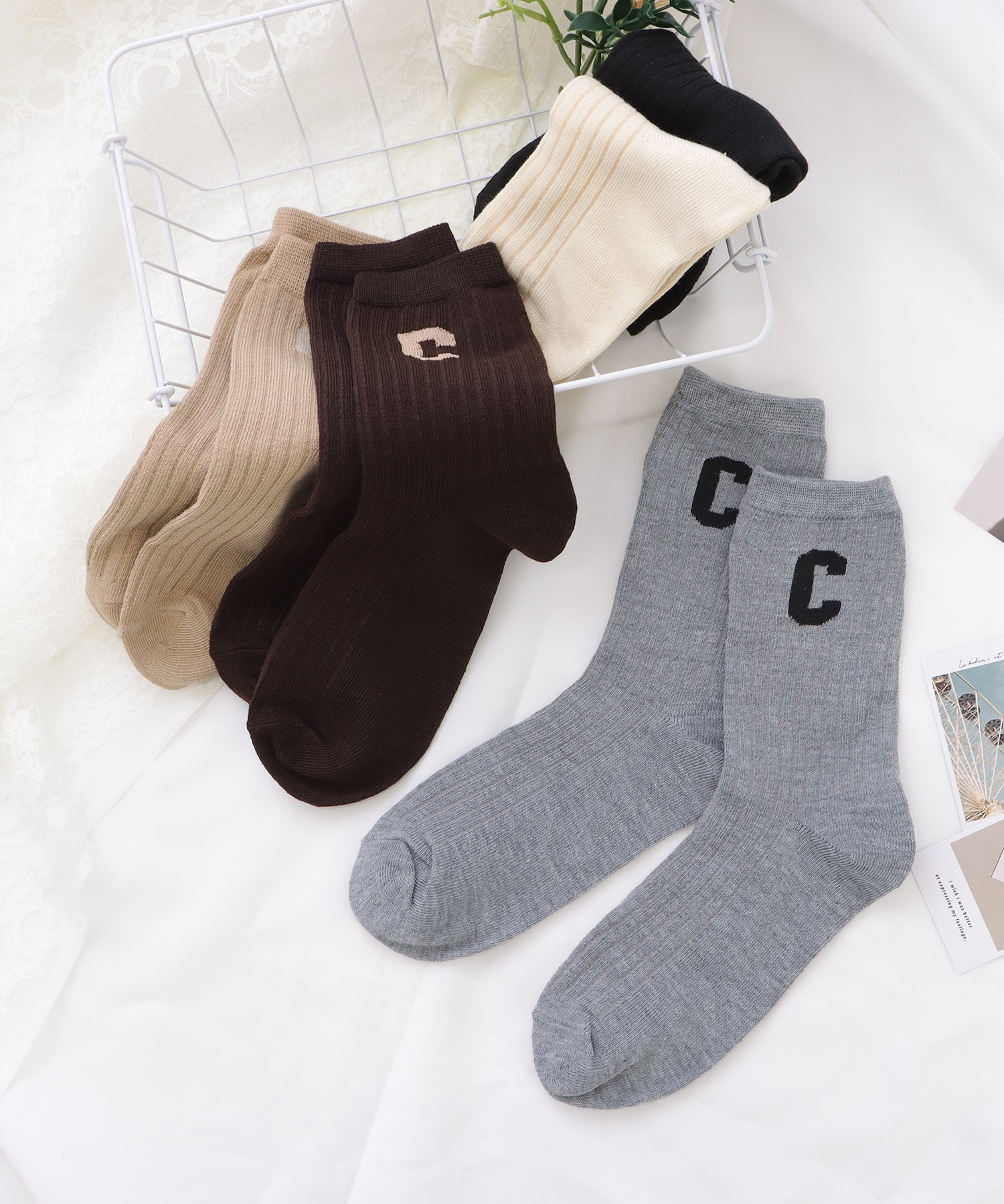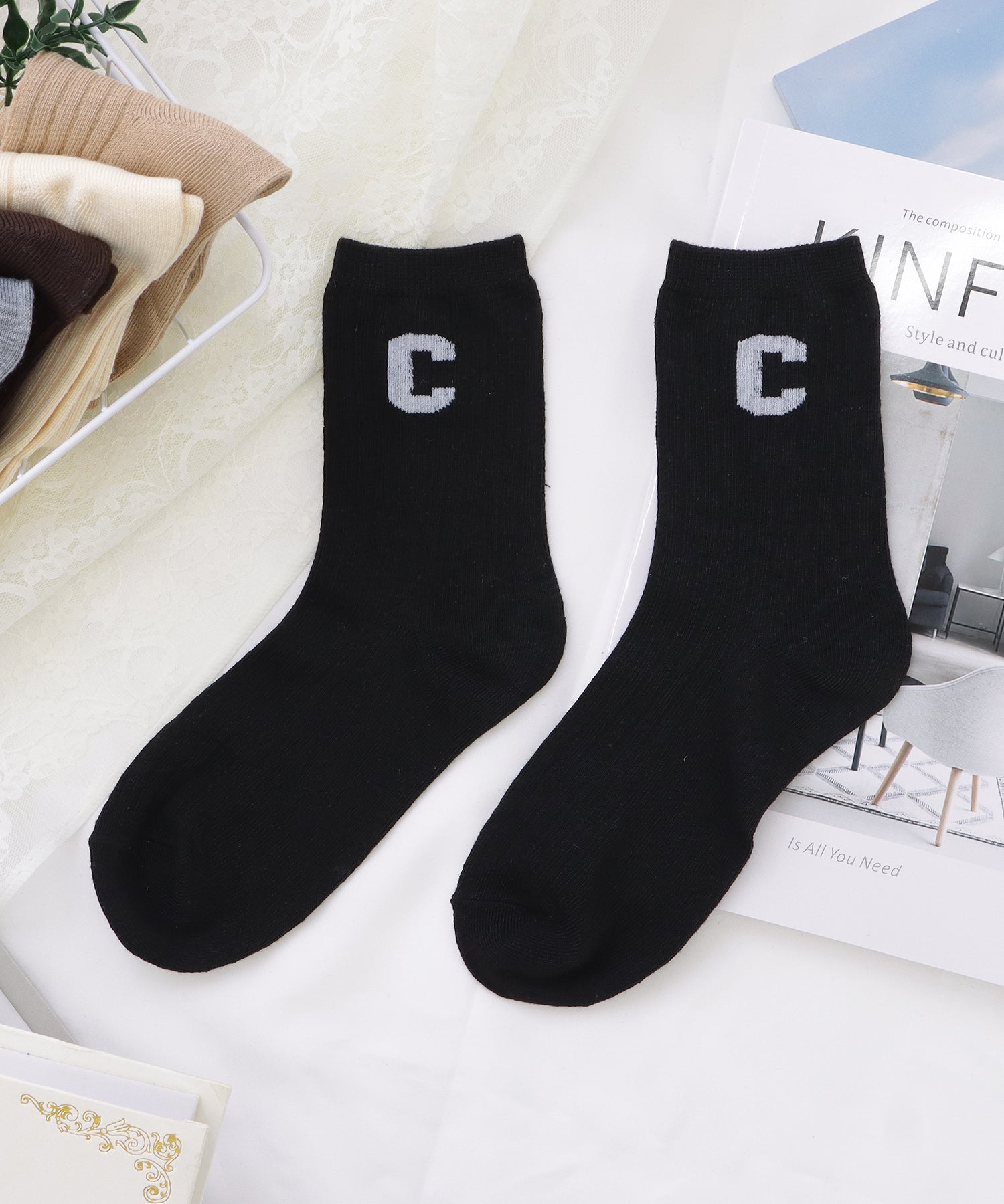 存在感のある「C」のワッペンがアクセントになった靴下