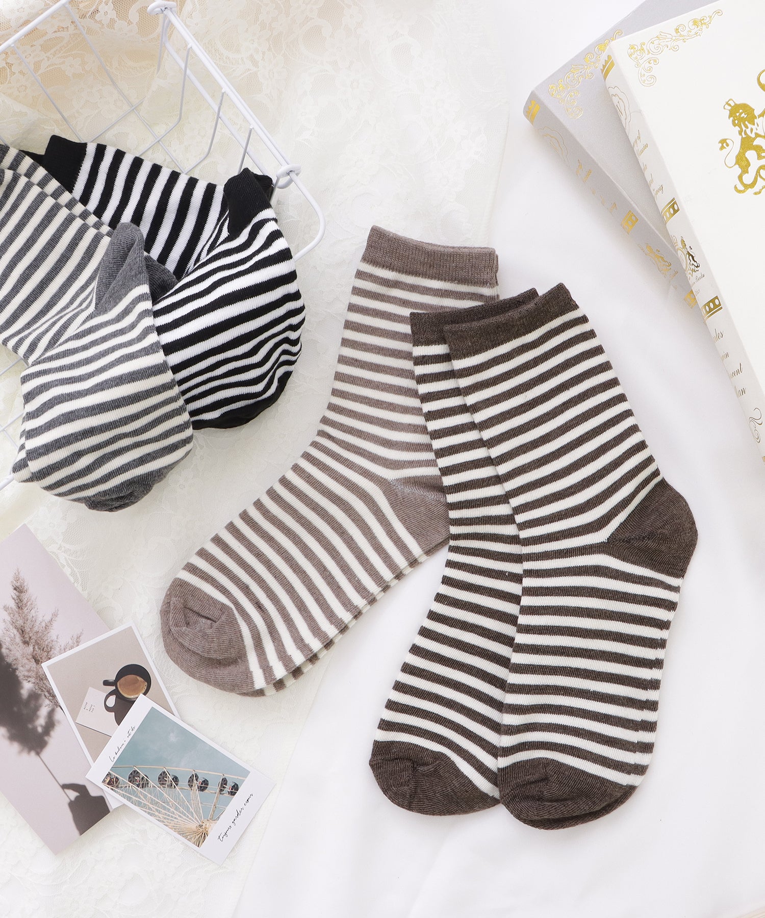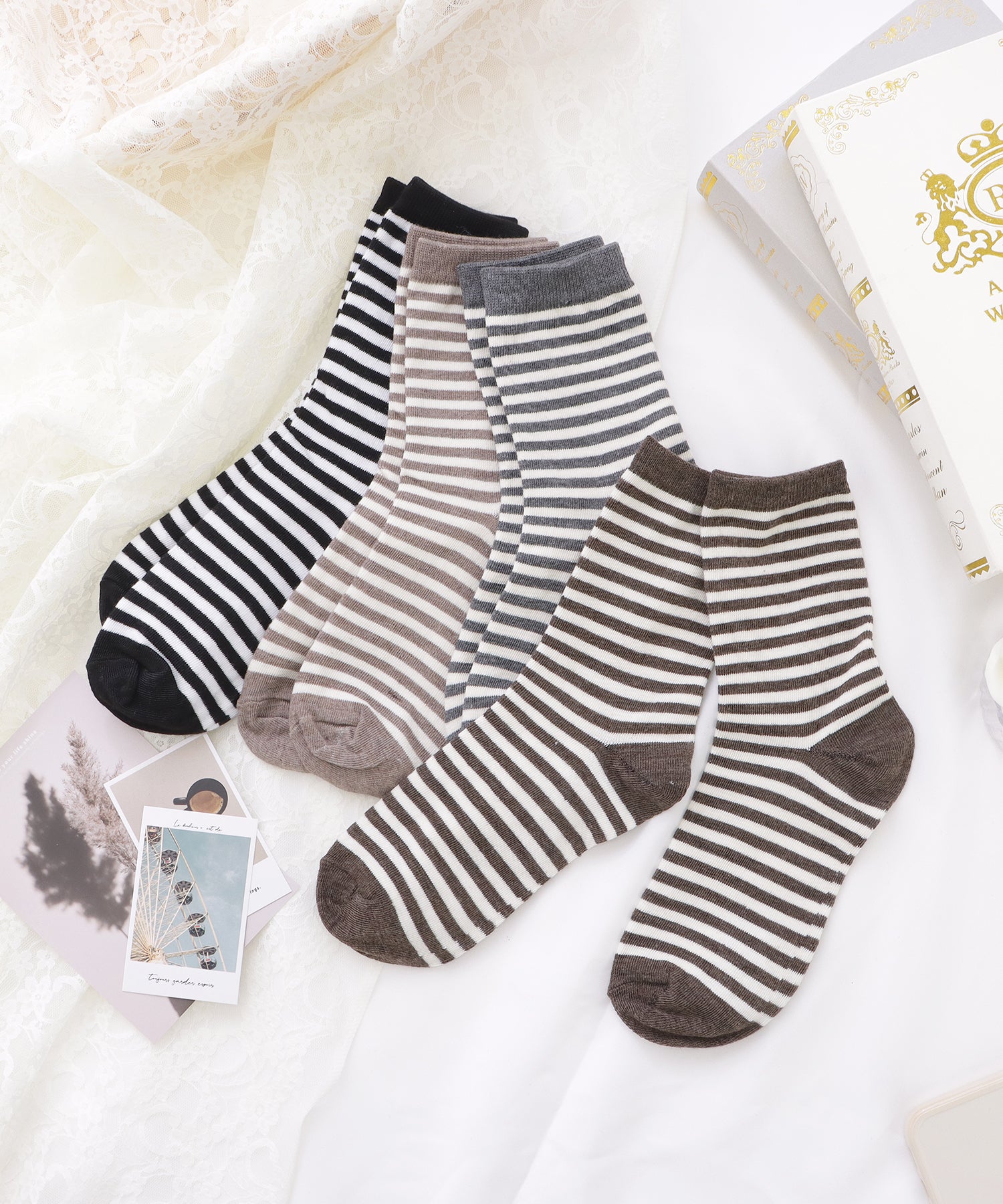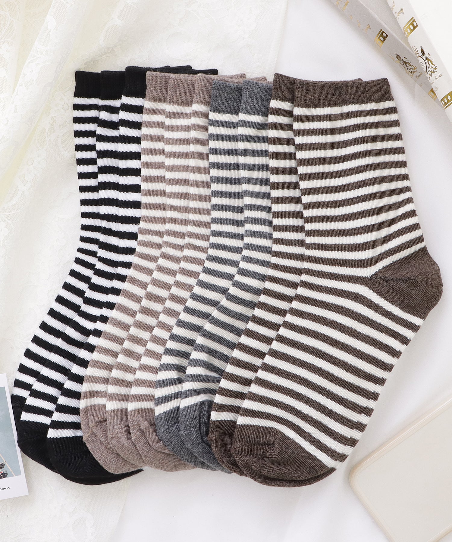 【10足セット】ショート丈ボーダー柄ソックス