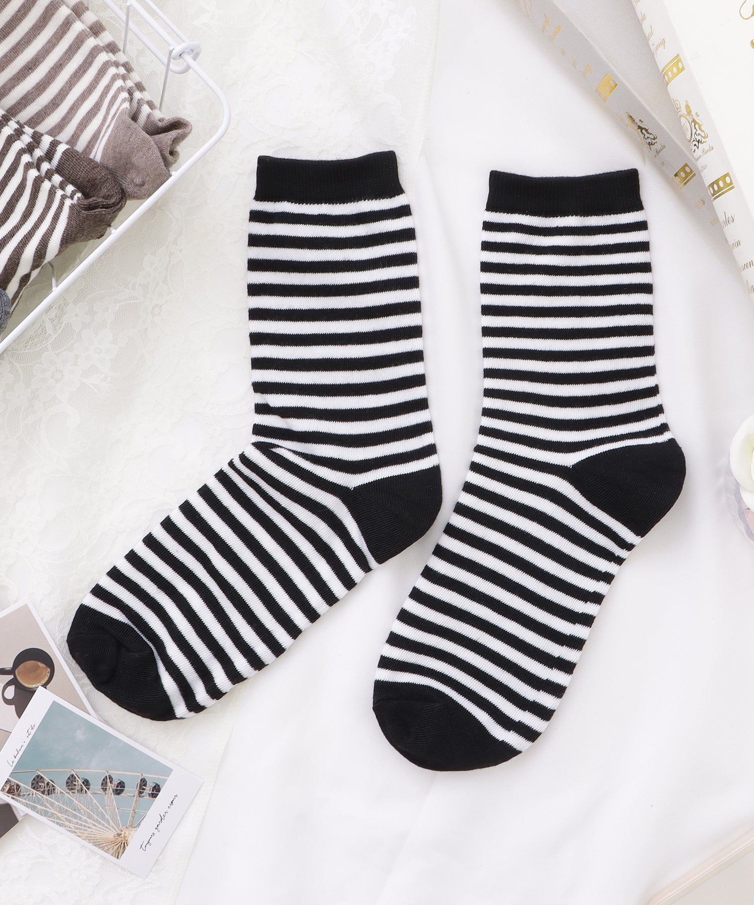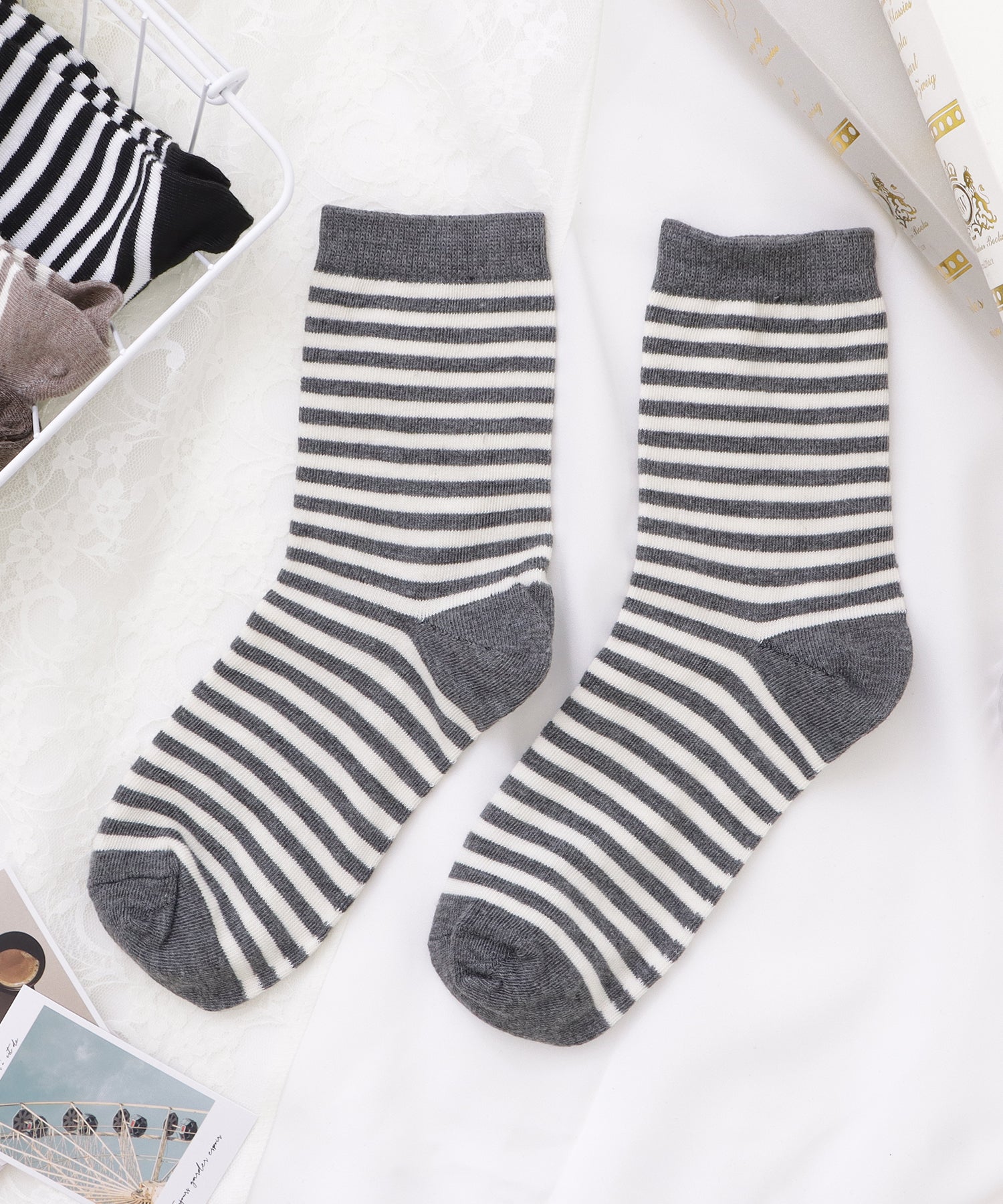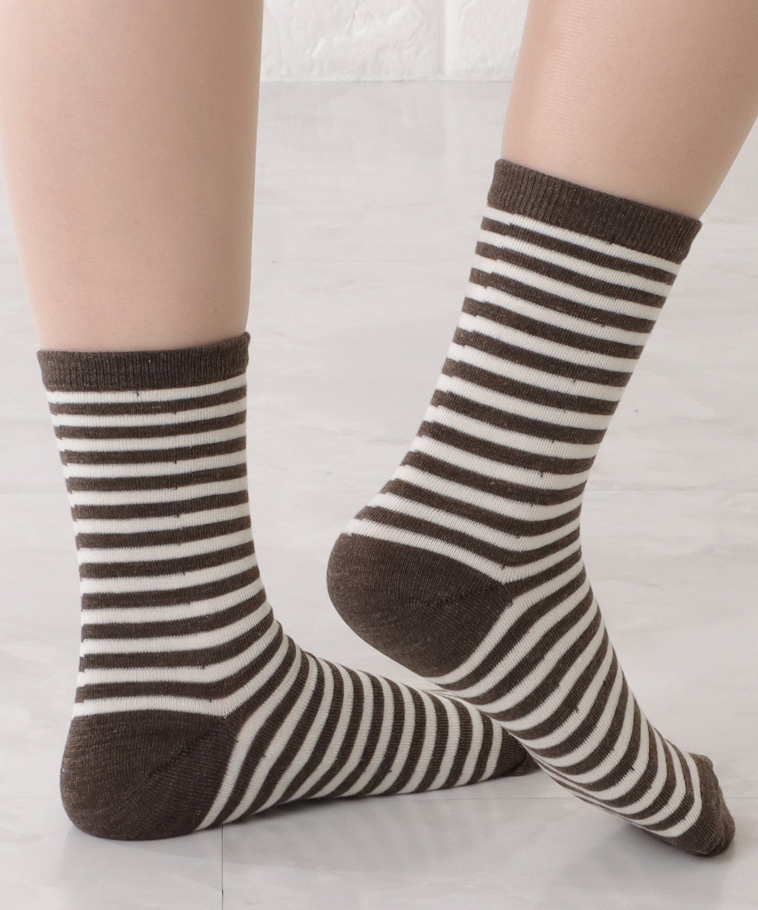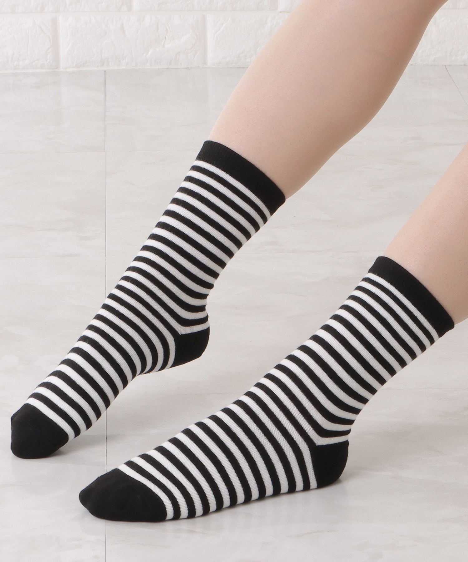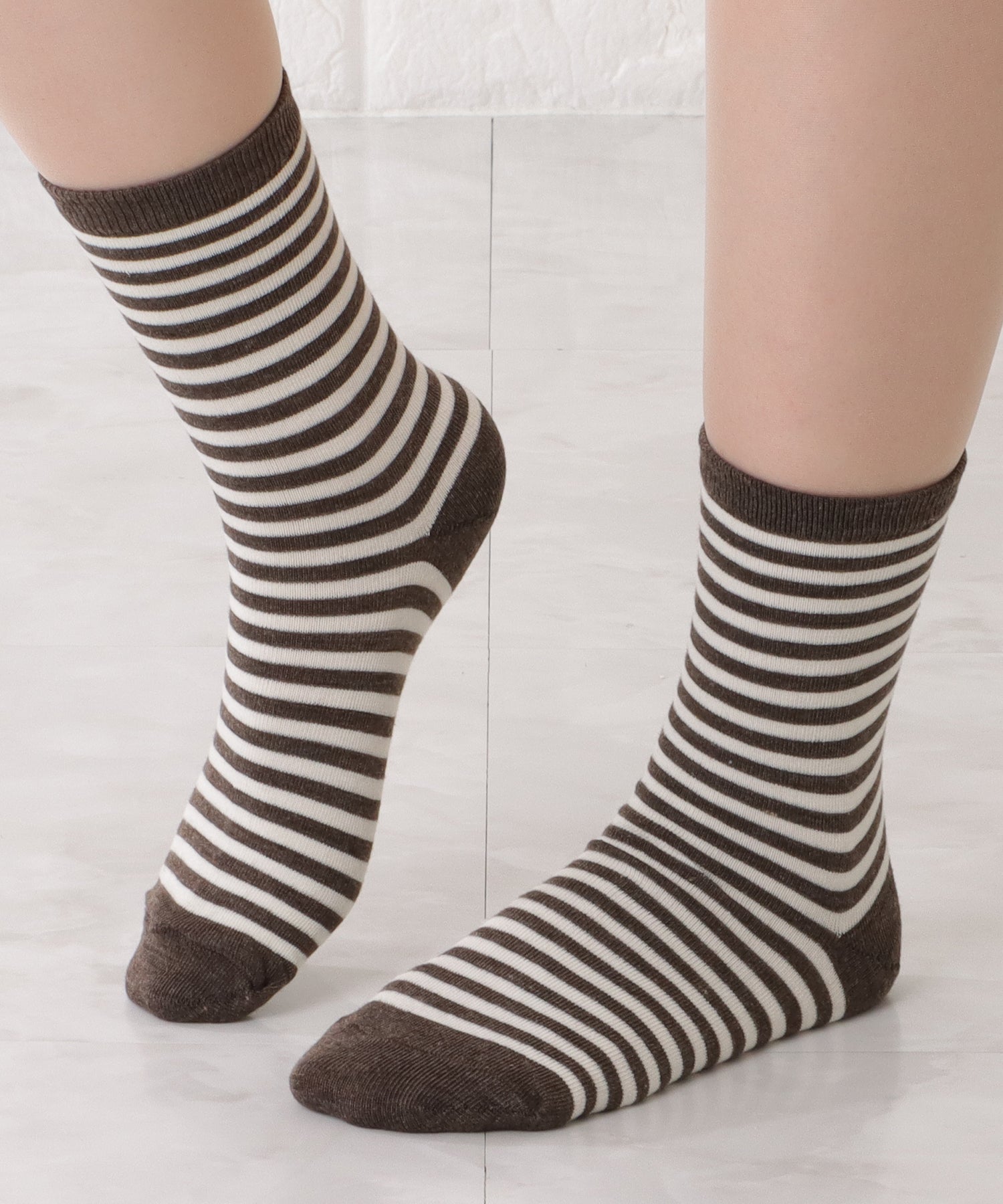 カジュアルスタイルに定番のボーダー柄ソックス。