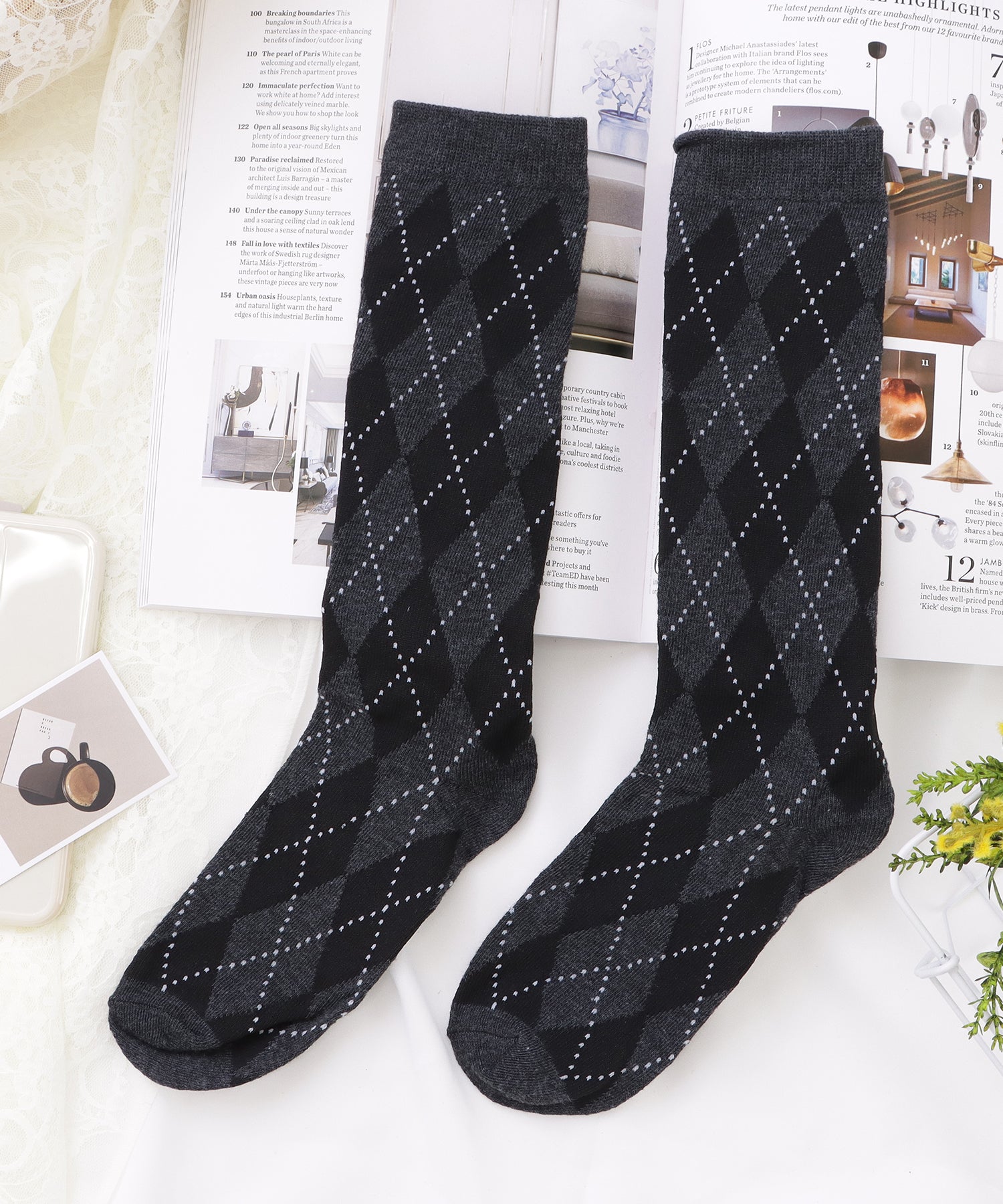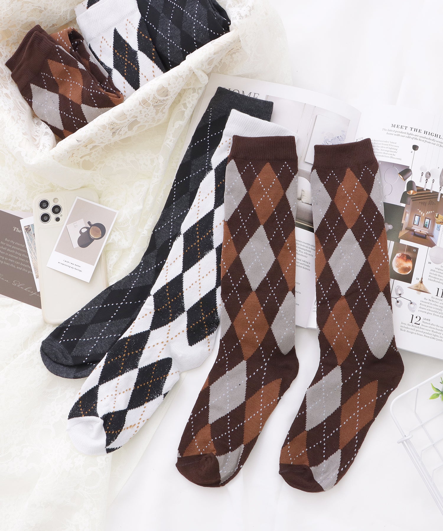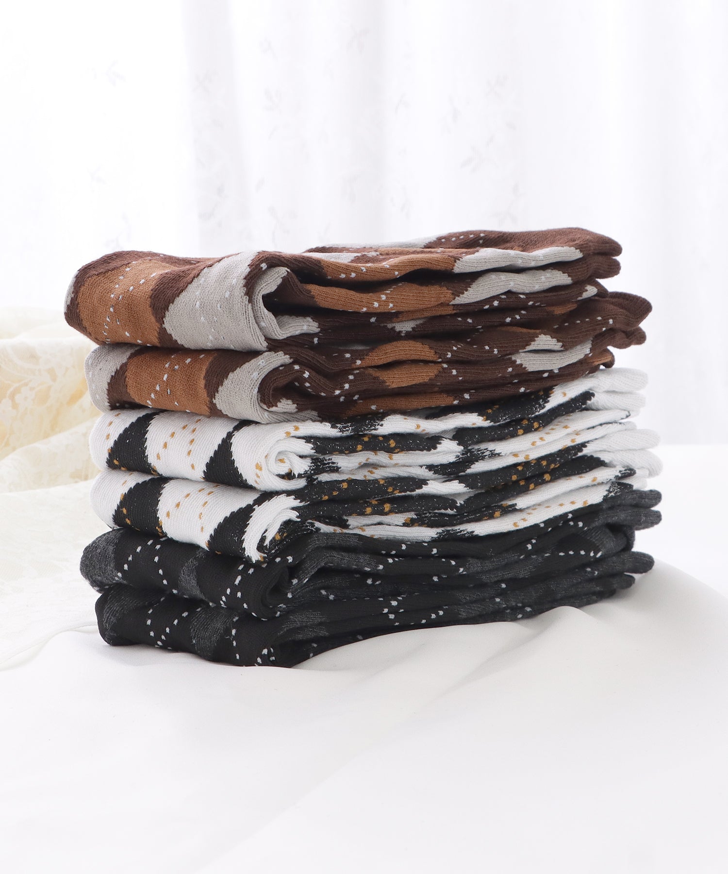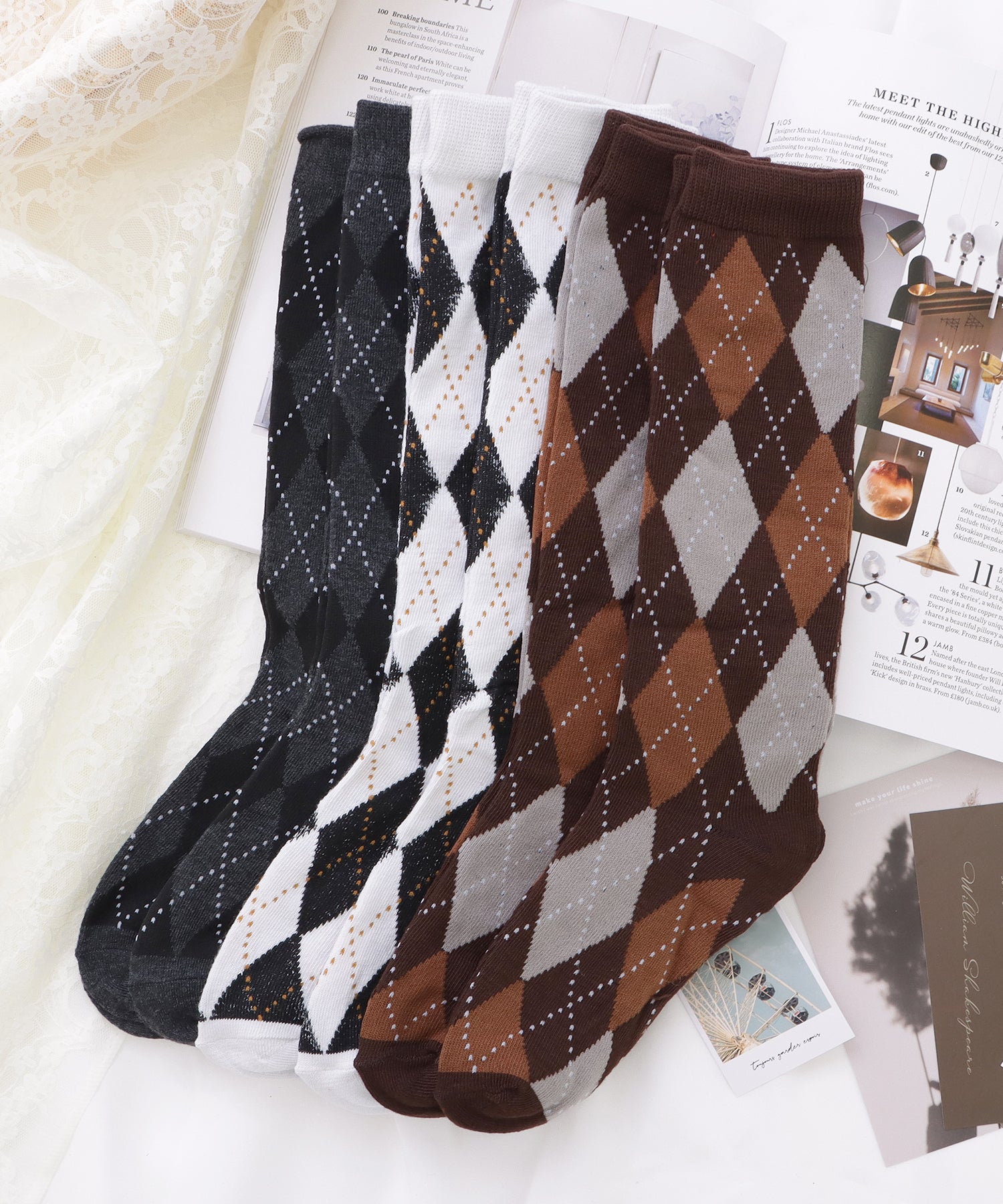 【6足セット】アーガイル柄デザインジャカードハイソックス