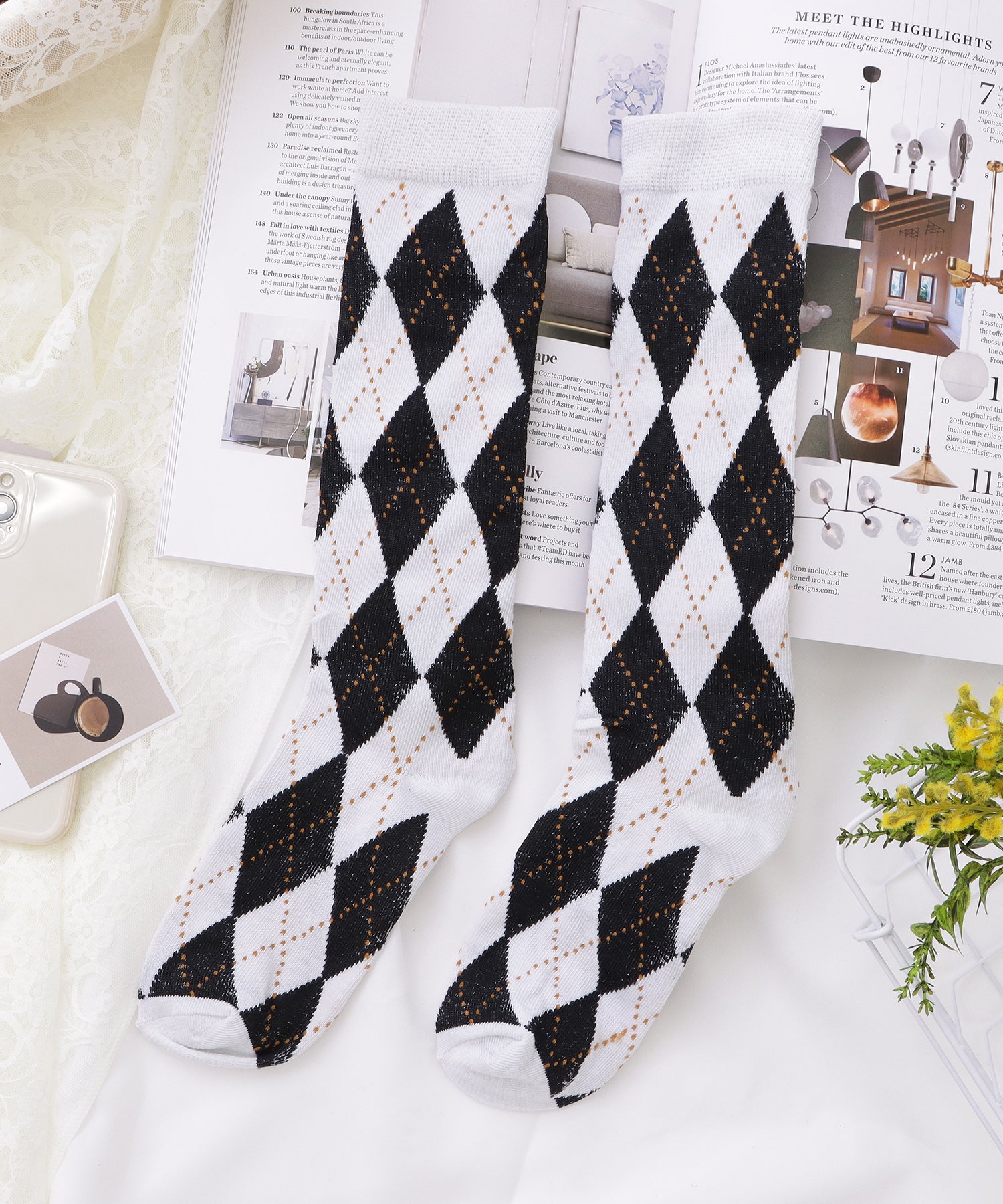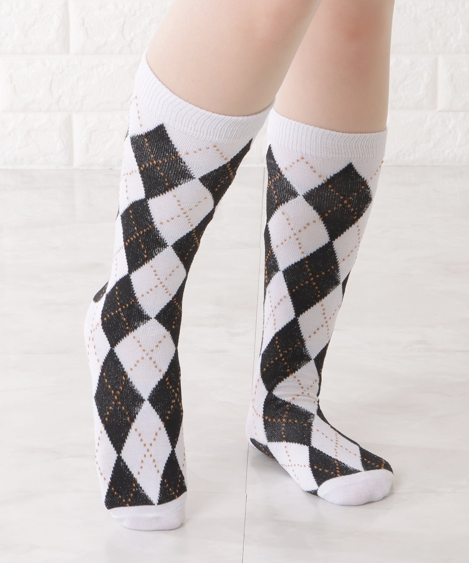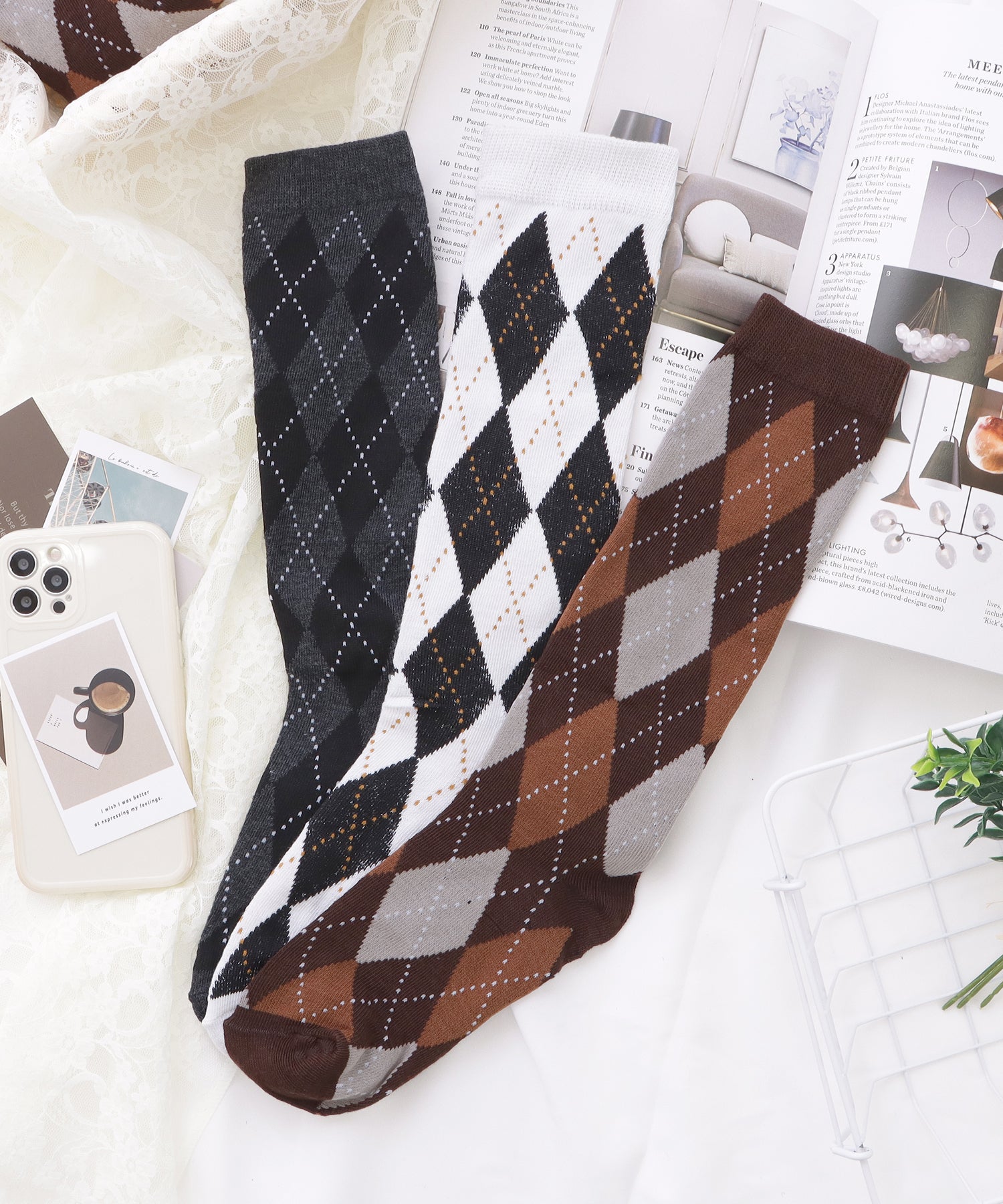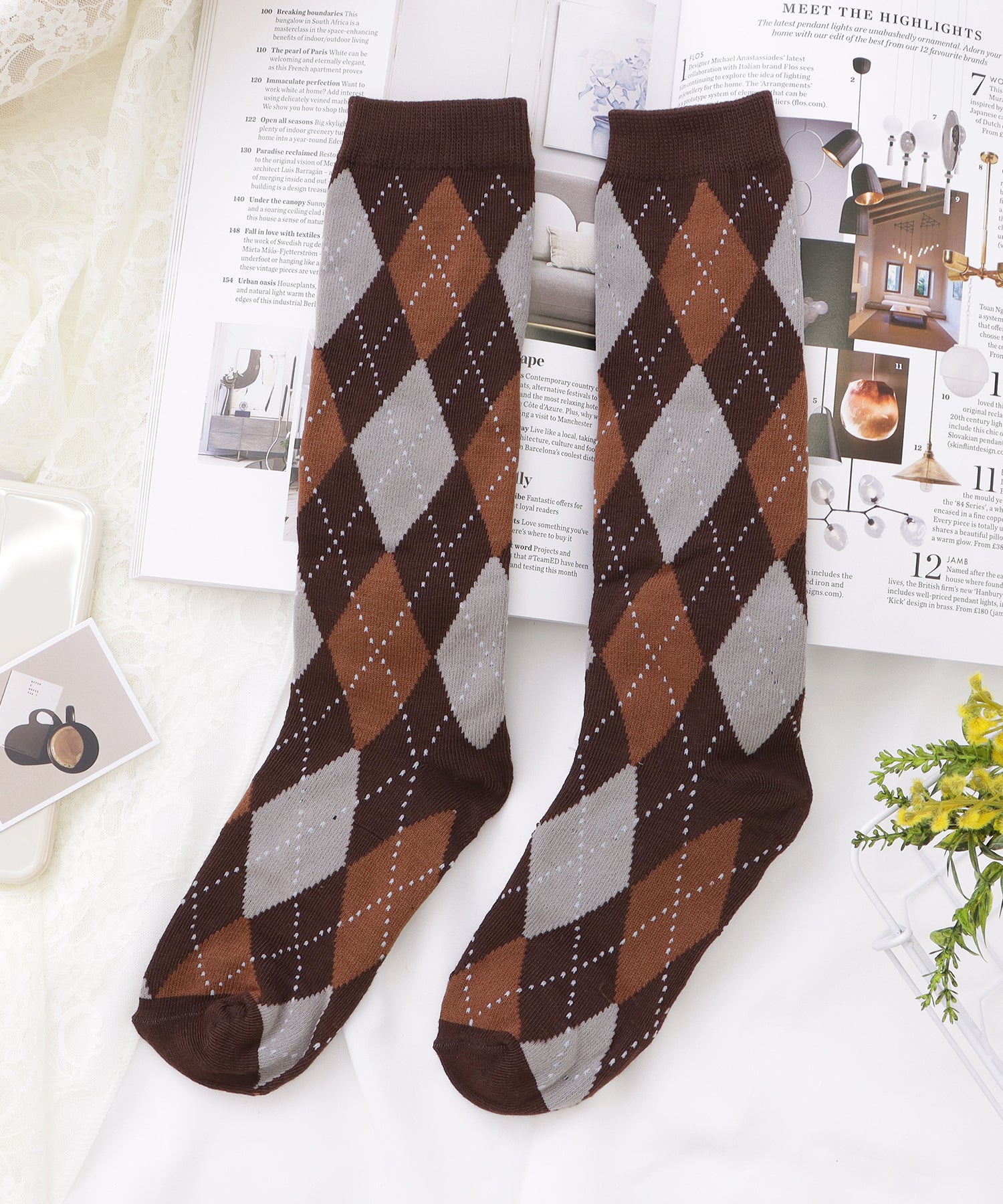 【6足セット】アーガイル柄デザインジャカードハイソックス