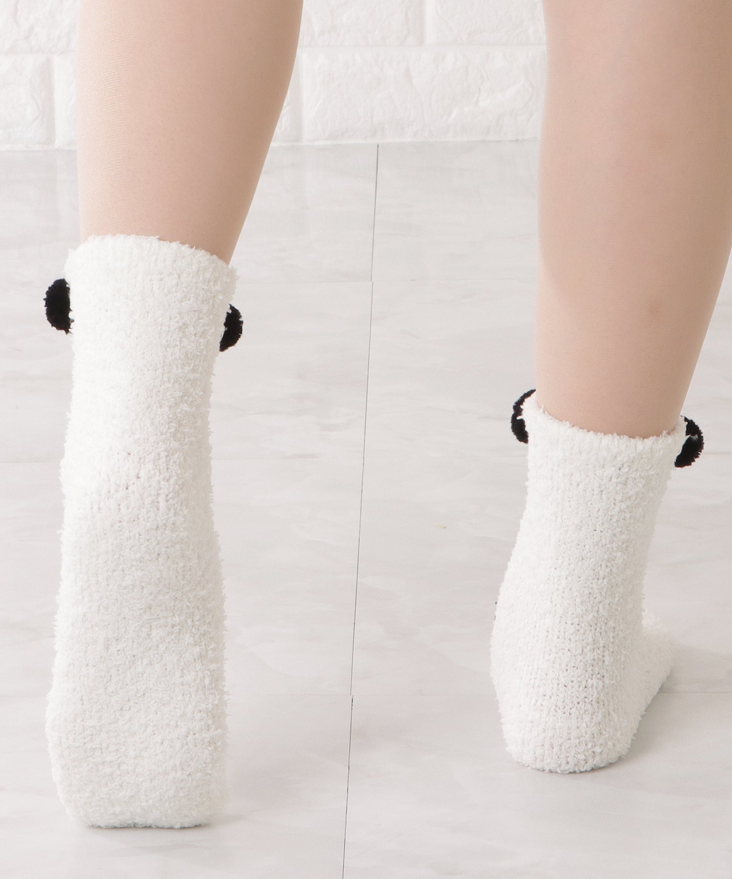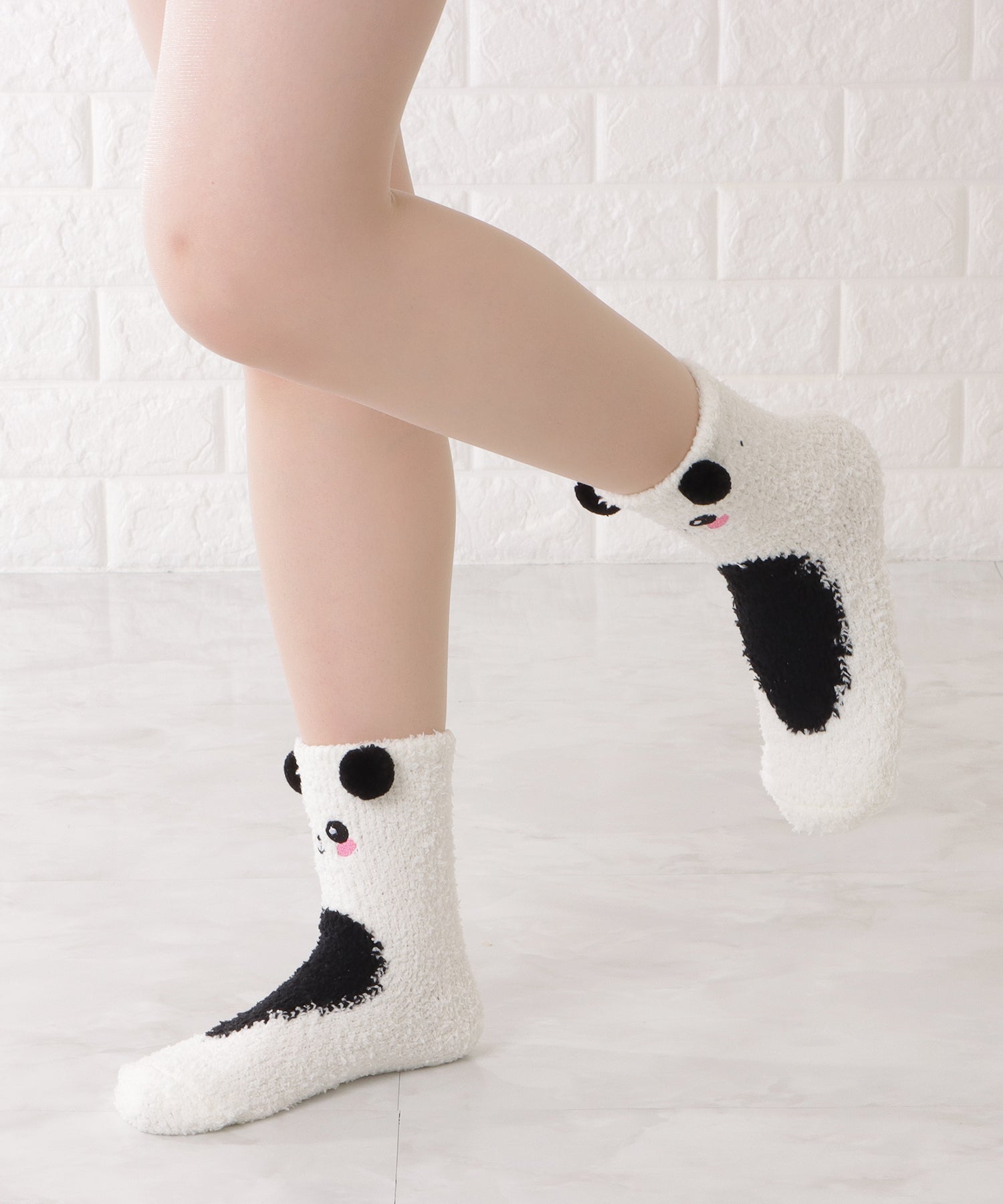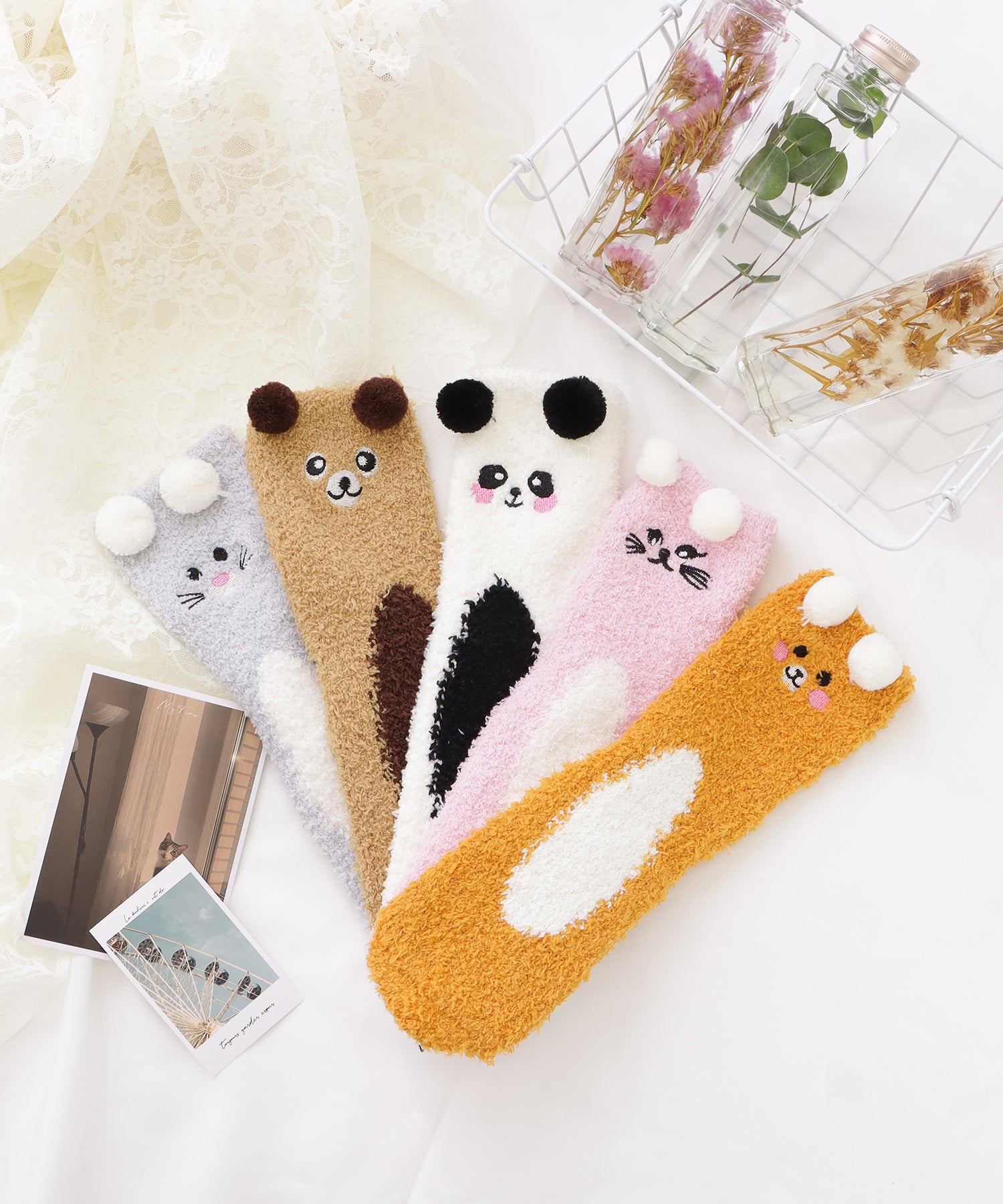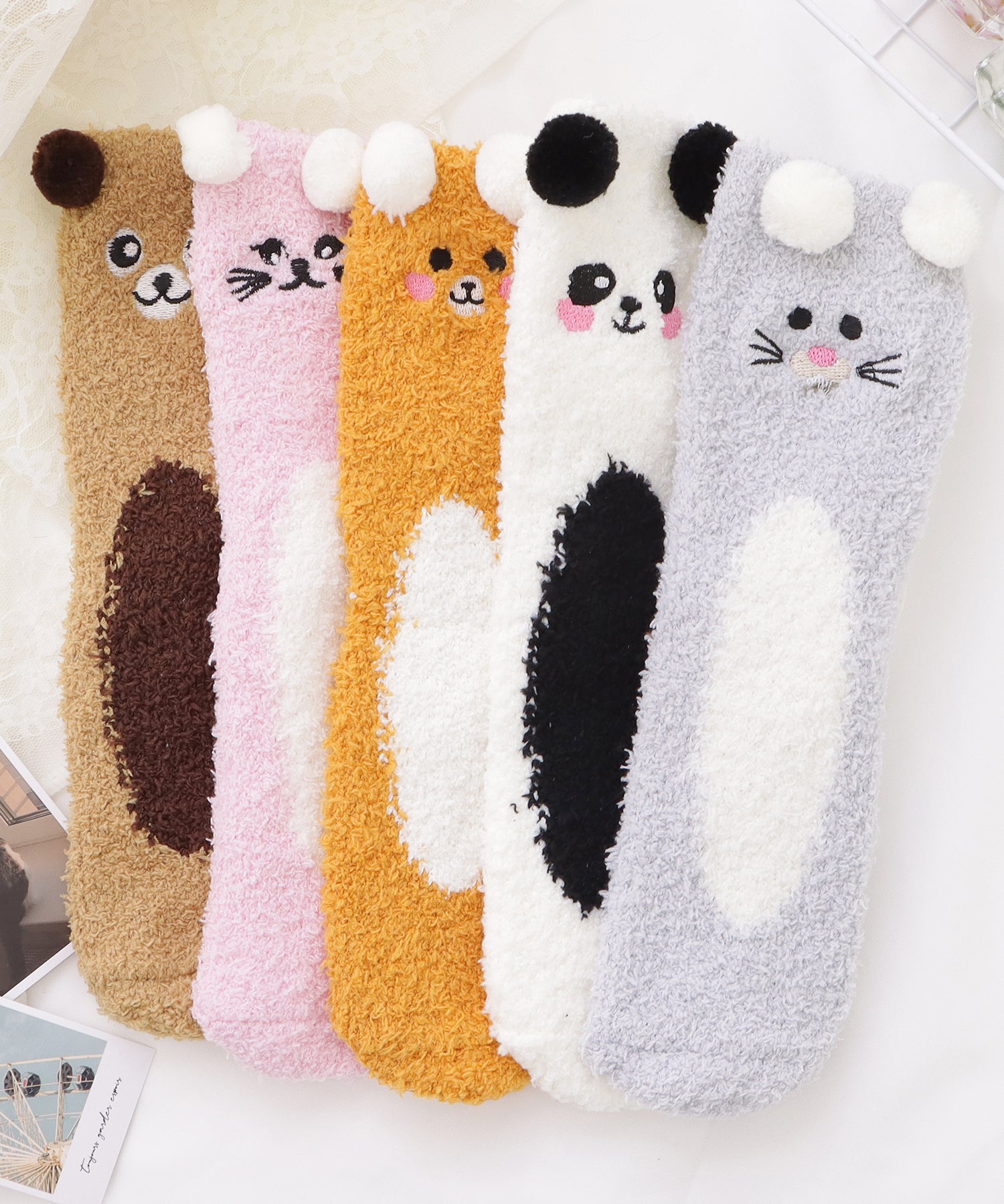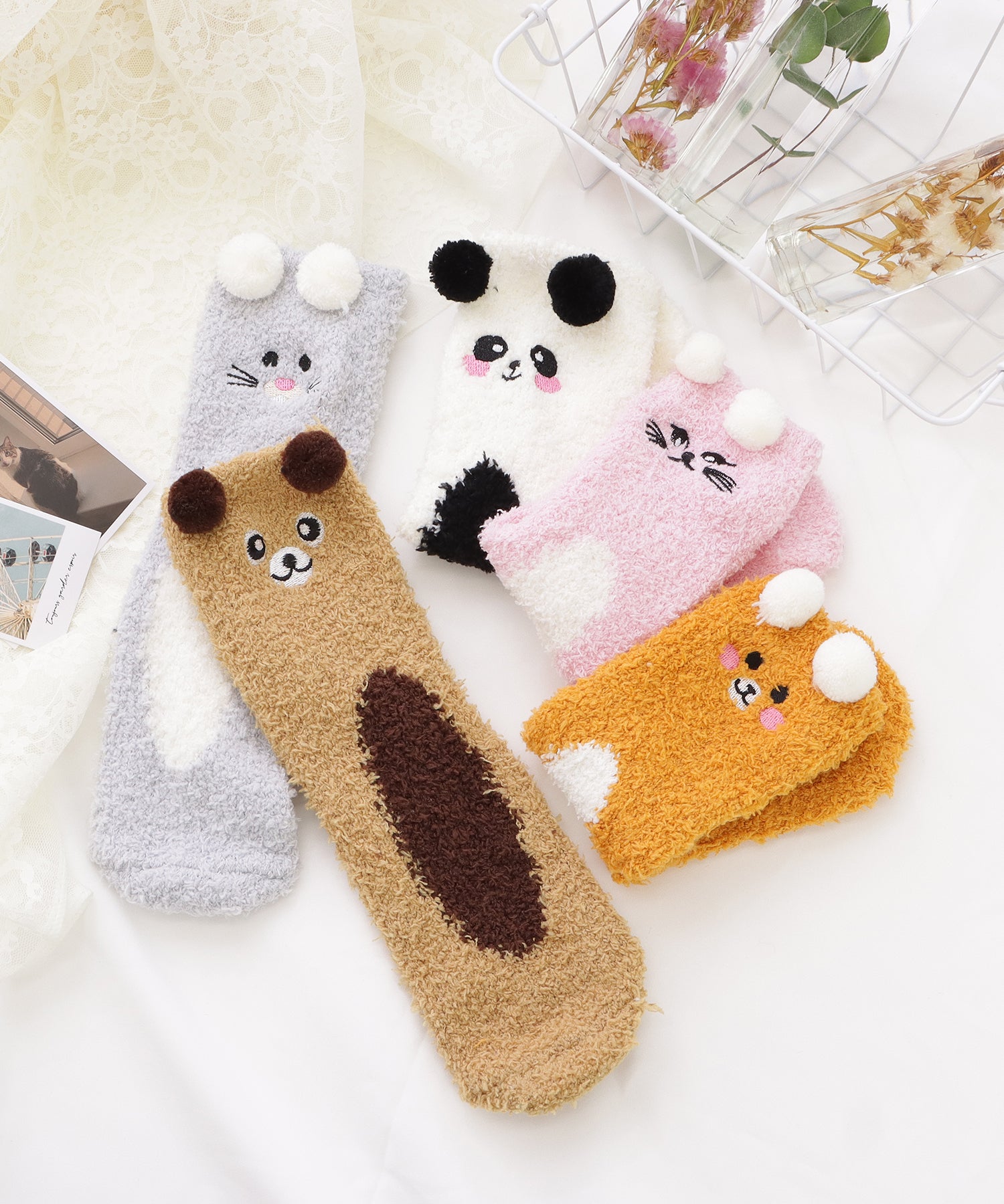 【5足セット】クルー丈ふわもちアニマルルックルームソックス