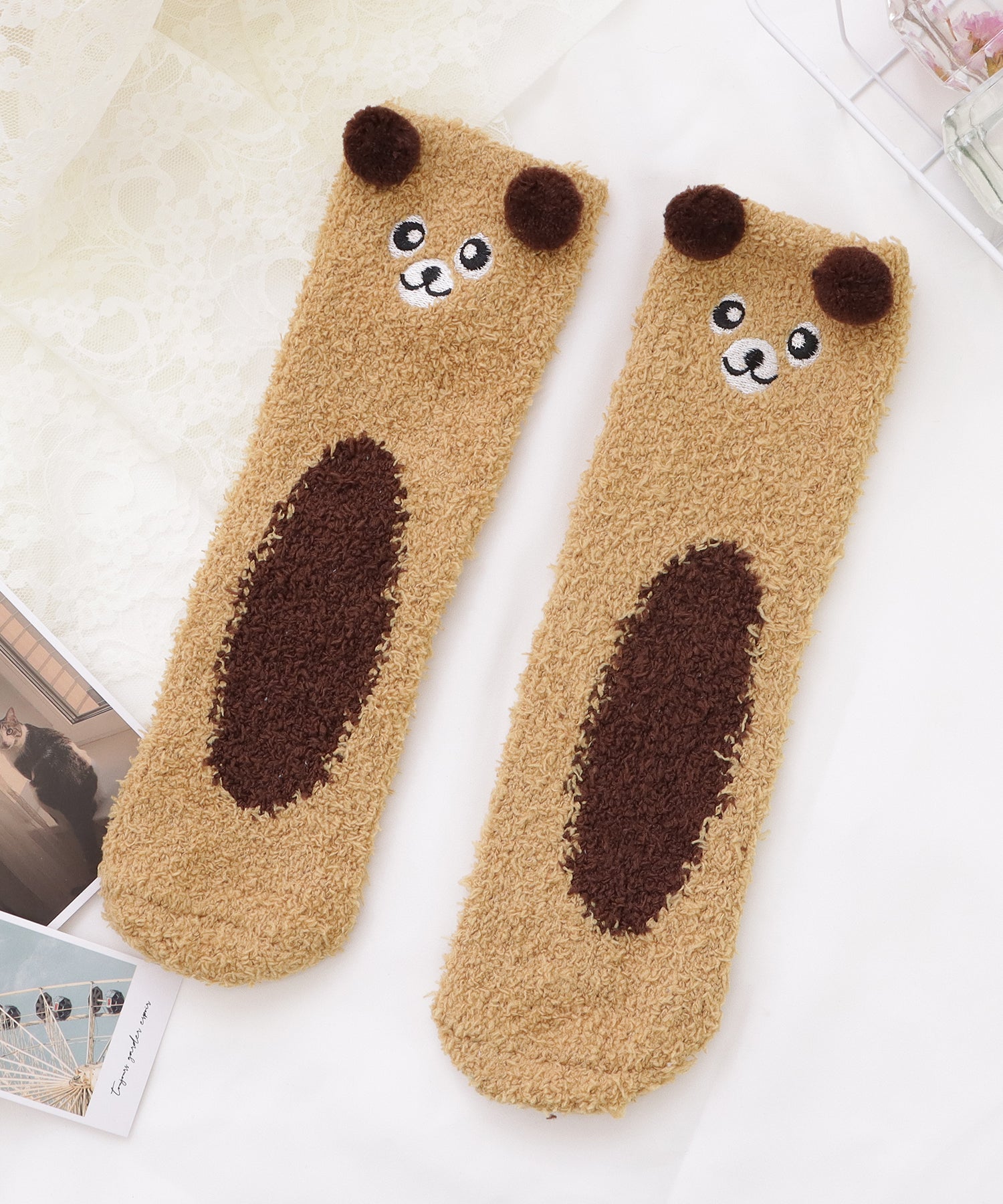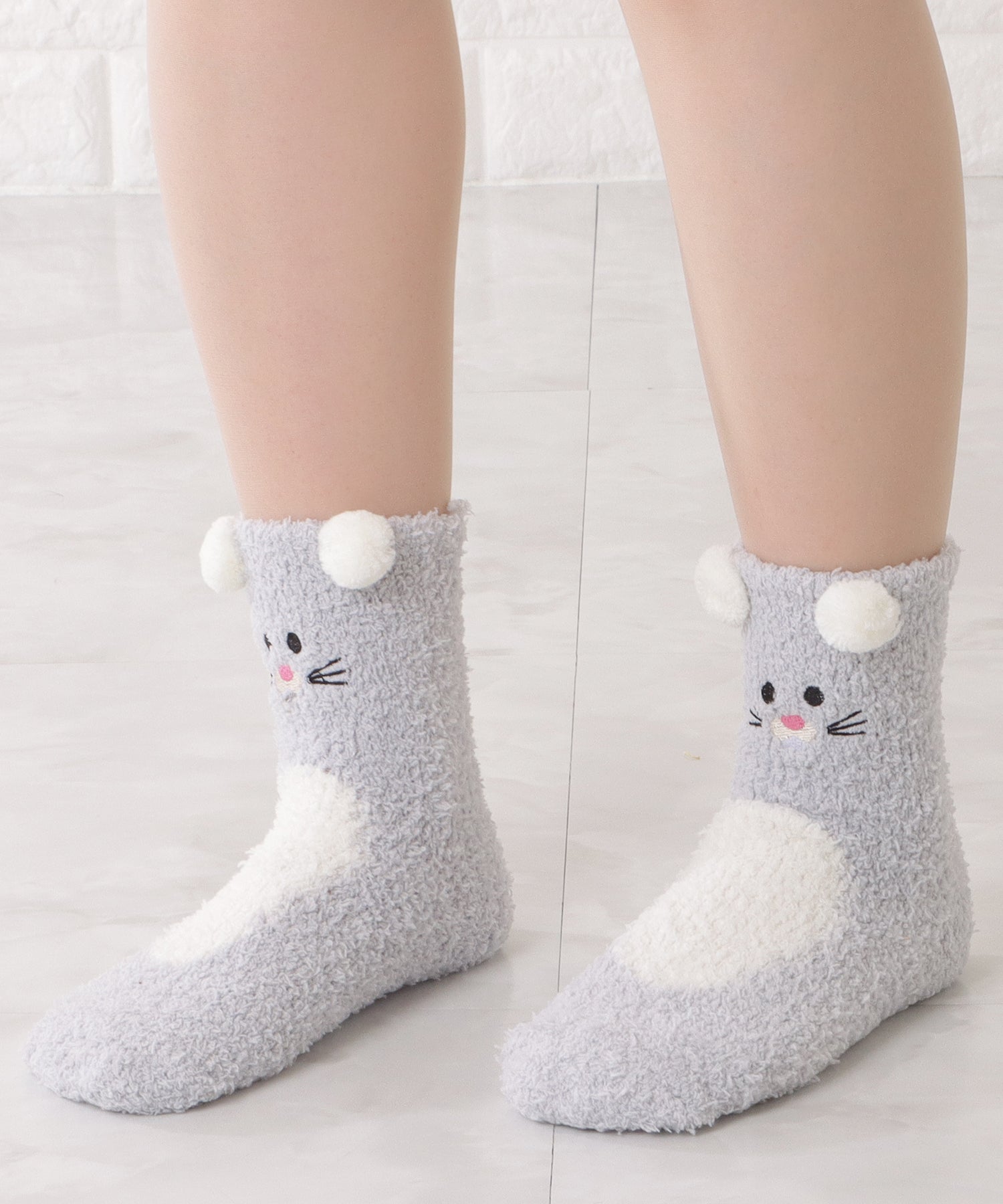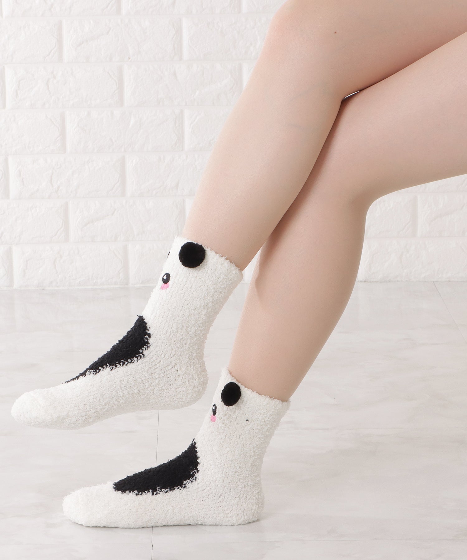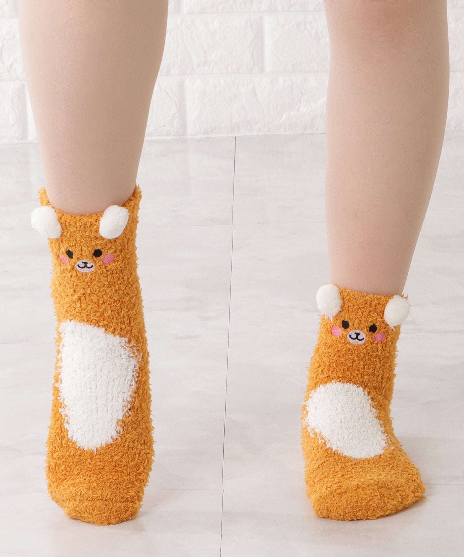 【5足セット】クルー丈ふわもちアニマルルックルームソックス