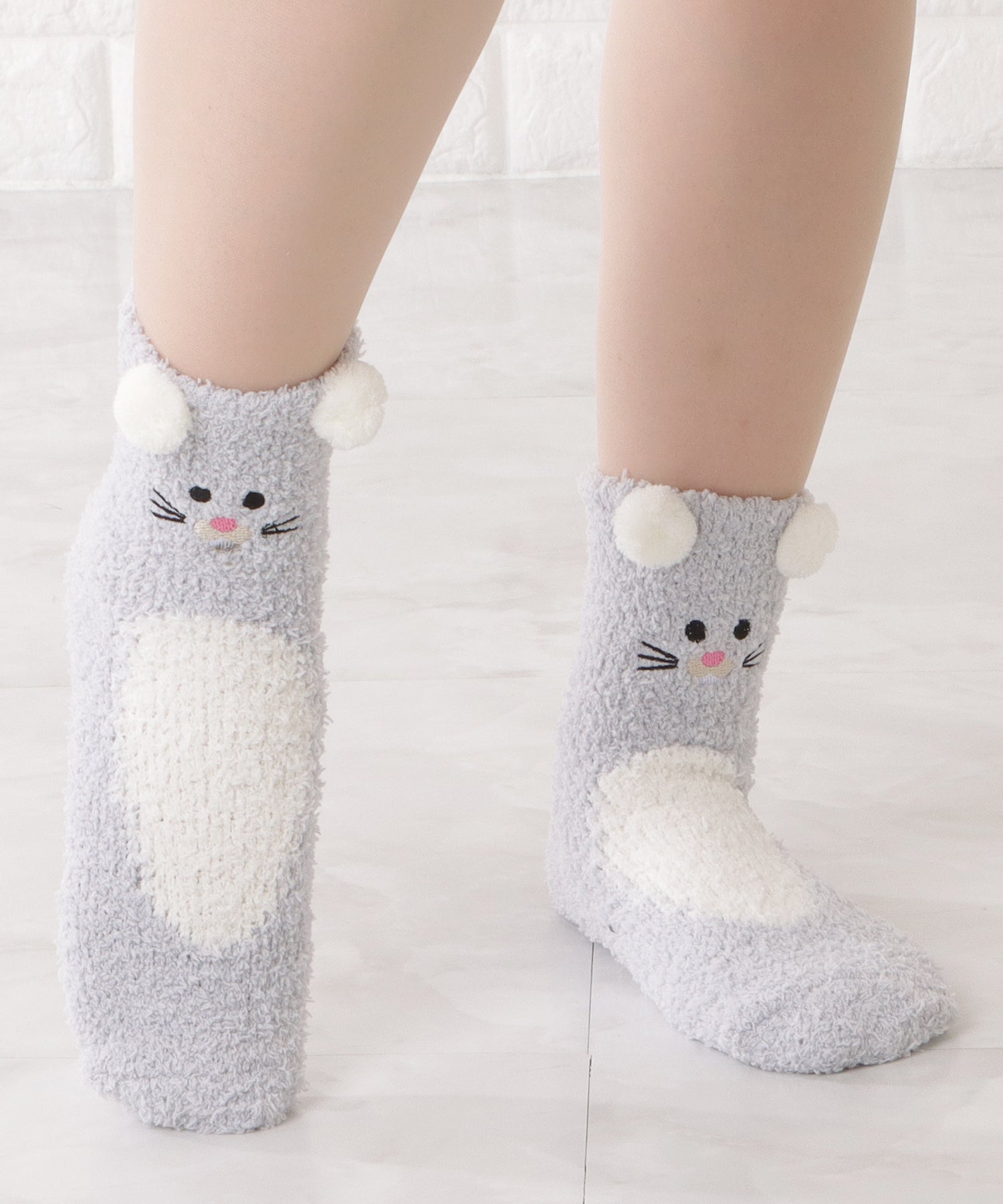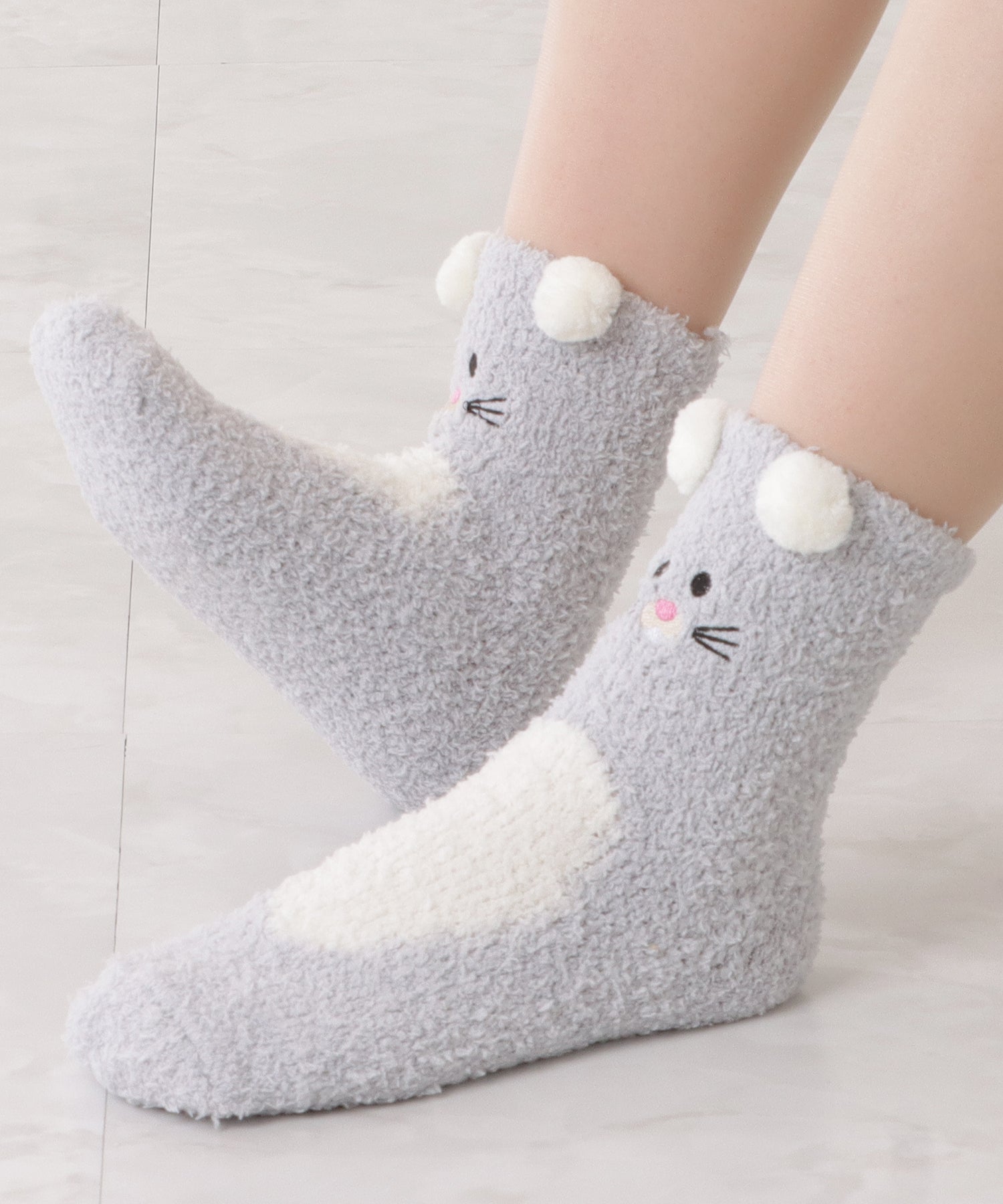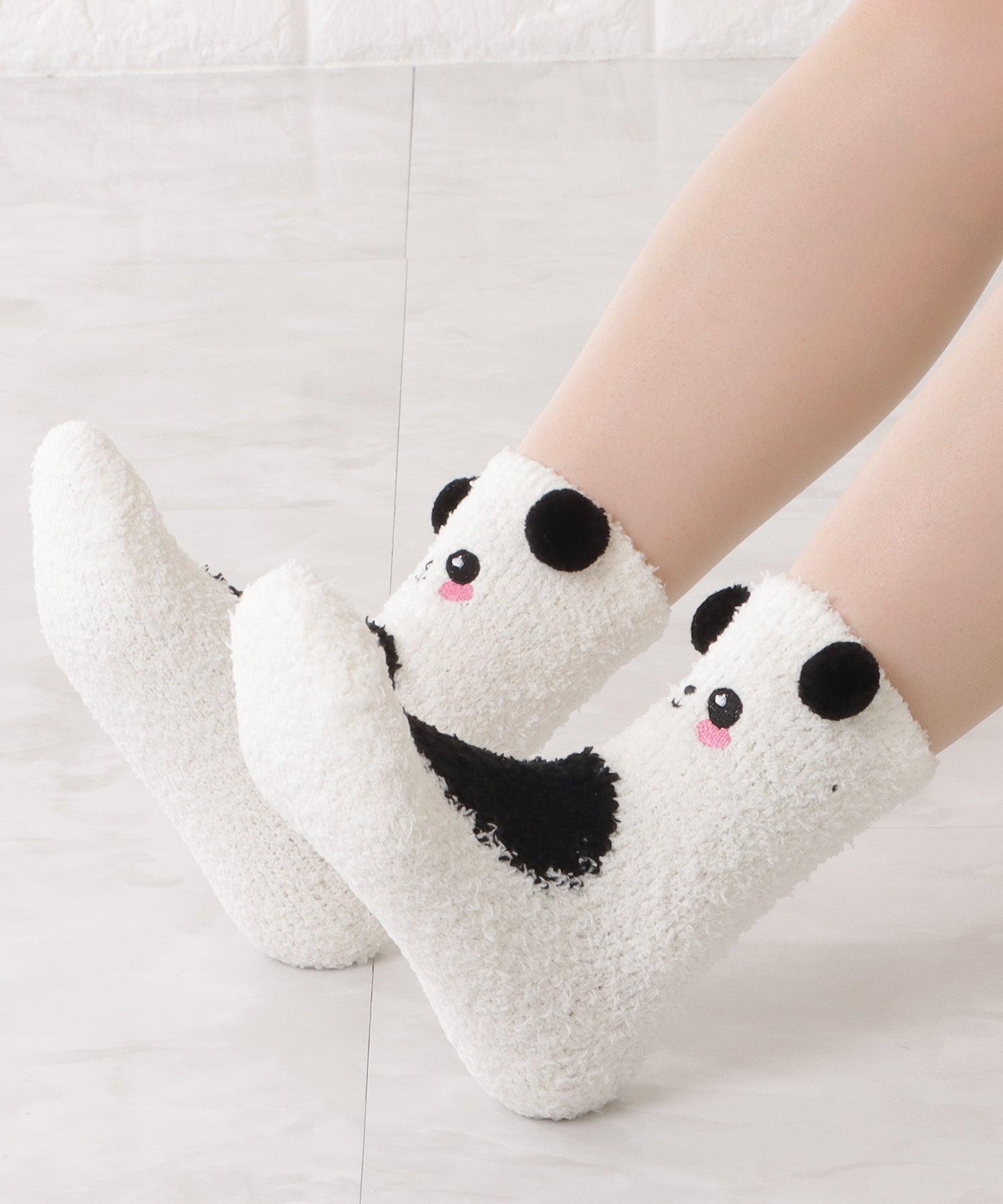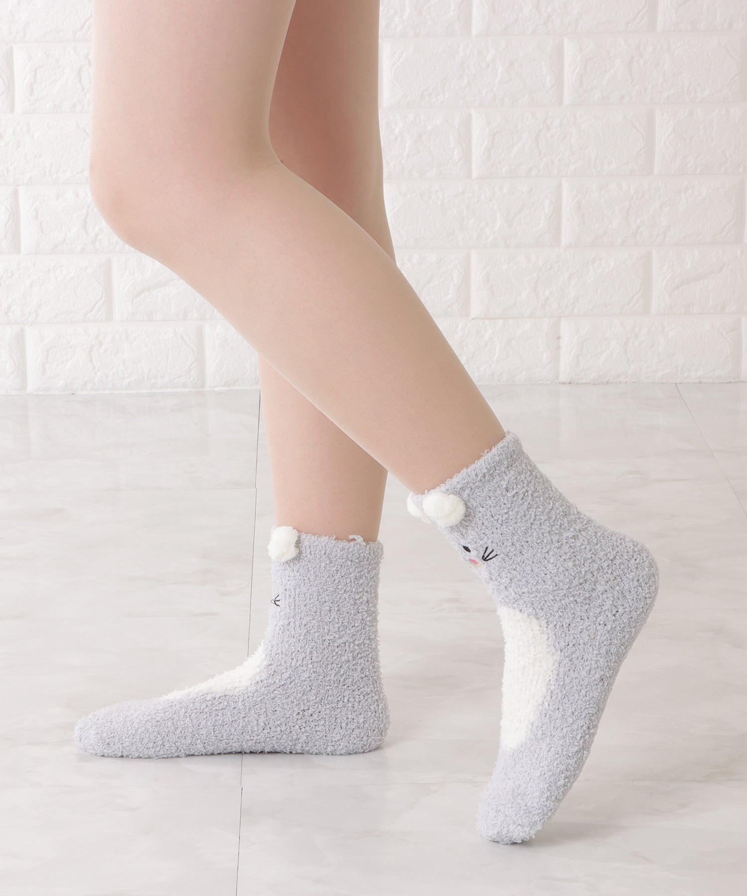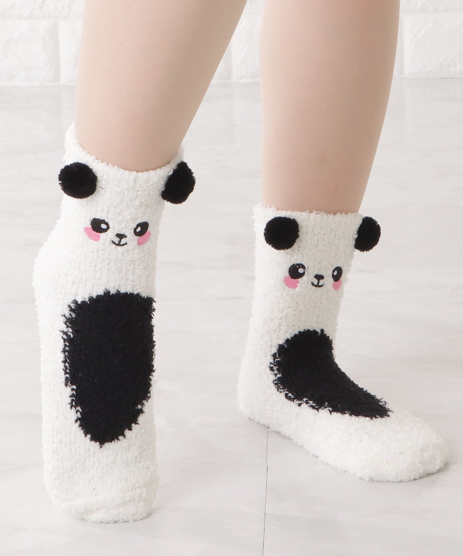 【5足セット】クルー丈ふわもちアニマルルックルームソックス