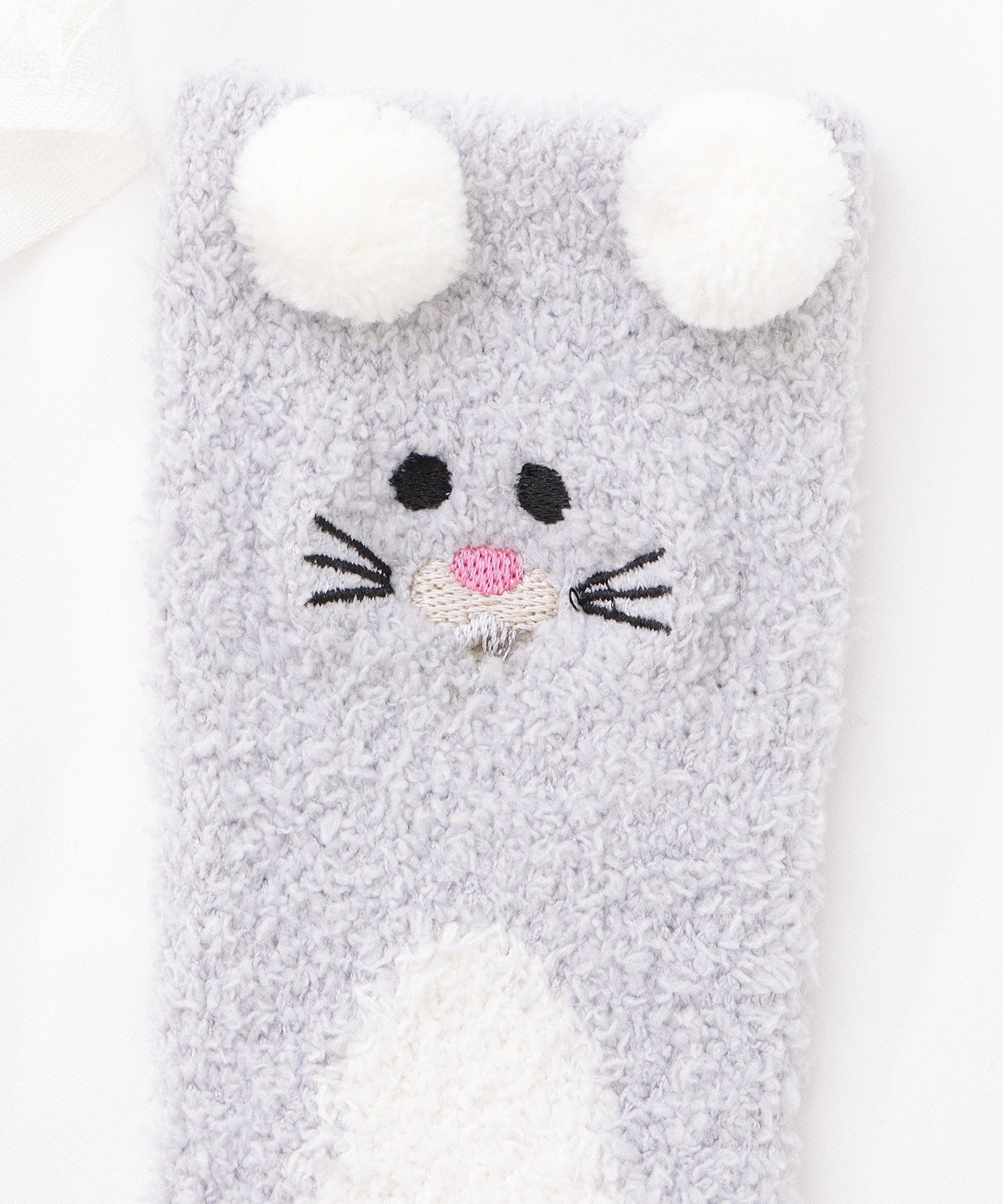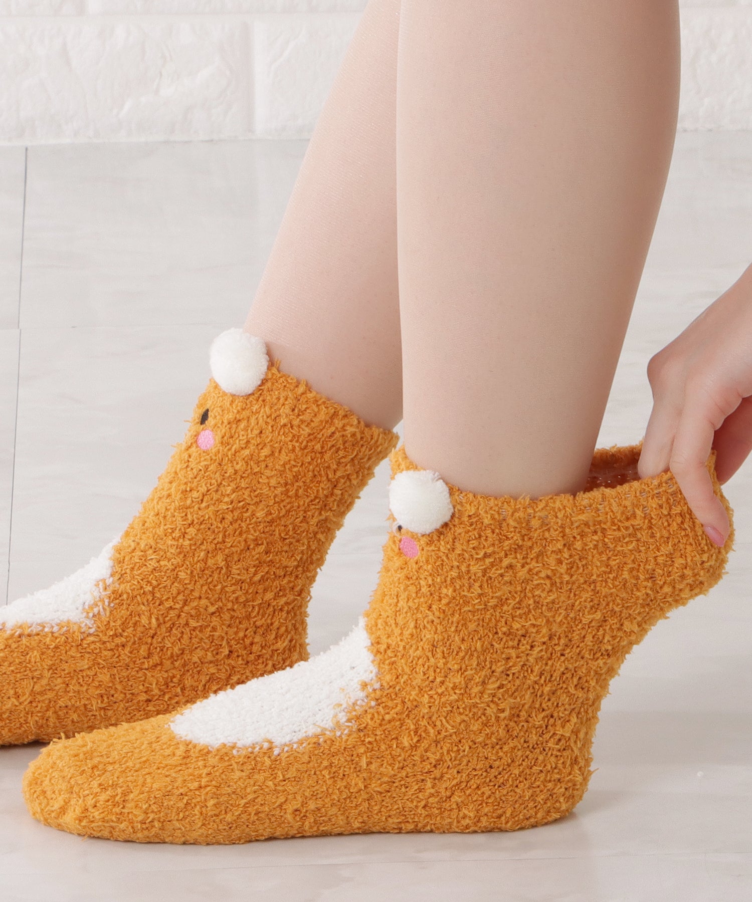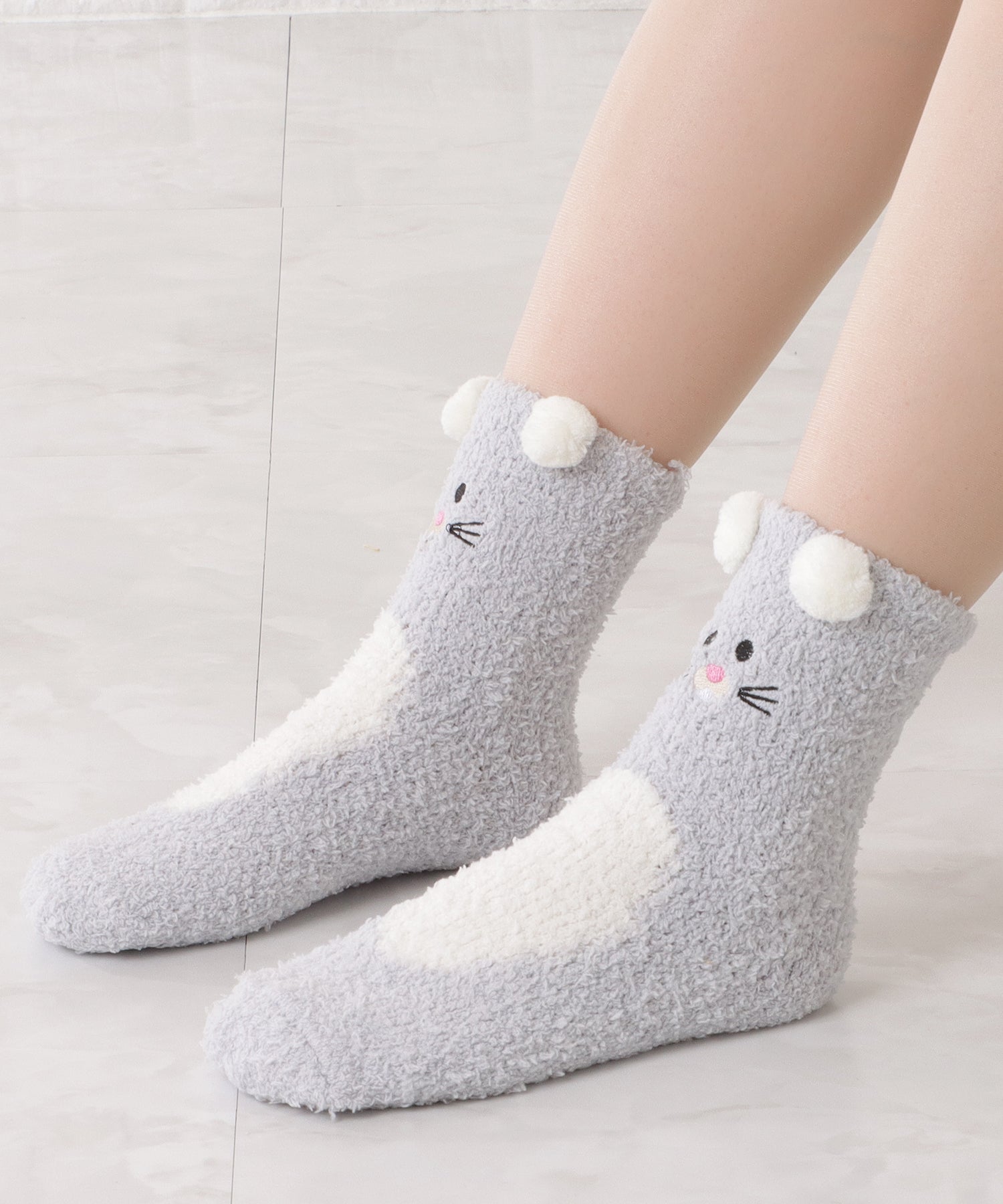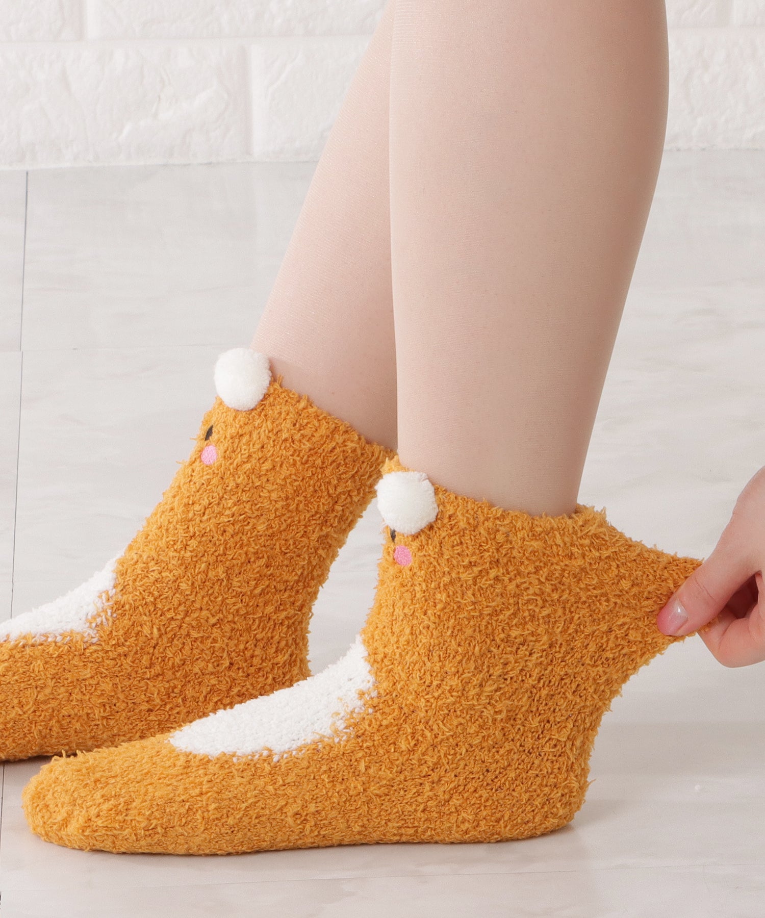 【5足セット】クルー丈ふわもちアニマルルックルームソックス
