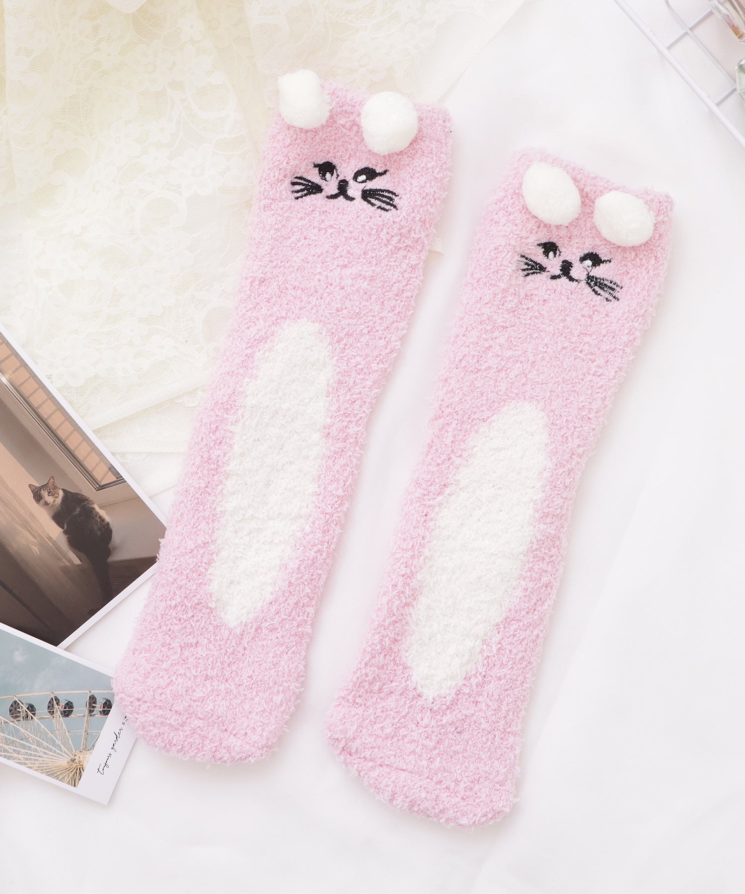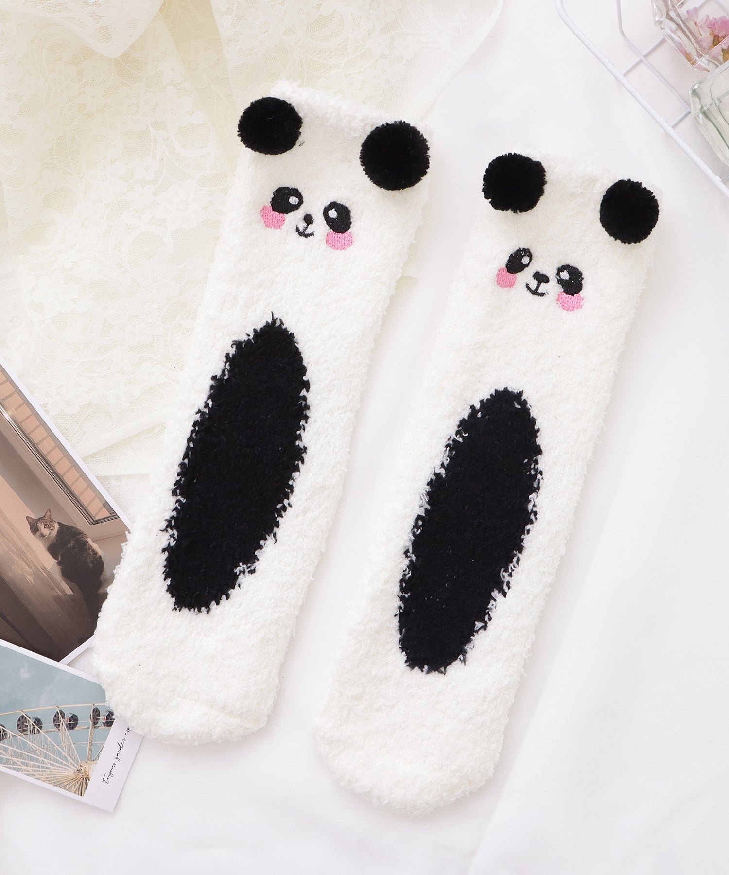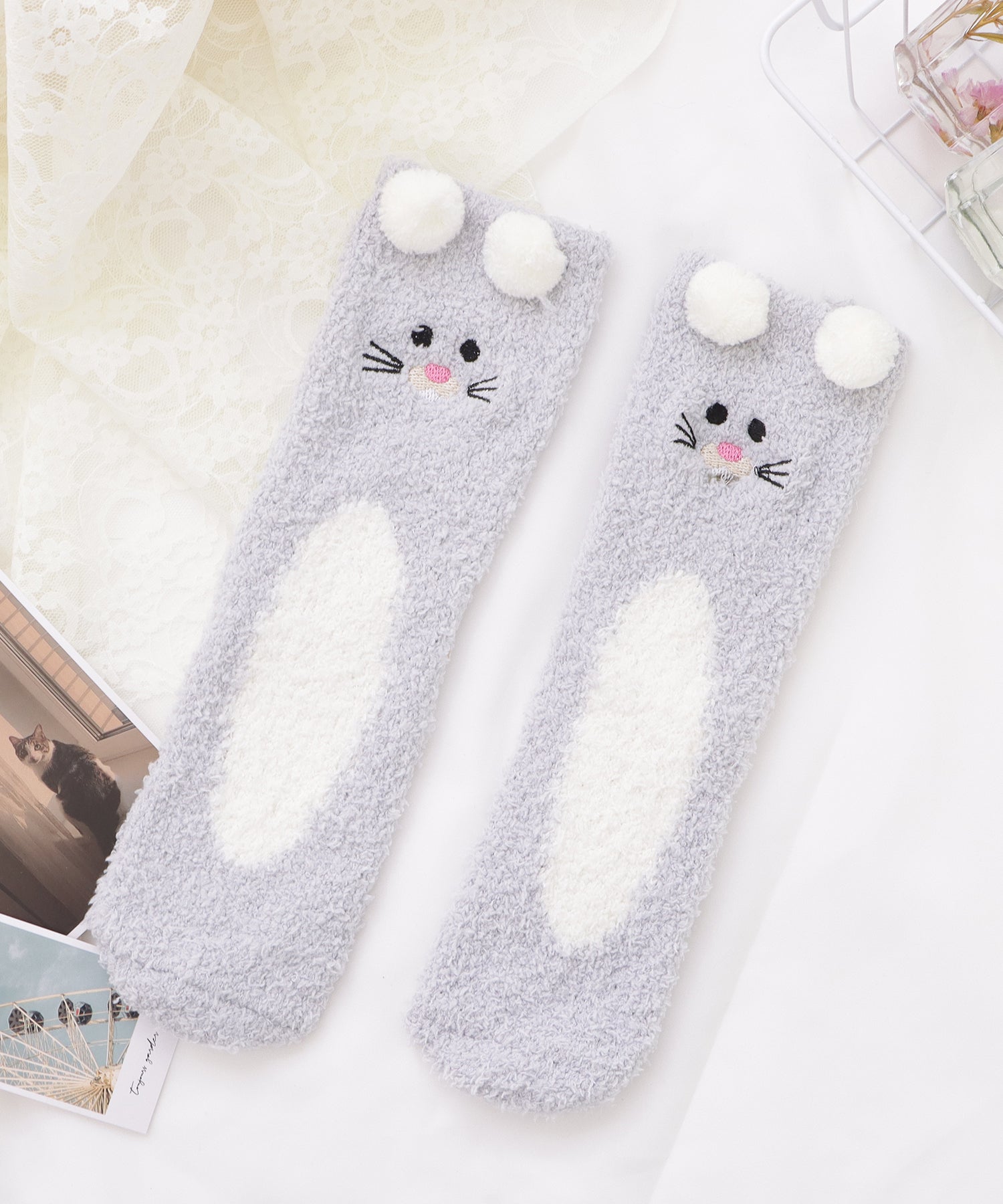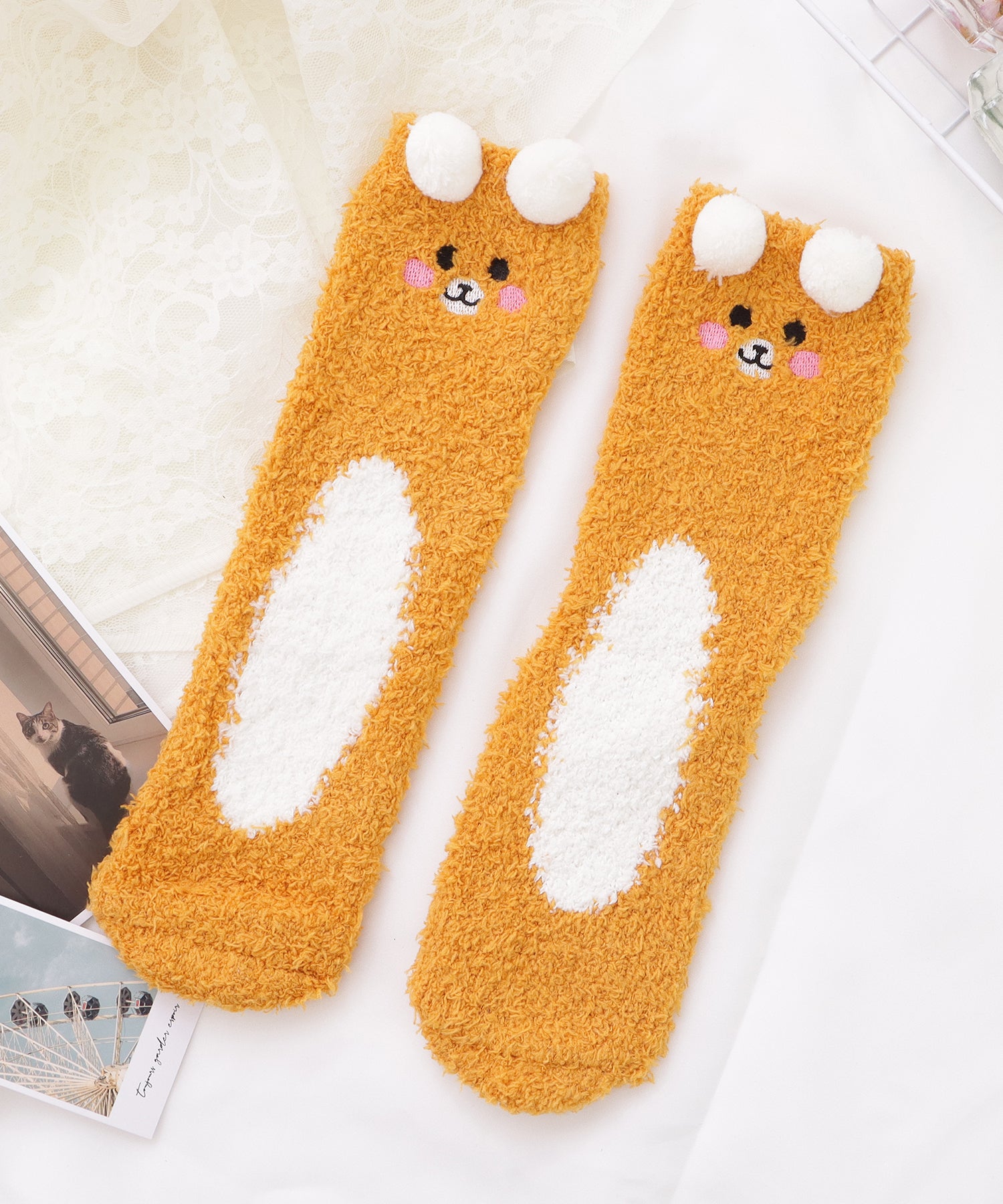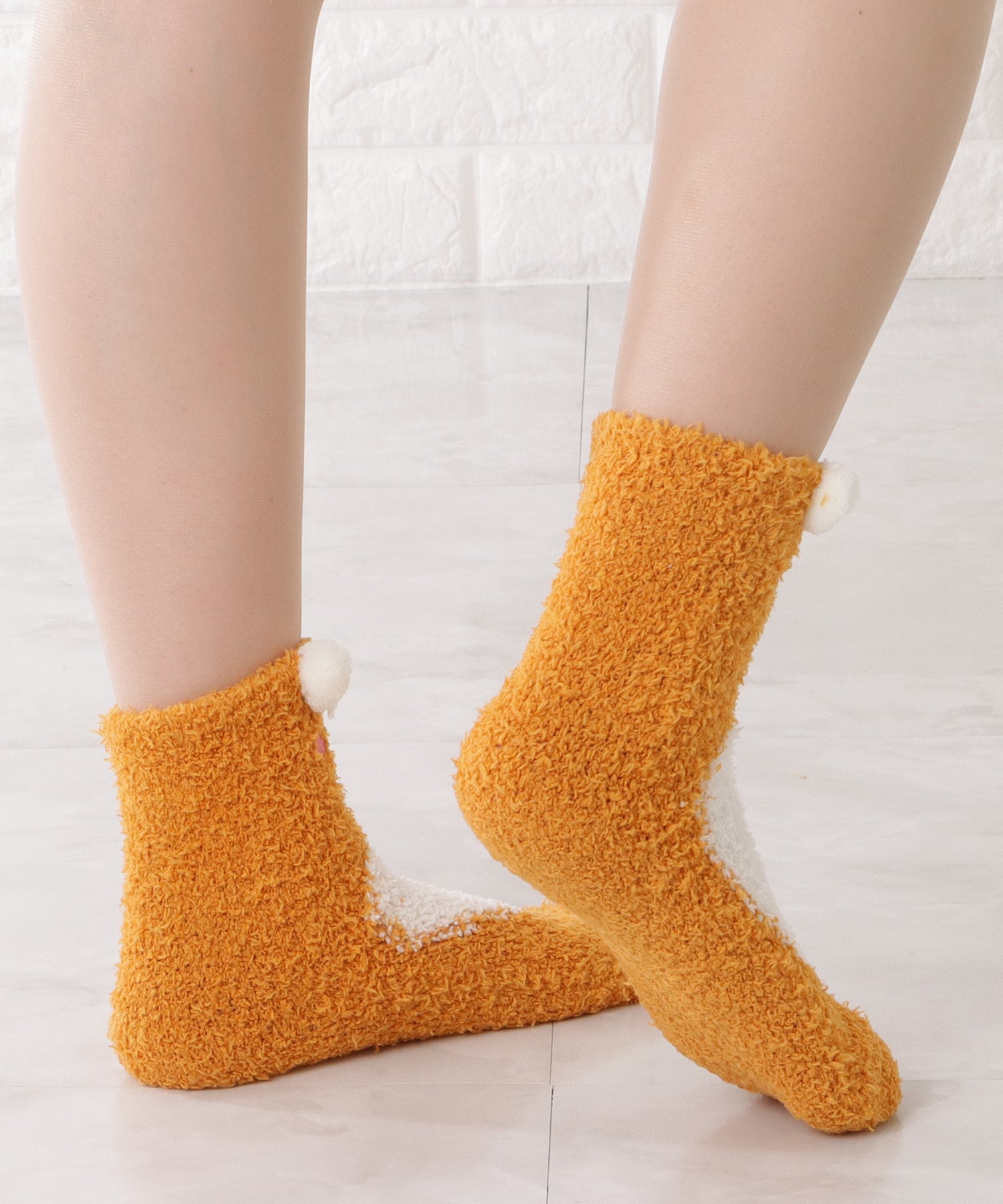 【5足セット】クルー丈ふわもちアニマルルックルームソックス