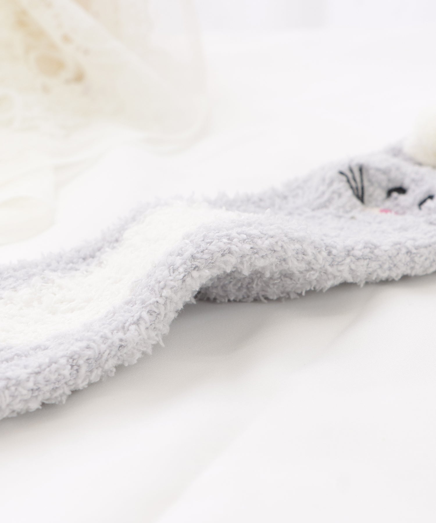 ぬいぐるみを身につけているような可愛らしさで、ポンポン調のお耳がアクセントになっています。