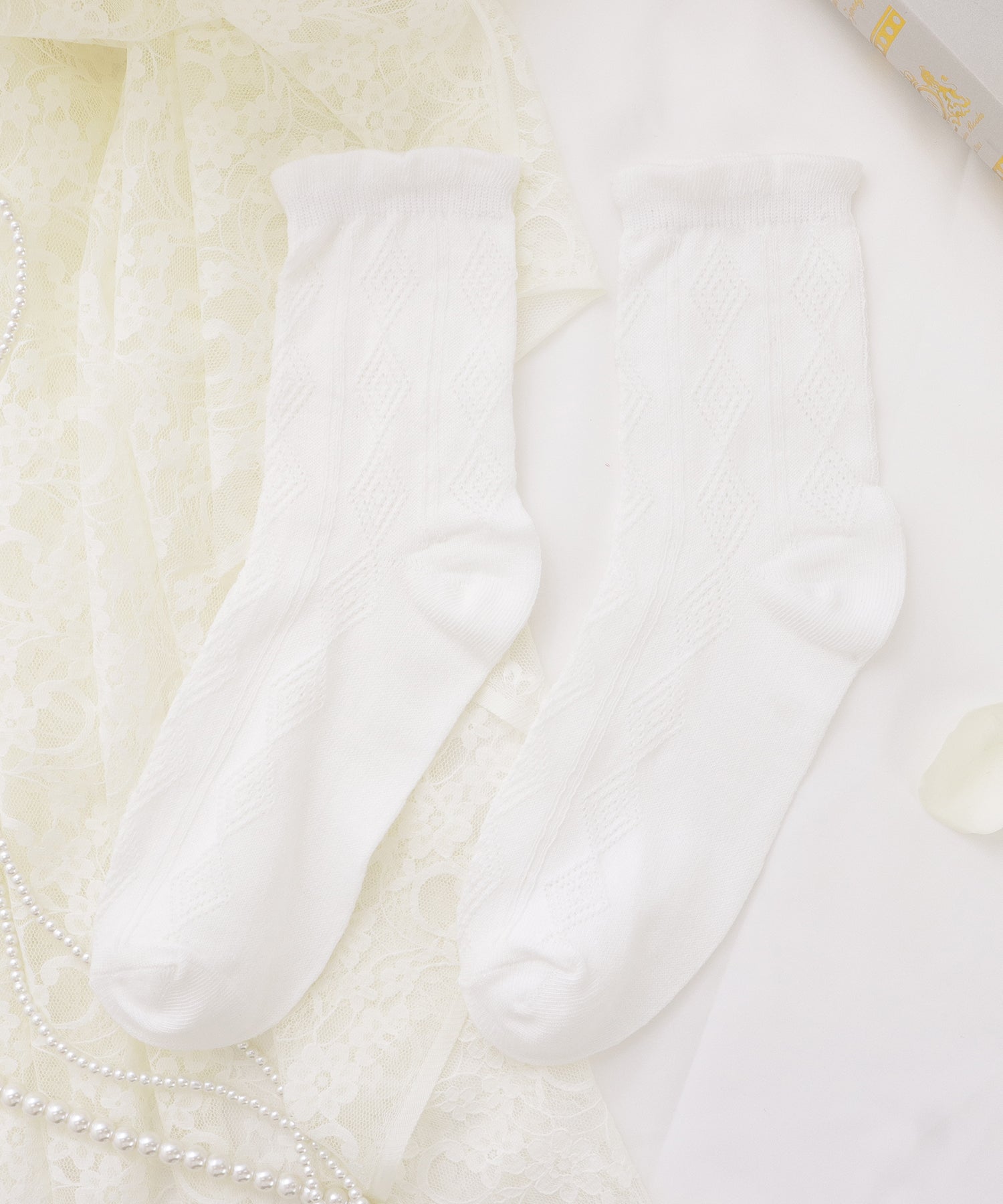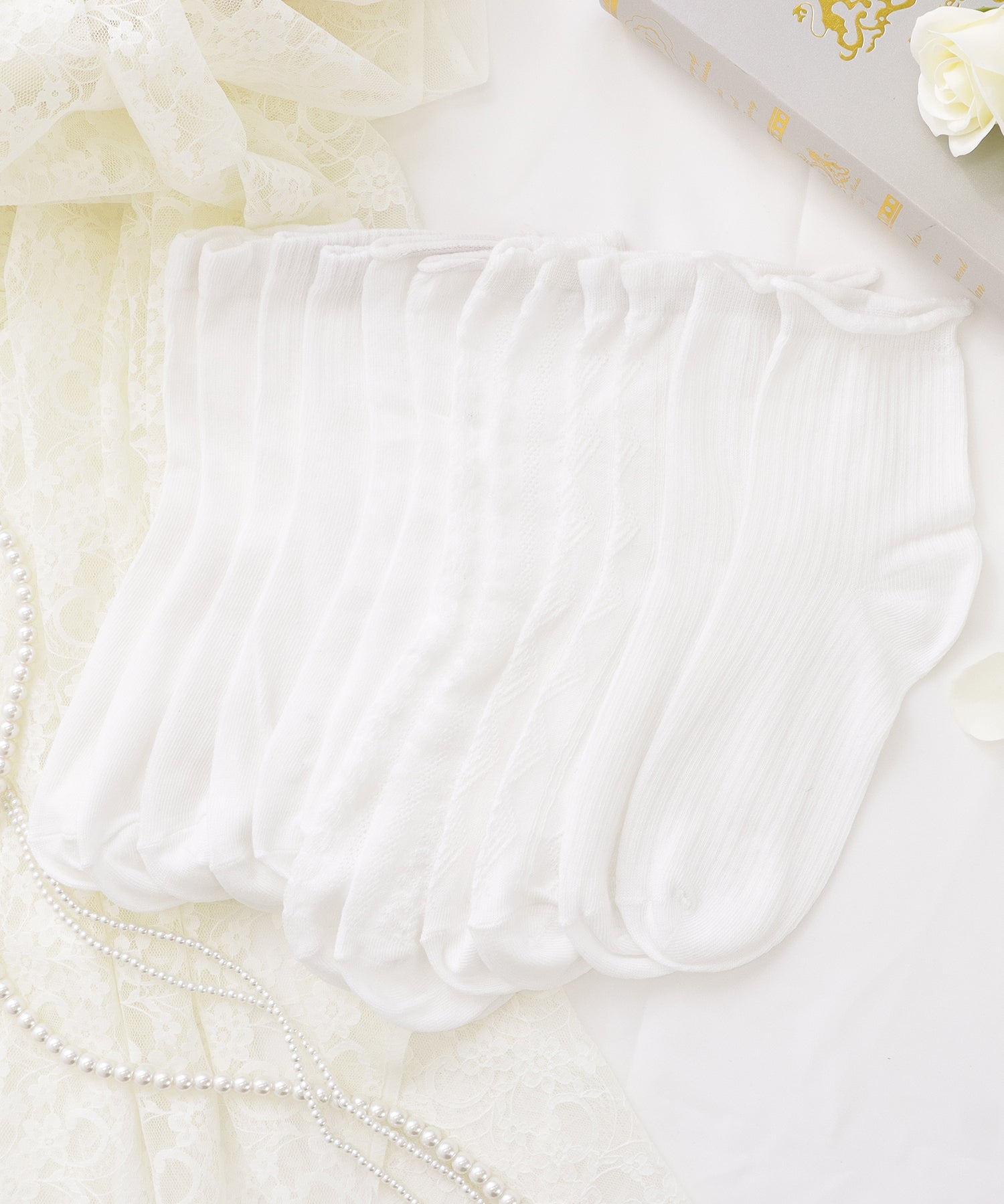 【12足セット】ホワイトダイヤデザインショート丈ソックス