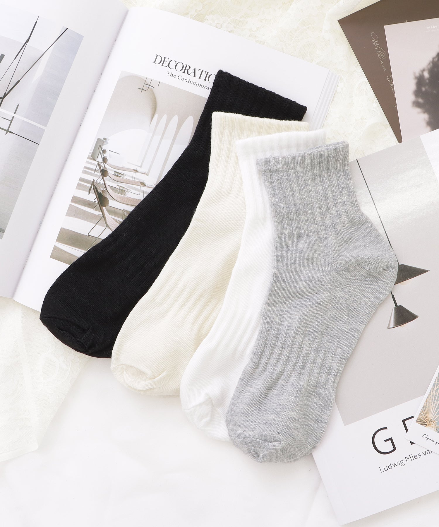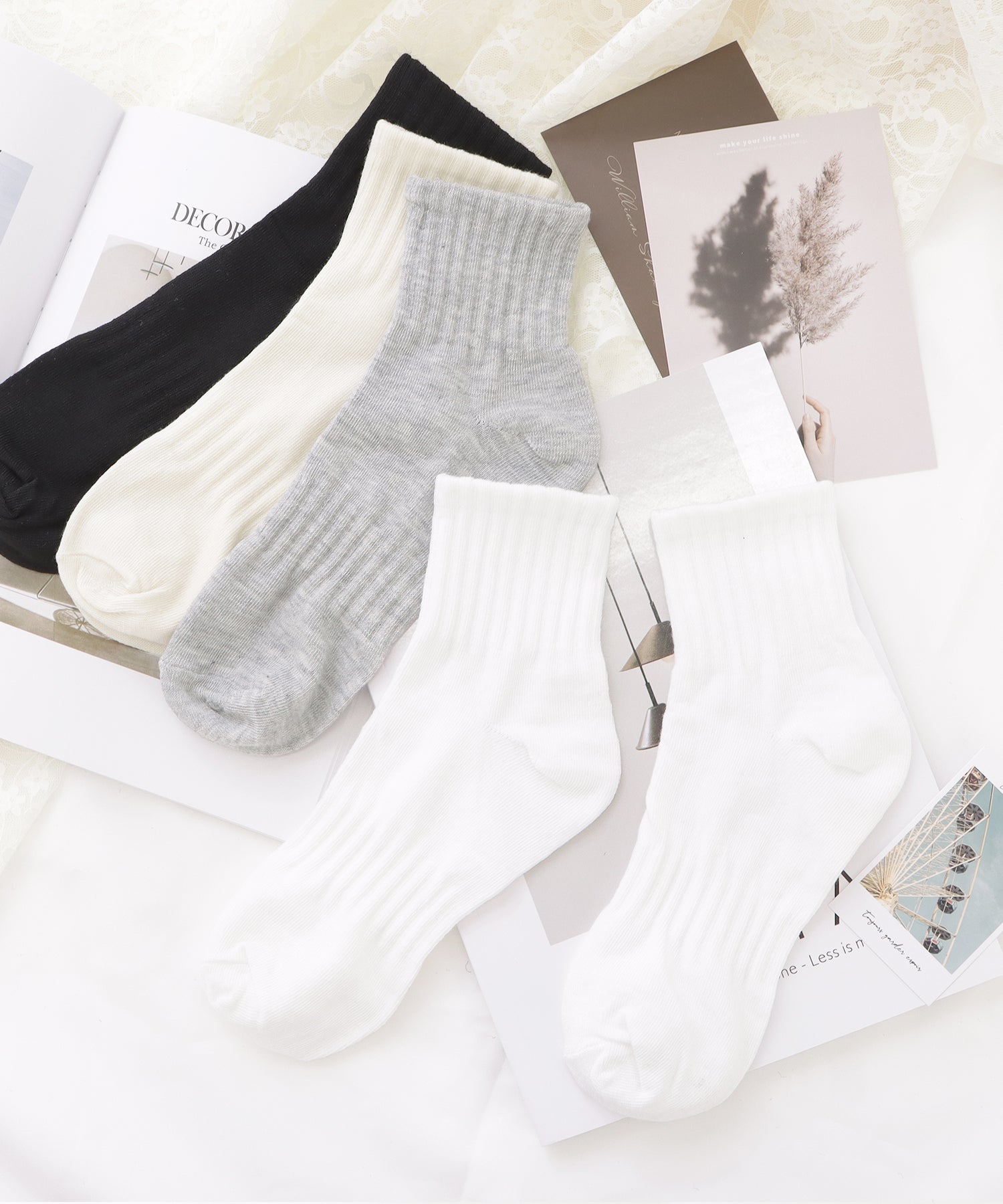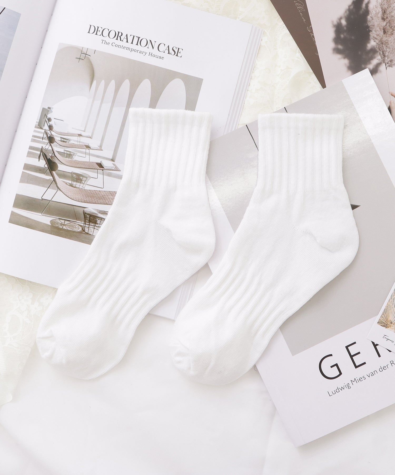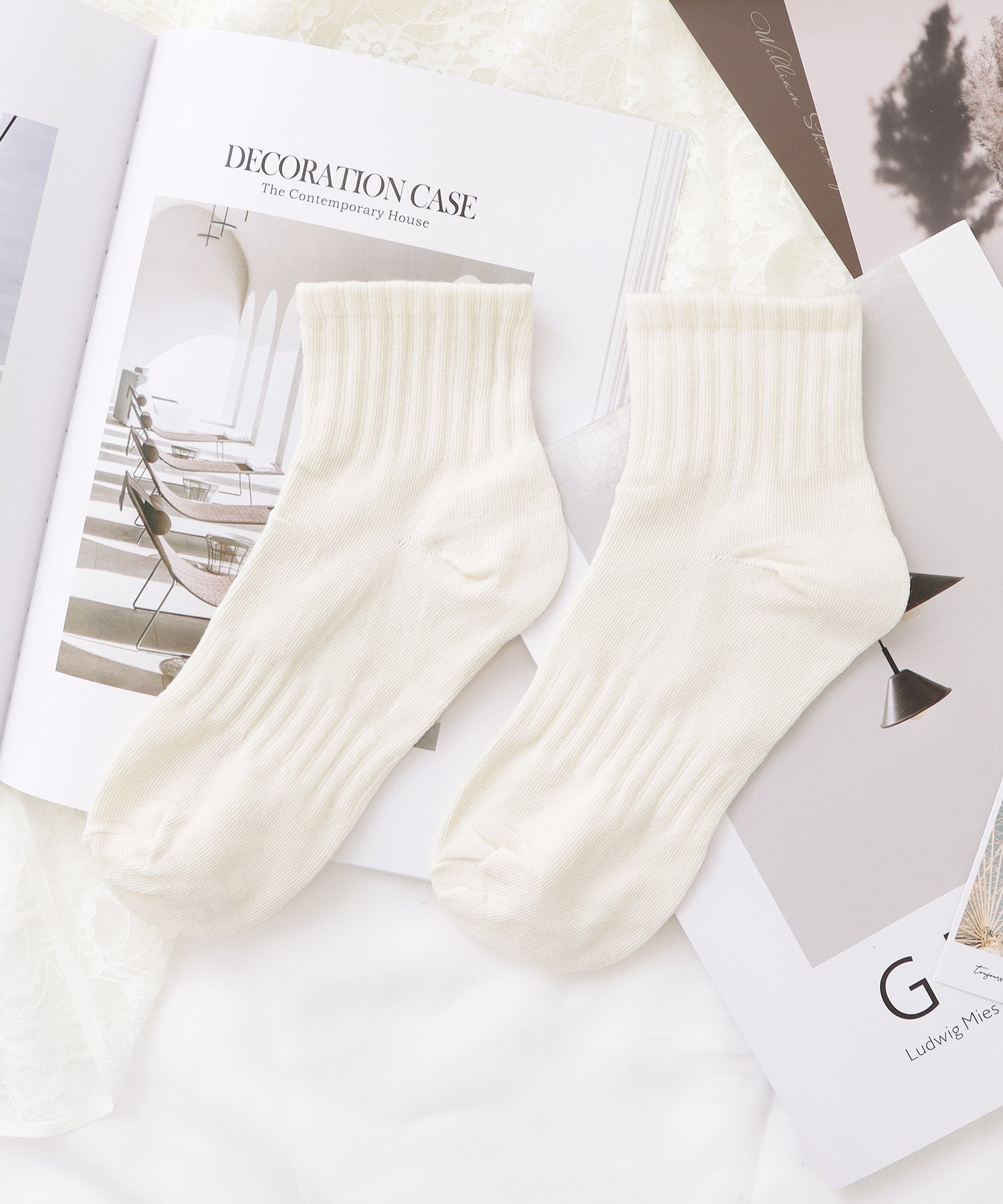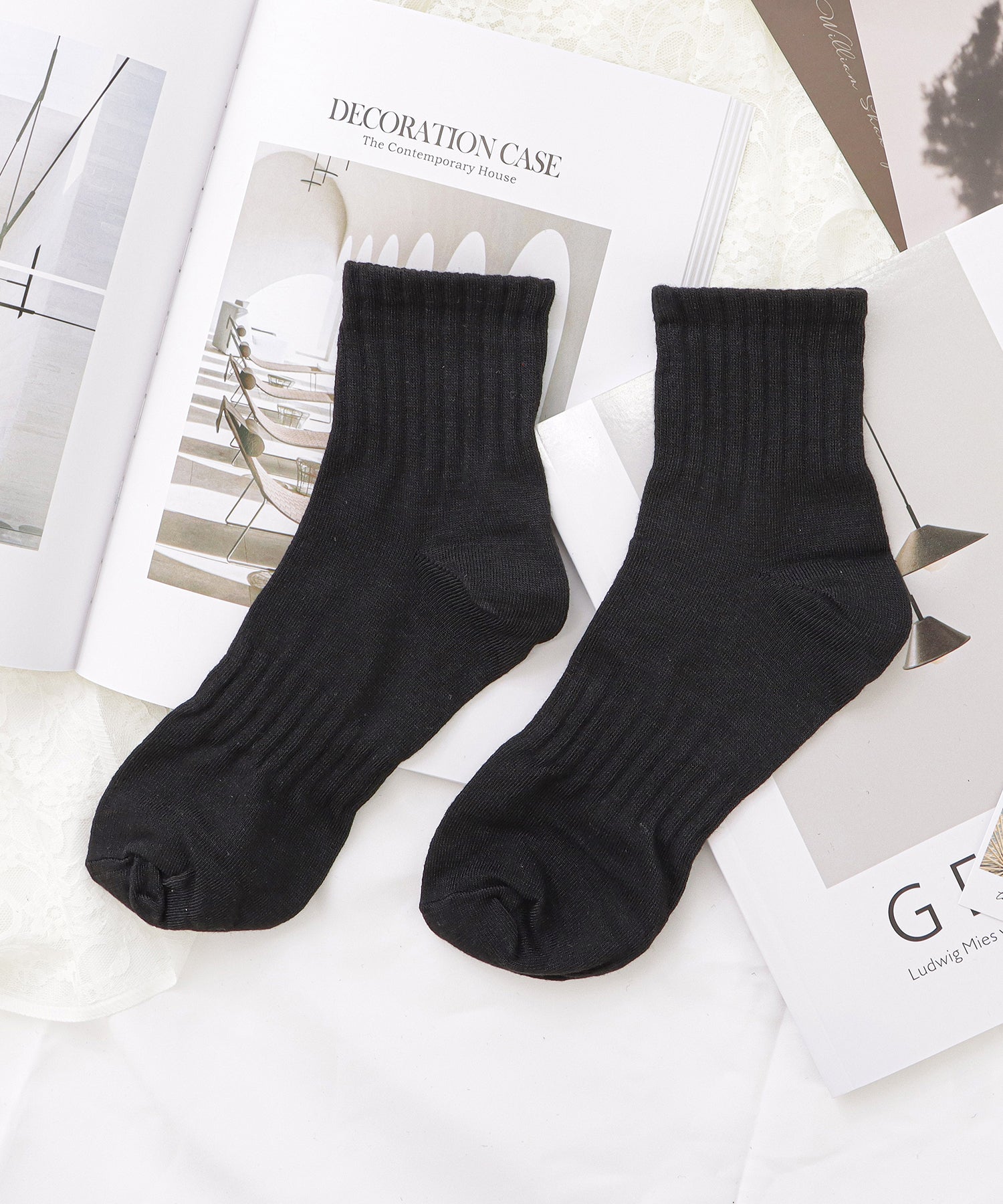 合わせるアイテムを選ばず、コーディネートに取り入れやすい無地のソックス。