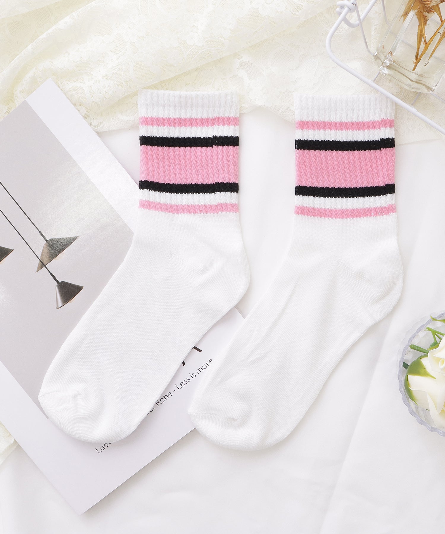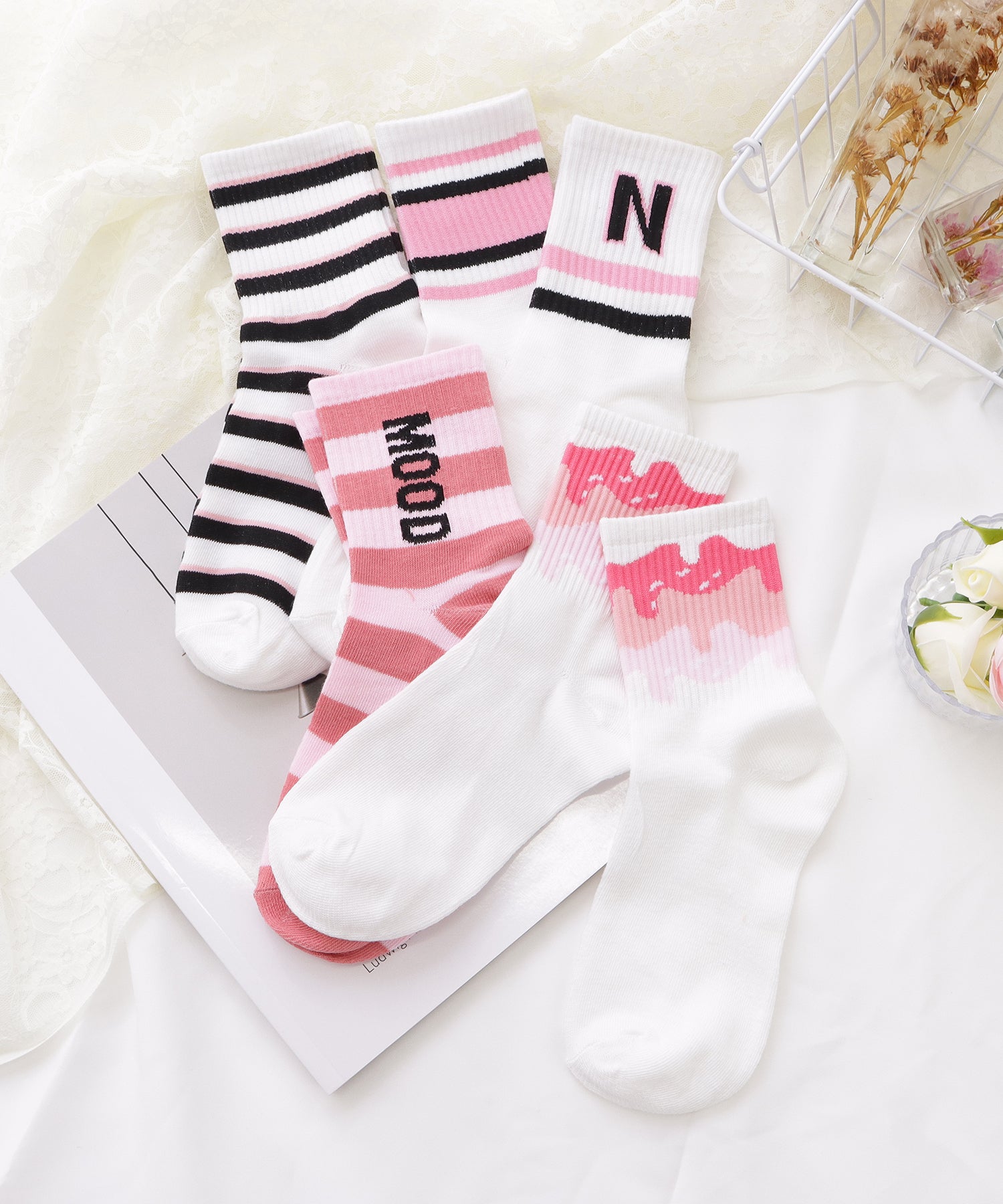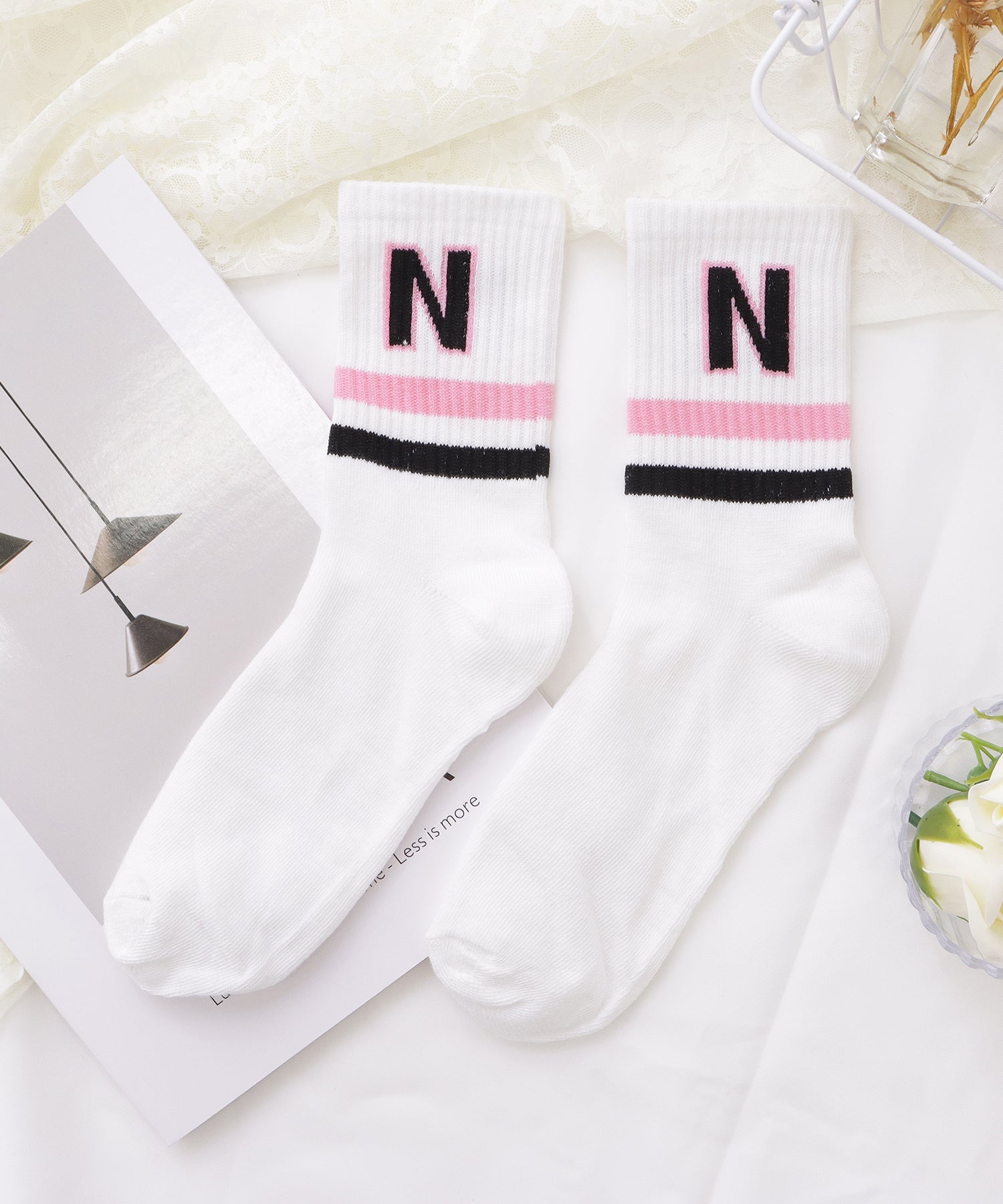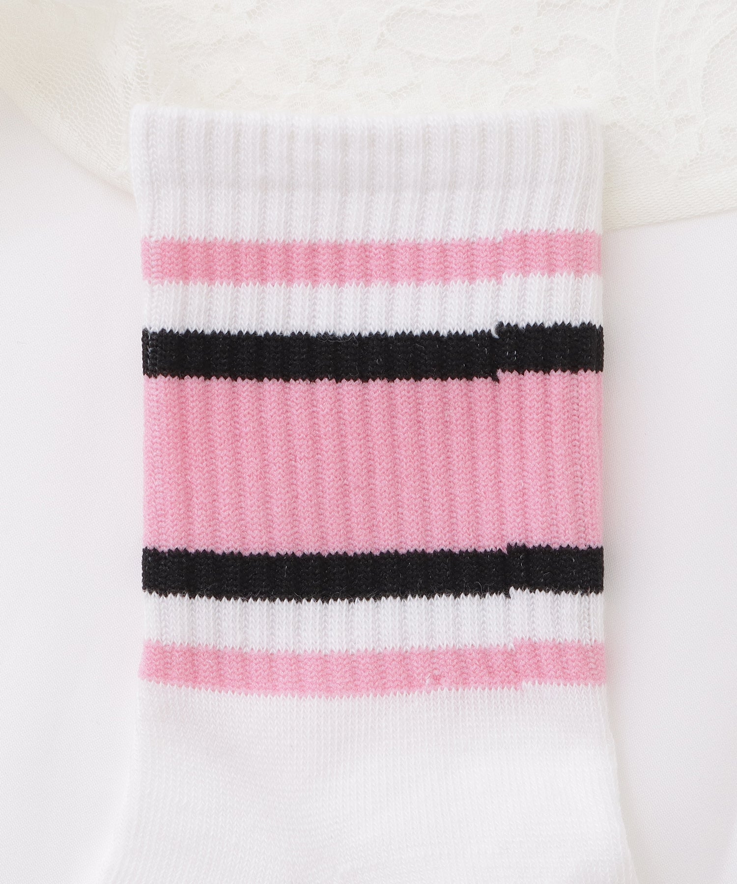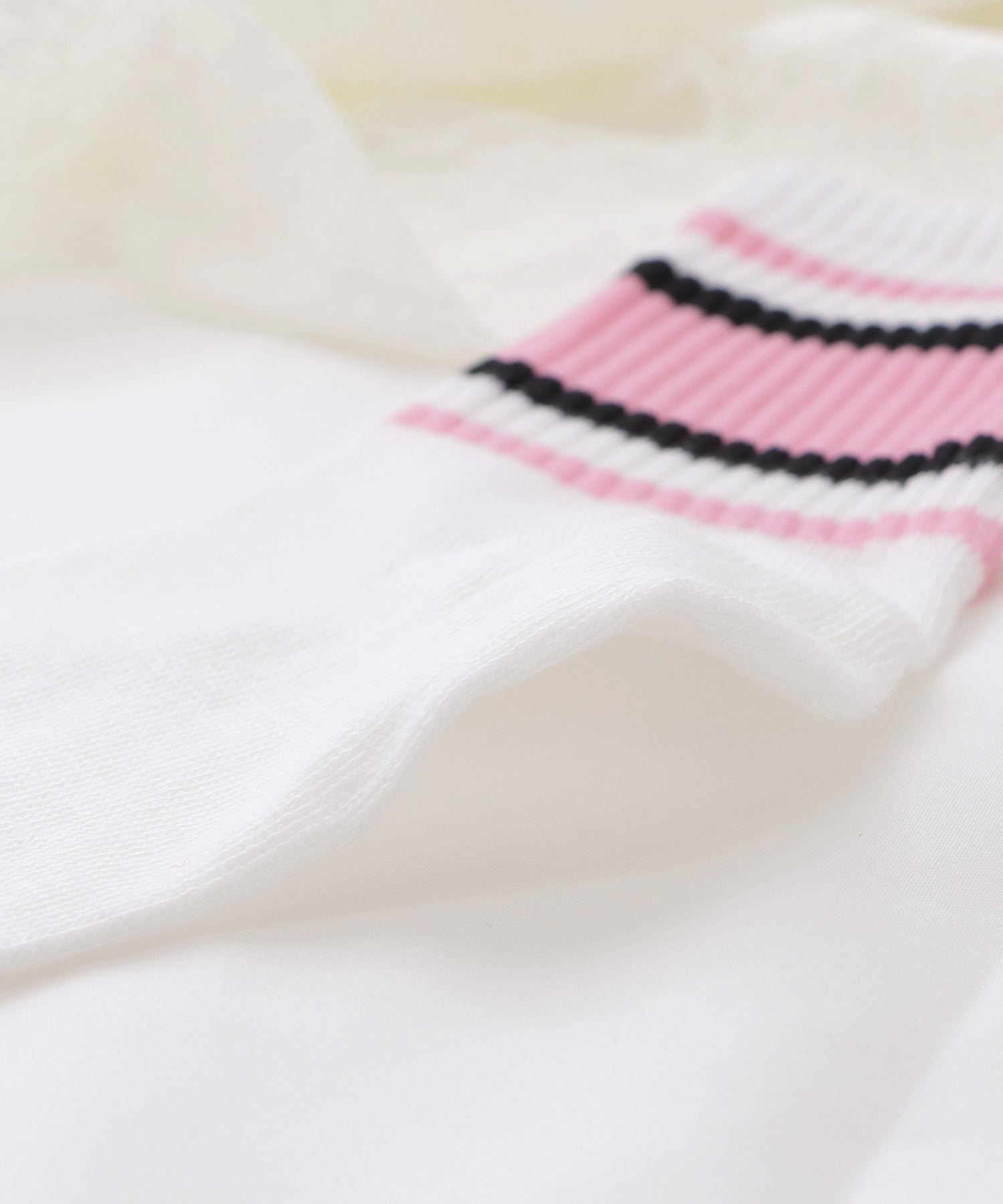 ホワイト×ピンクをベースとした女の子らしい配色で、英字ロゴやデザインでポップに飾った一足。