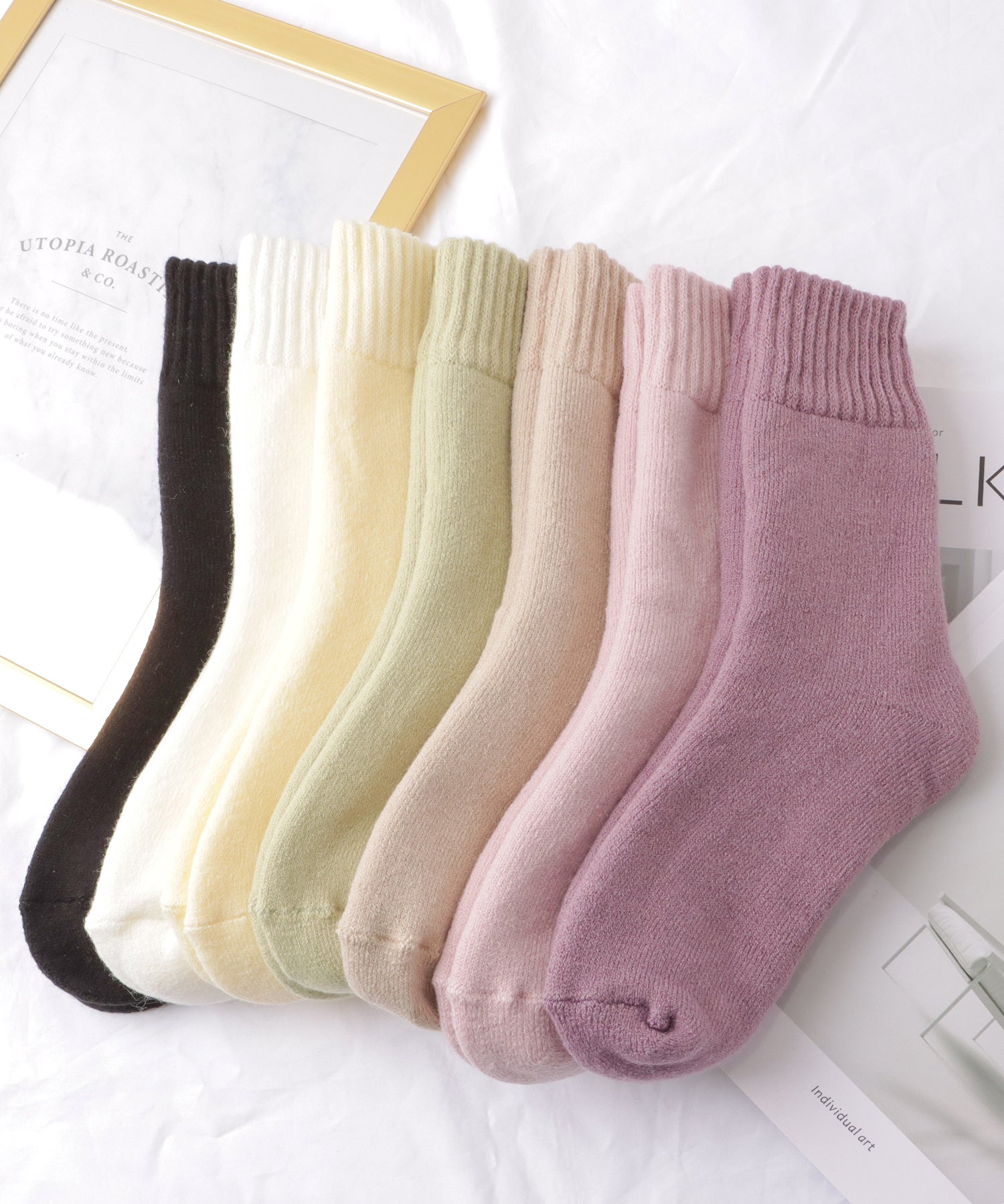 まるでカシミヤのような、ふんわりとなめらかな肌ざわりが心地良いルームソックス。