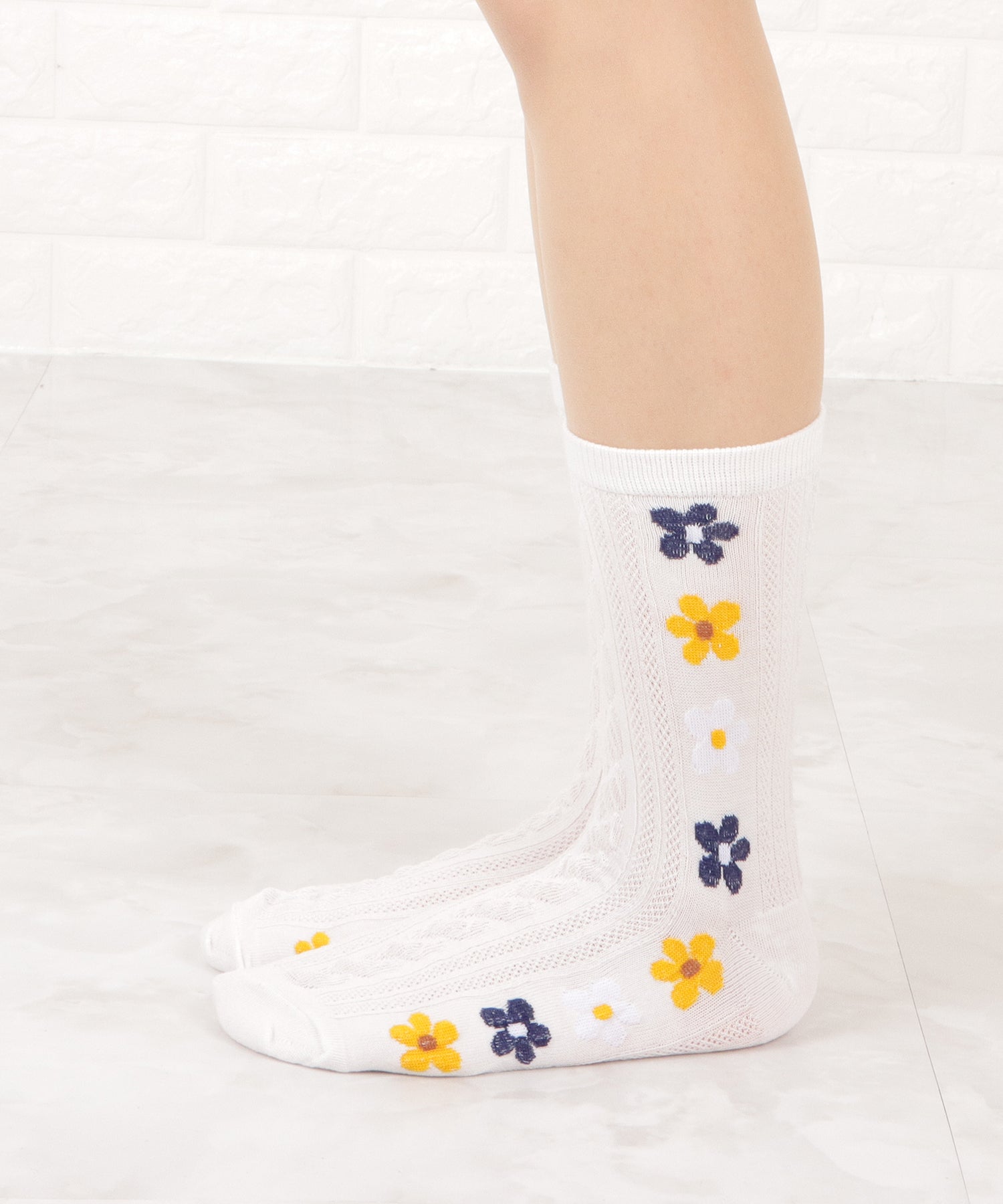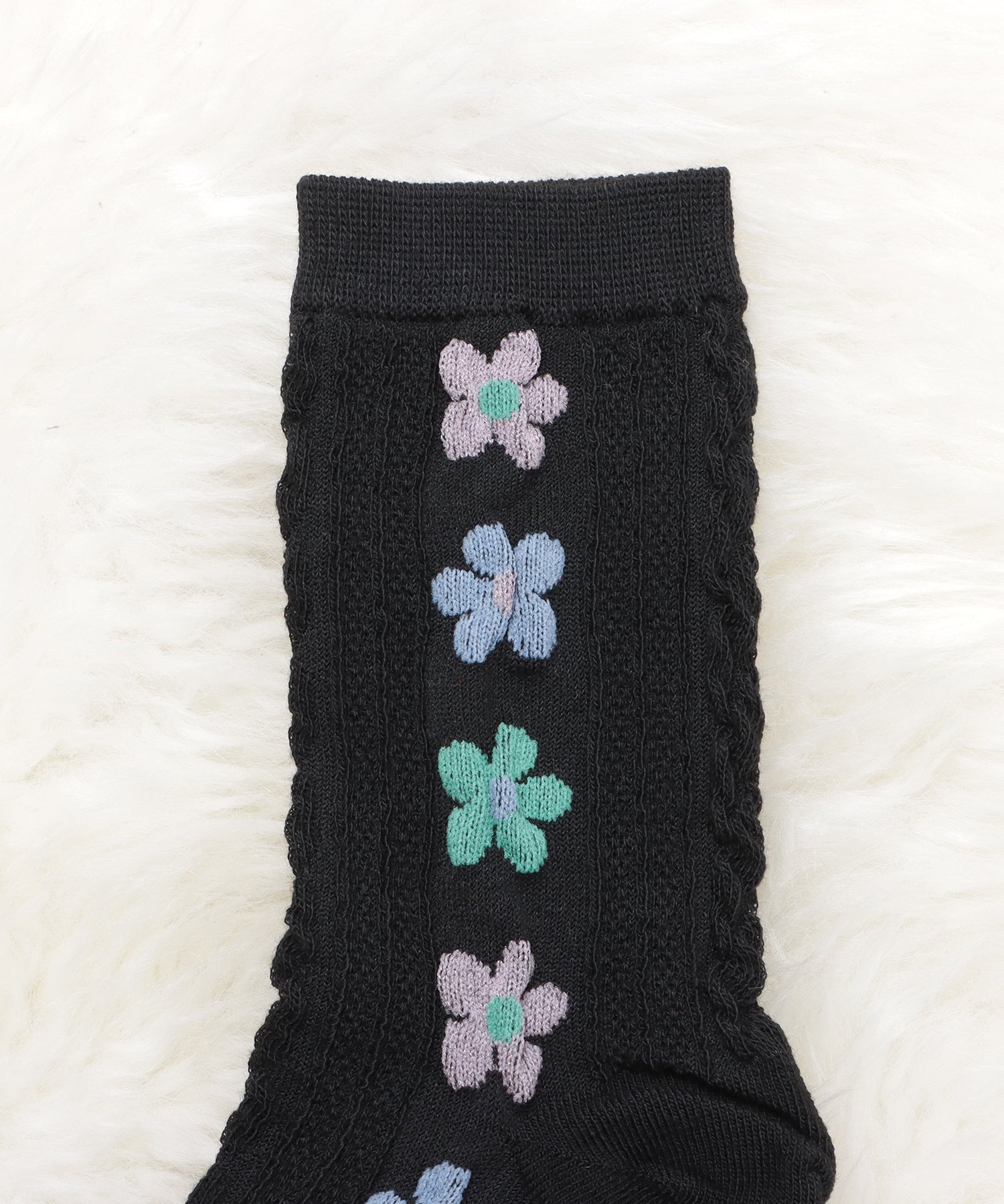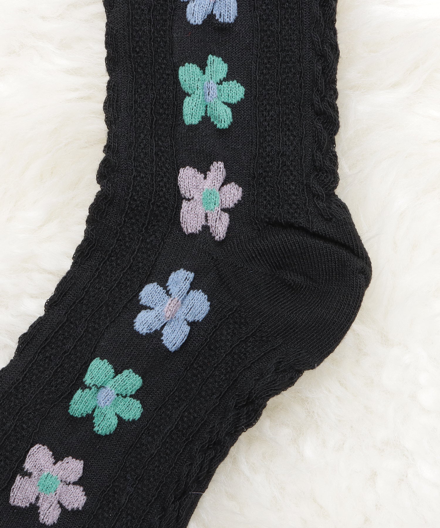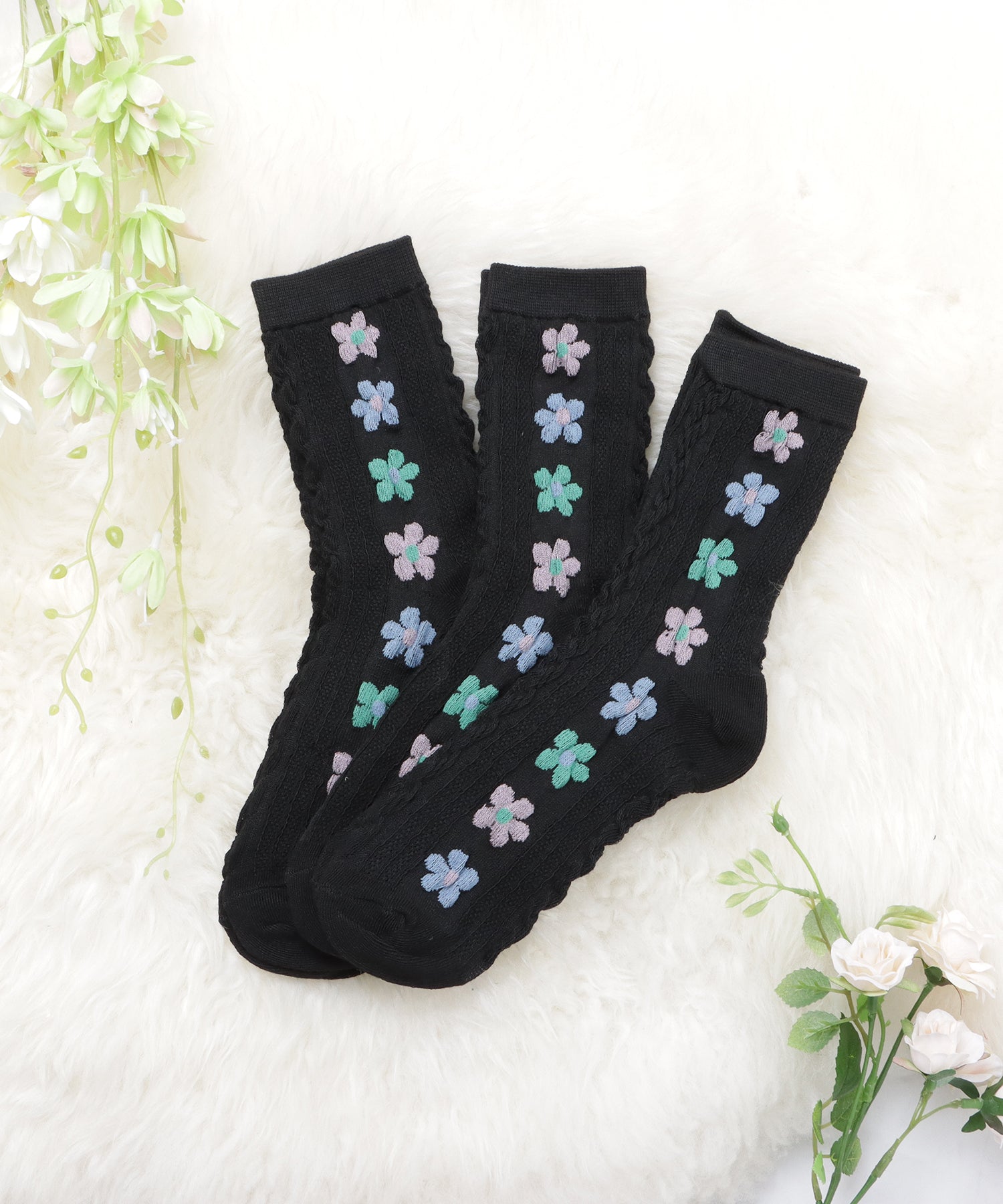 レトロでポップな花柄が目を惹く、クルーソックス3足セット