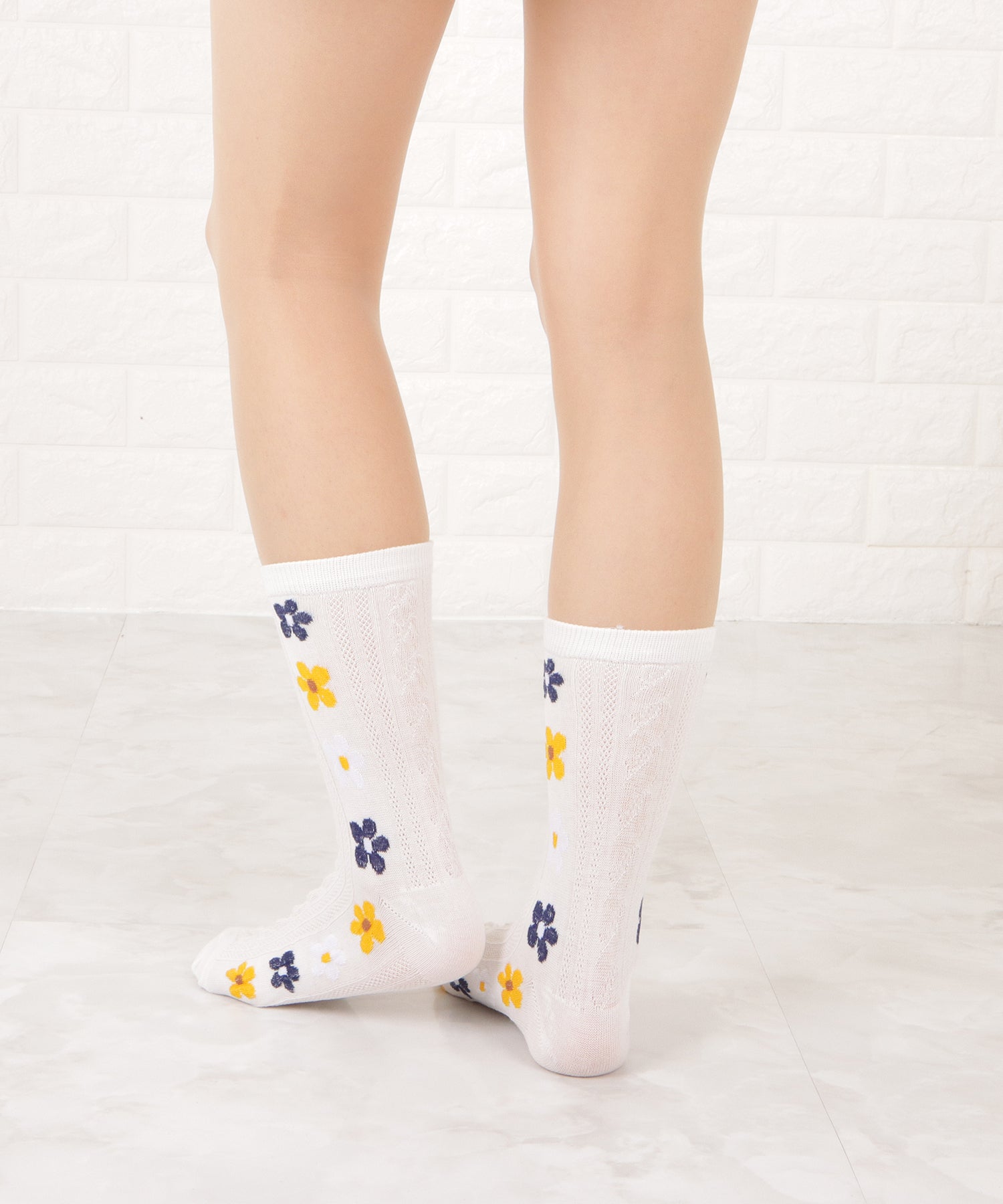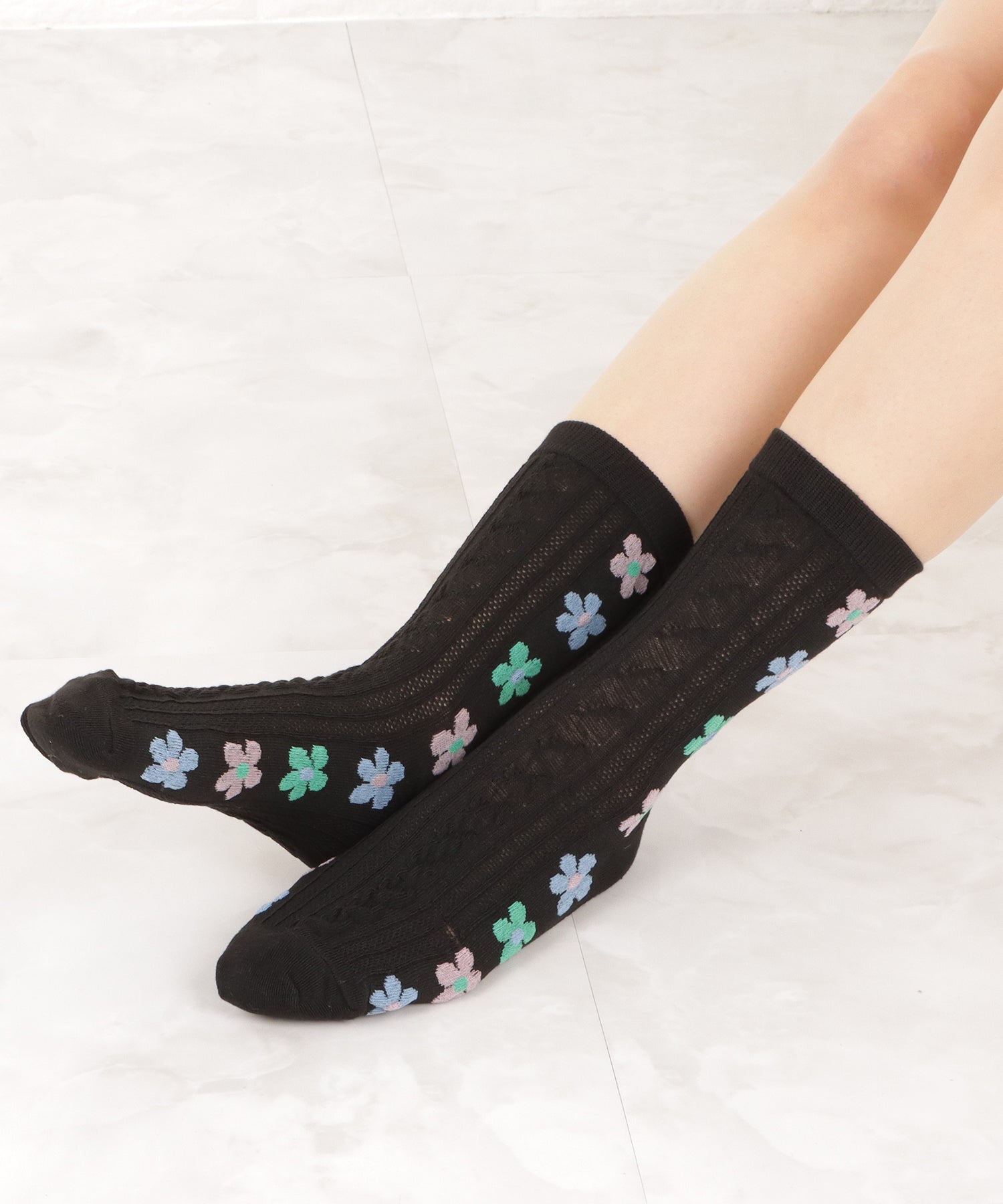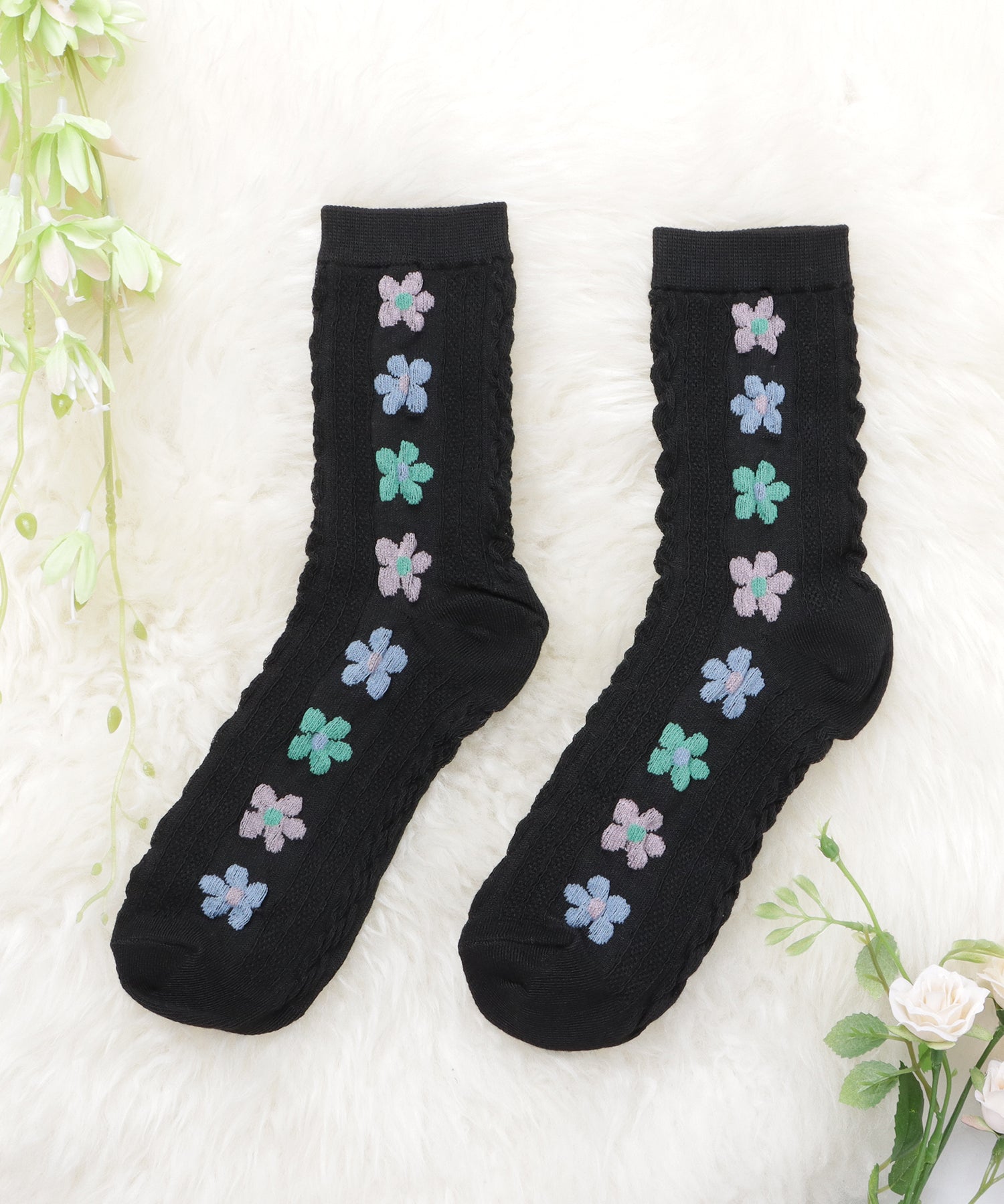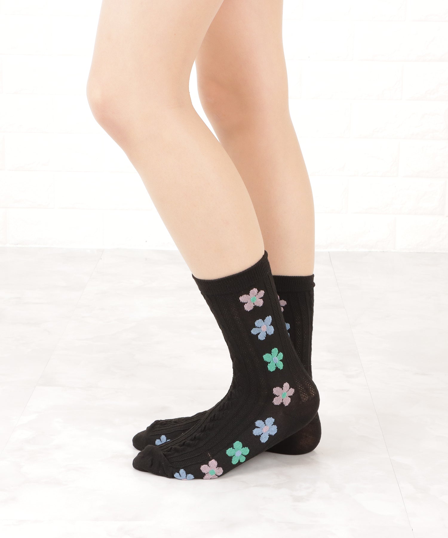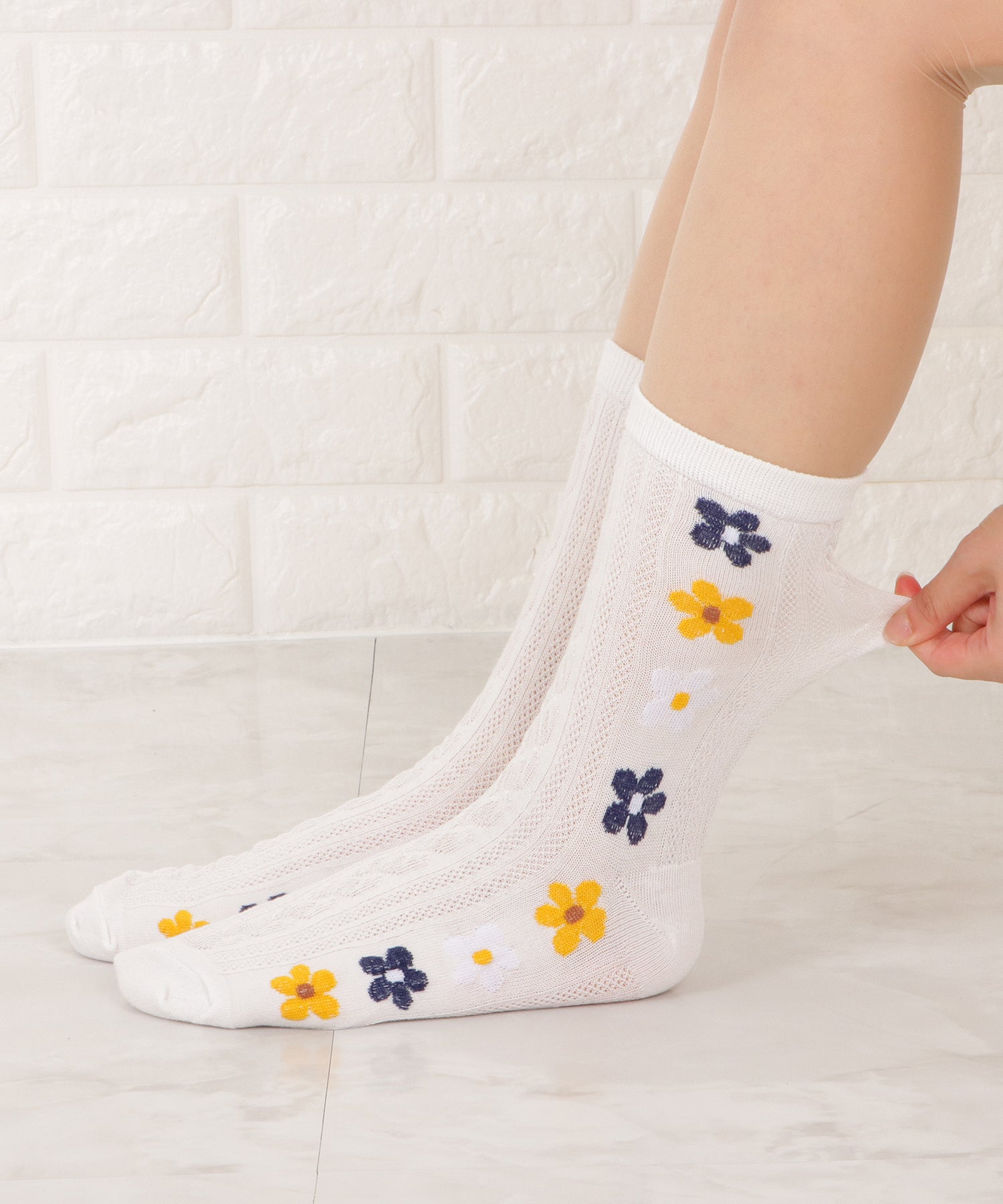 レトロでポップな花柄が目を惹く、クルーソックス3足セット