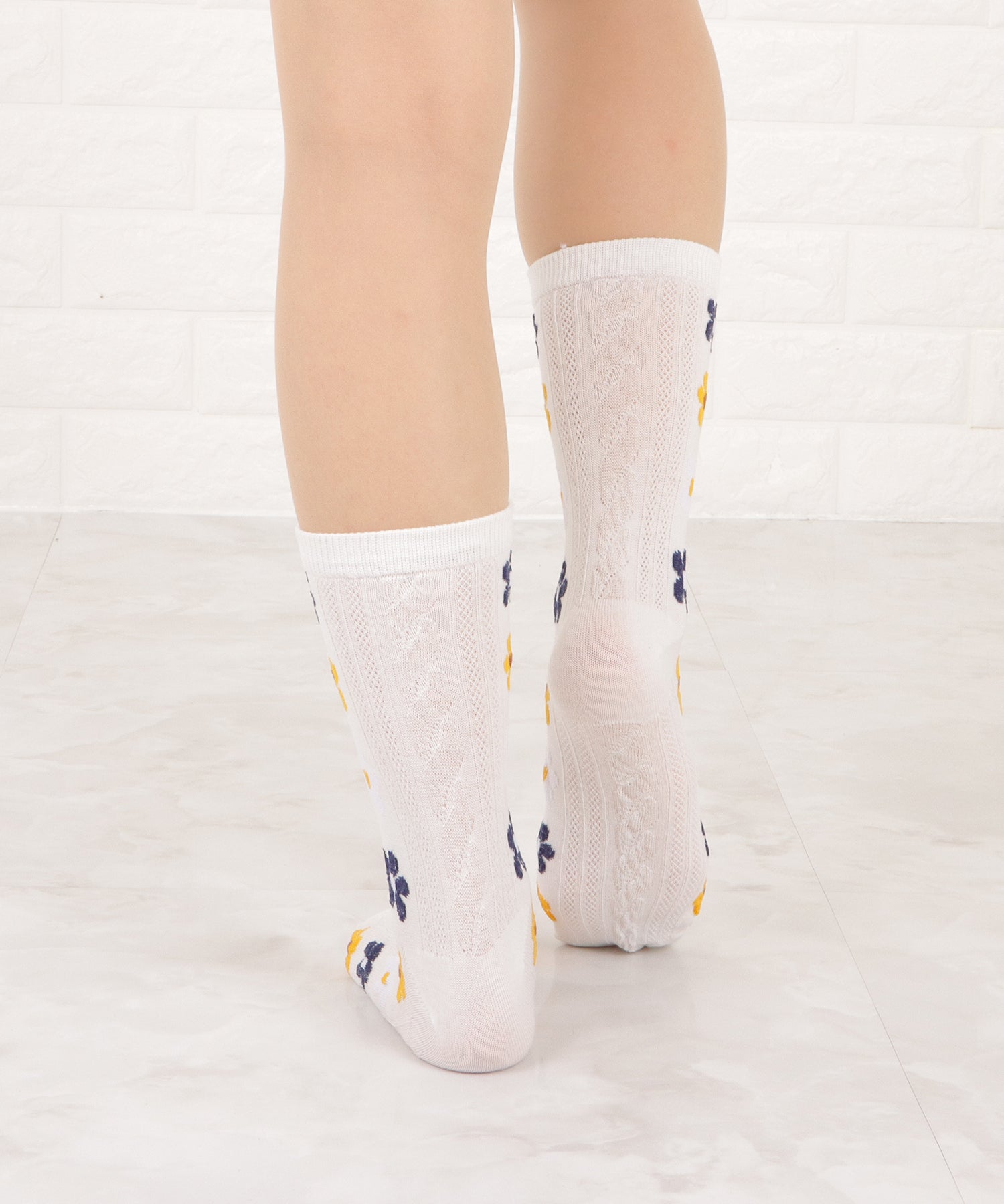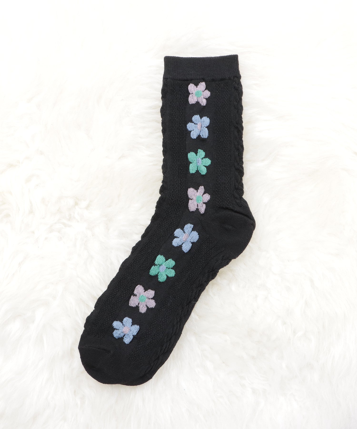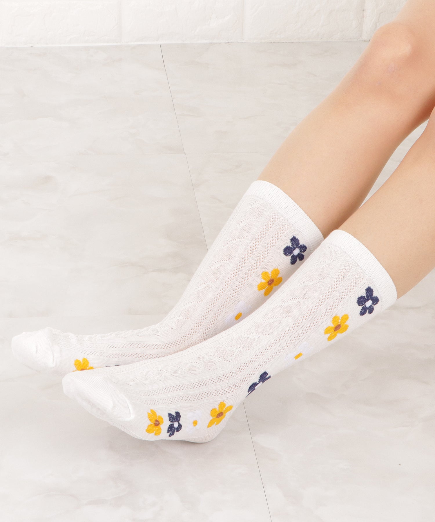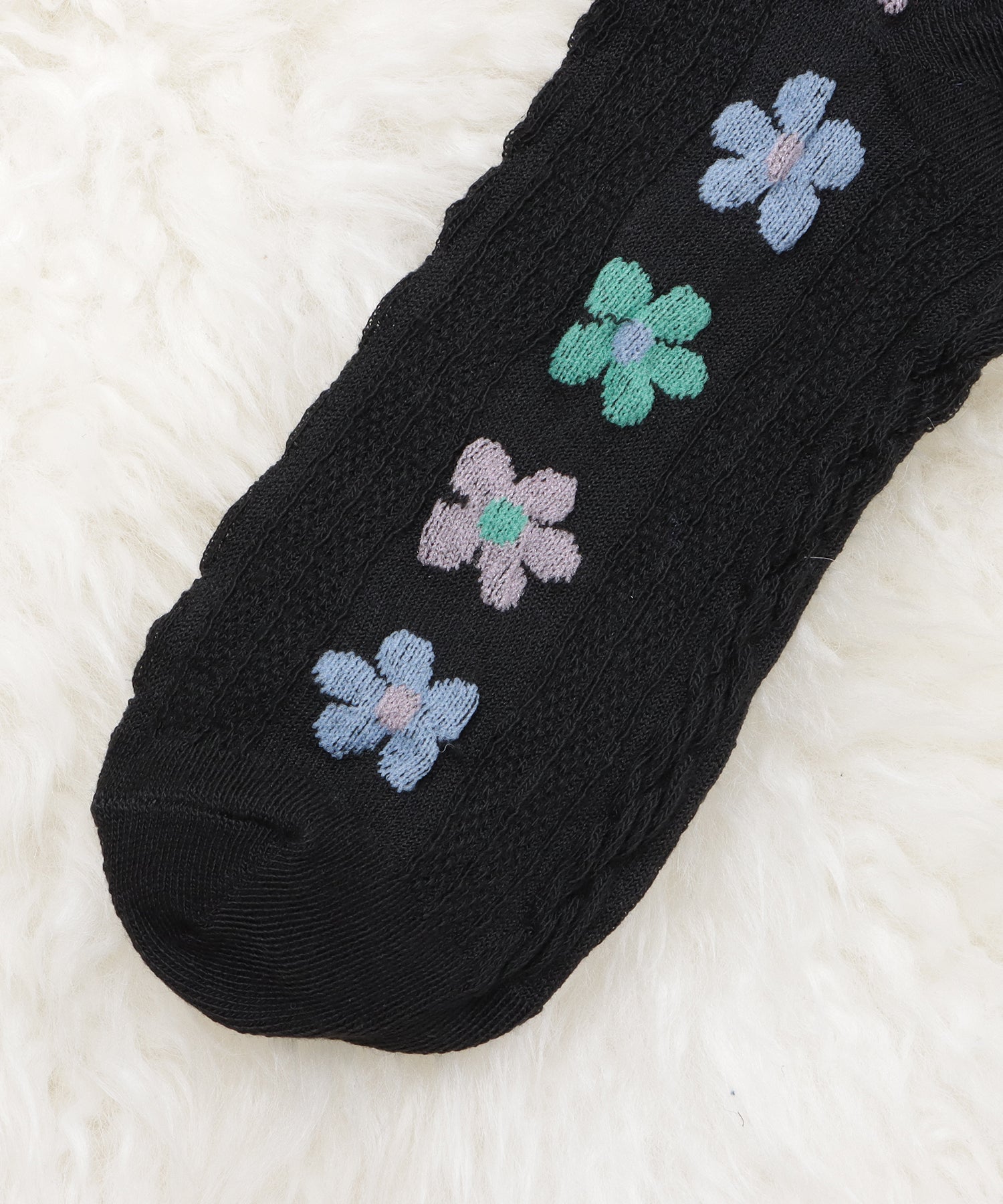 レトロでポップな花柄が目を惹く、クルーソックス3足セット