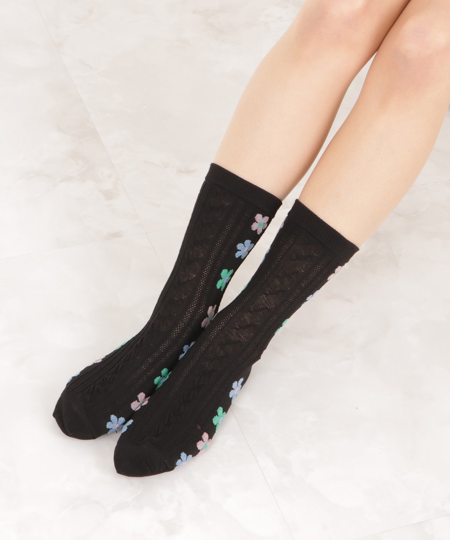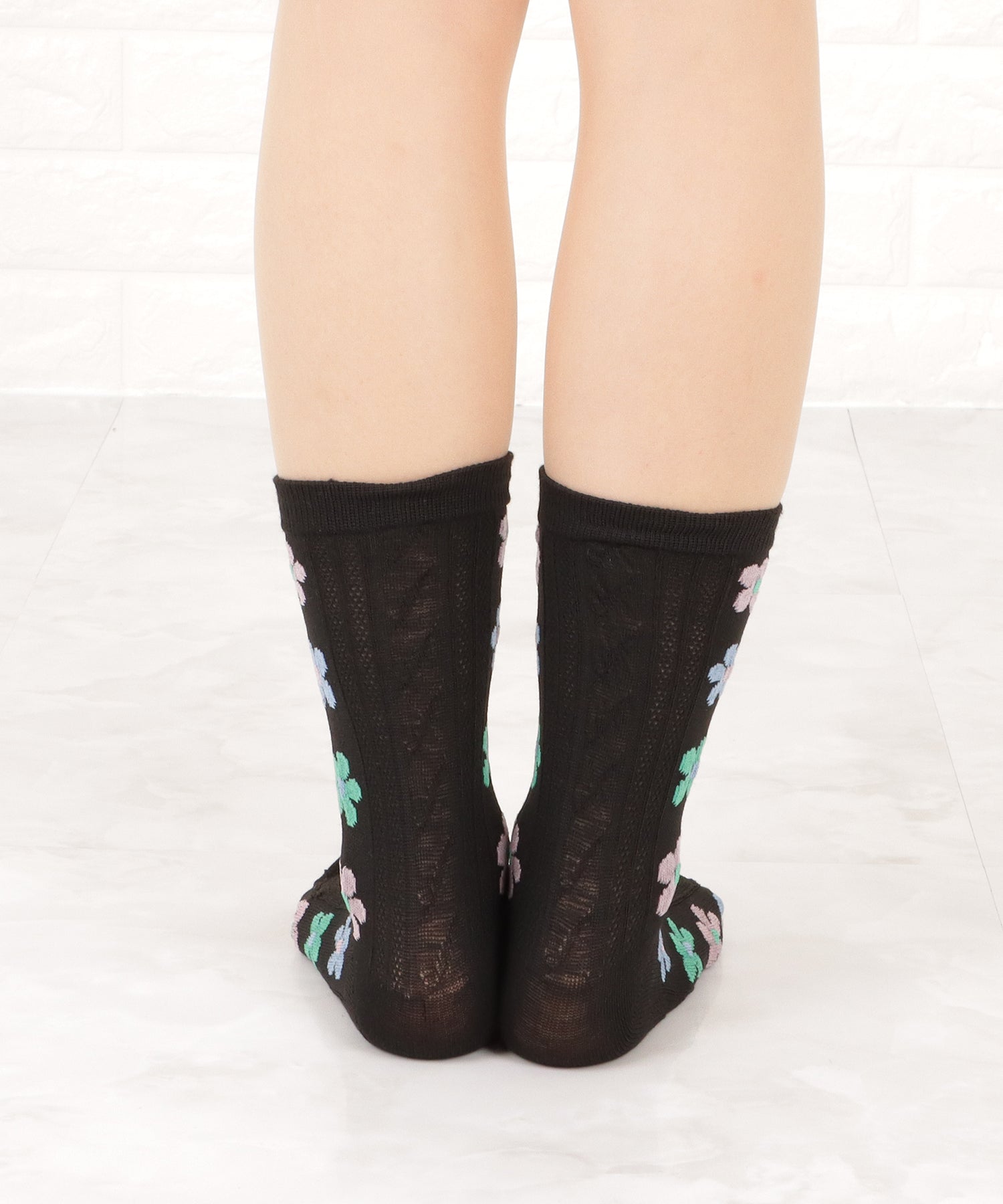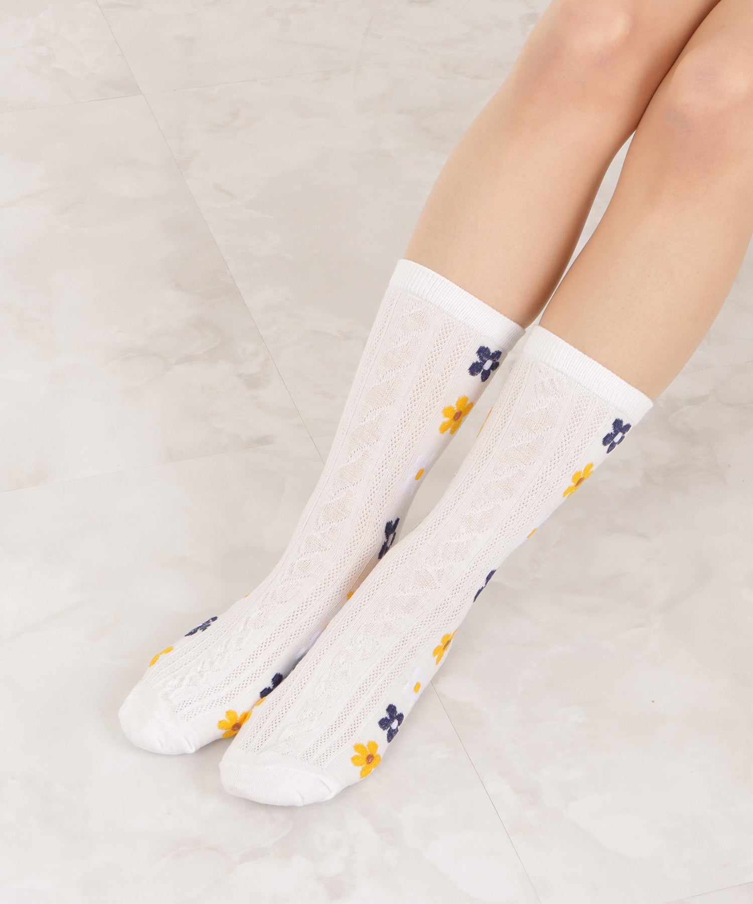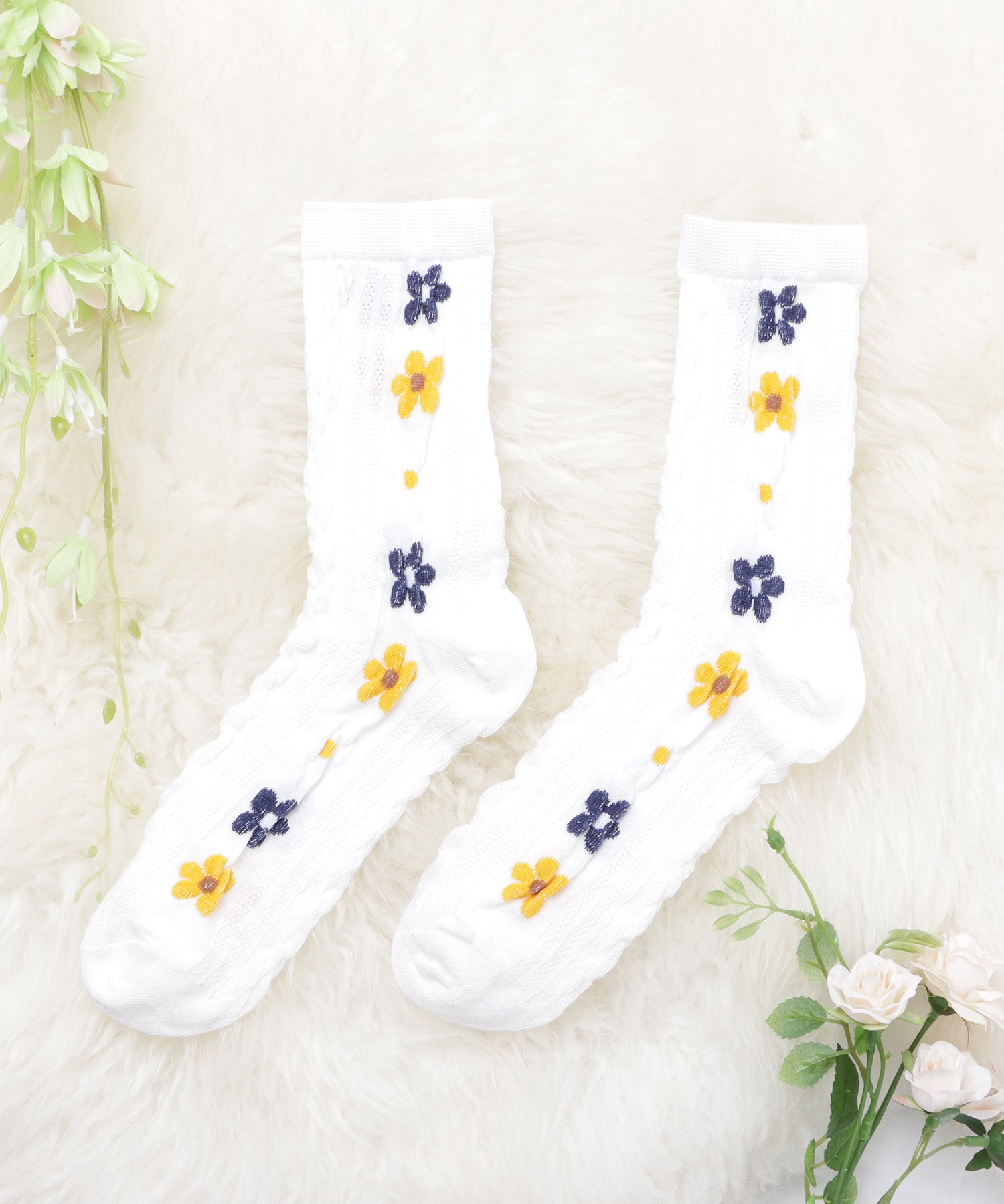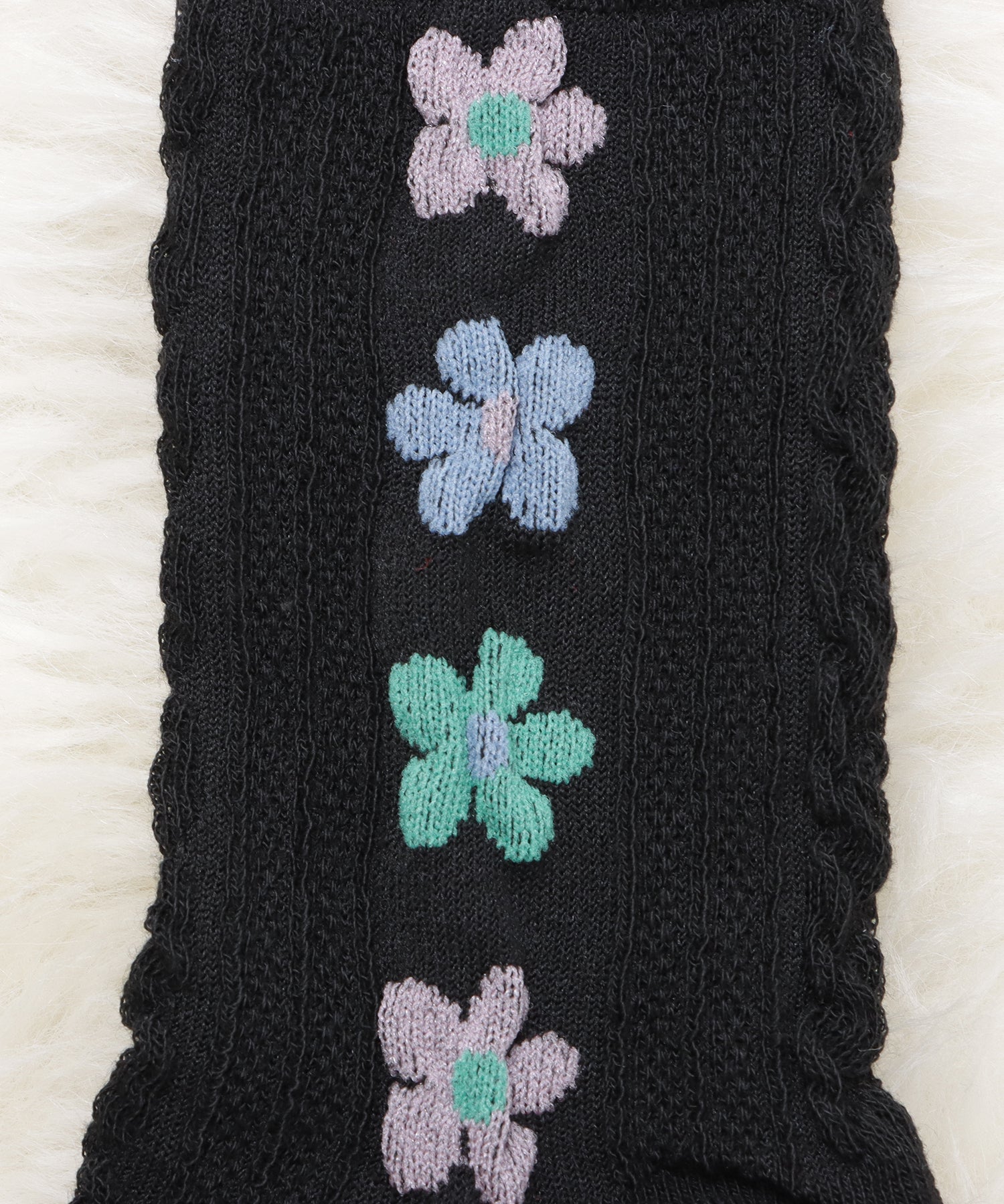 レトロでポップな花柄が目を惹く、クルーソックス3足セット