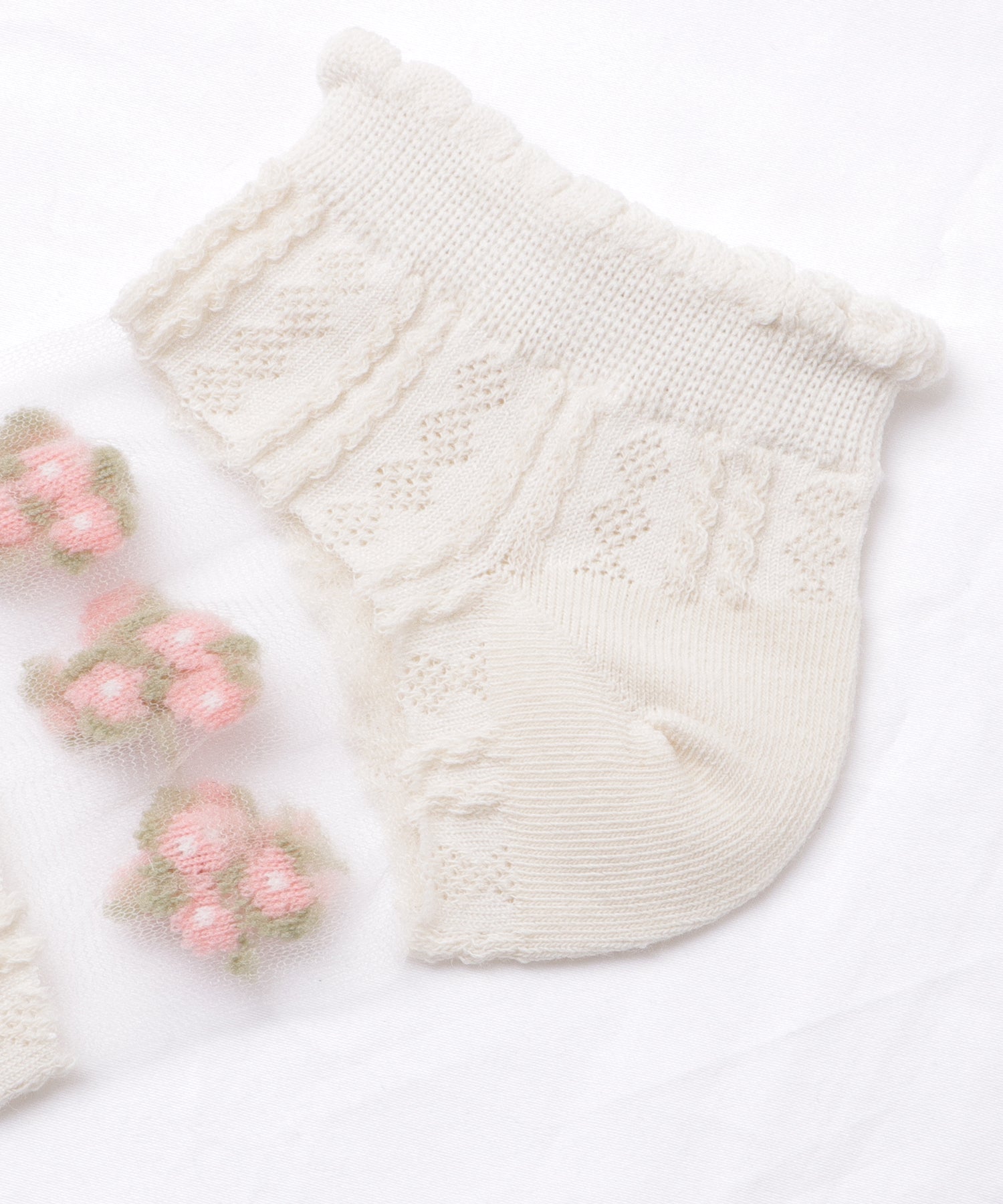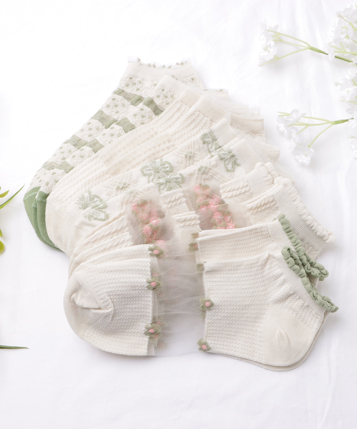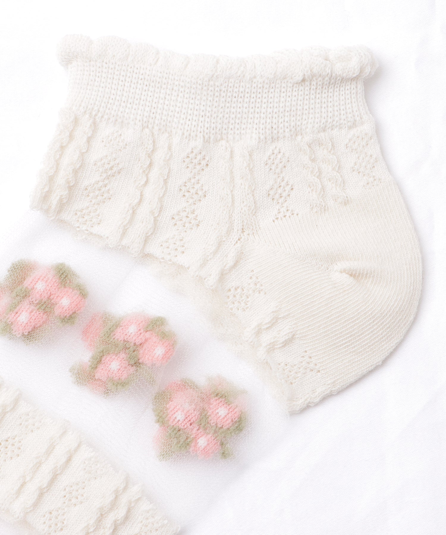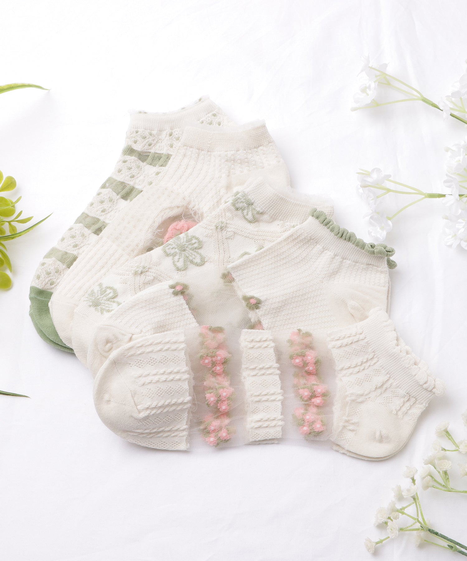 それぞれに表情の異なる、フラワーモチーフが可愛らしいバラエティソックスセット。