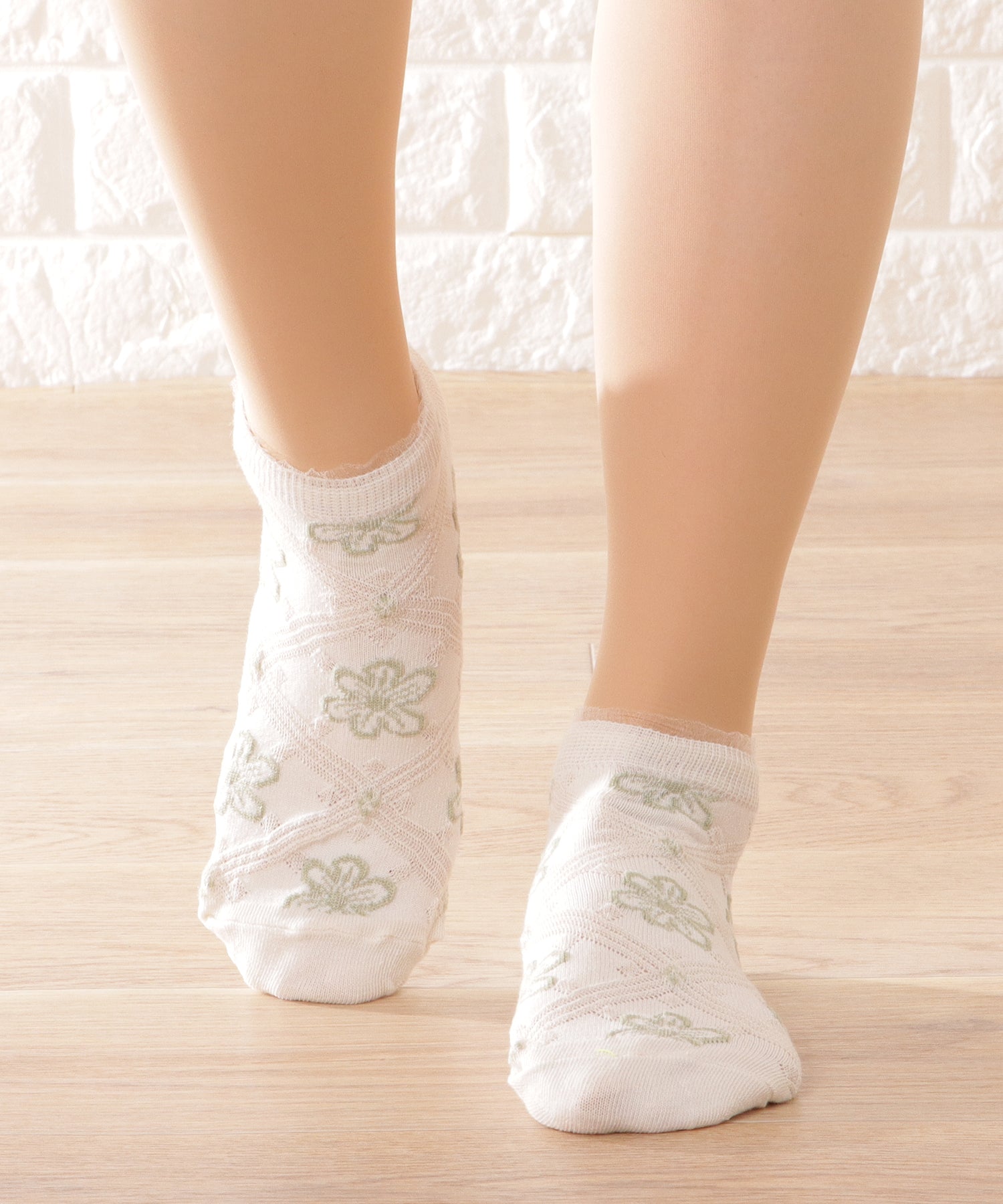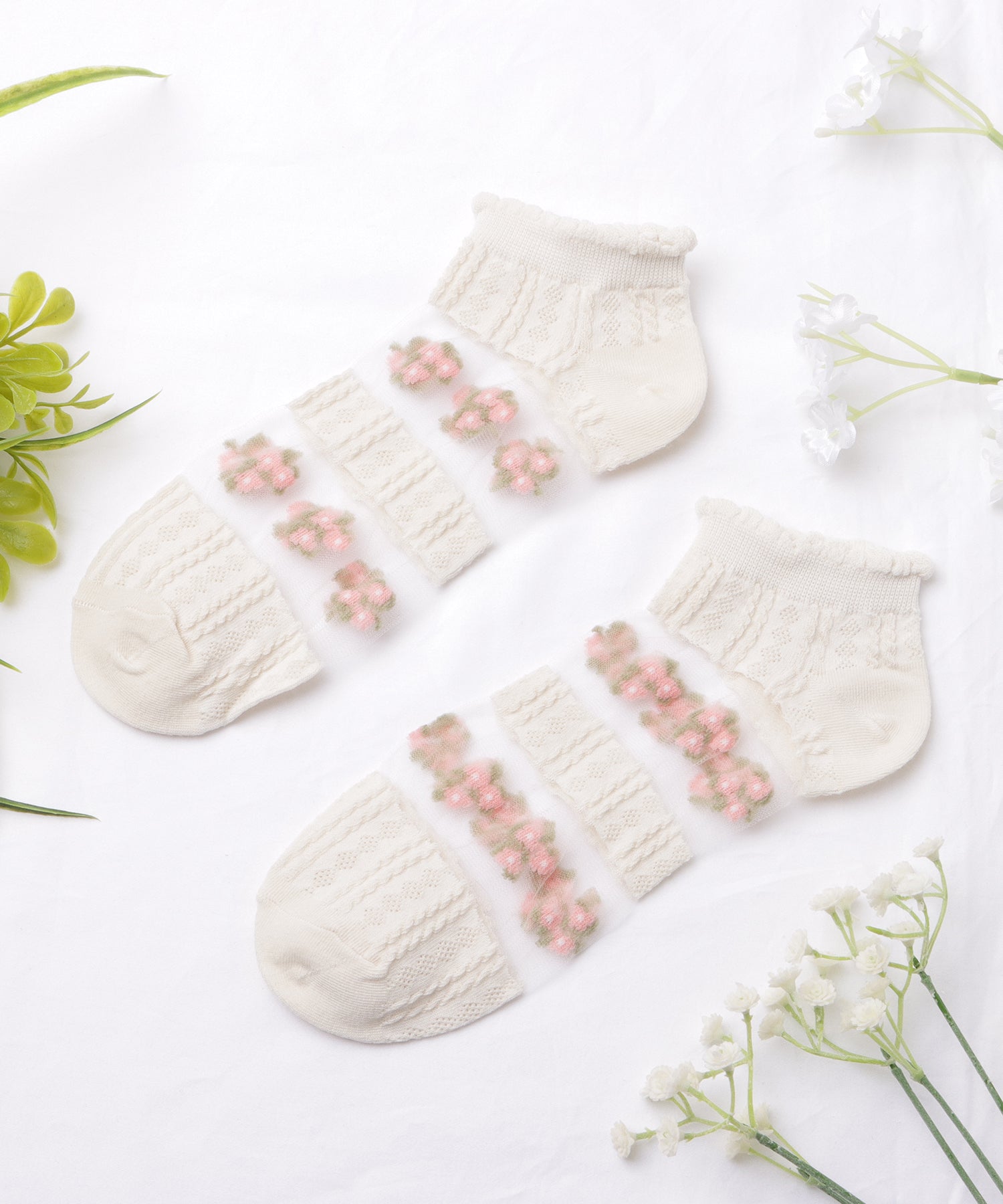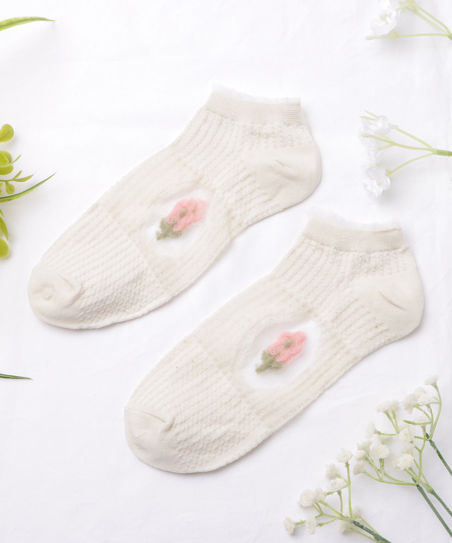 それぞれに表情の異なる、フラワーモチーフが可愛らしいバラエティソックスセット。
