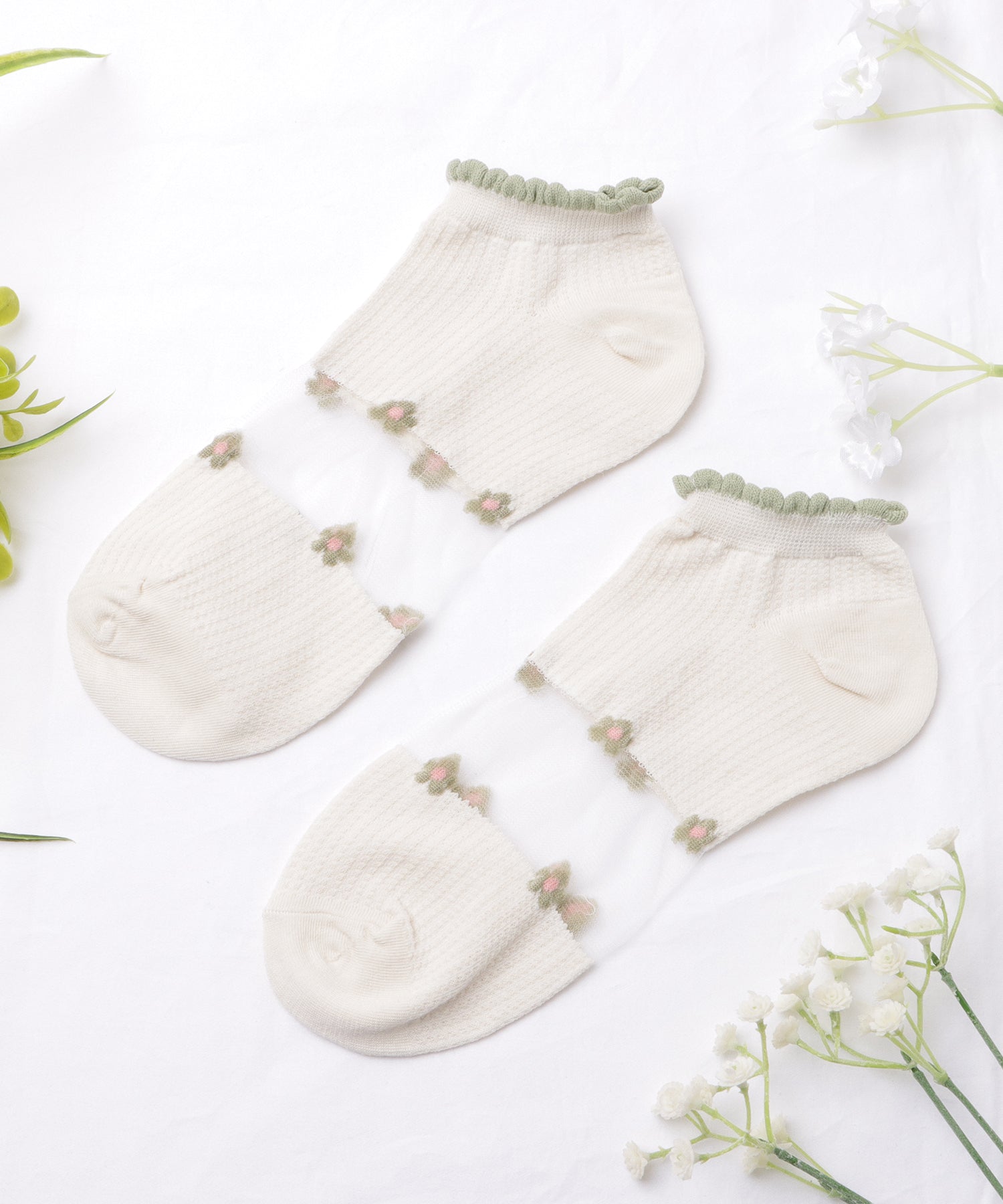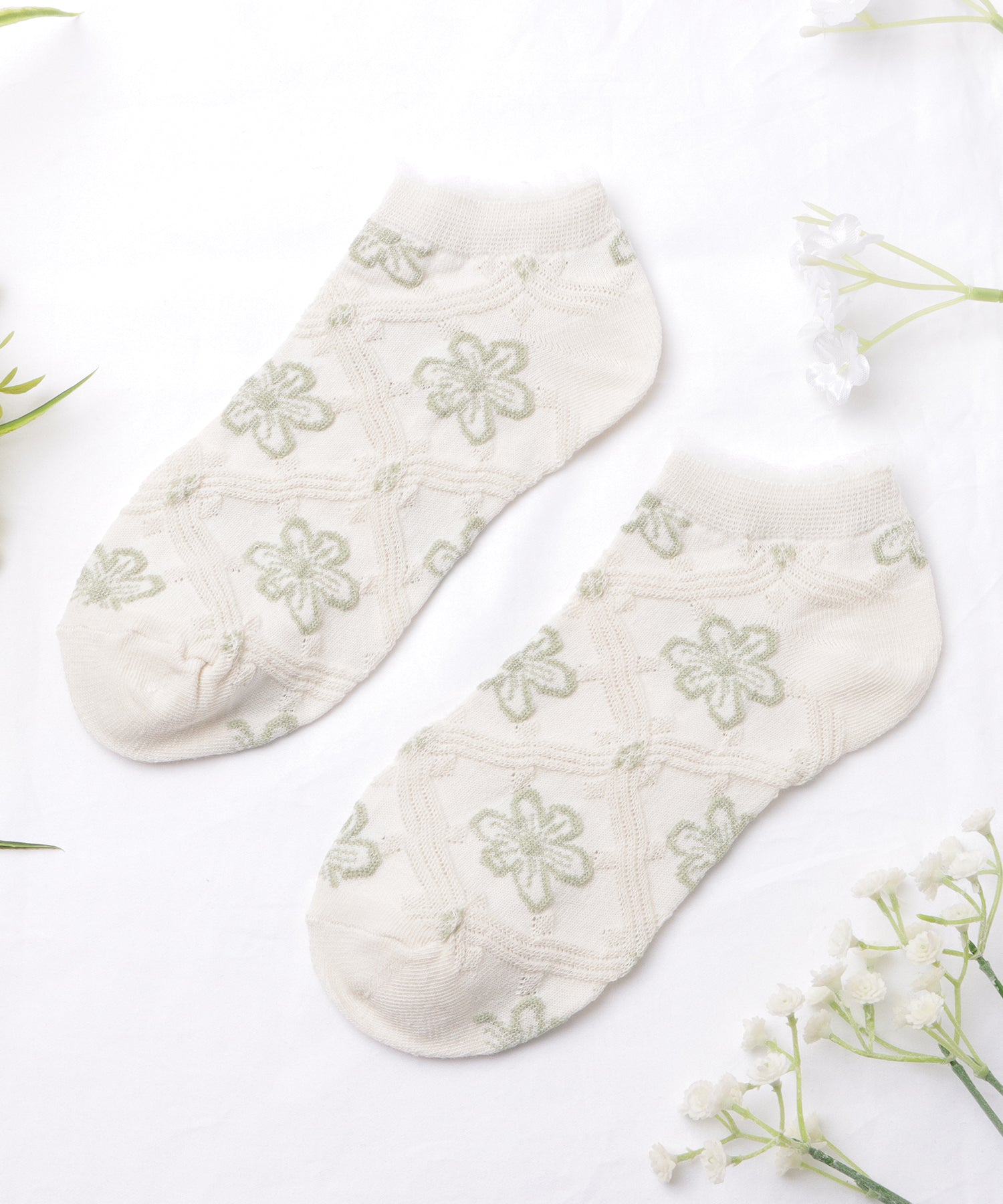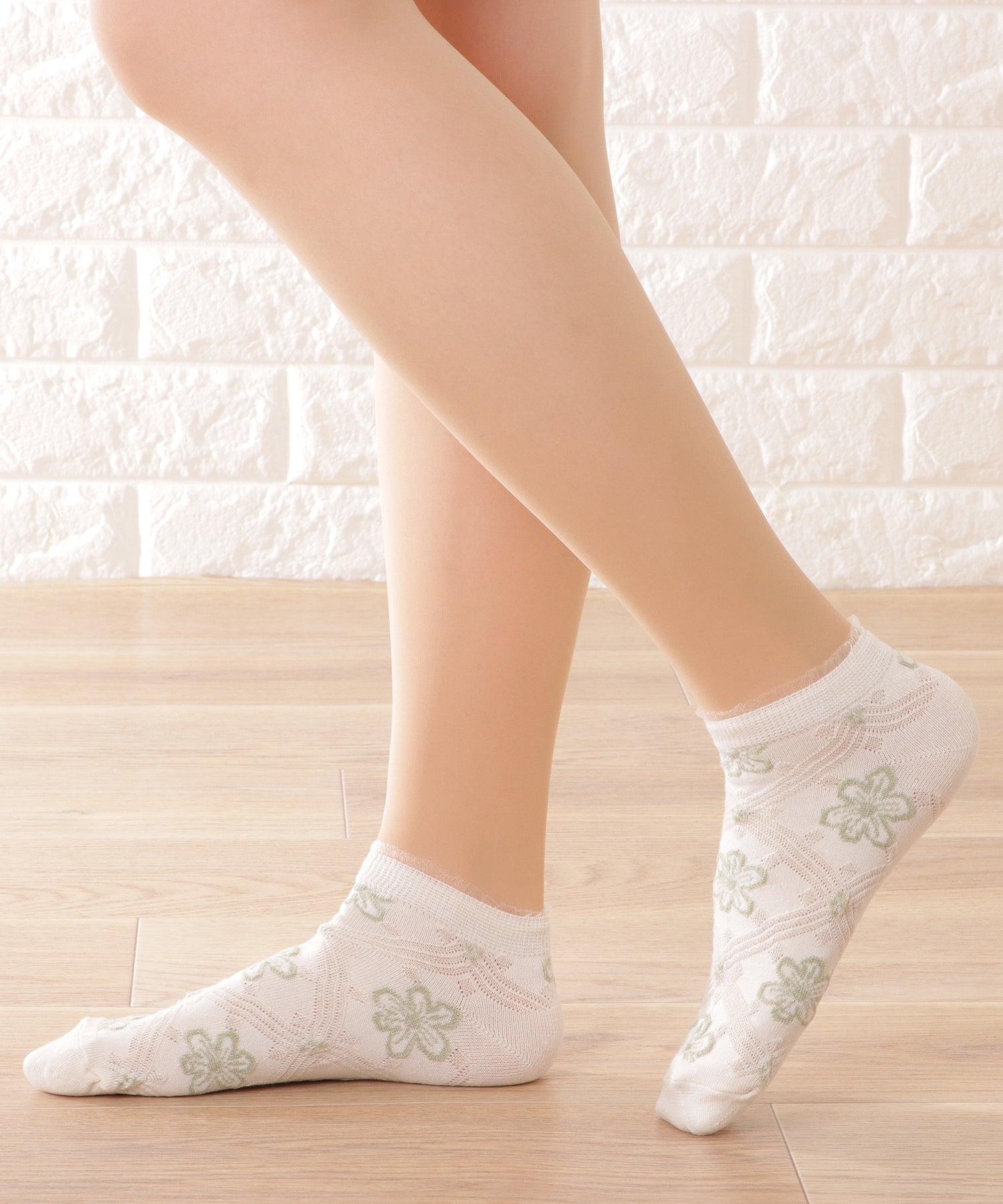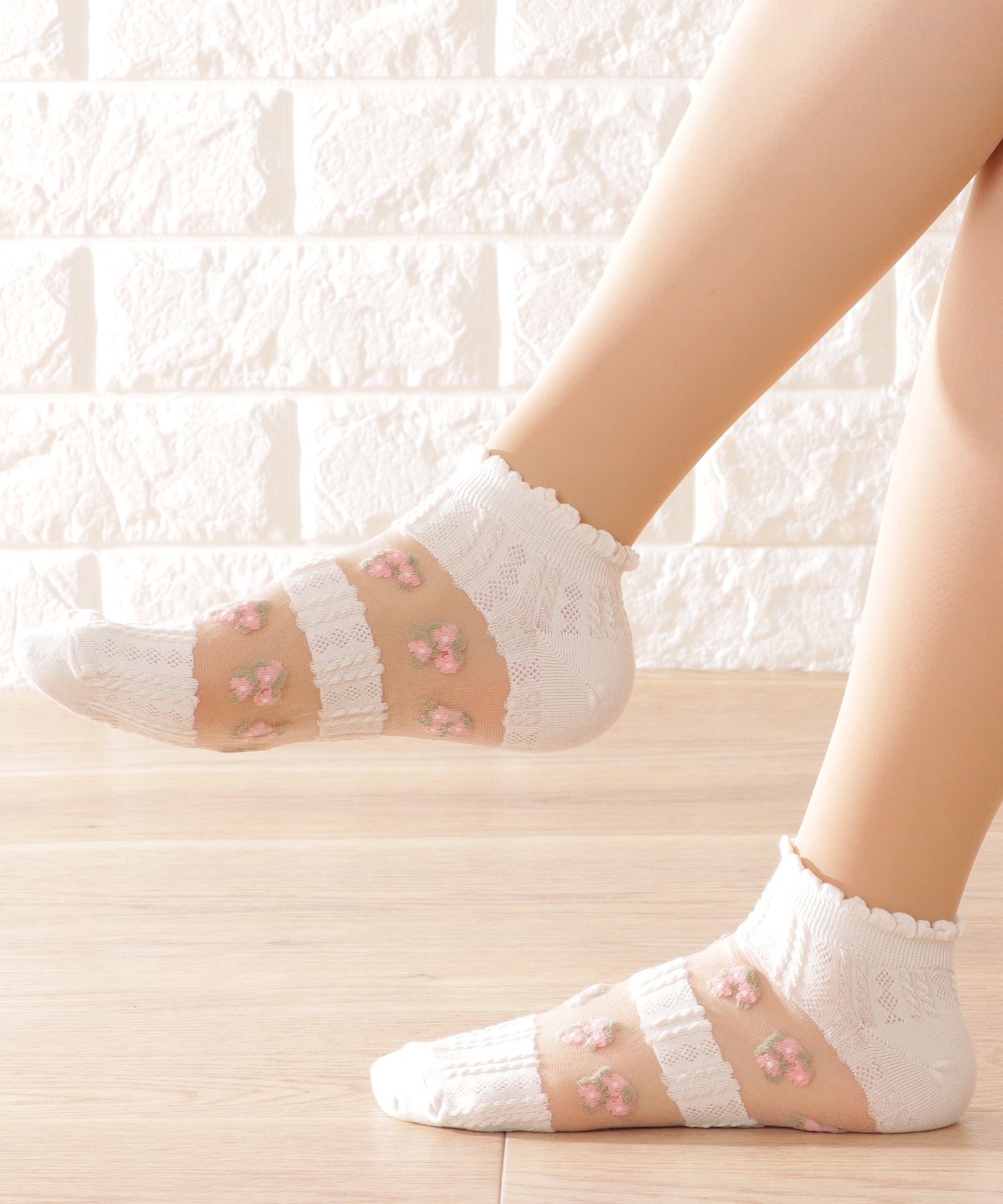 それぞれに表情の異なる、フラワーモチーフが可愛らしいバラエティソックスセット。
