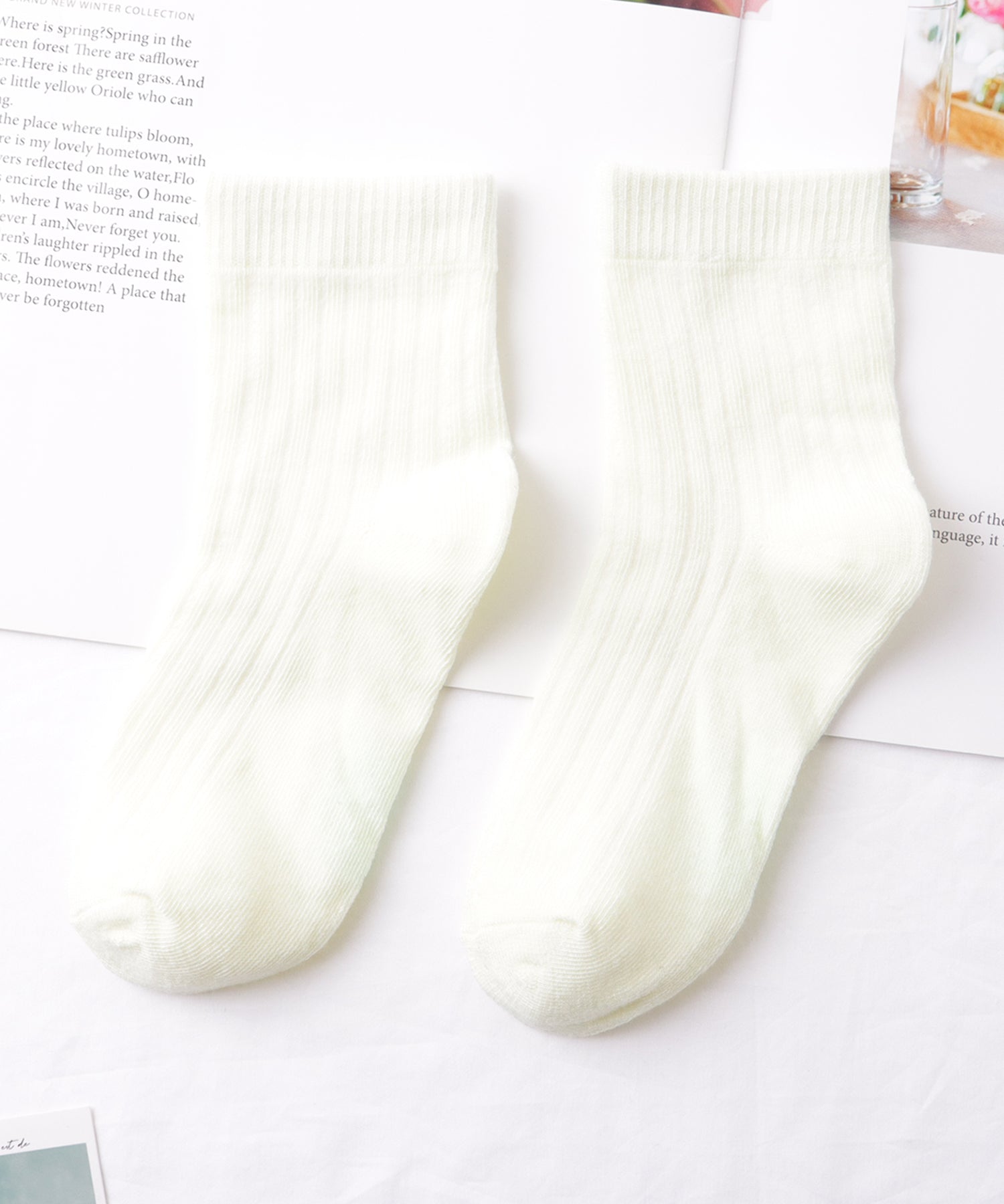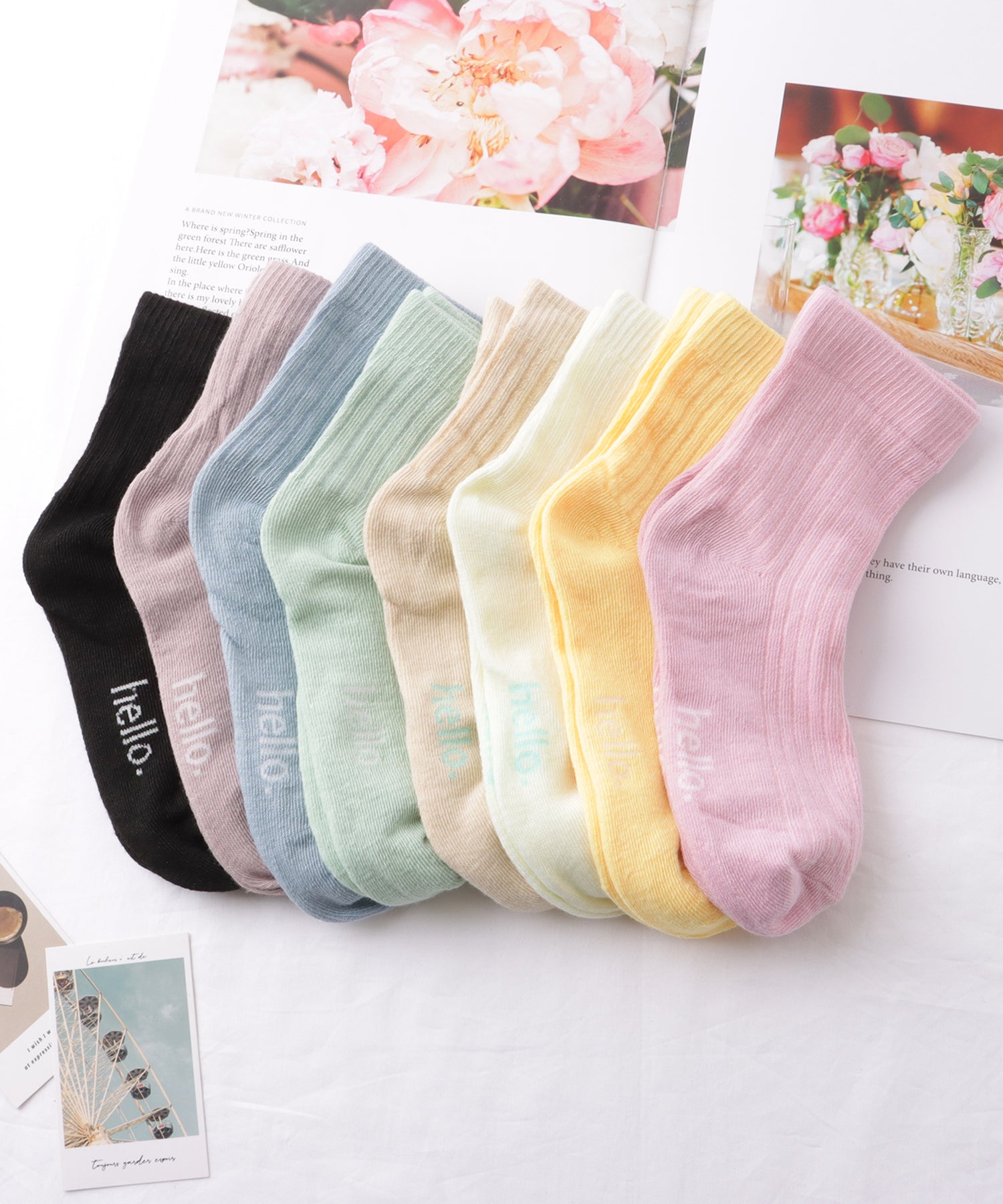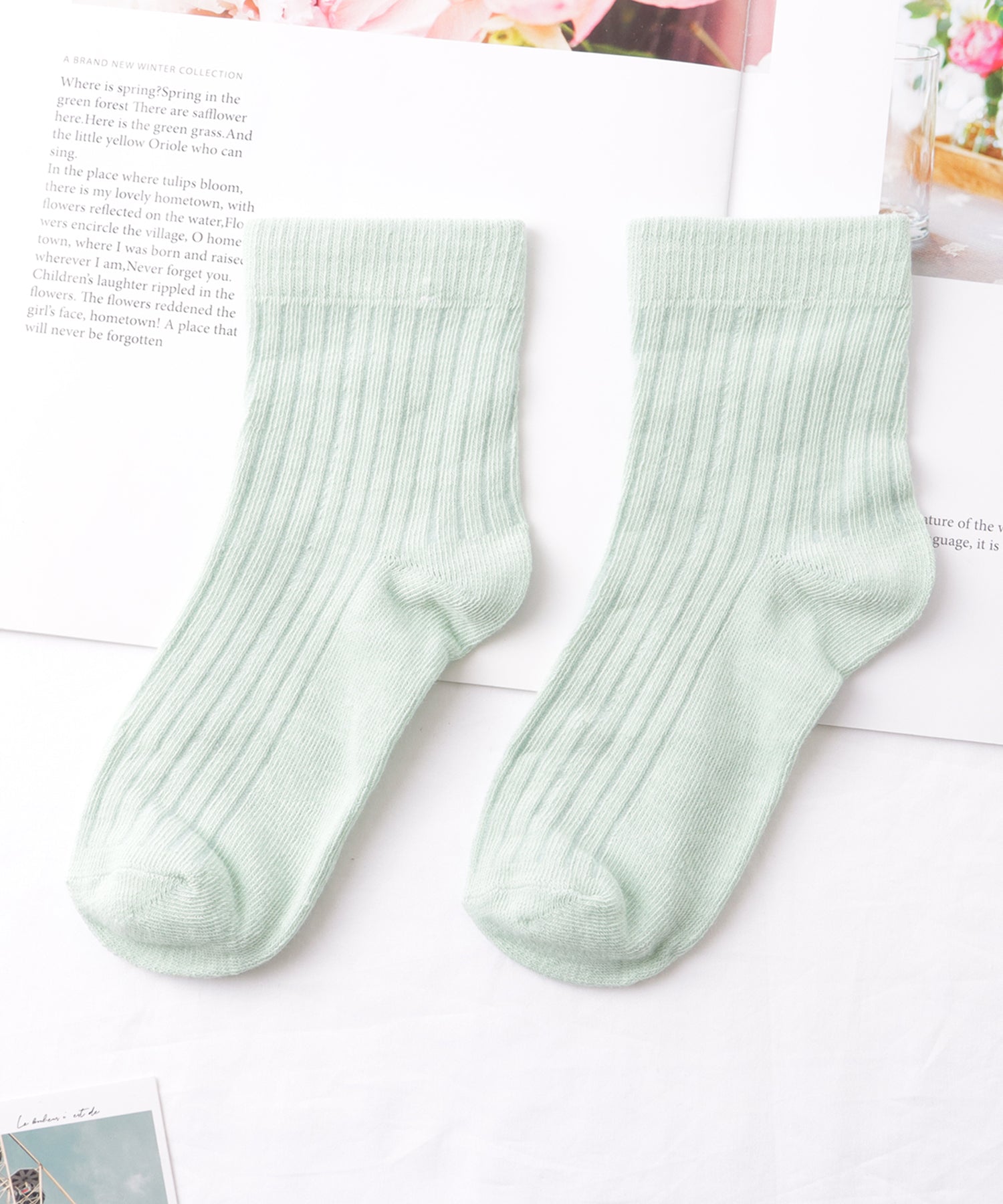 【8足セット】 マカロン ソリッドカラー リブ クルー ソックス
