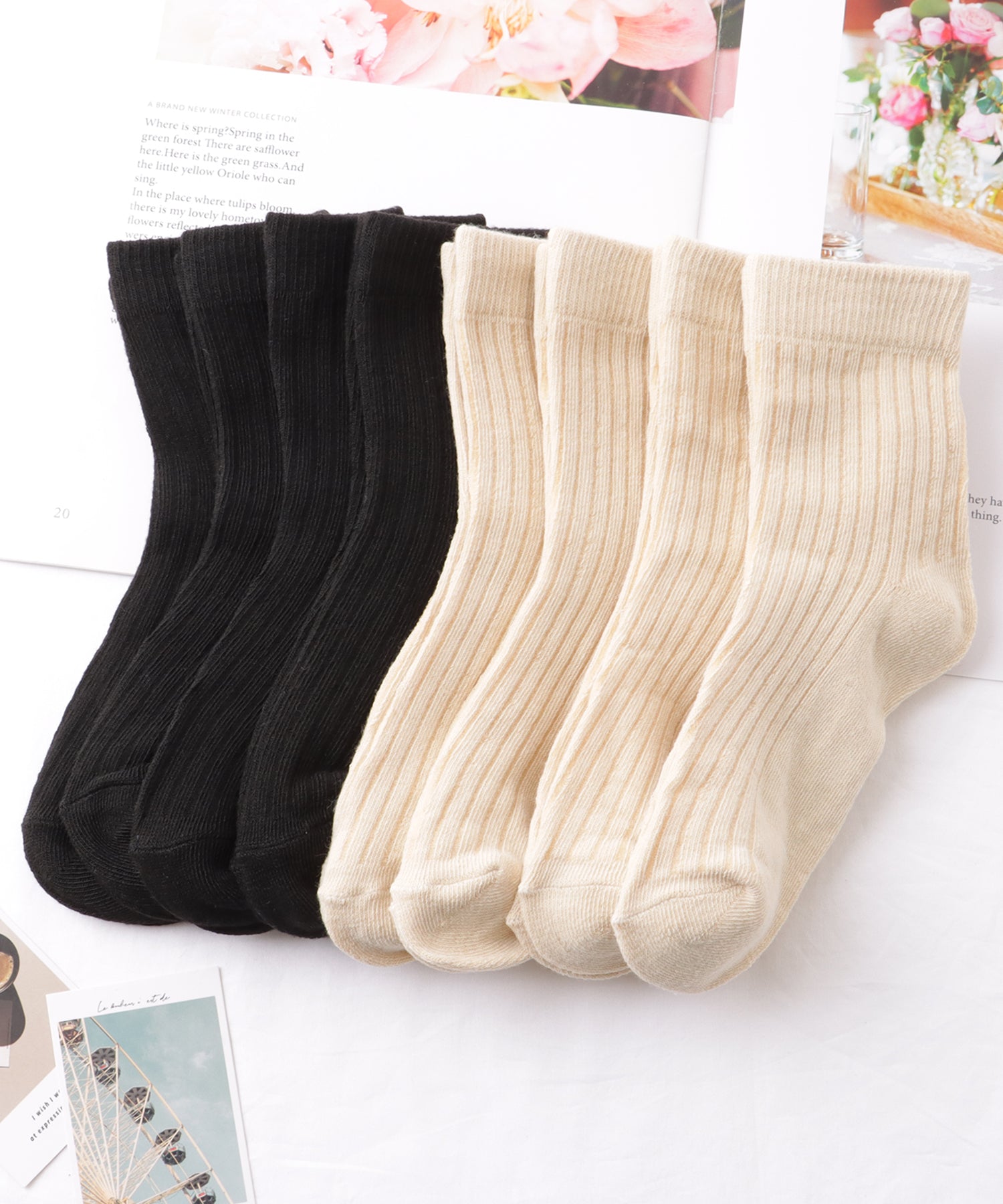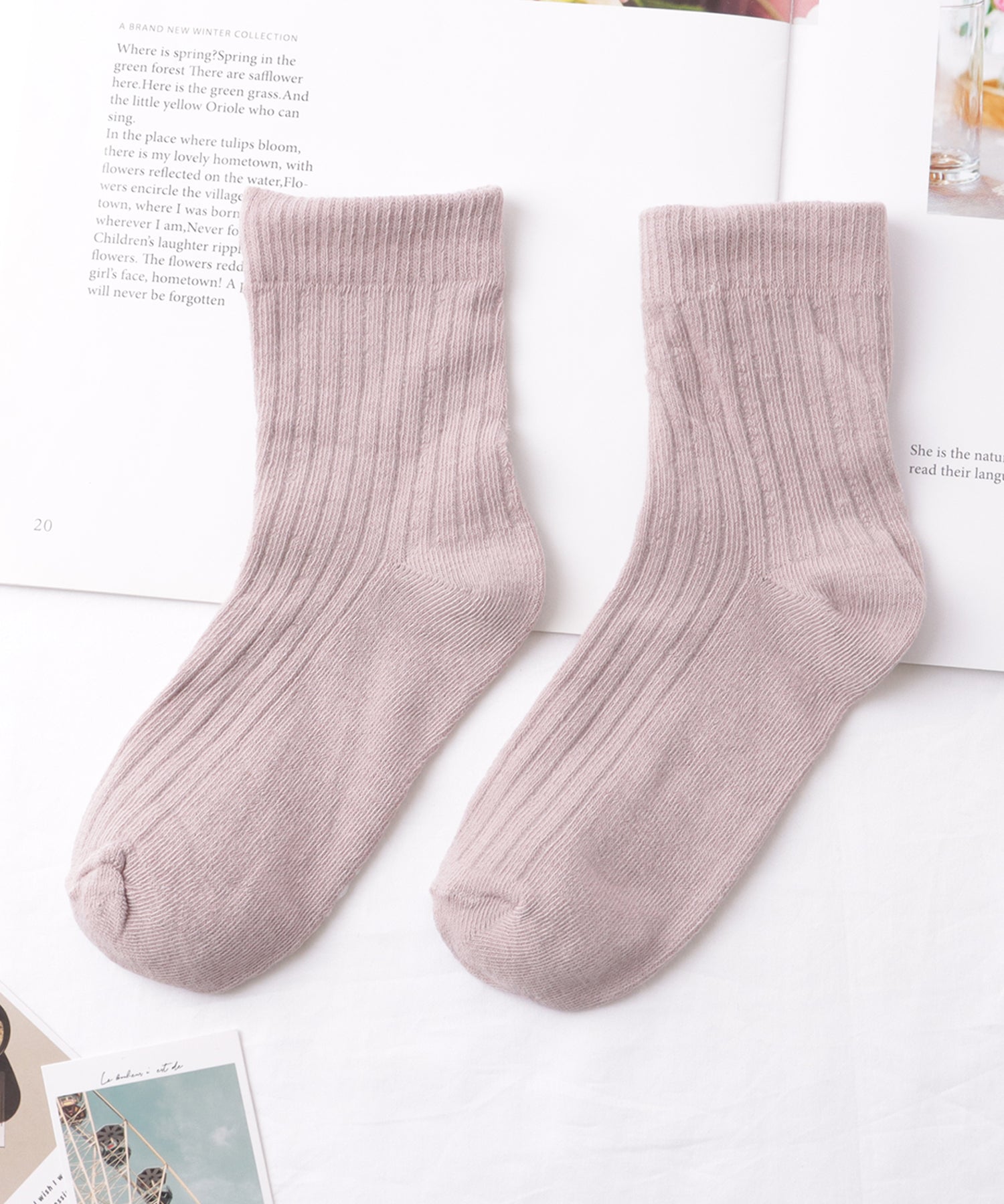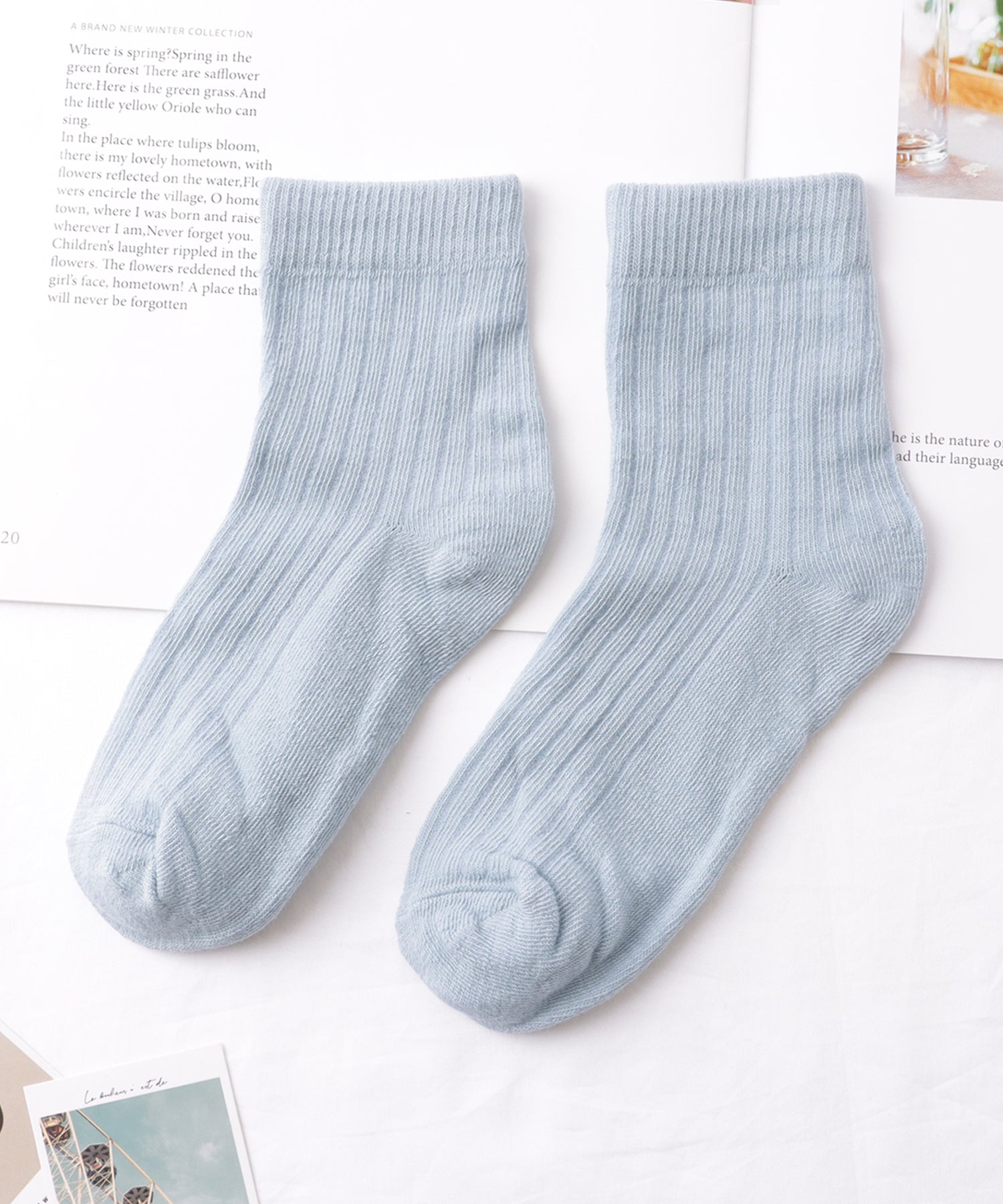 【8足セット】 マカロン ソリッドカラー リブ クルー ソックス