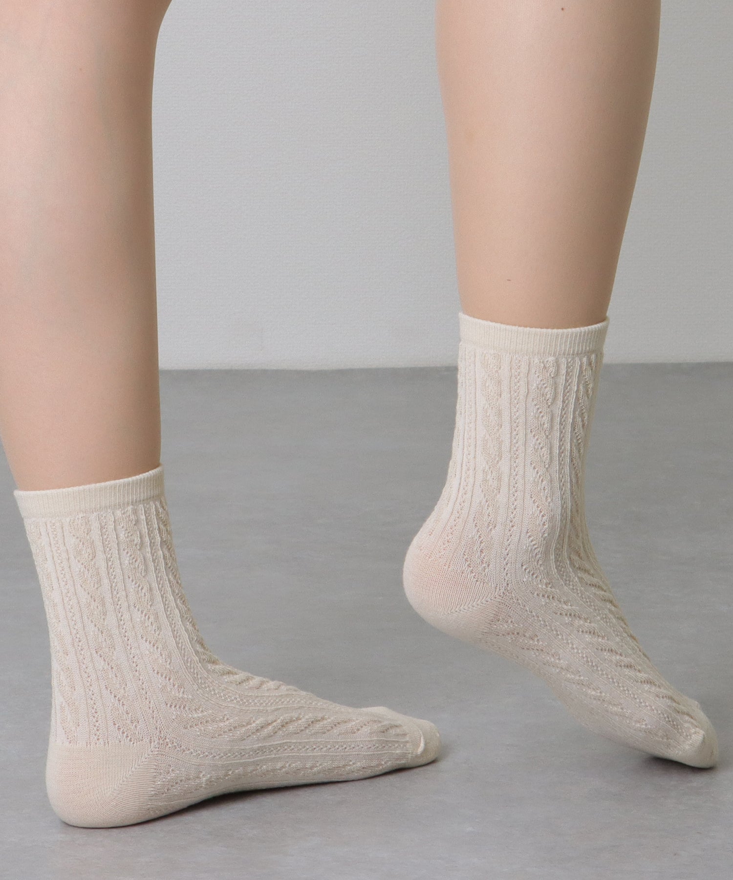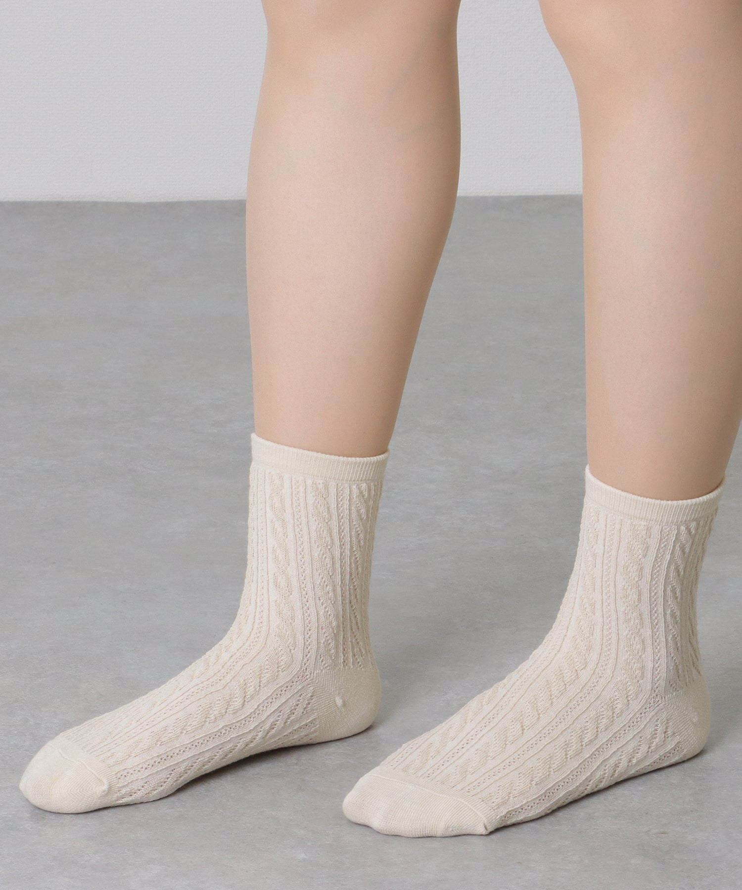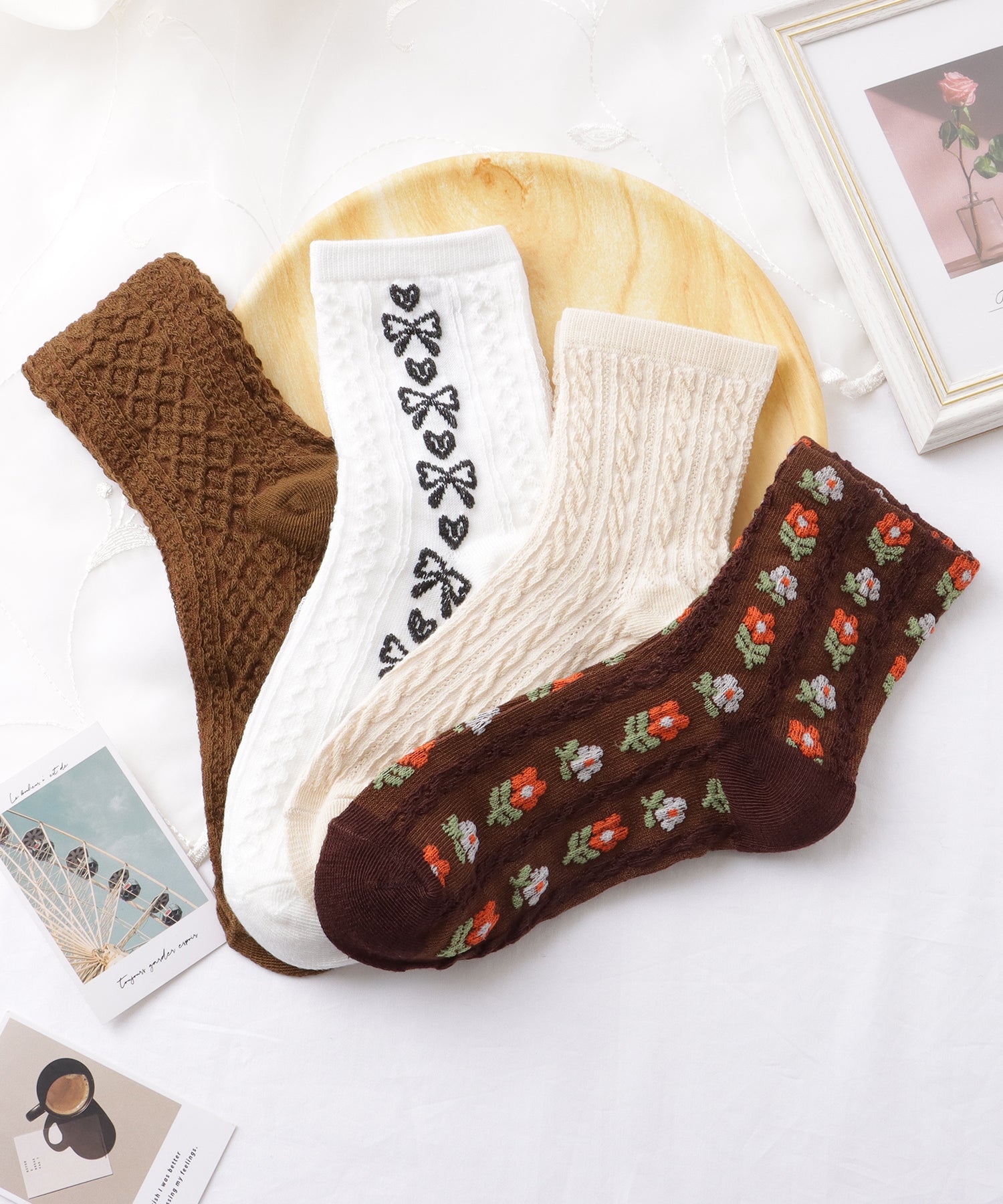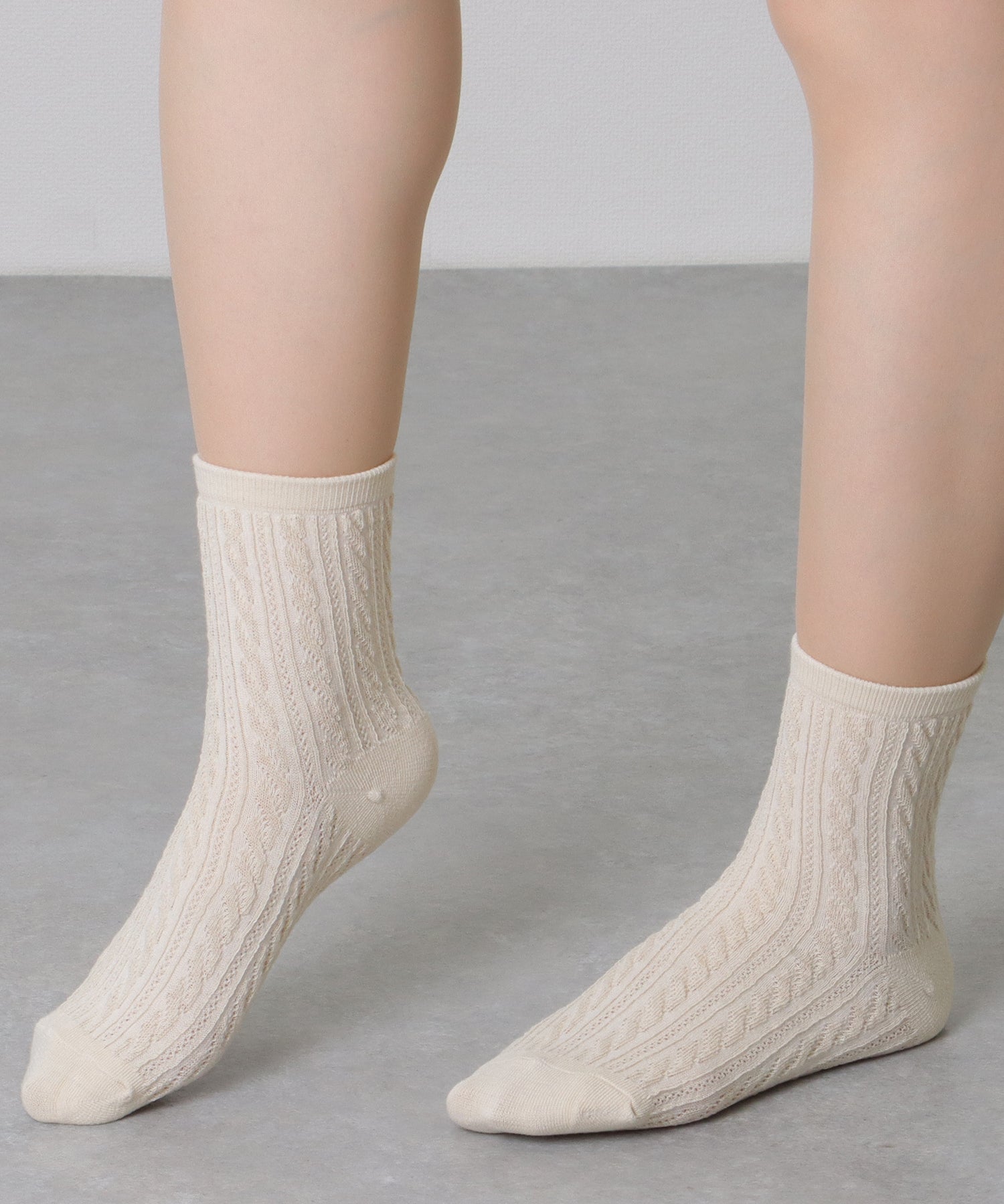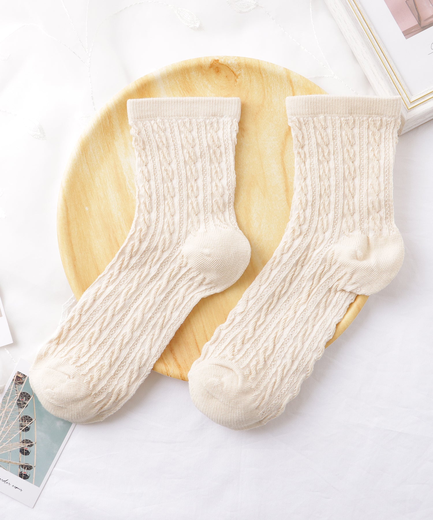 【8足セット】 立体 ケーブル柄 ロマンチック クルー丈 ソックス