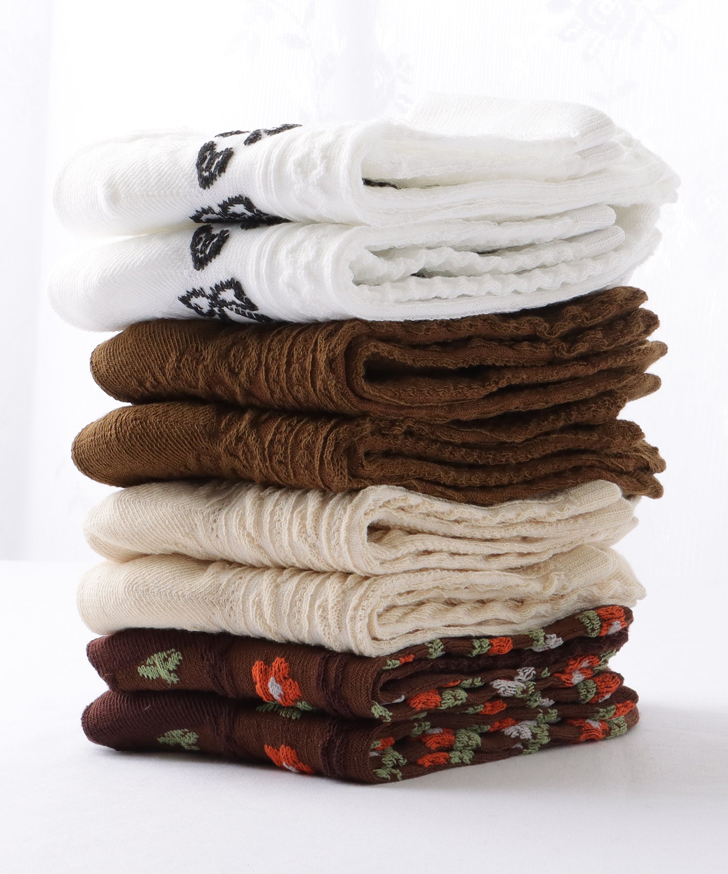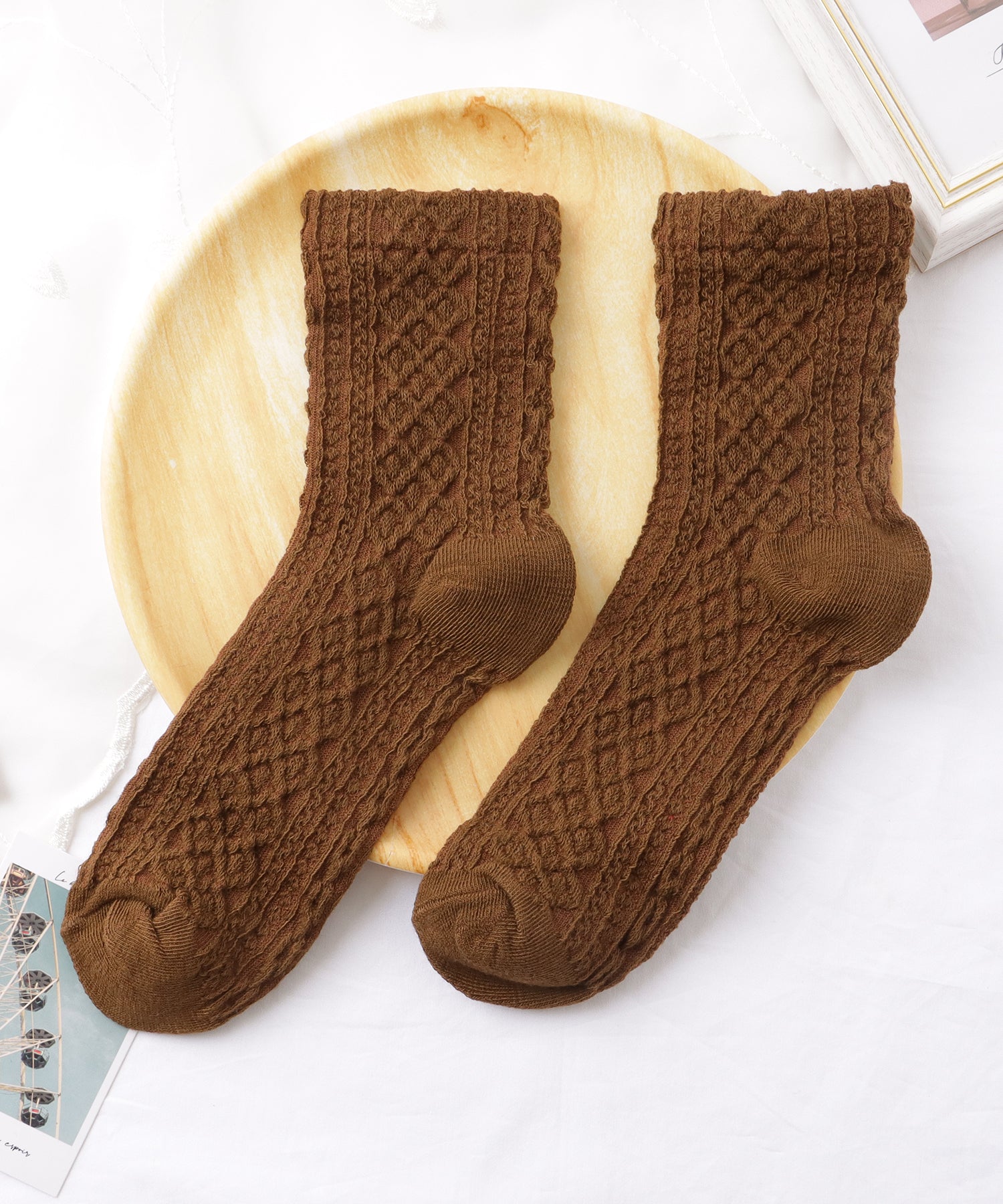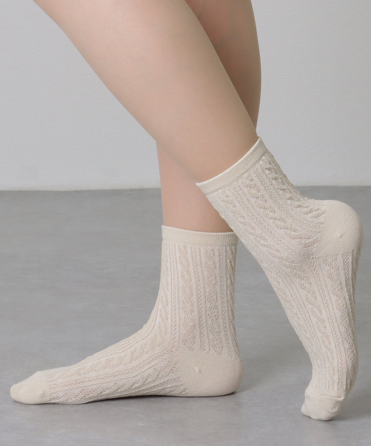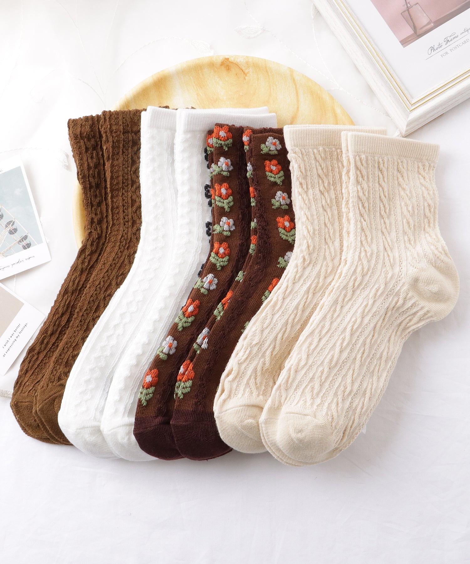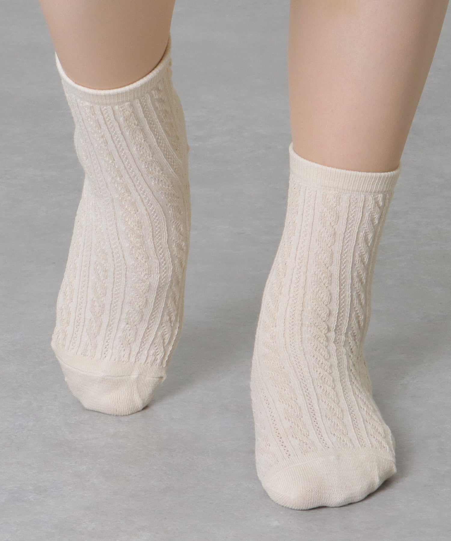 【8足セット】 立体 ケーブル柄 ロマンチック クルー丈 ソックス