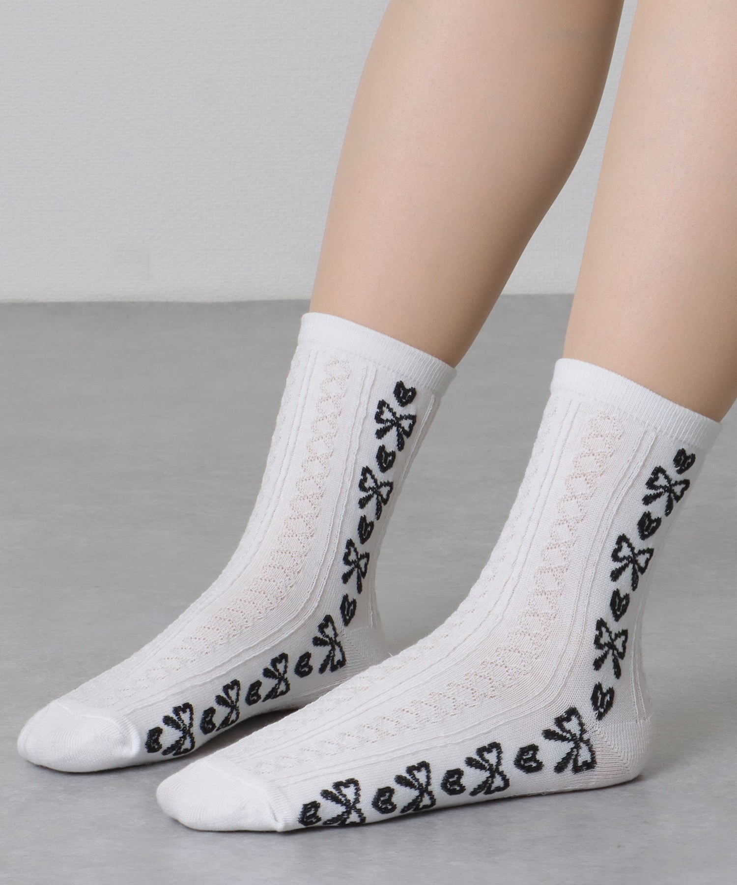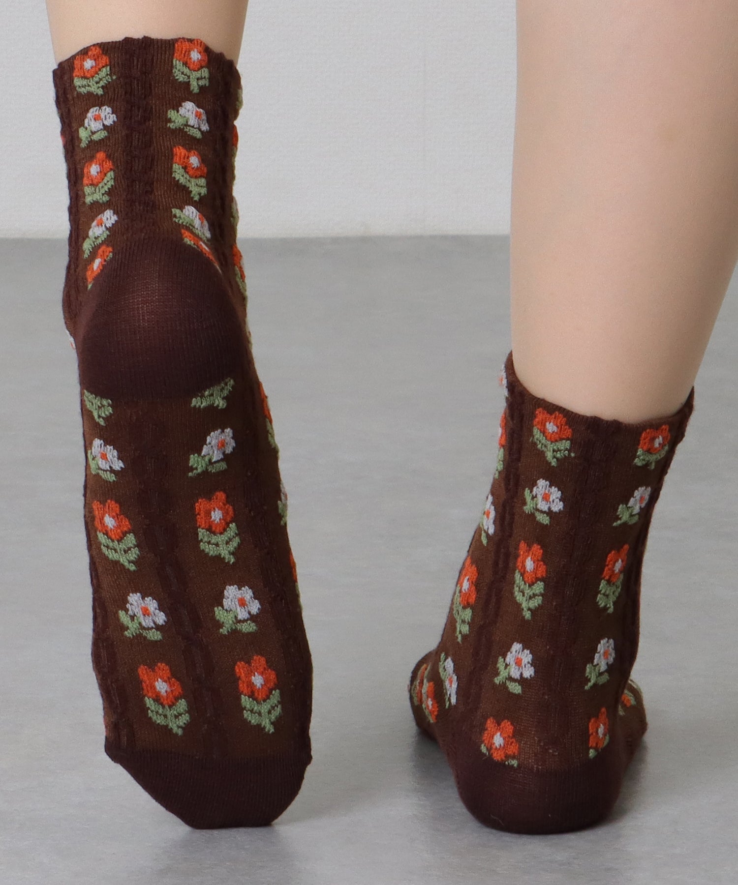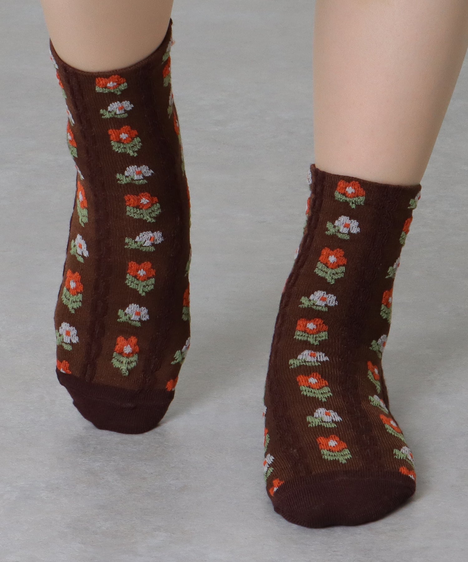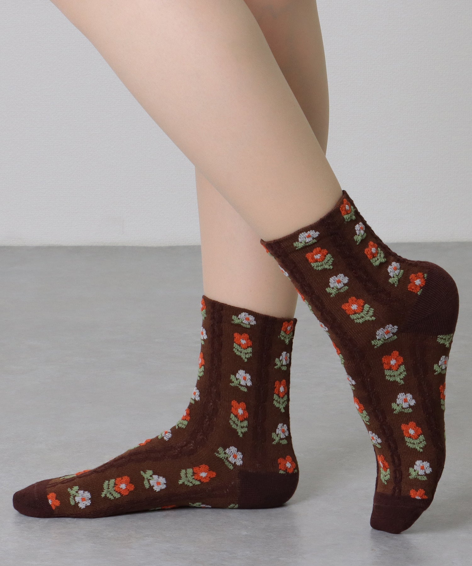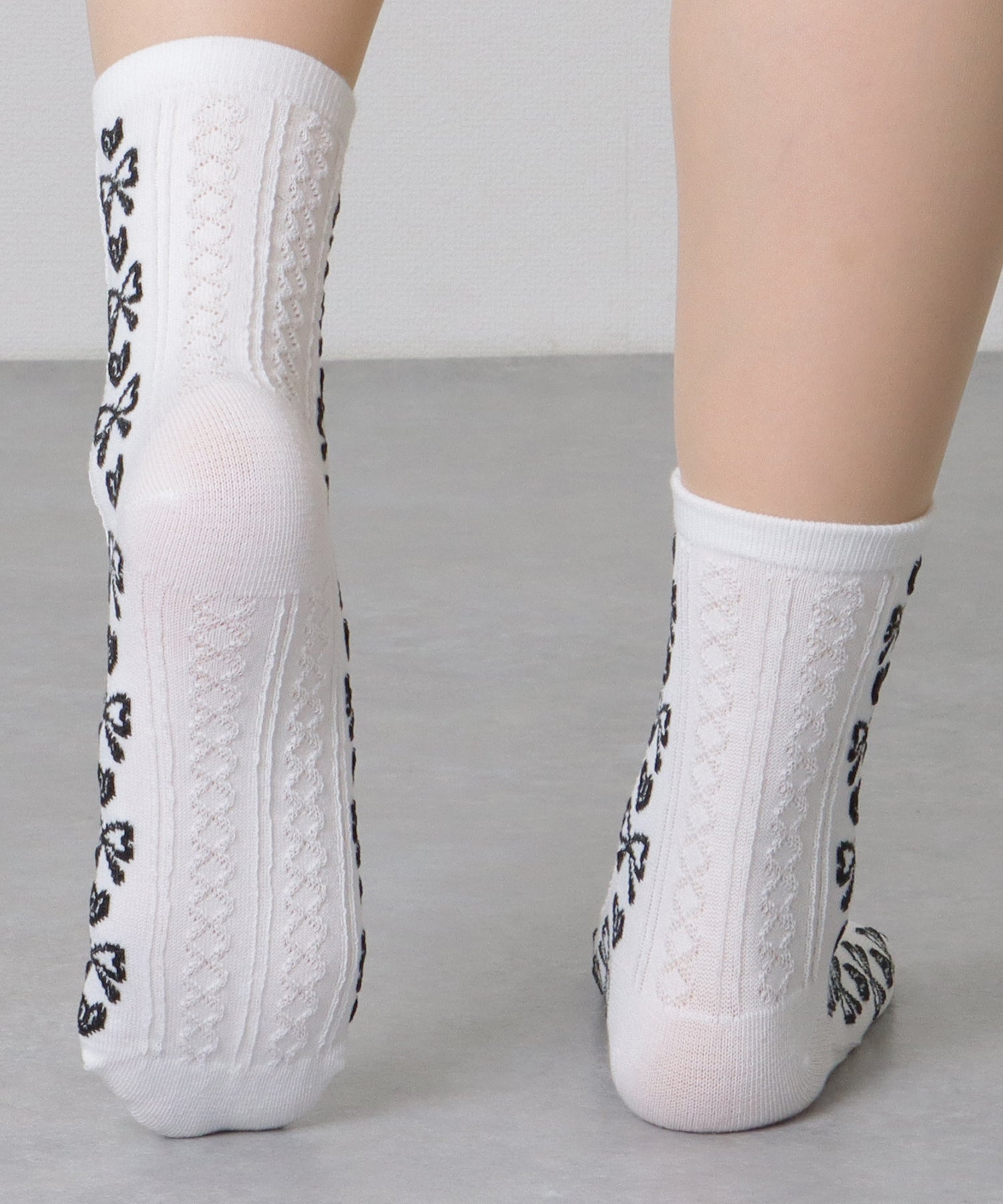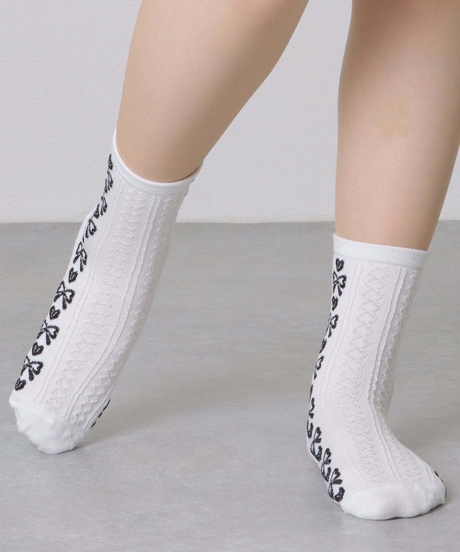 【8足セット】 立体 ケーブル柄 ロマンチック クルー丈 ソックス