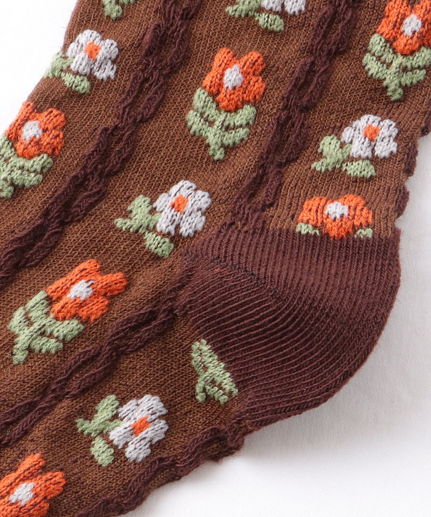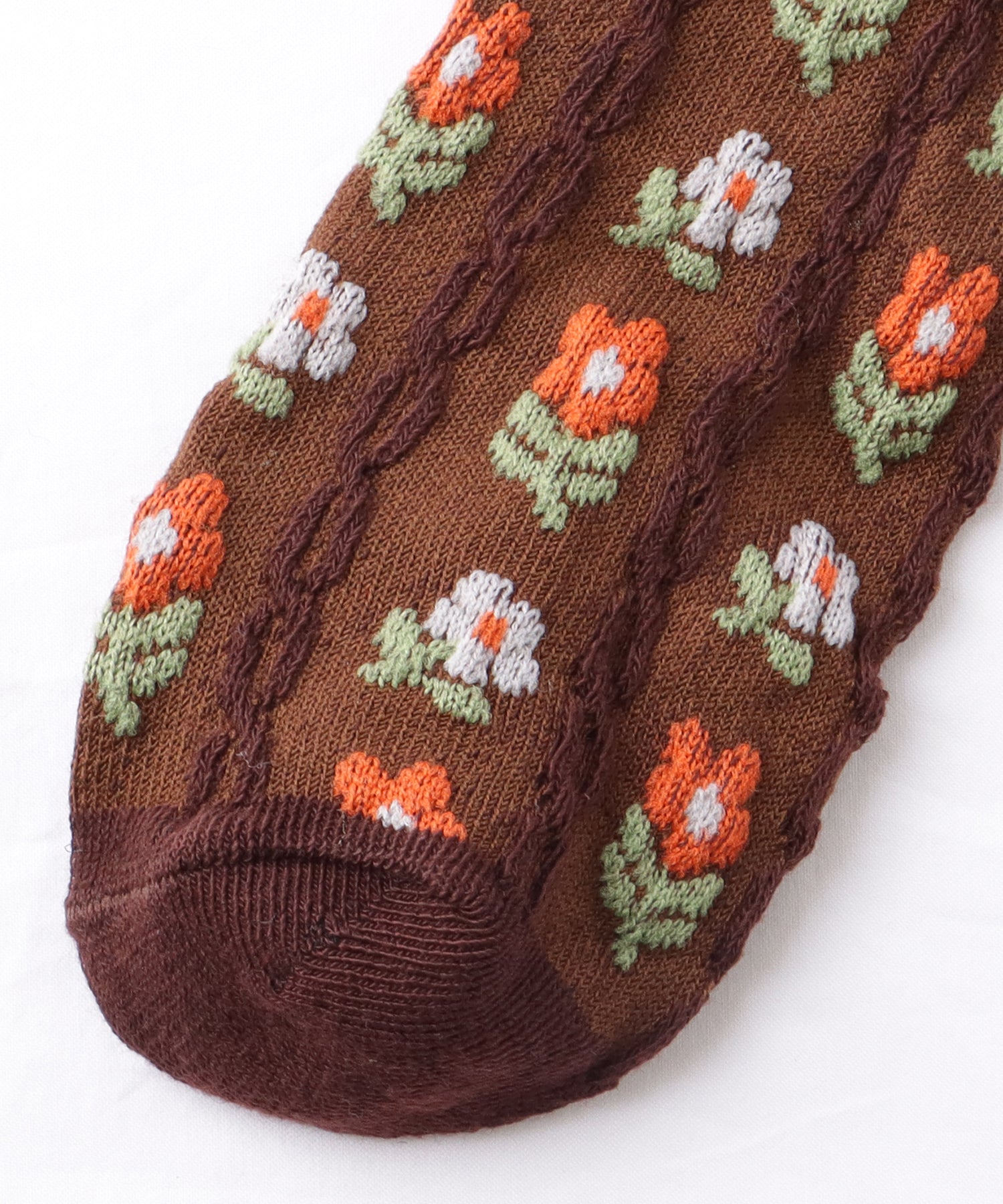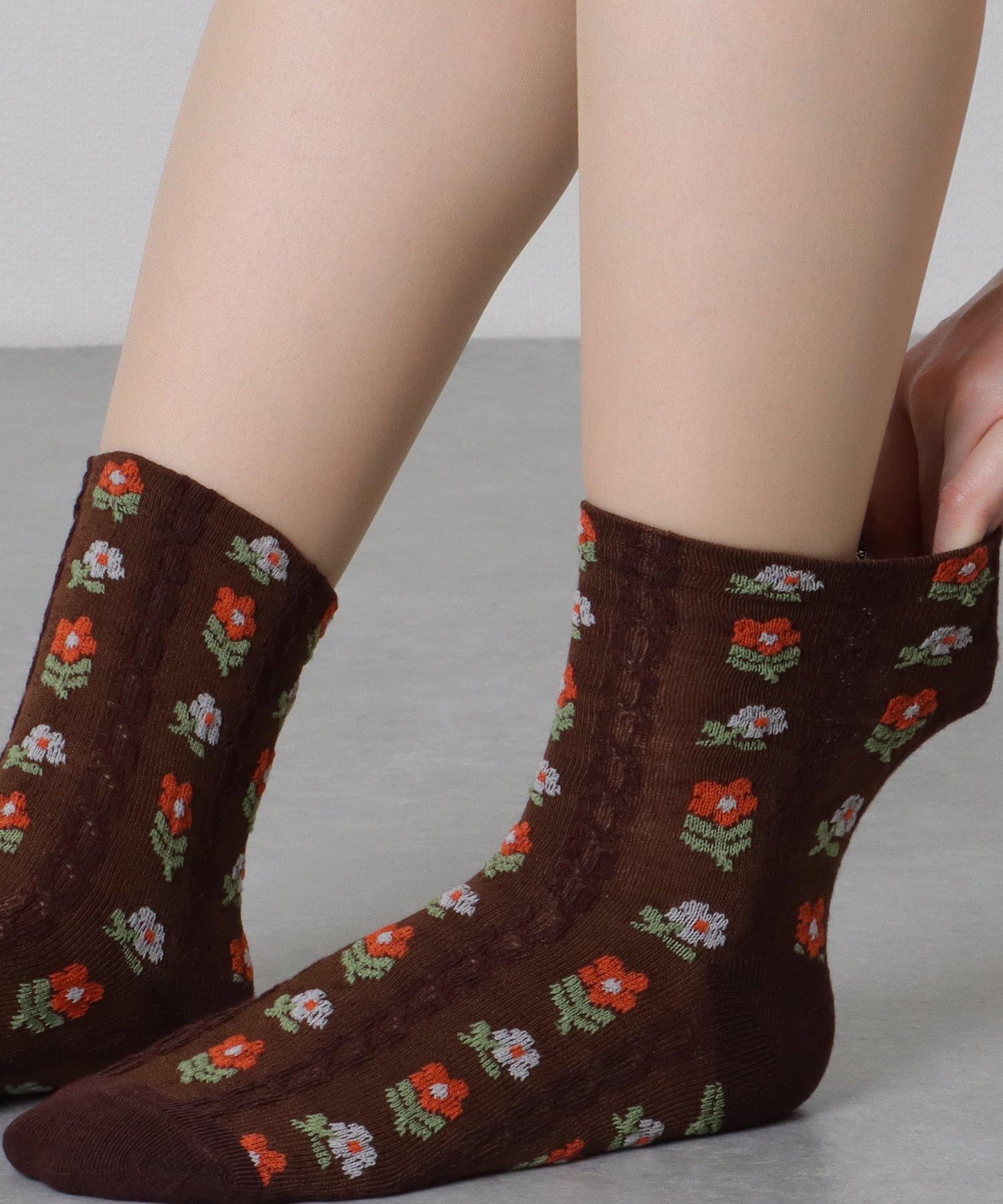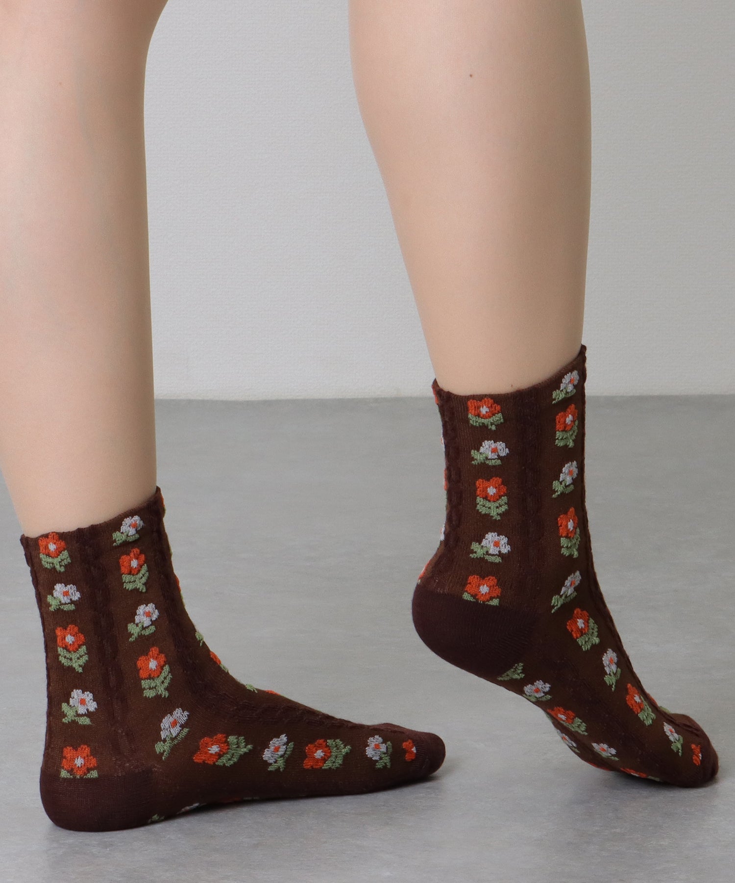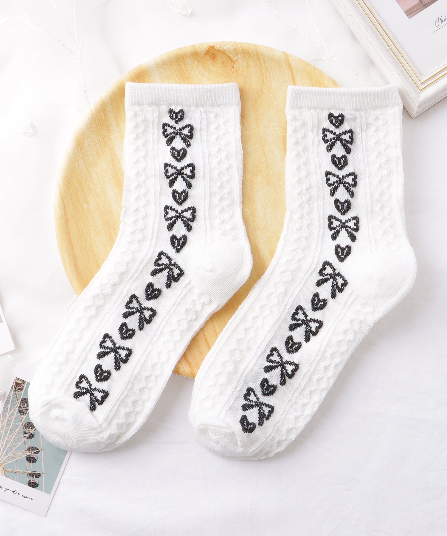 【8足セット】 立体 ケーブル柄 ロマンチック クルー丈 ソックス