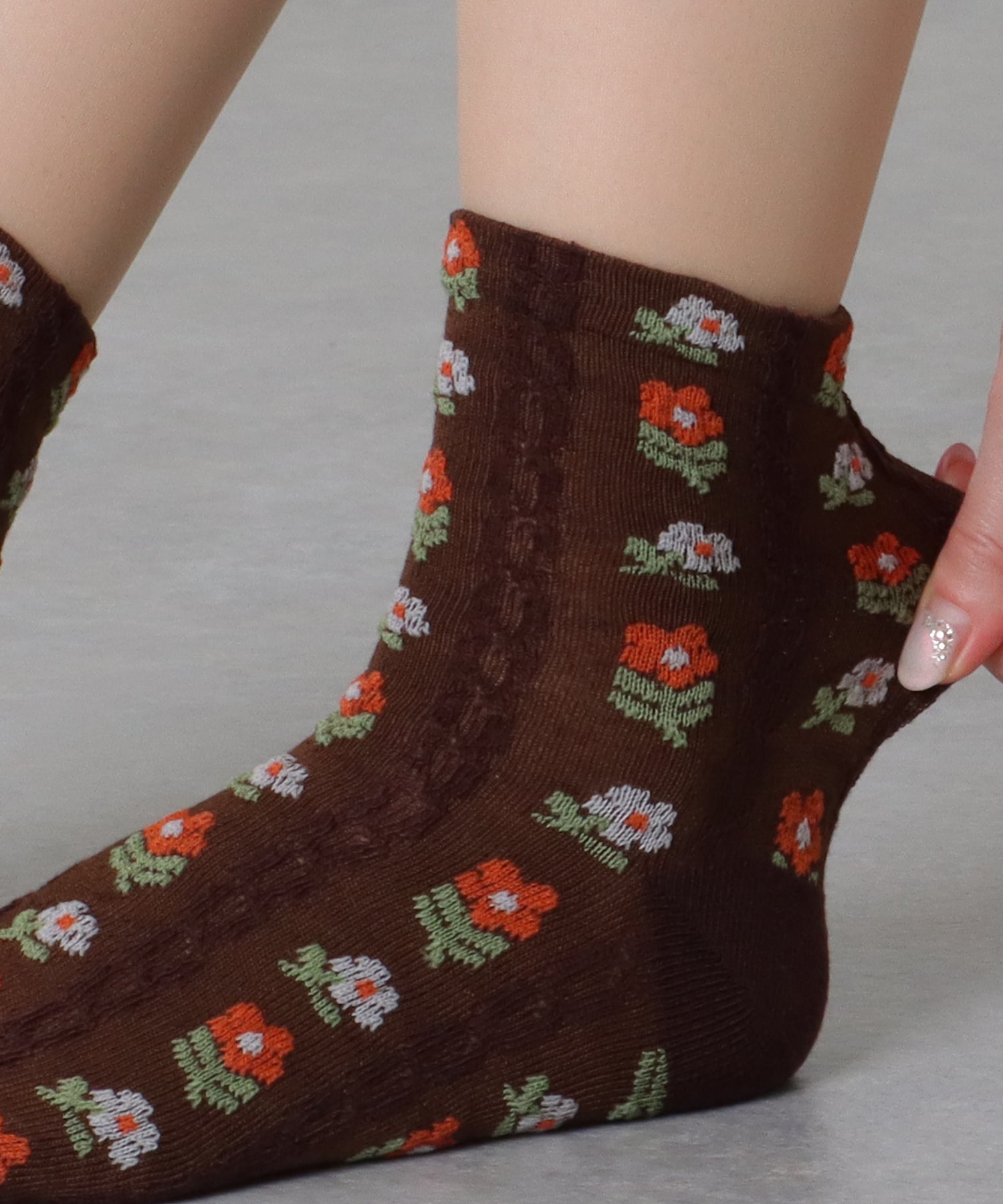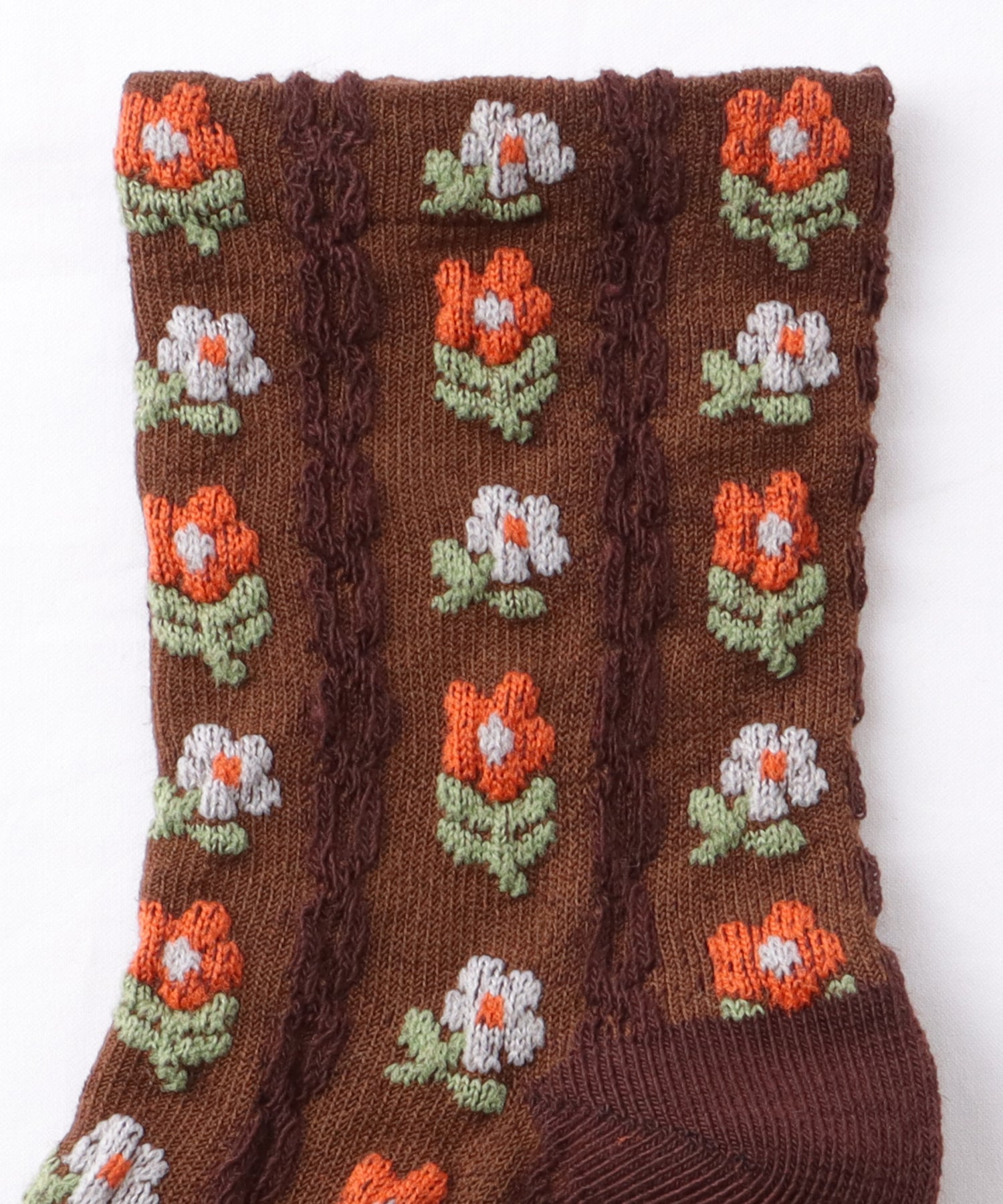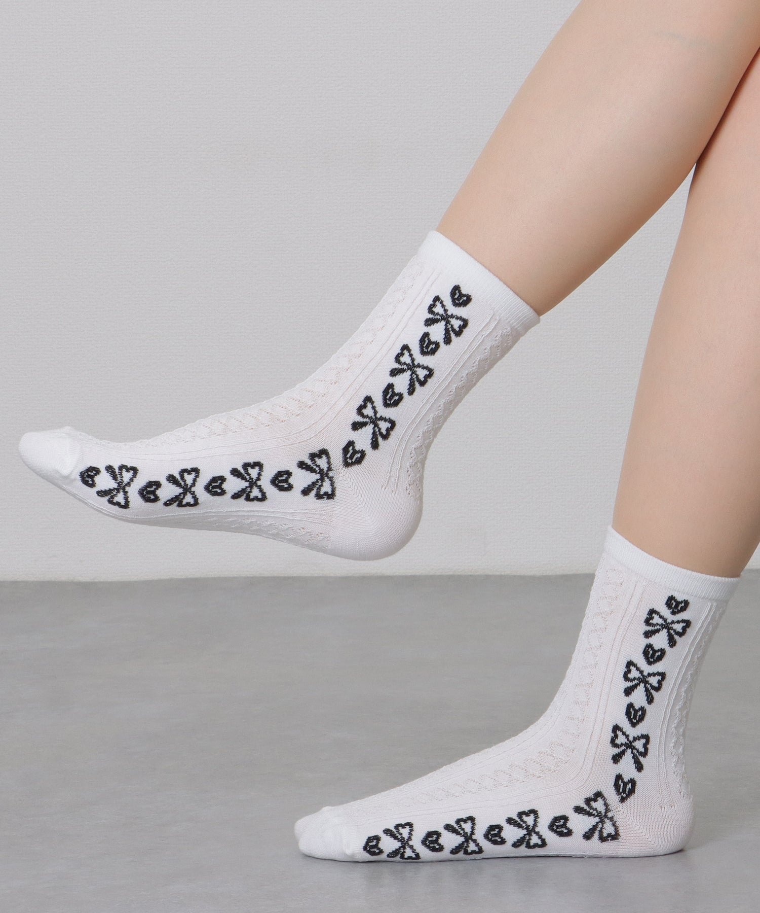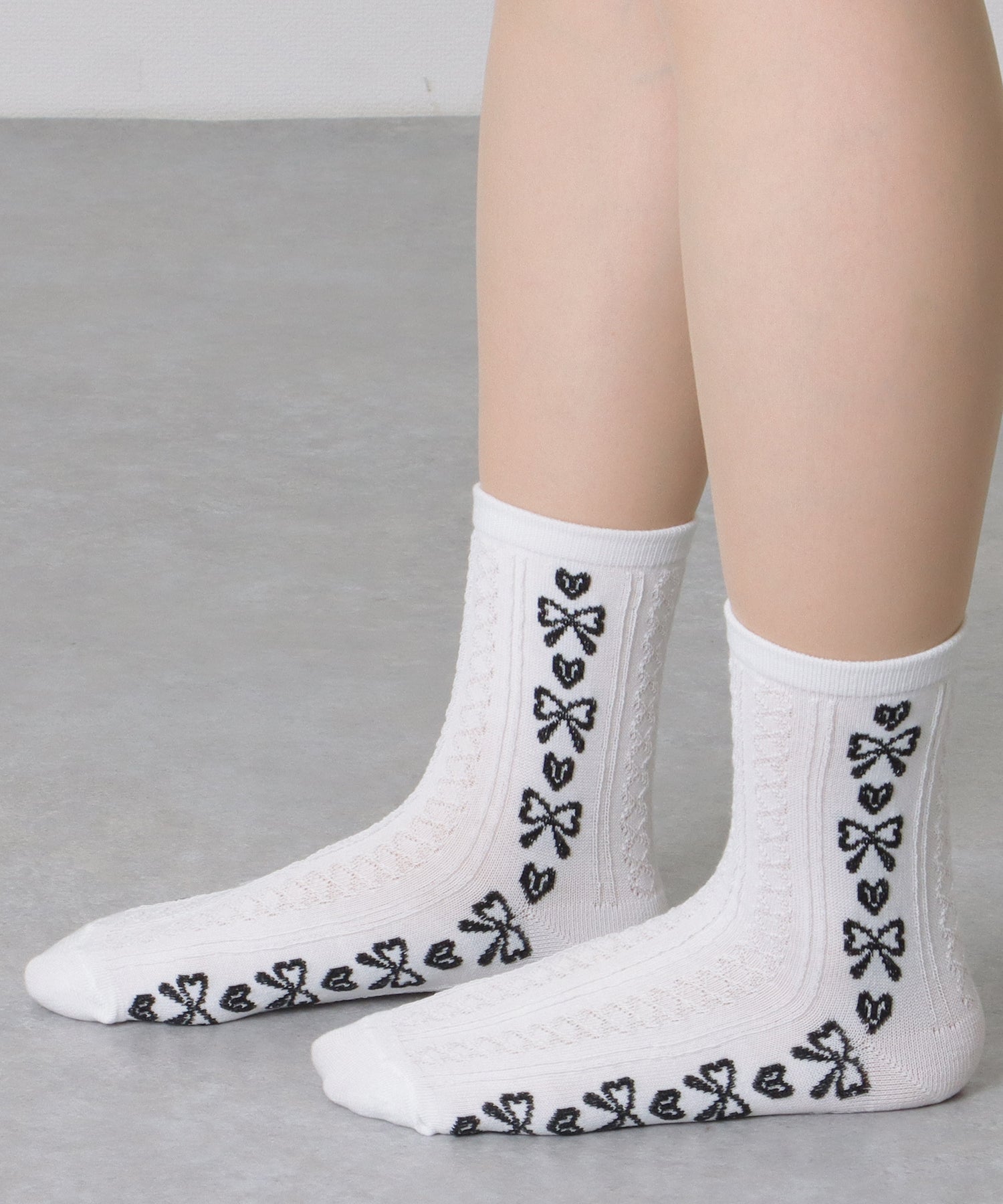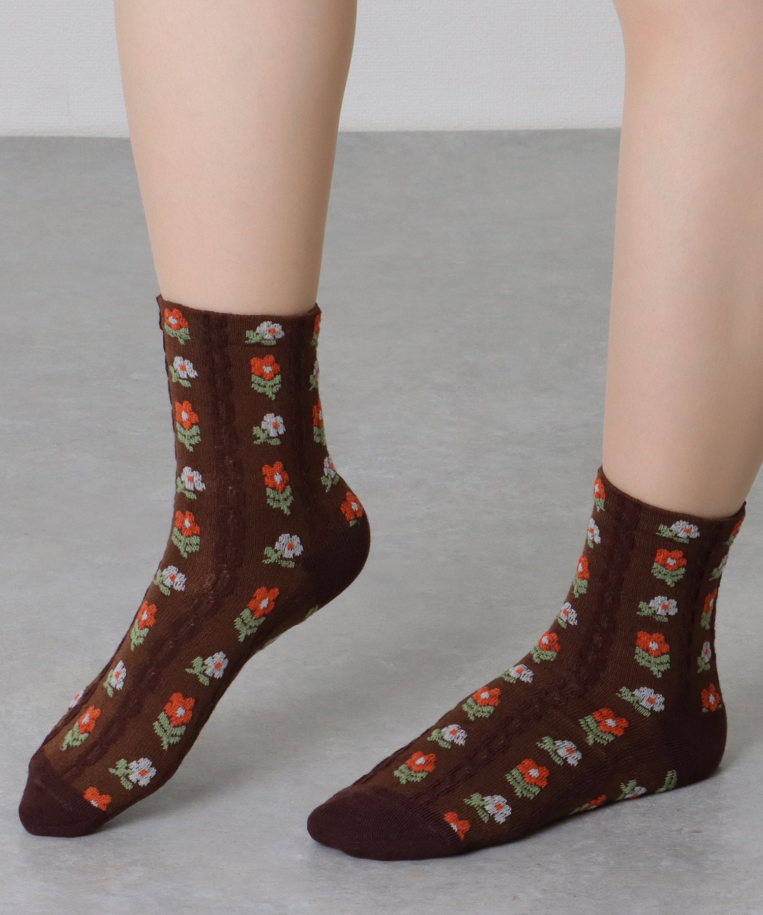 【8足セット】 立体 ケーブル柄 ロマンチック クルー丈 ソックス