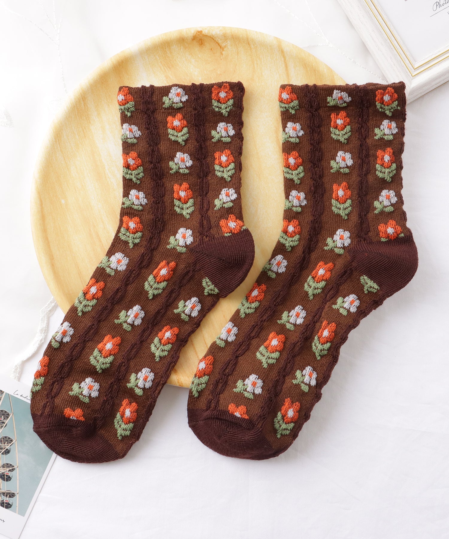 秋冬コーデに映える、落ち着きのあるチョコレートカラーをベースにしたソックス4足セット。