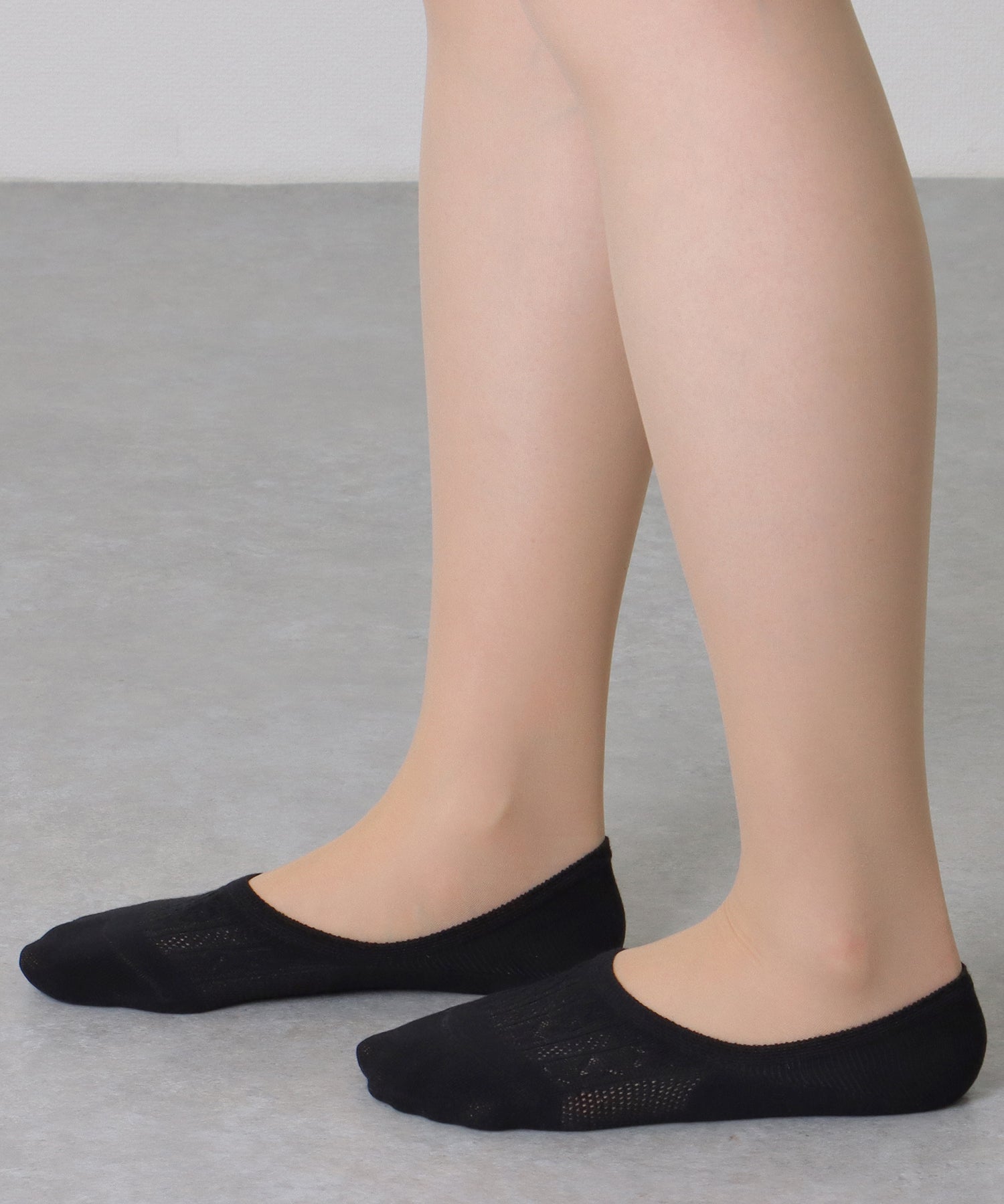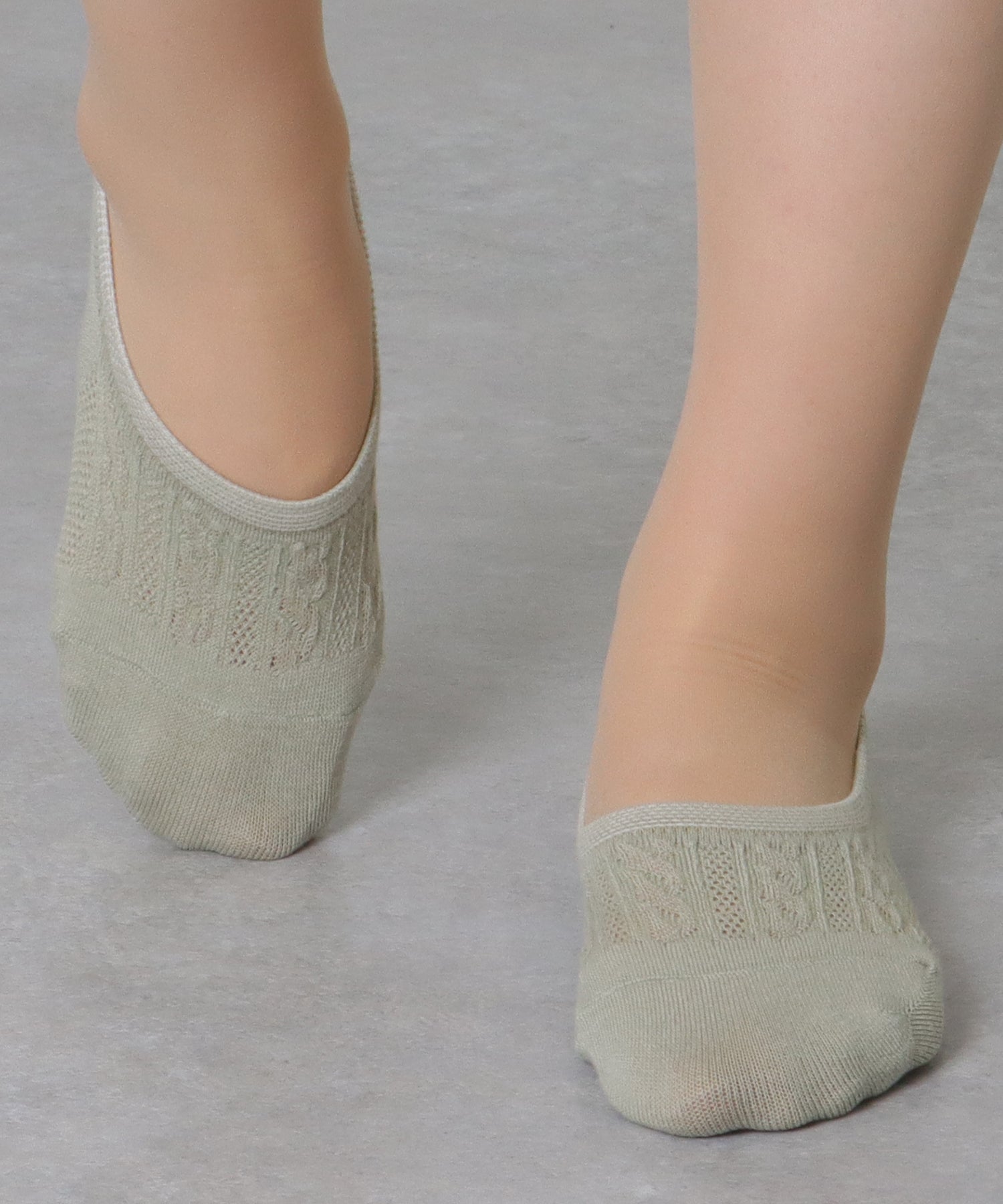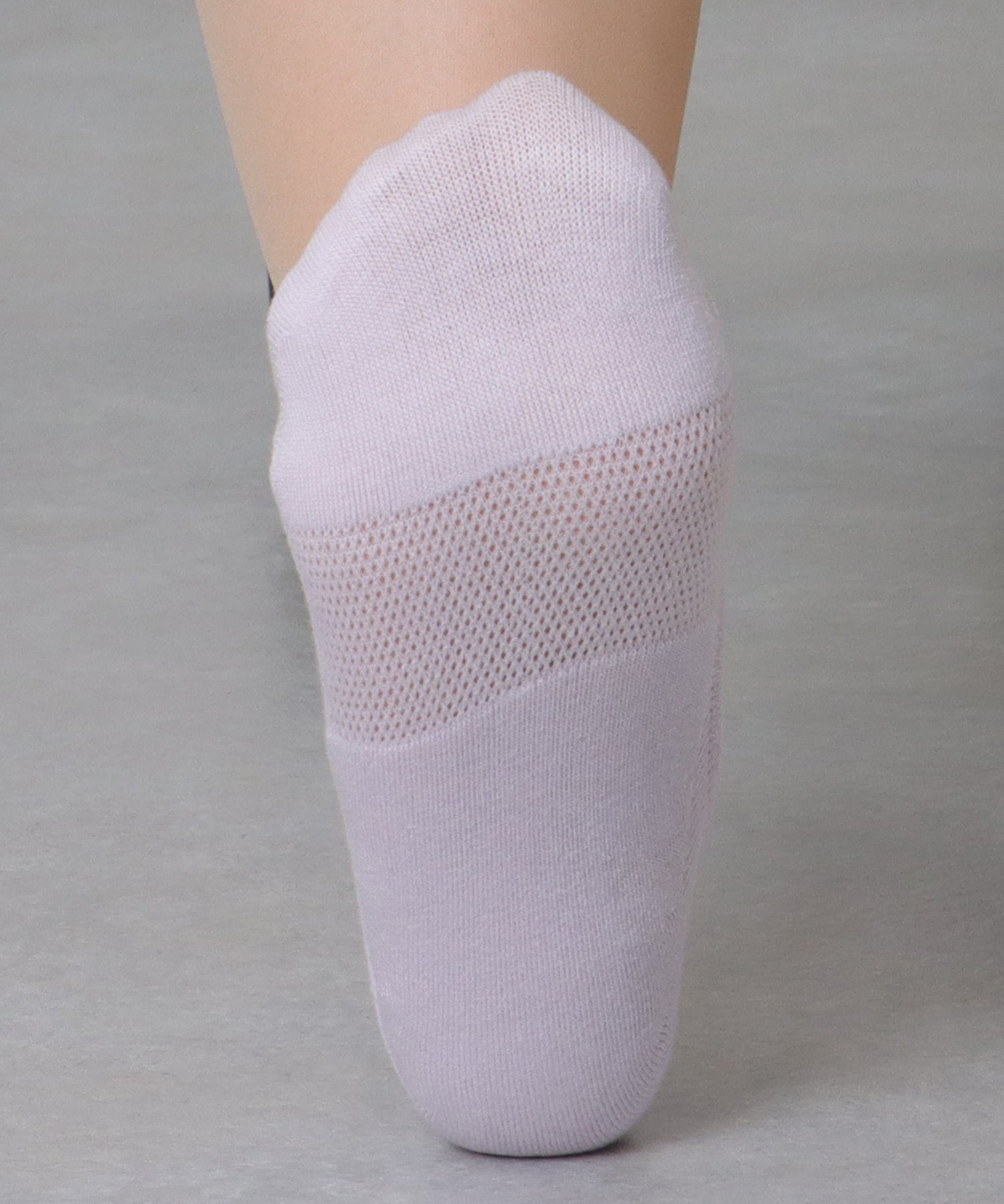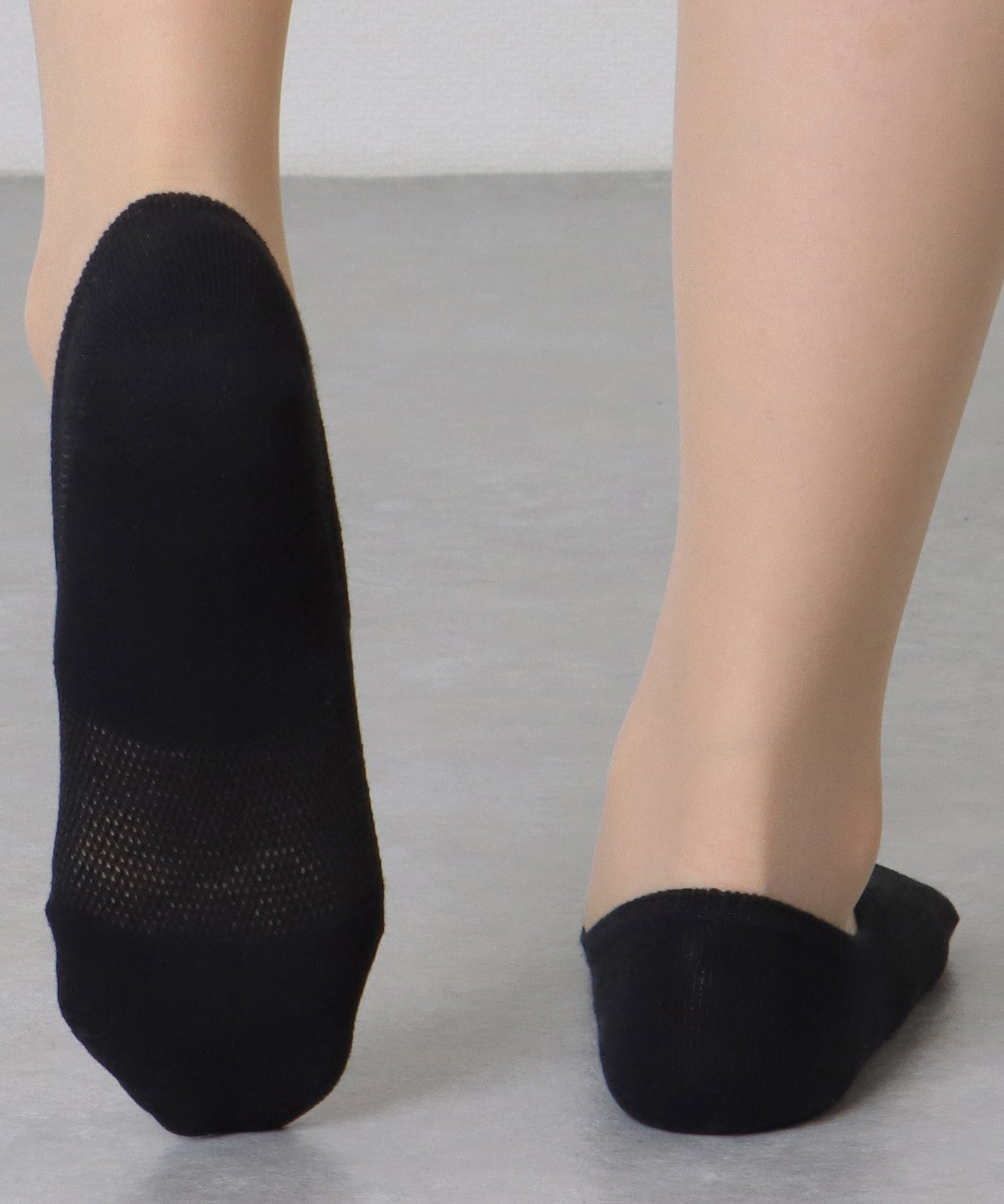 かかと部分には滑り止めが付いているので、浅め丈ながらも着用時の脱げやずれが起こりにくいのがポイントです。