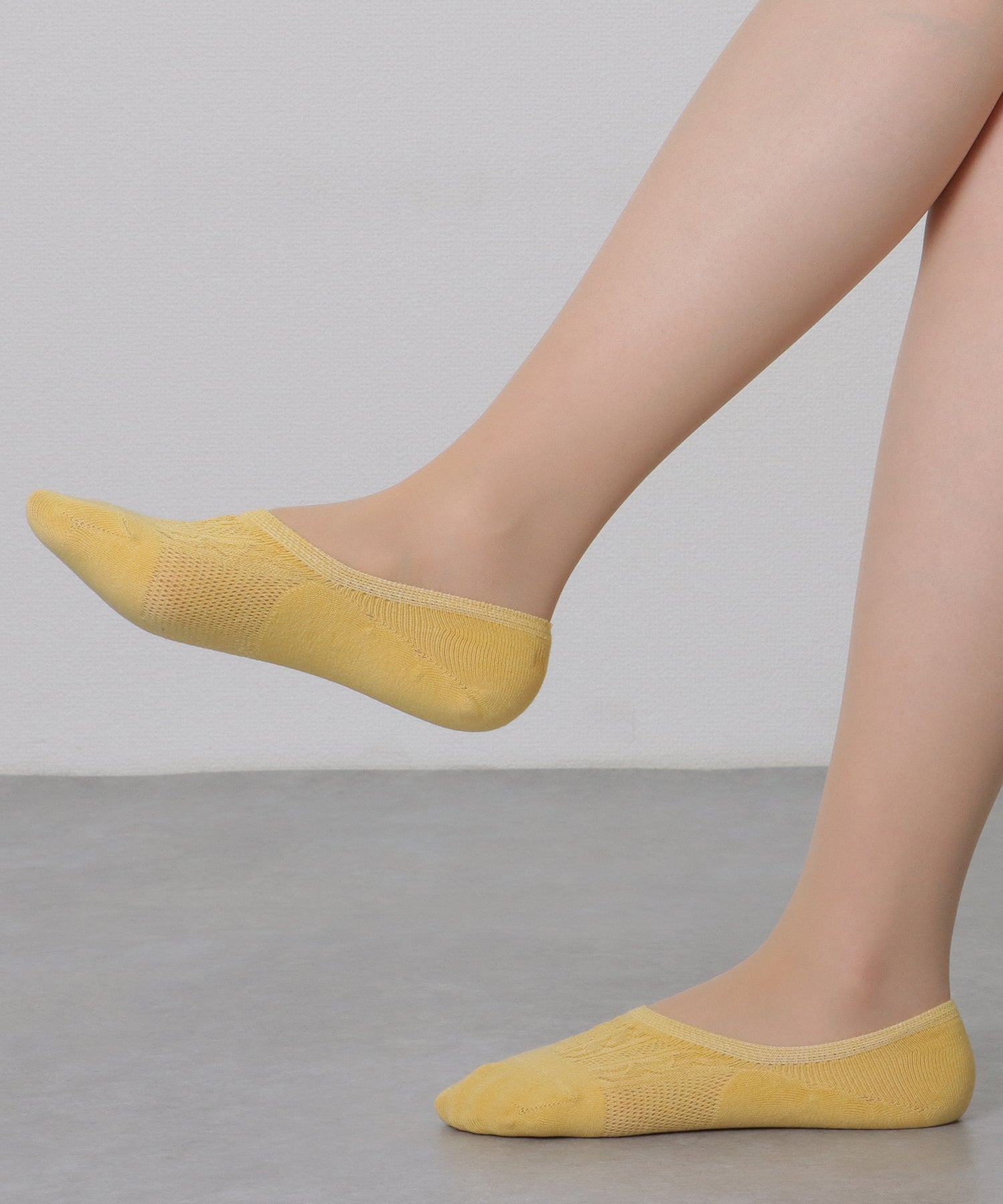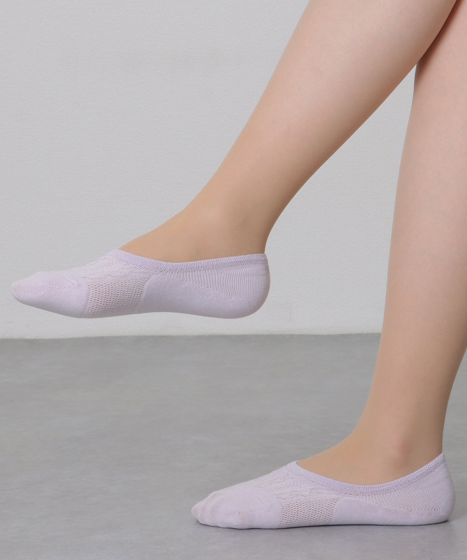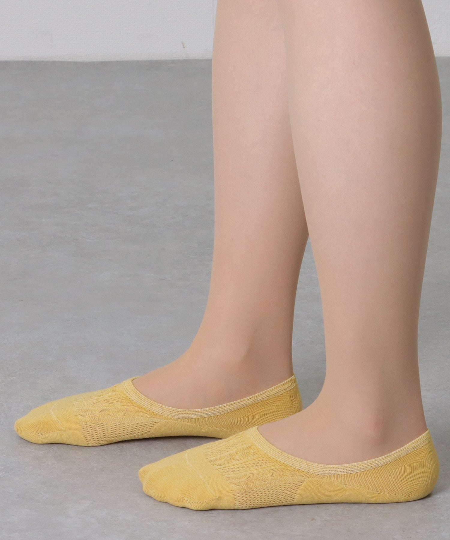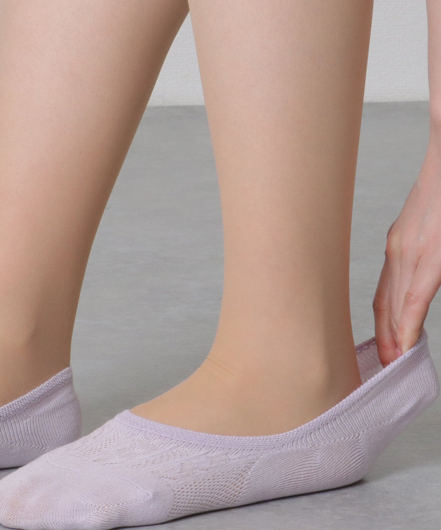 かかと部分には滑り止めが付いているので、浅め丈ながらも着用時の脱げやずれが起こりにくいのがポイントです。