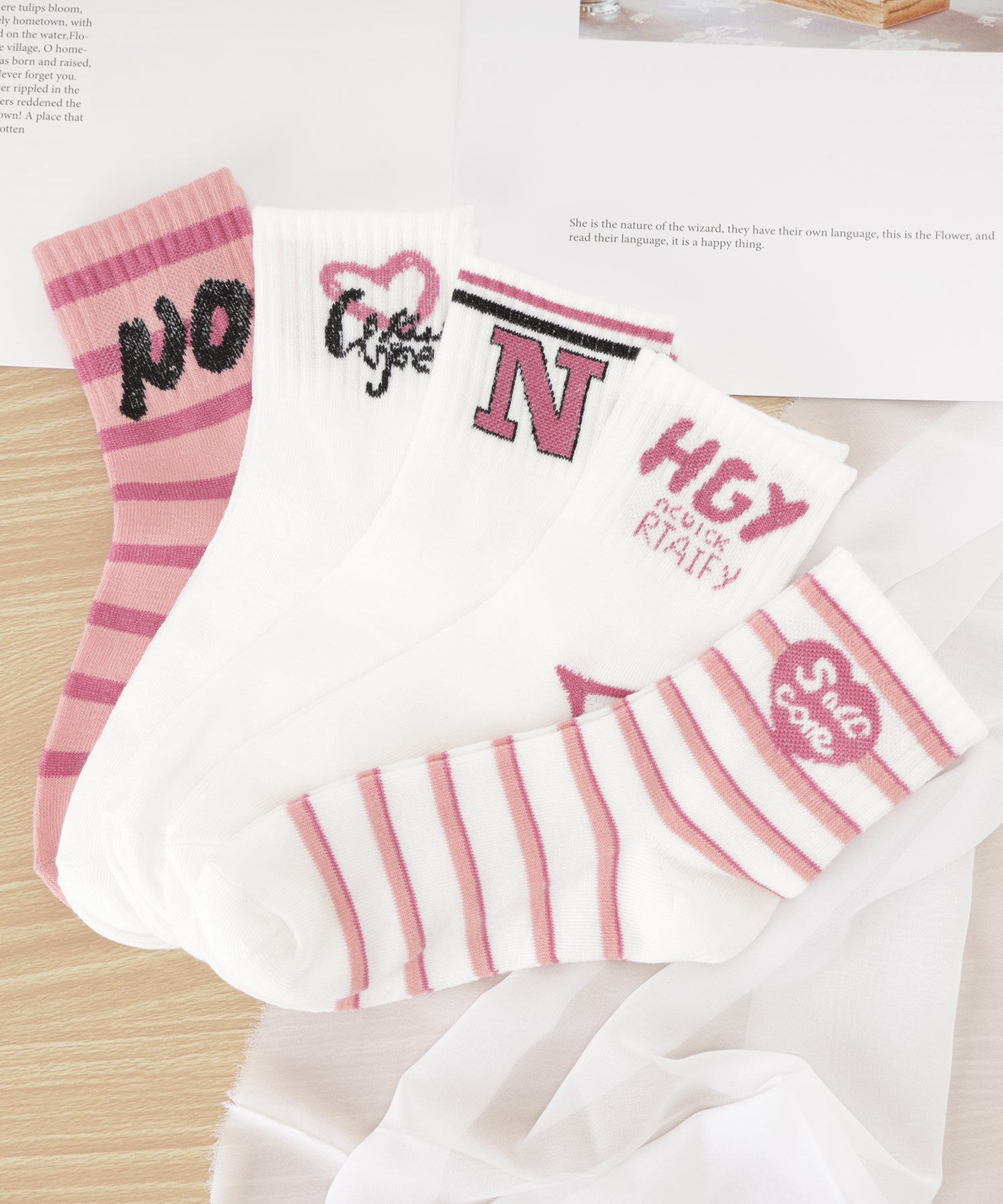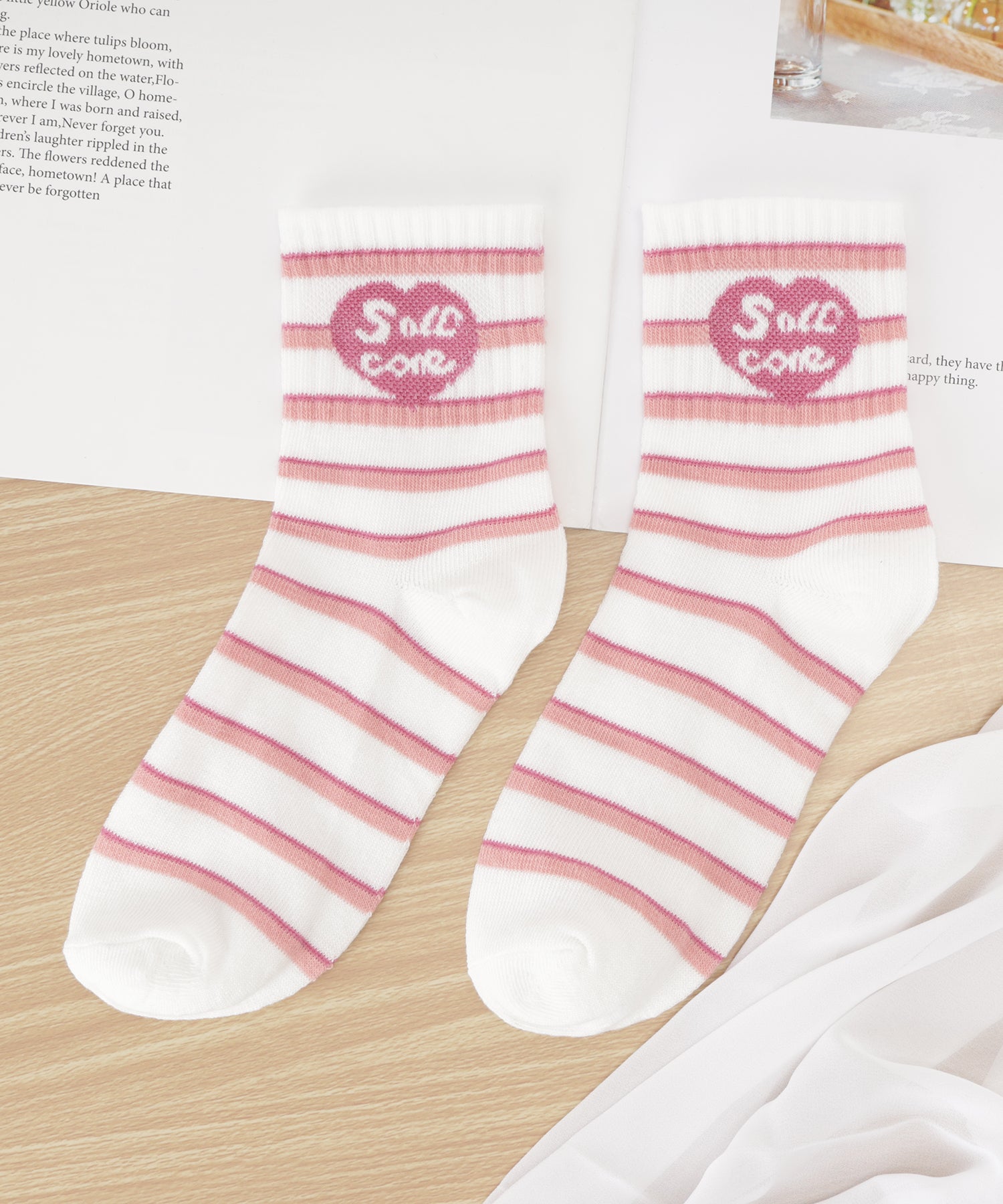 ガーリーなピンク色の配色が可愛らしい、ソックスセット。