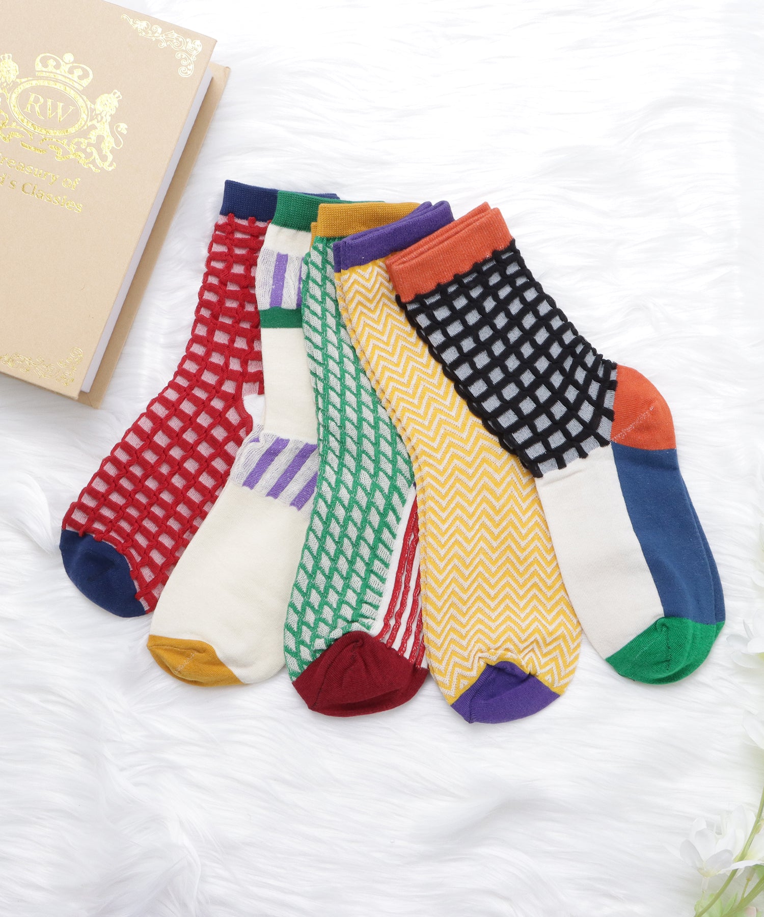 ポップなデザインが目を惹く幾何学柄ソックス5足セット